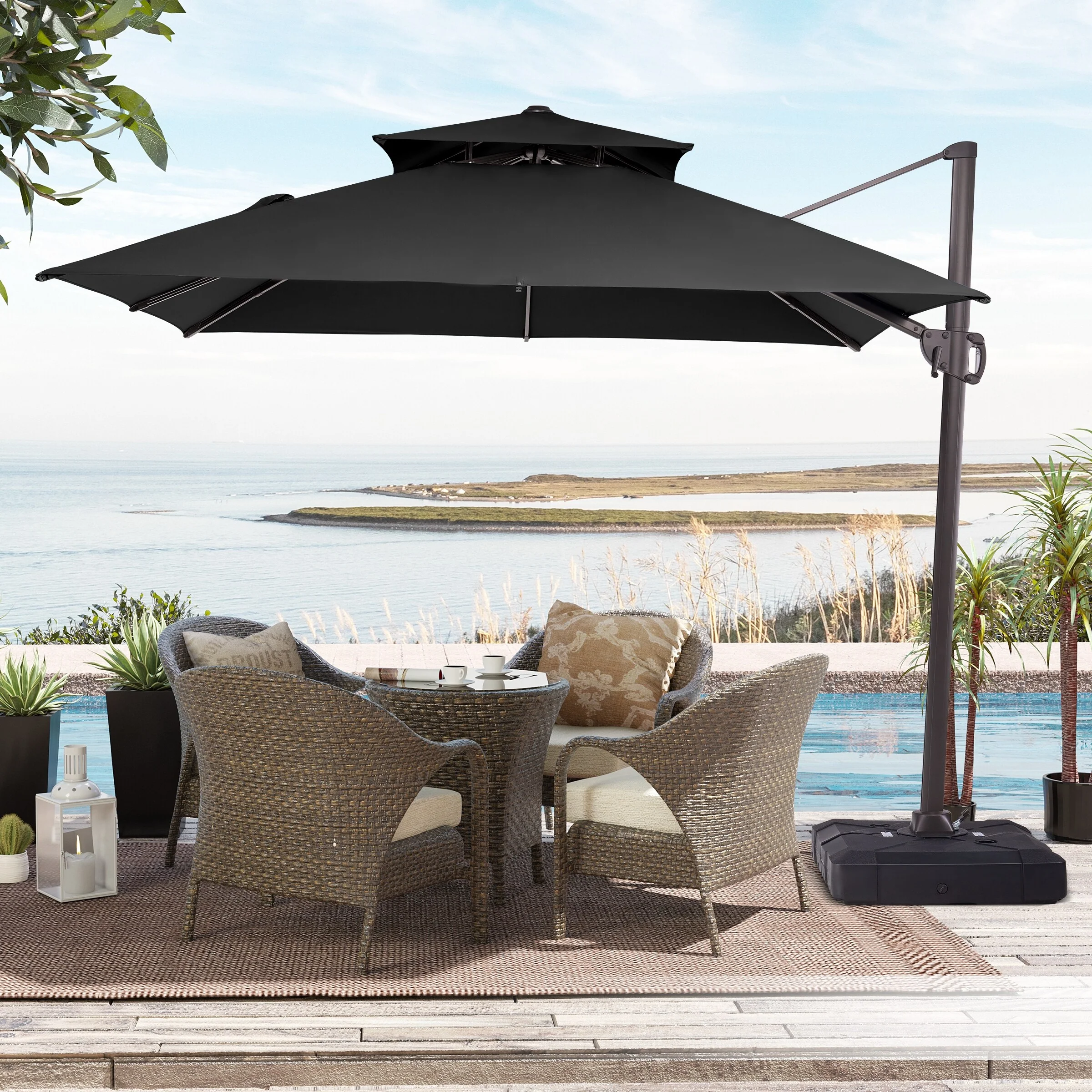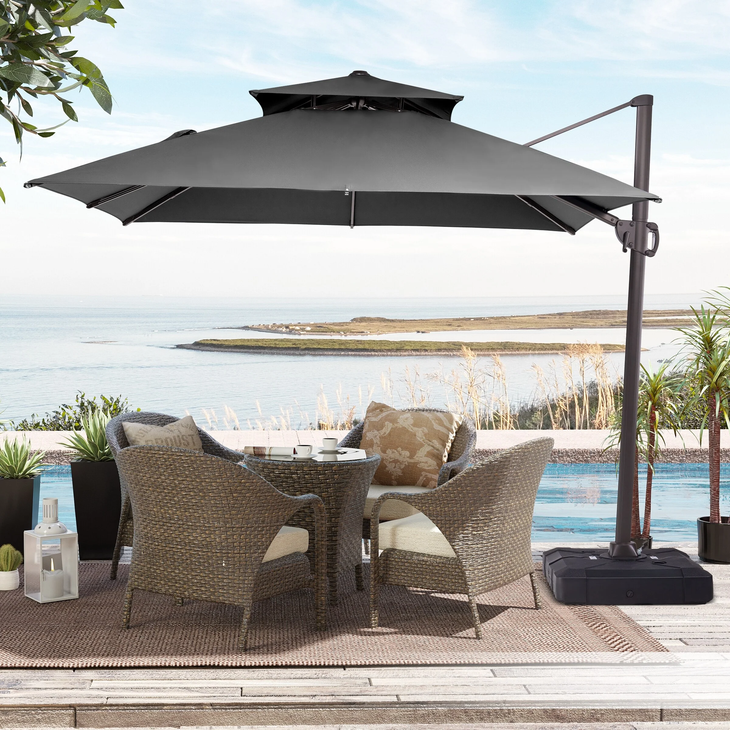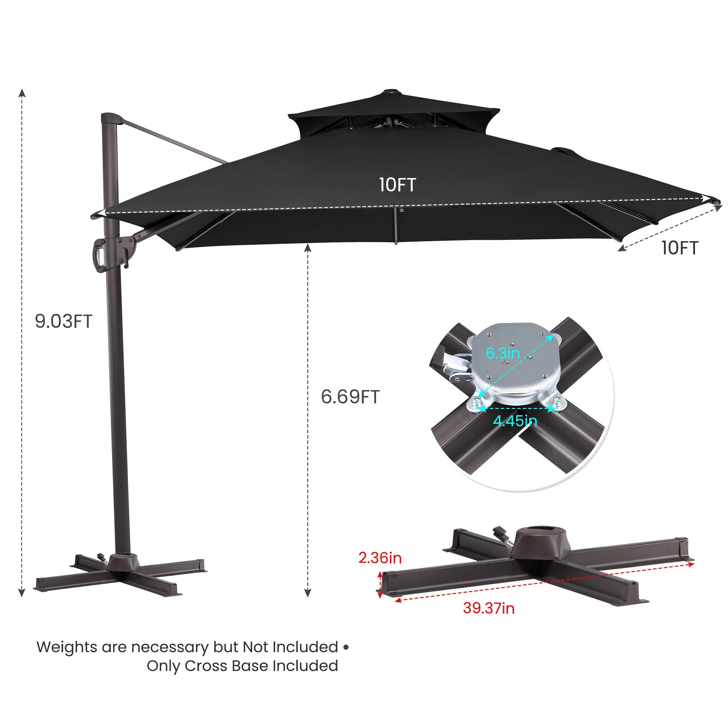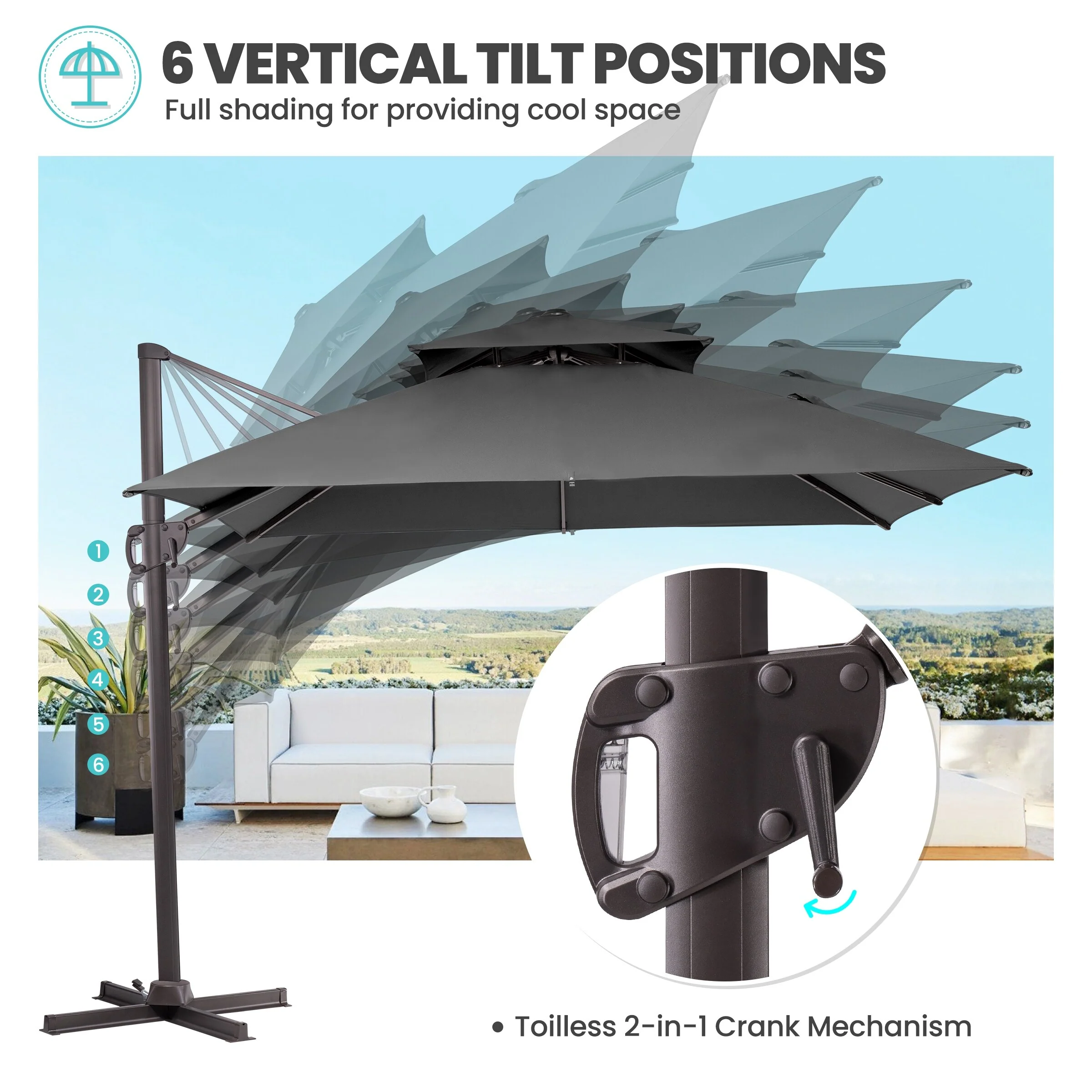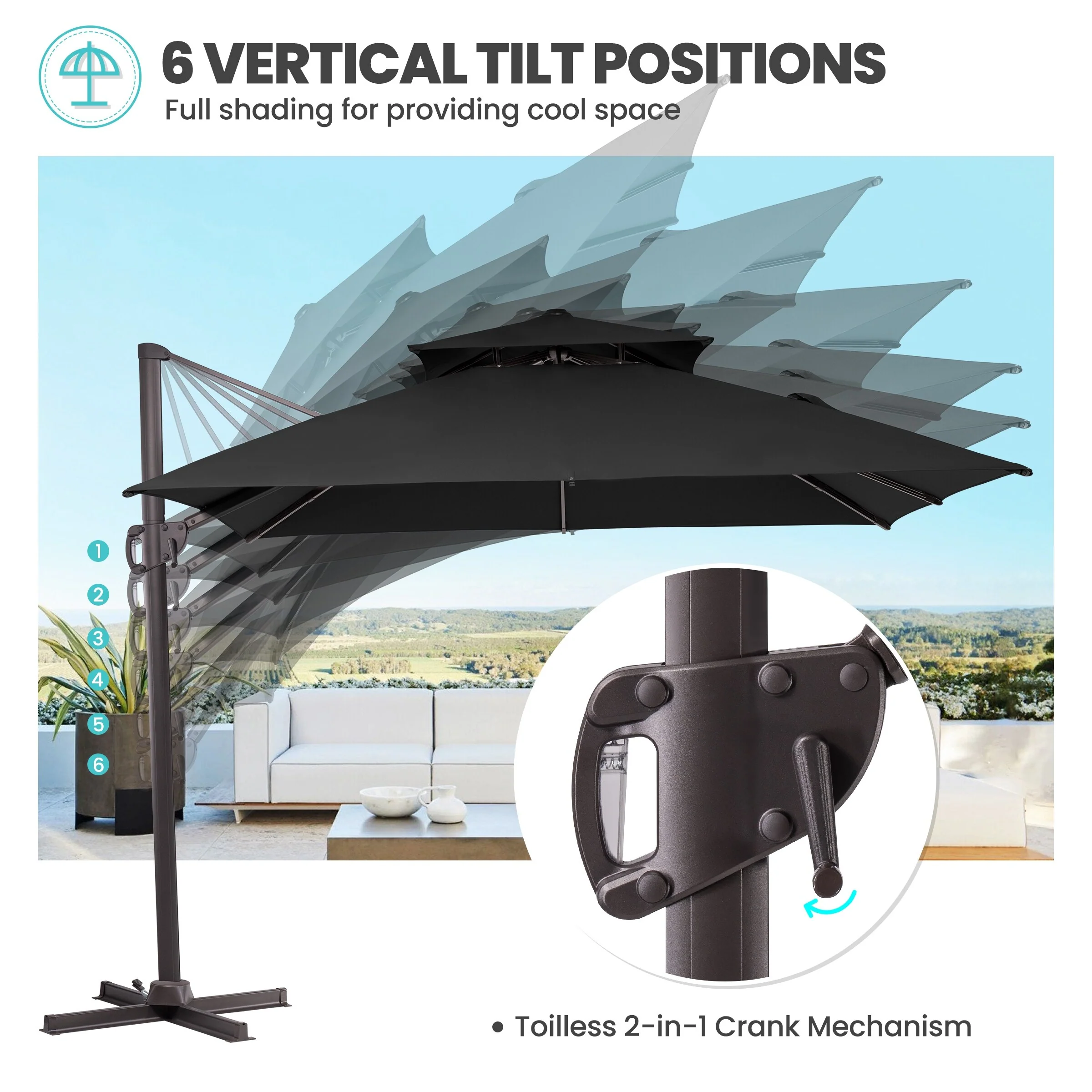 Crestlive Products 10FT Square Patio Cantilever-Offset Umbrella