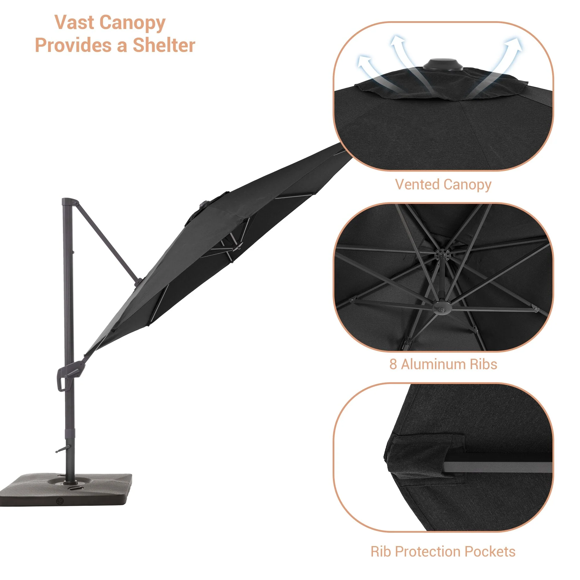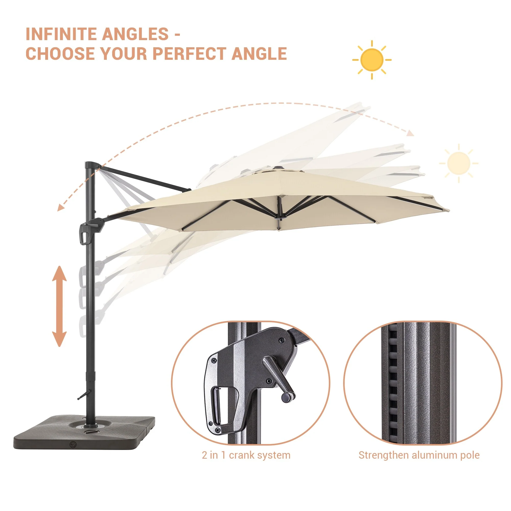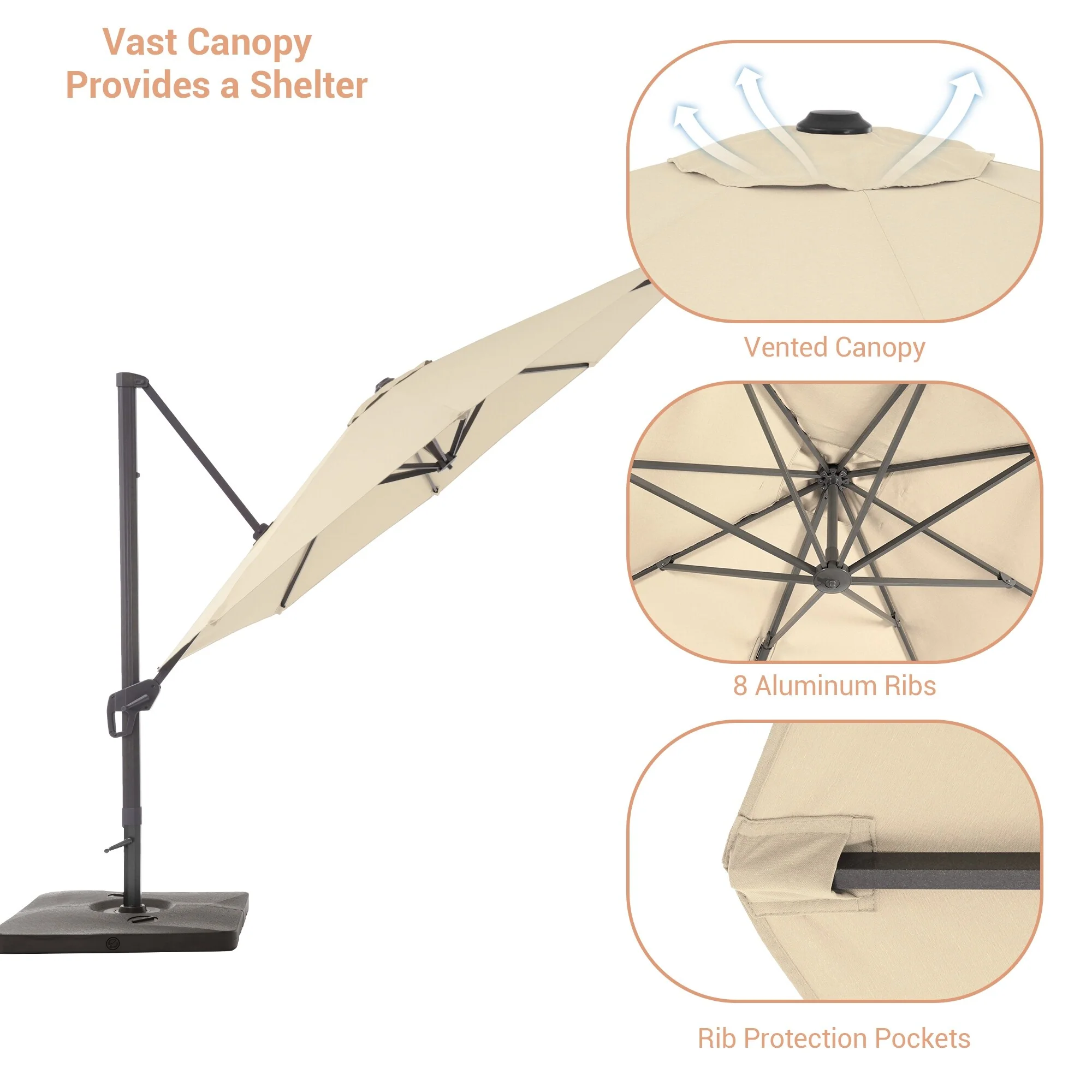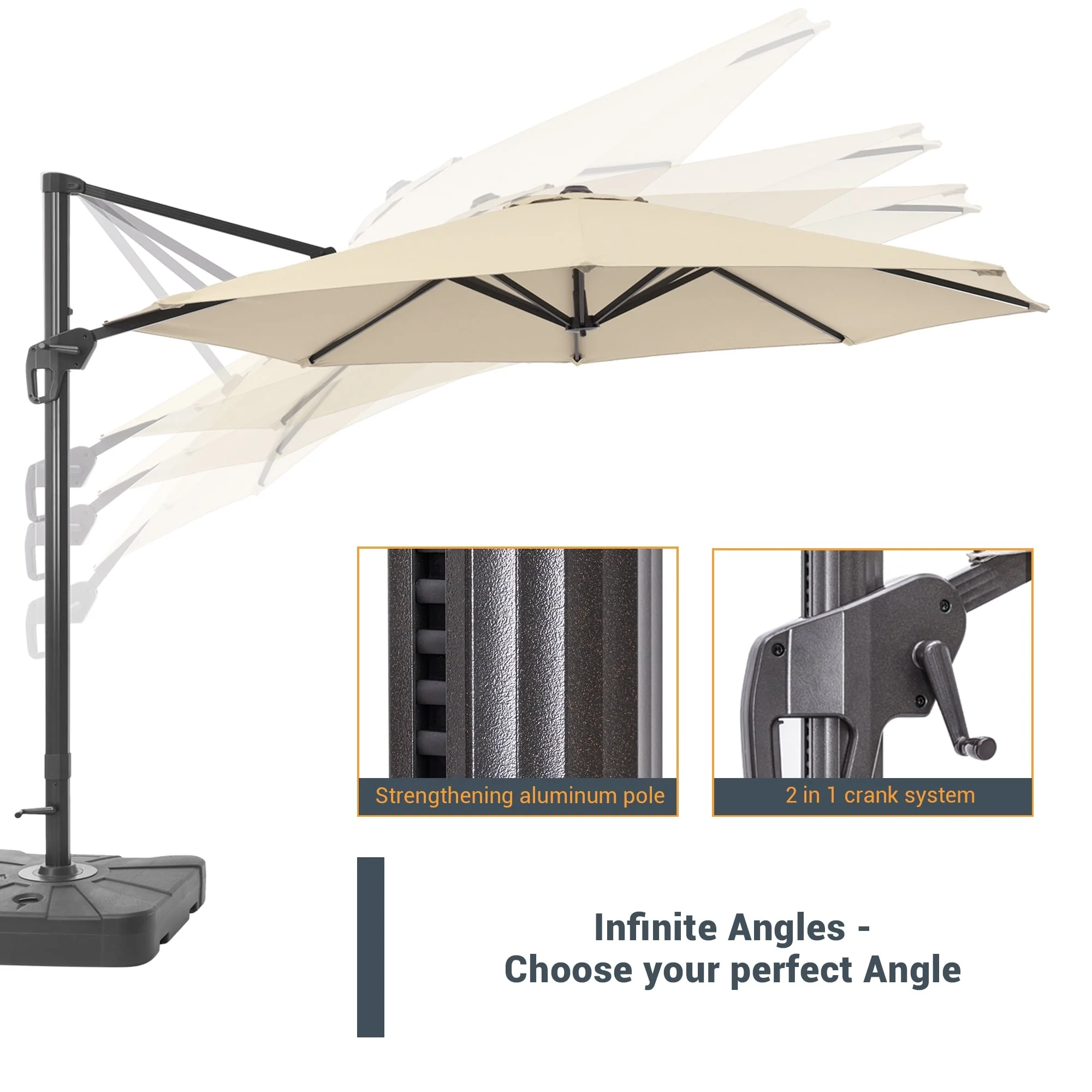Crestlive Products 10FT Square Patio Cantilever-Offset Umbrella