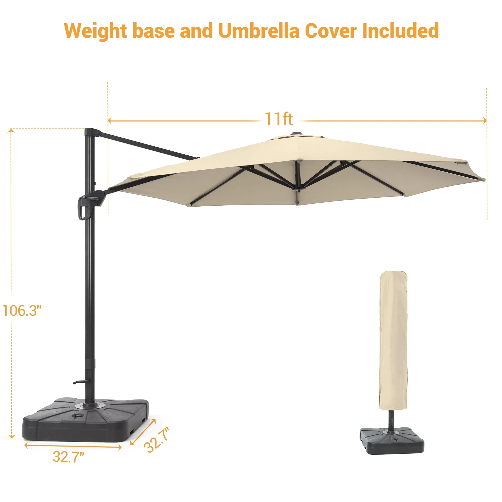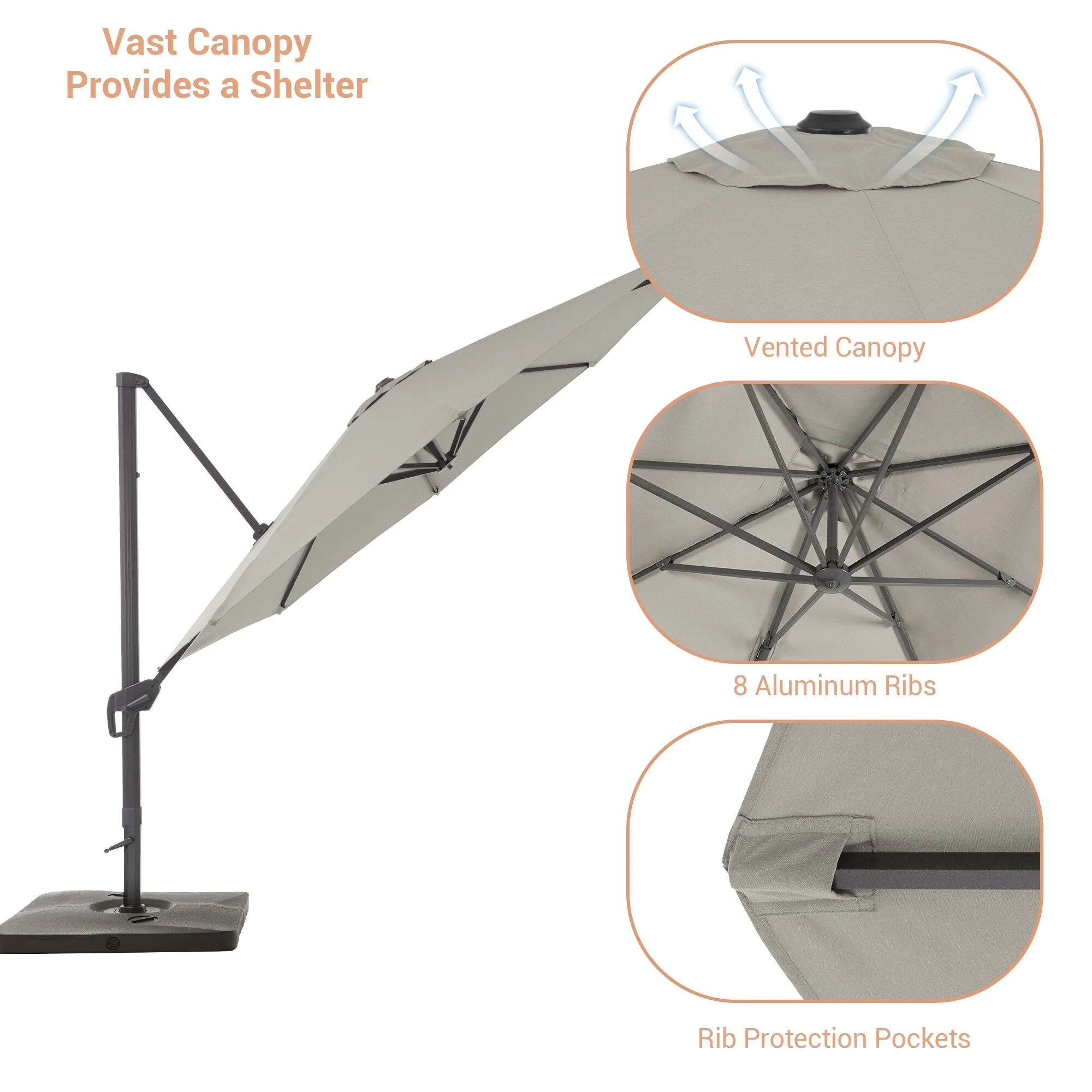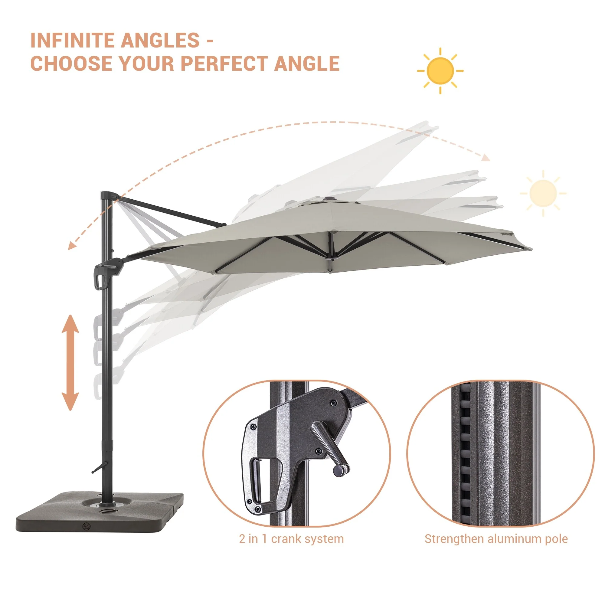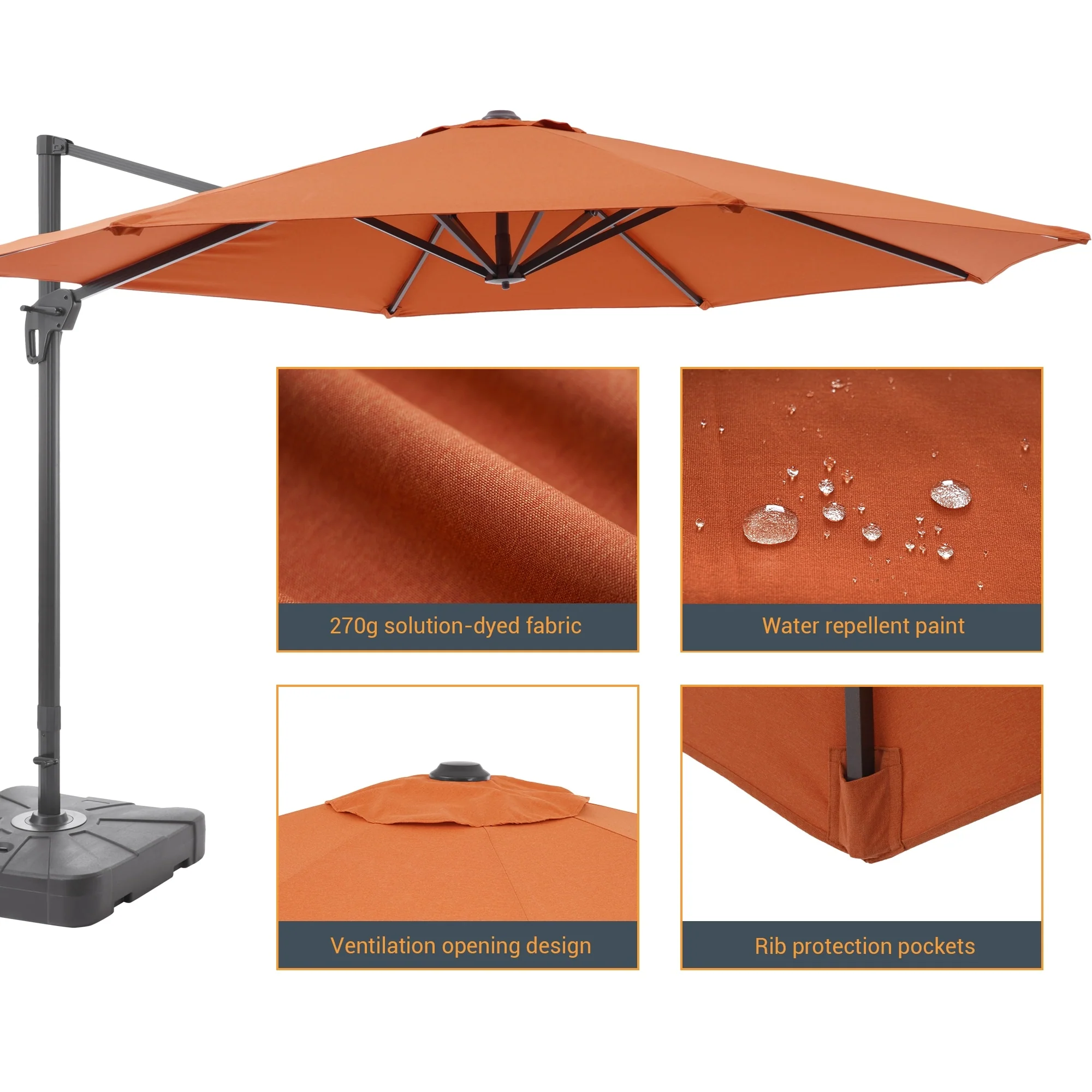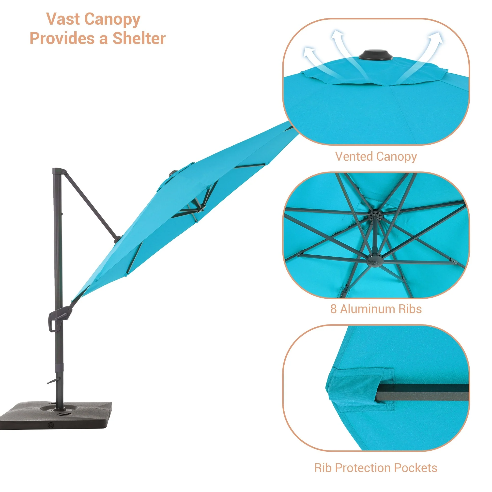 Crestlive Products 10FT Square Patio Cantilever-Offset Umbrella