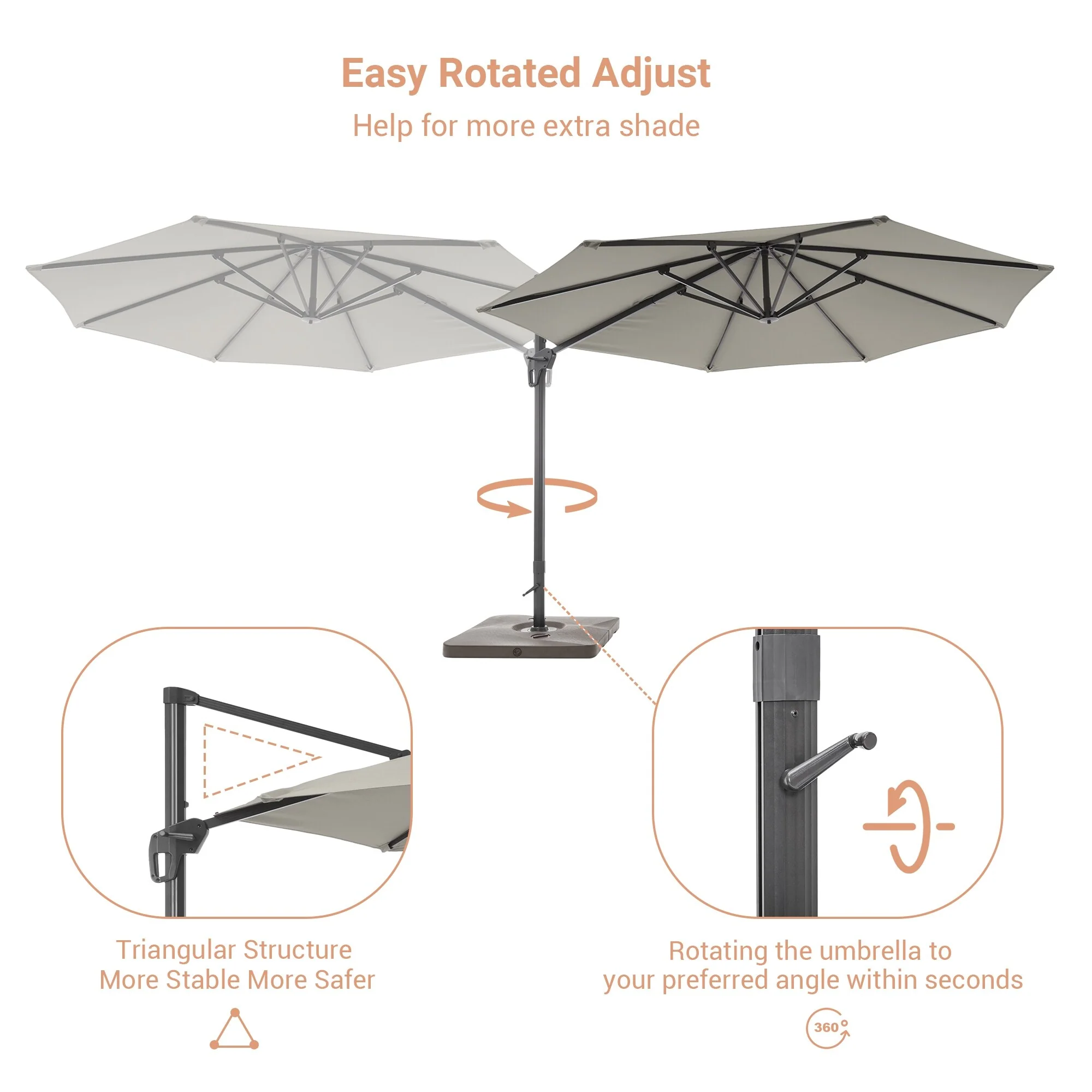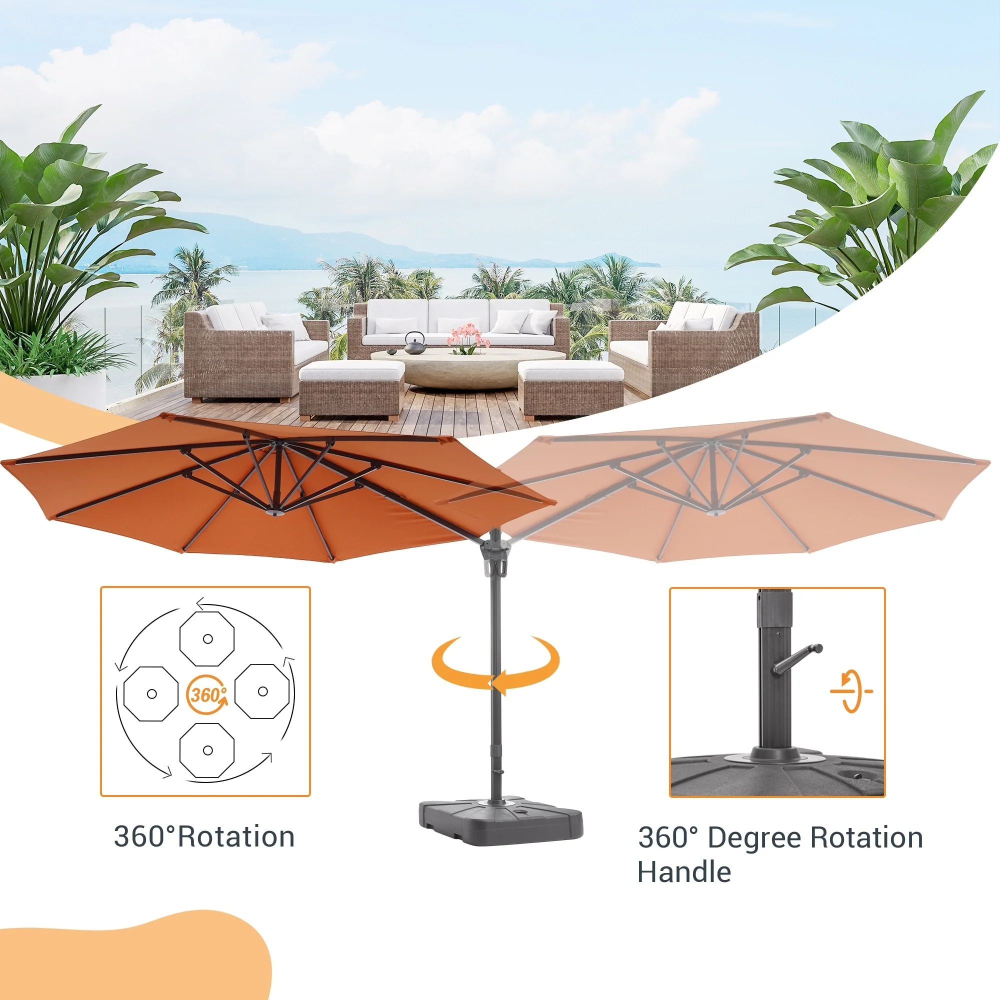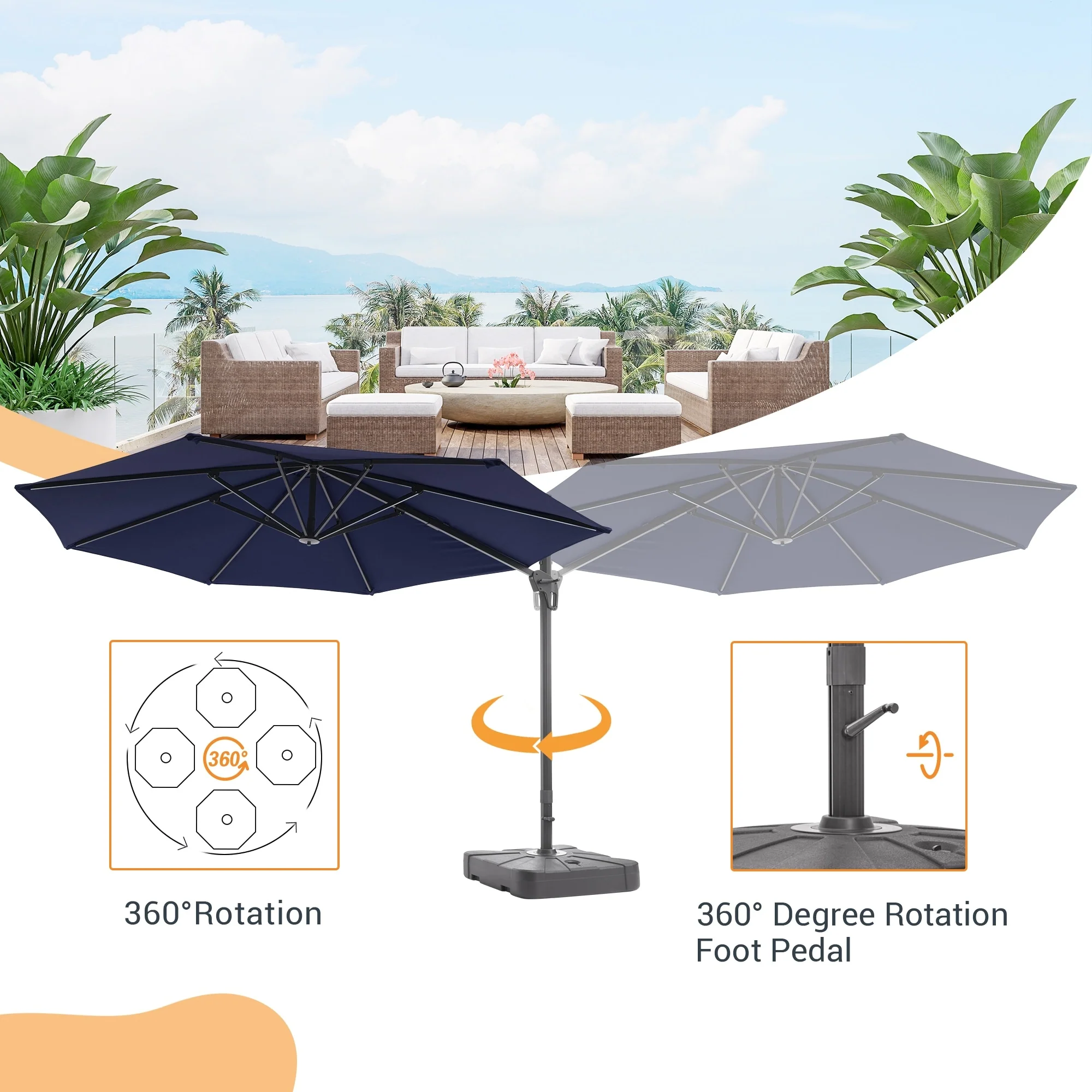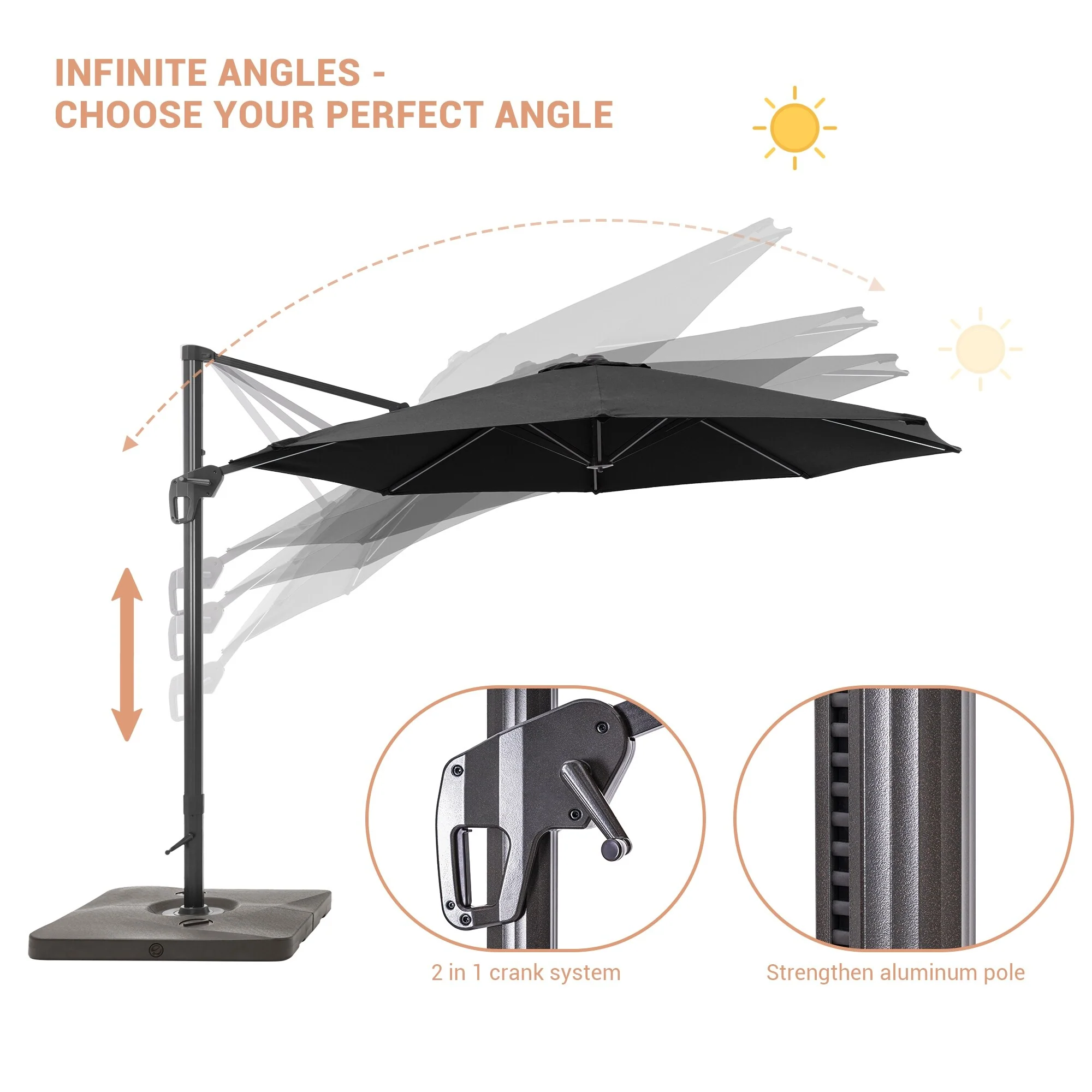 Crestlive Products 10FT Square Patio Cantilever-Offset Umbrella