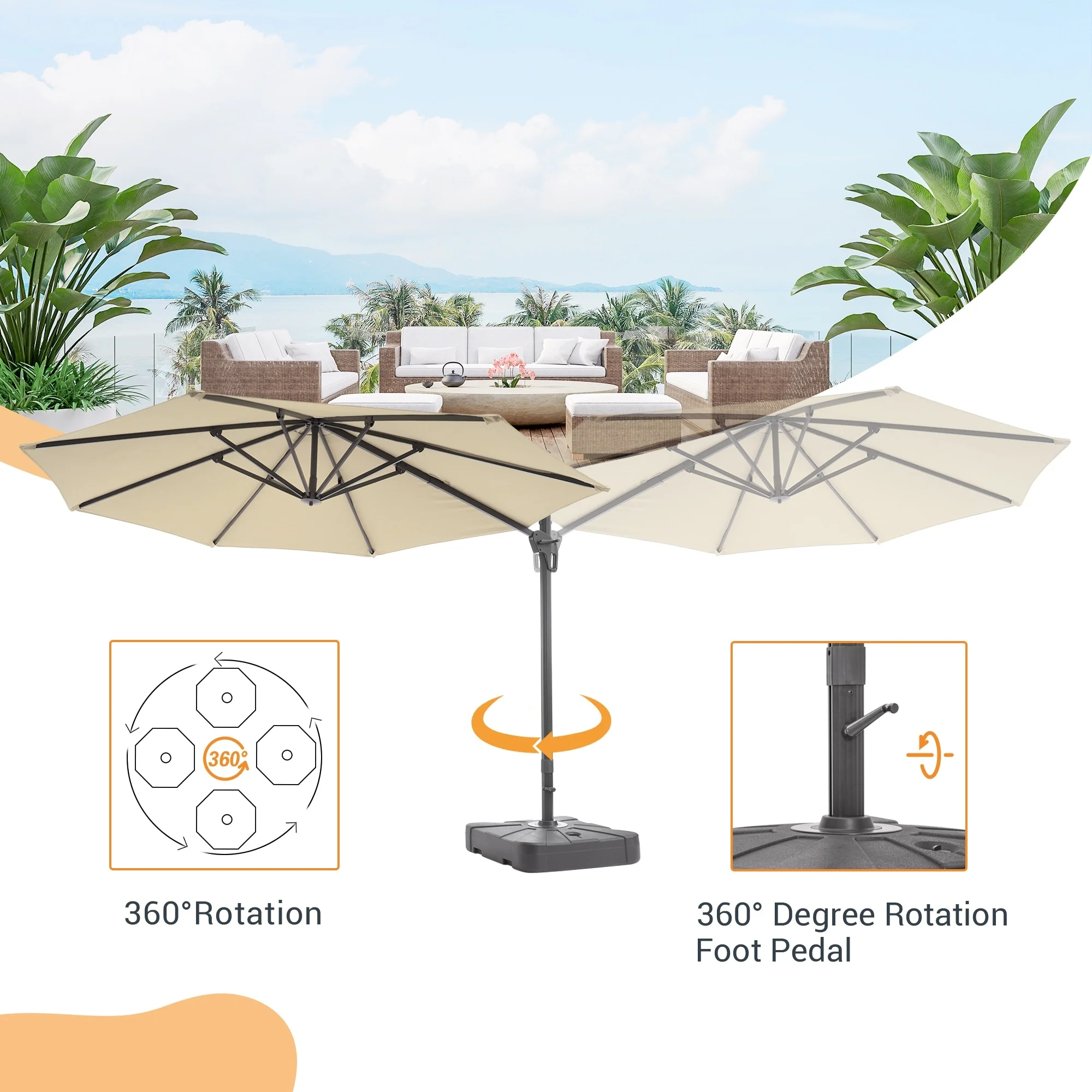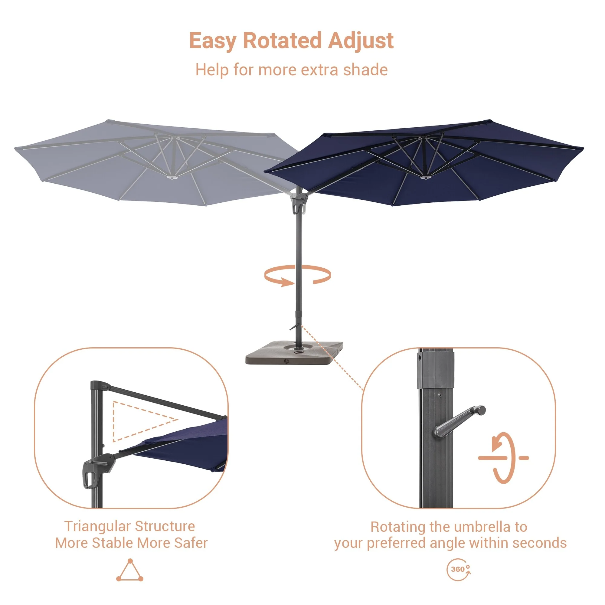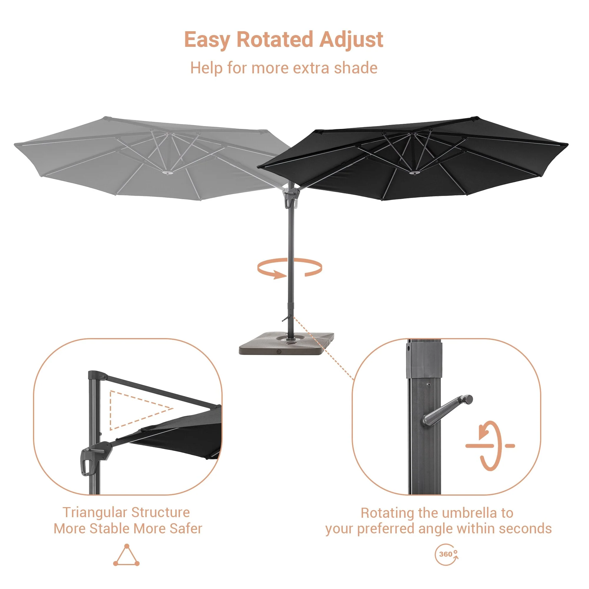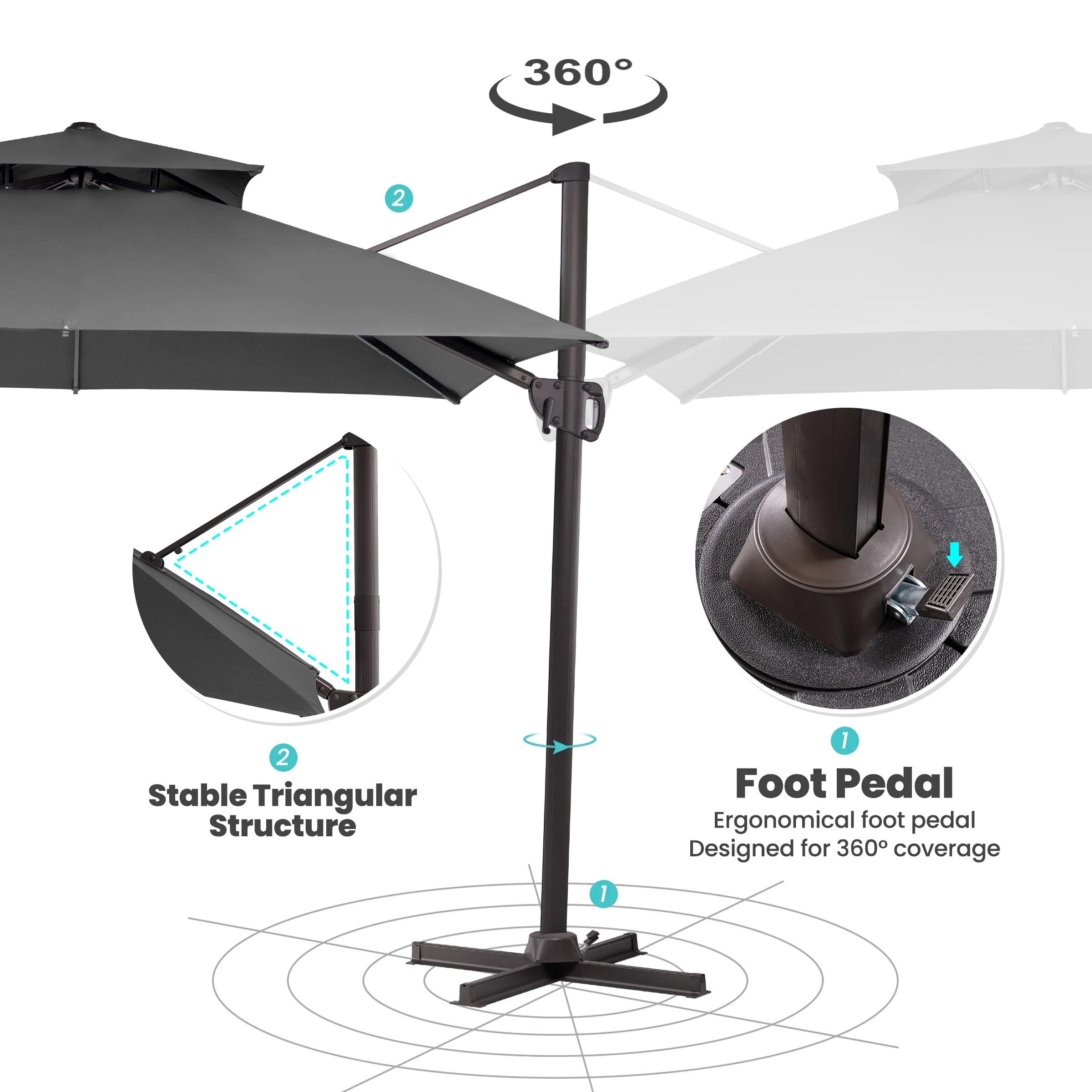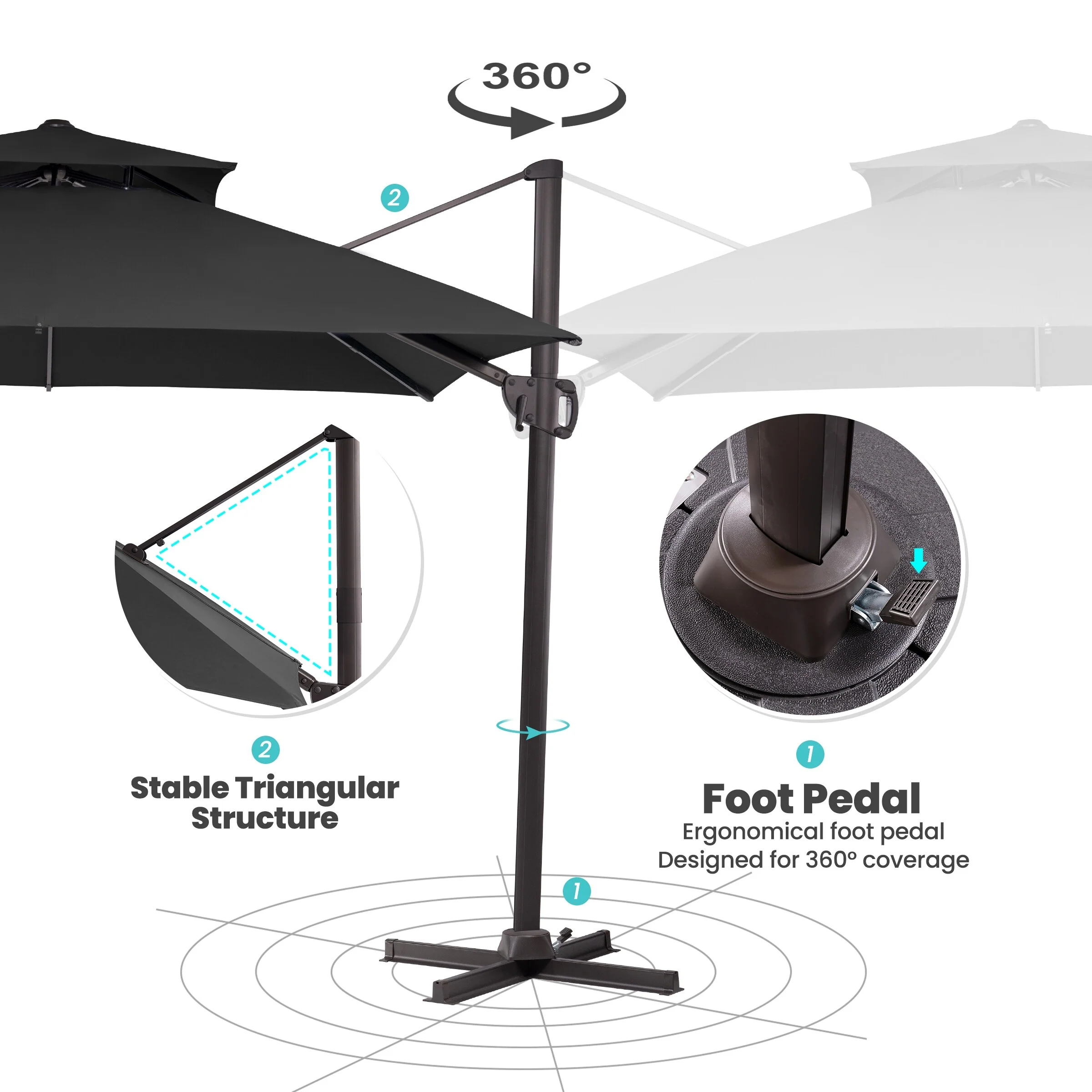 Crestlive Products 10FT Square Patio Cantilever-Offset Umbrella