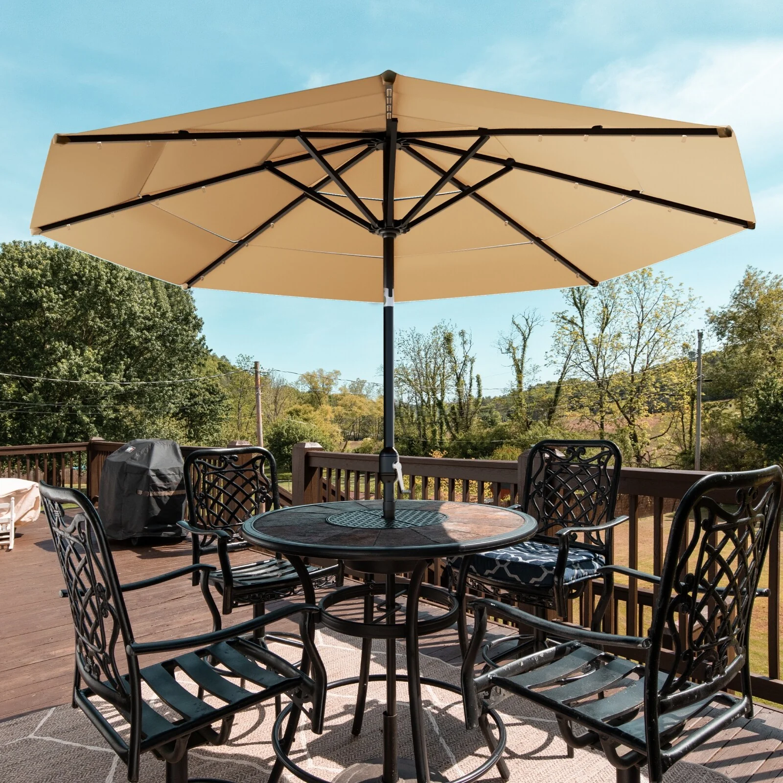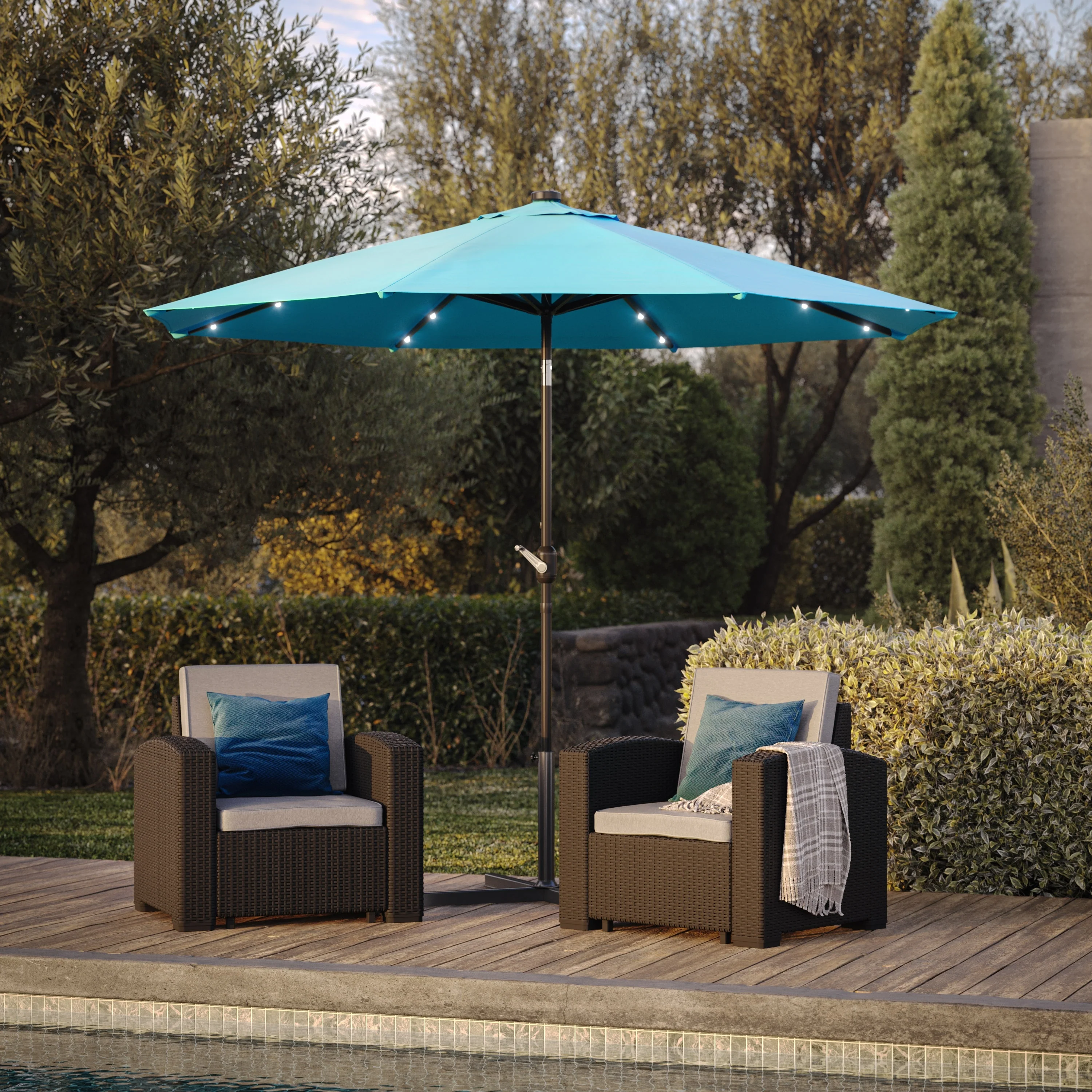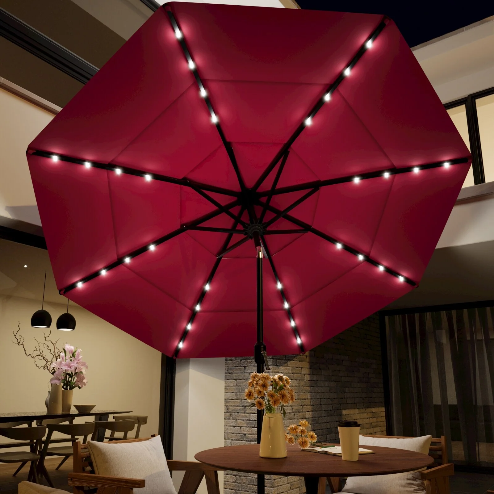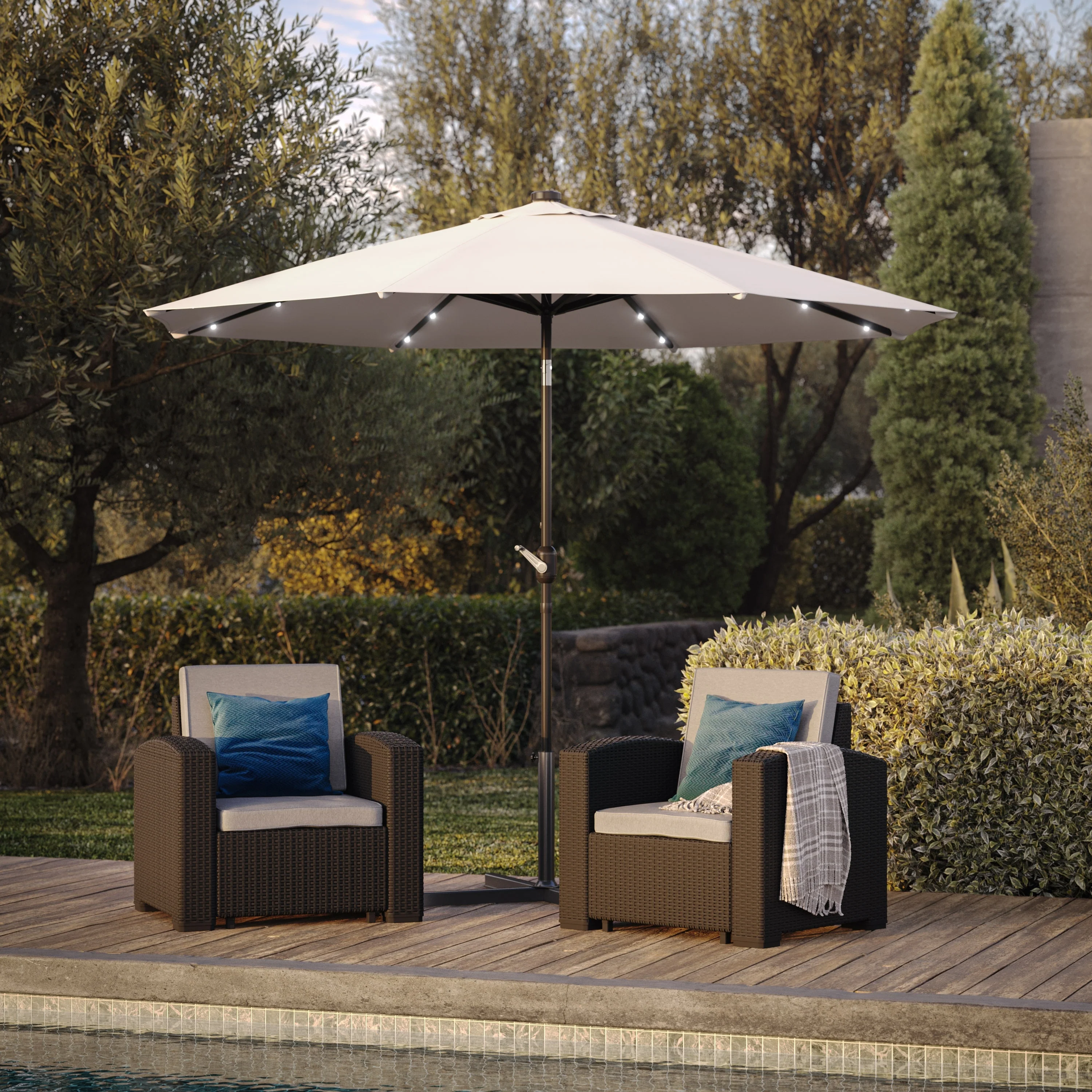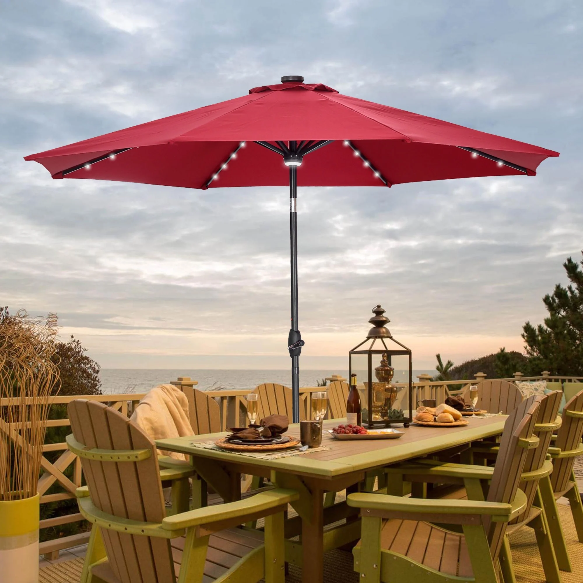 CorLiving 9ft Patio Umbrella with Lights, Tilting