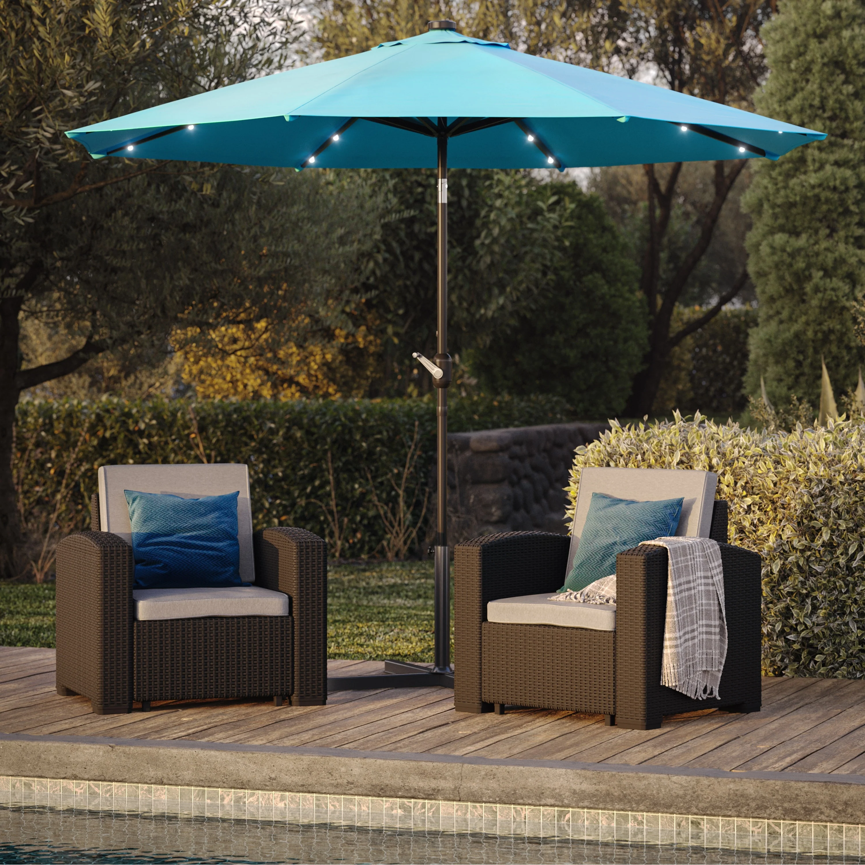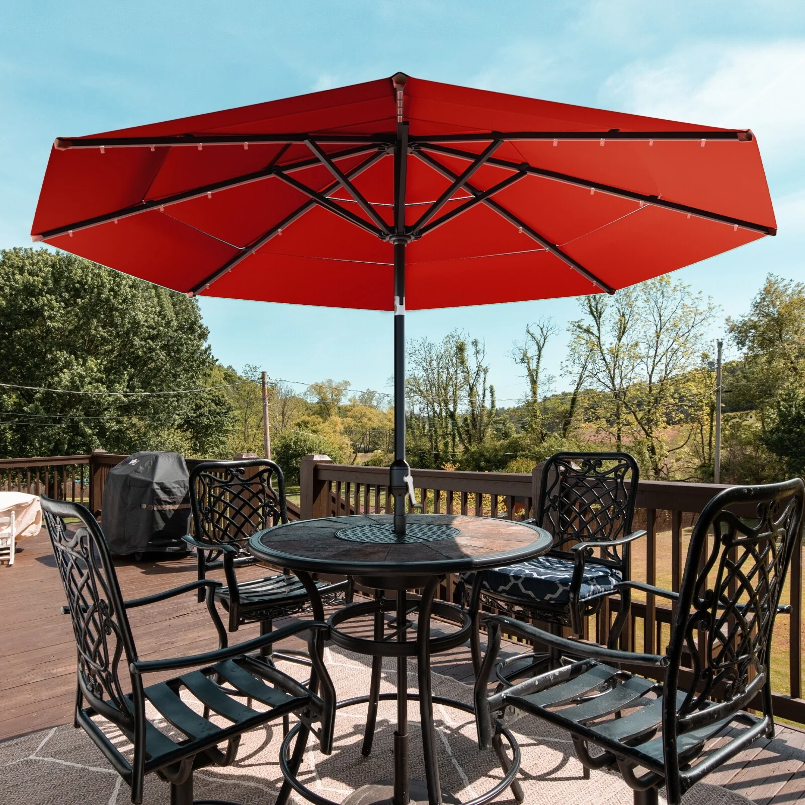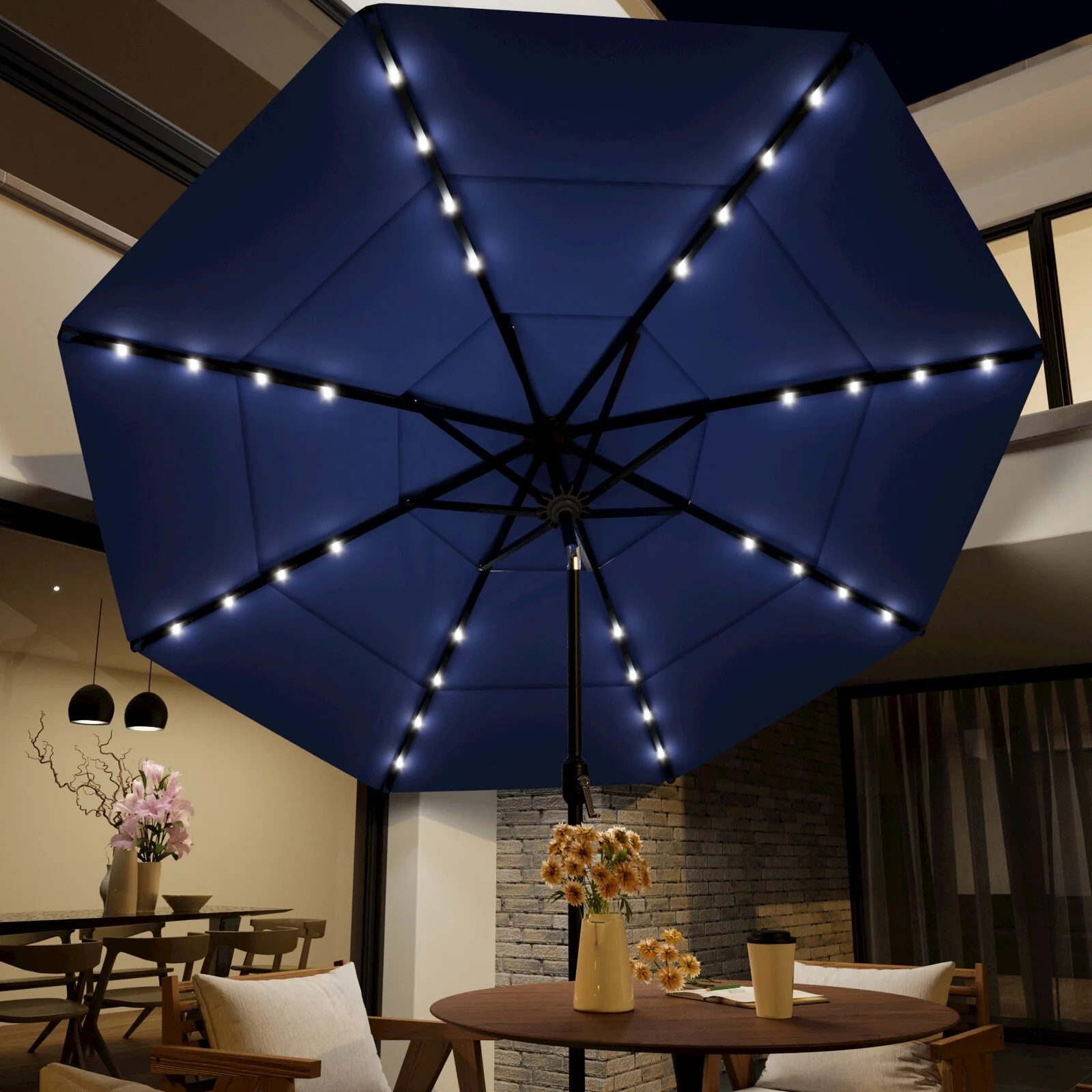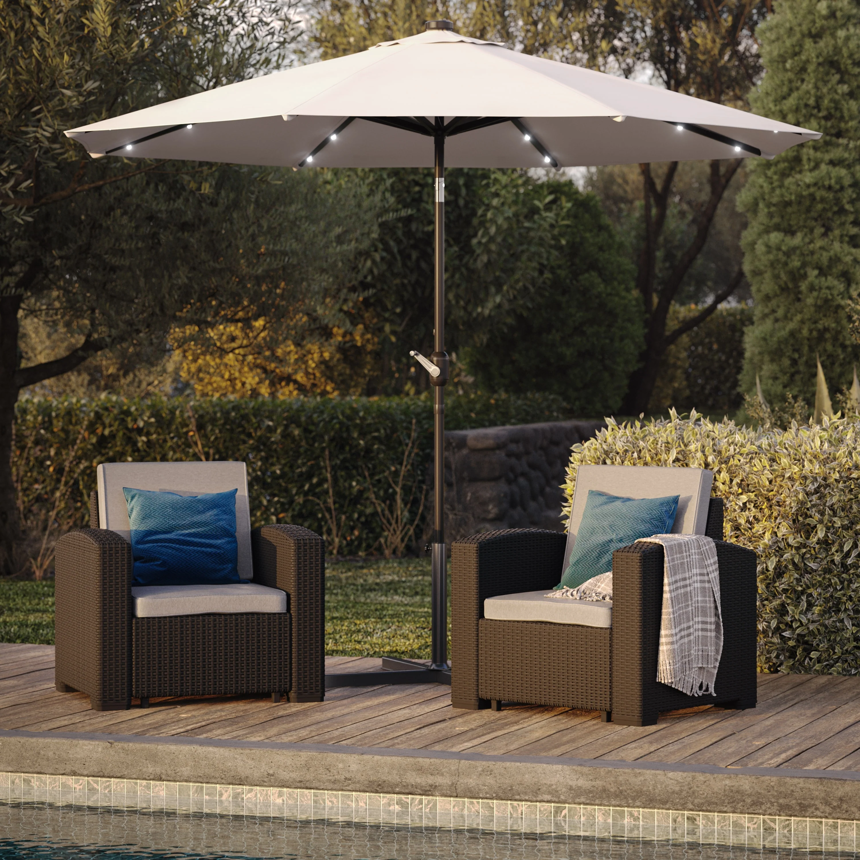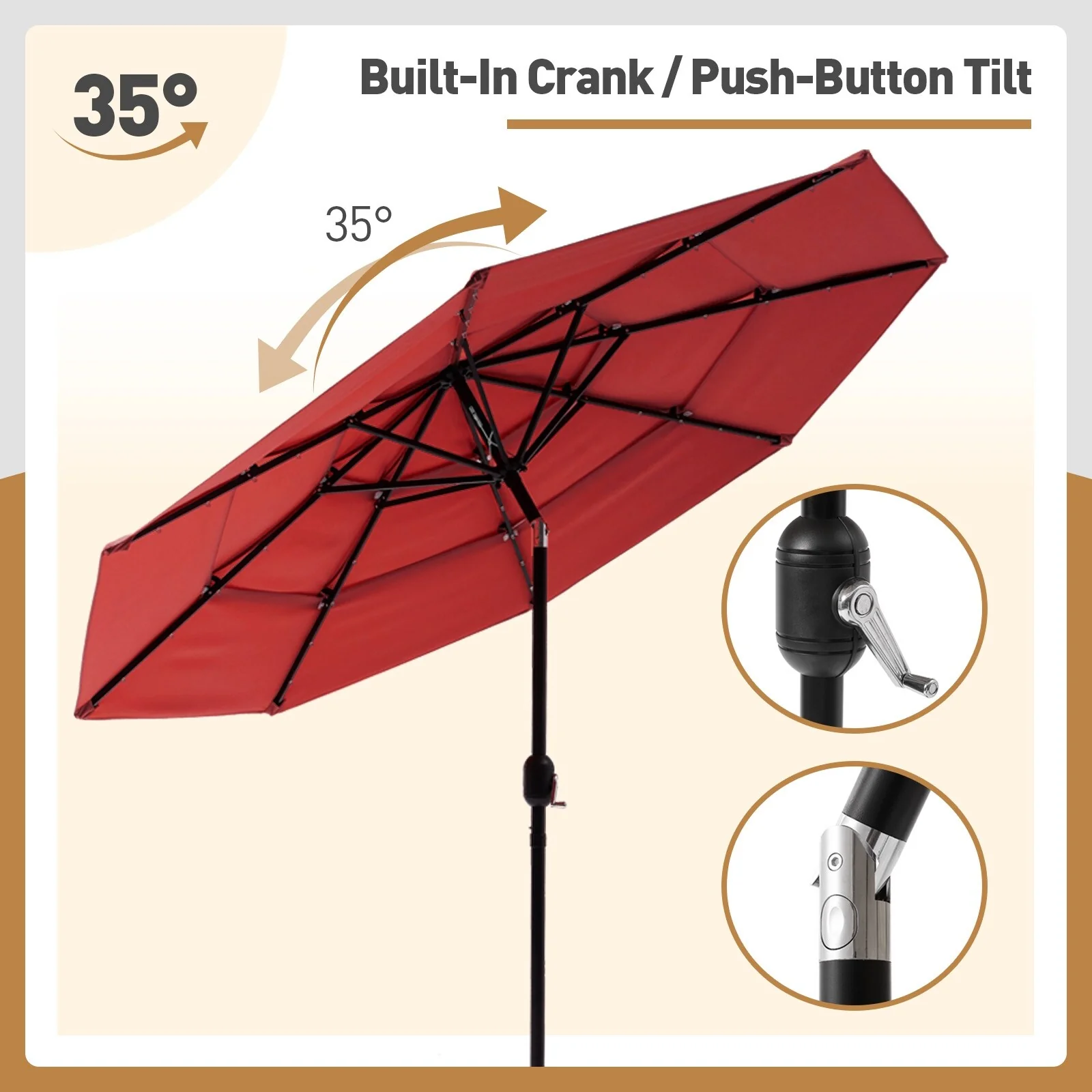 CorLiving 9ft Patio Umbrella with Lights, Tilting
