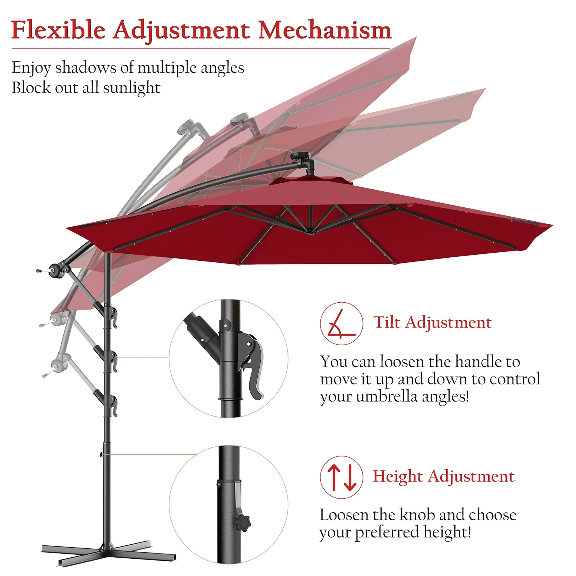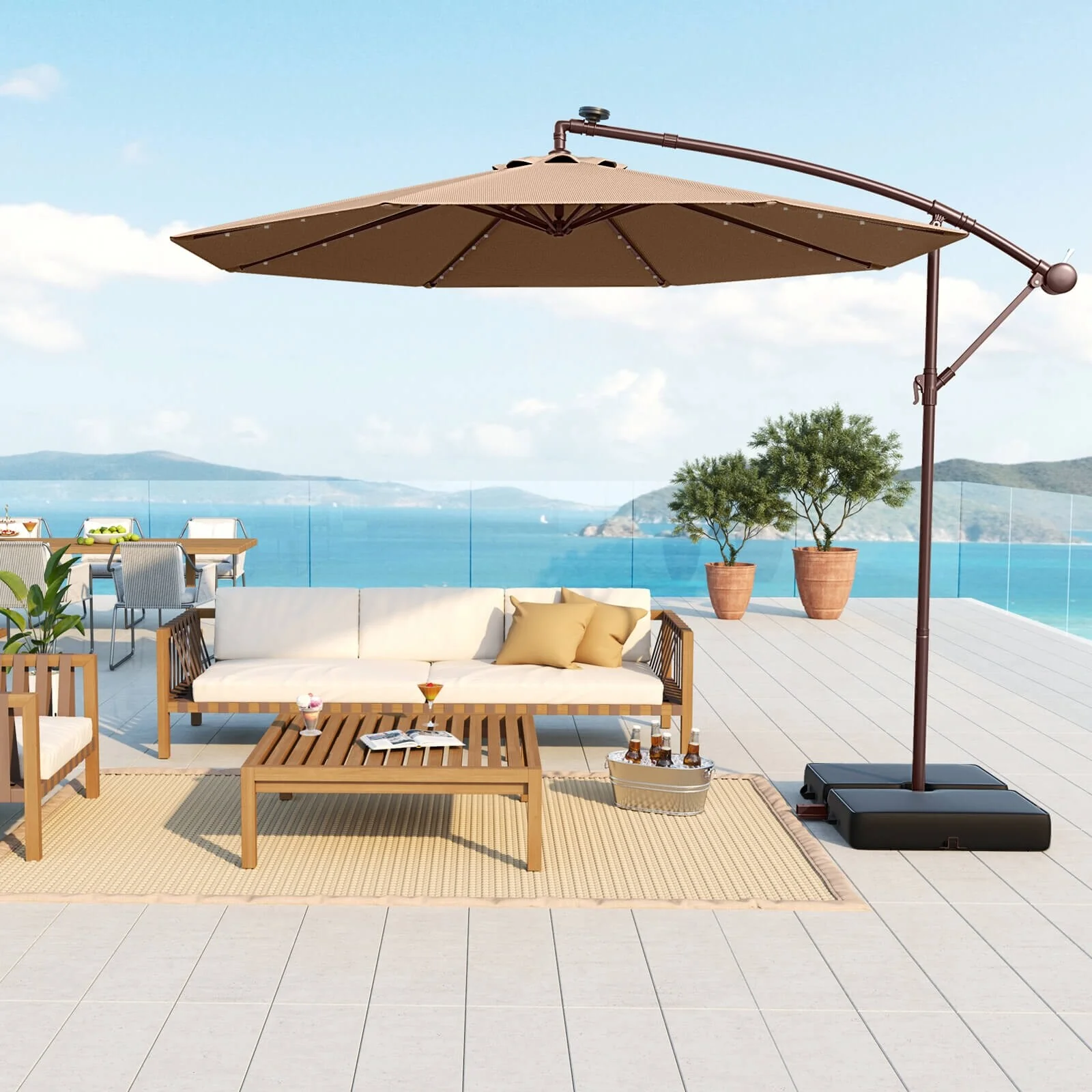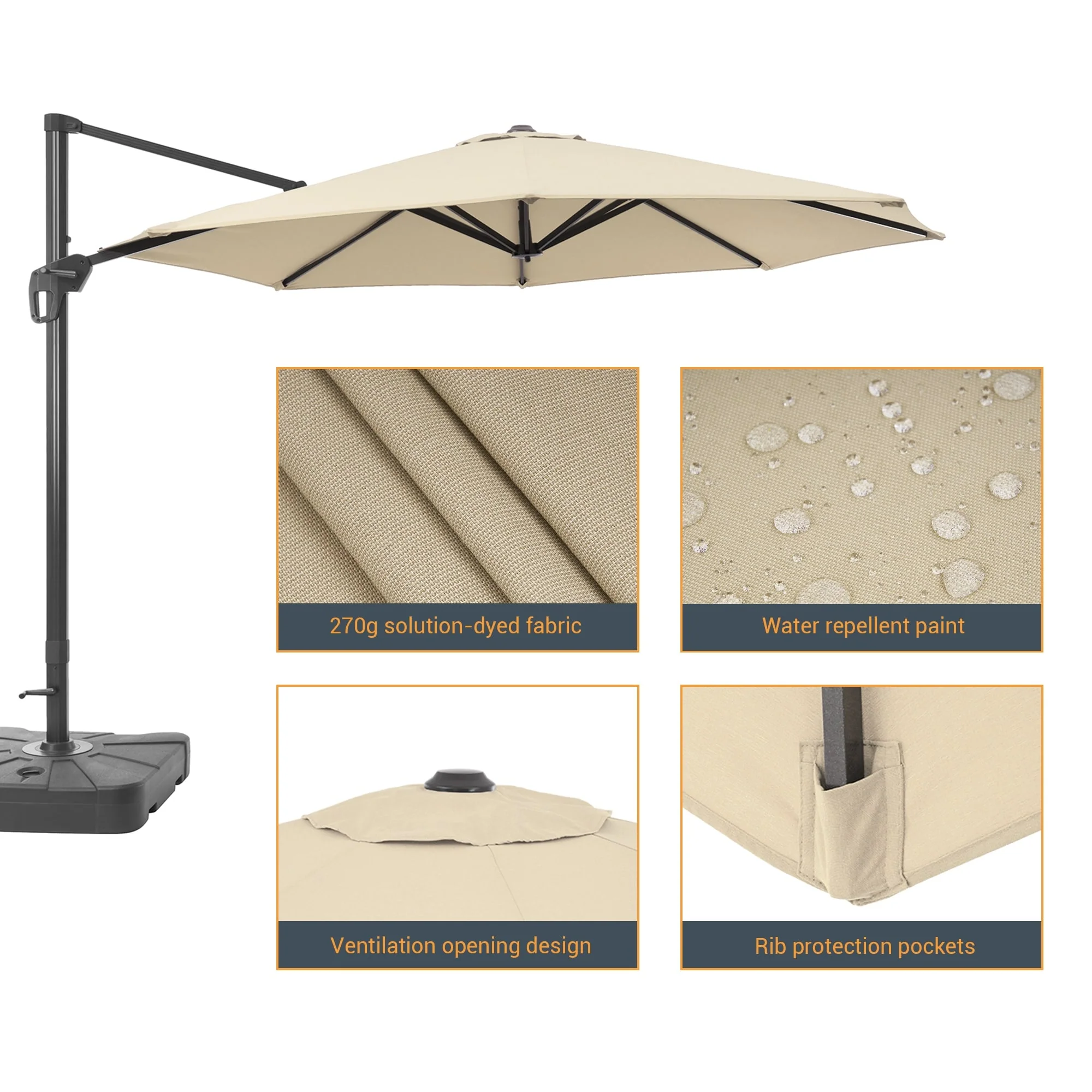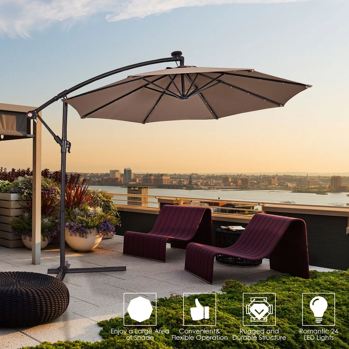 Patio Solar 10-foot Umbrella LED Sun Shade Offset with Cross Base