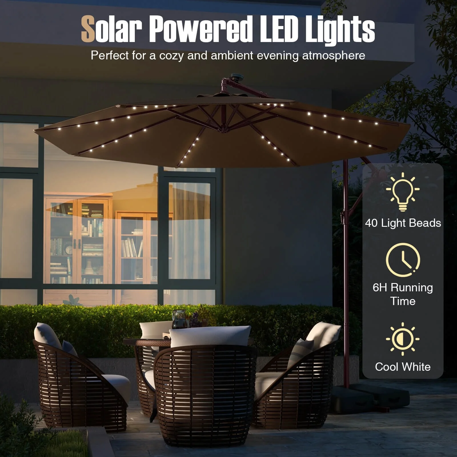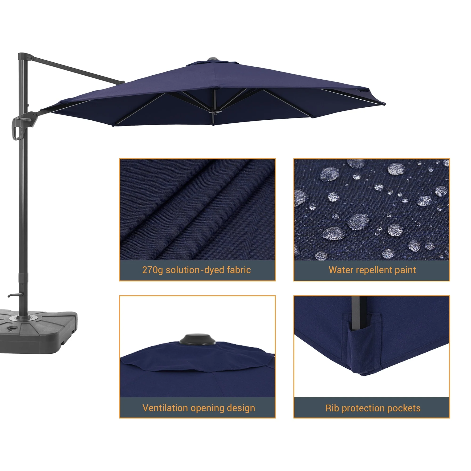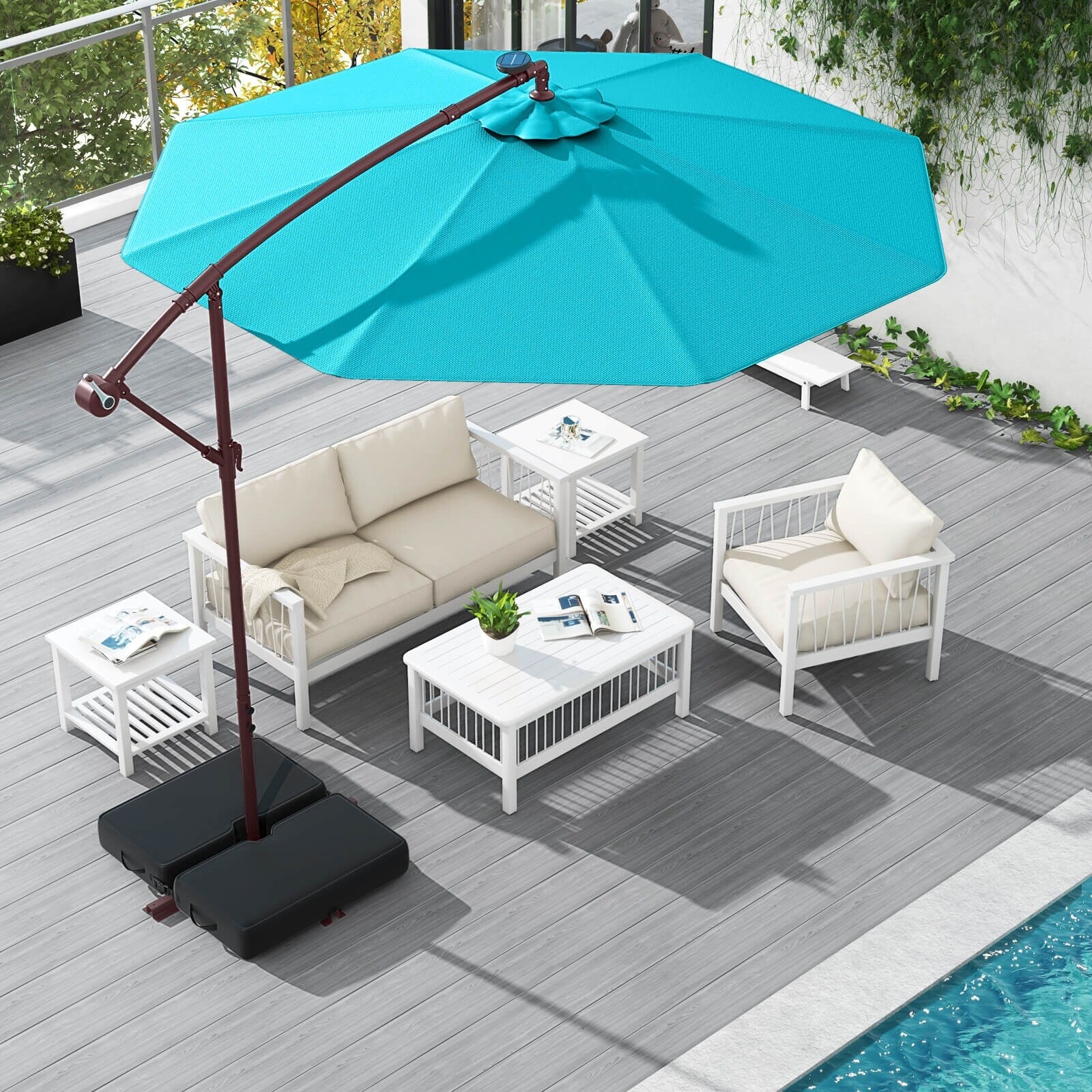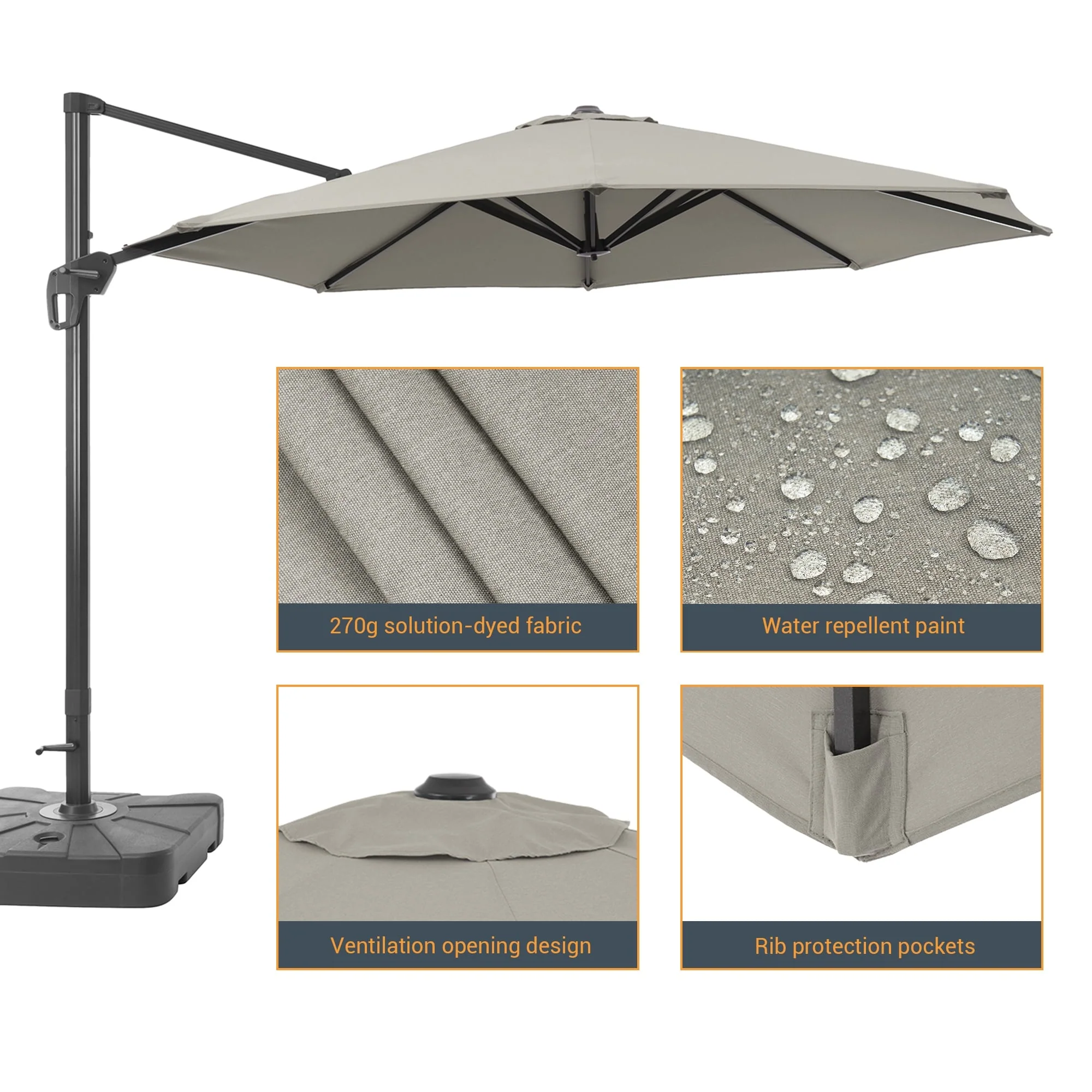 Patio Solar 10-foot Umbrella LED Sun Shade Offset with Cross Base
