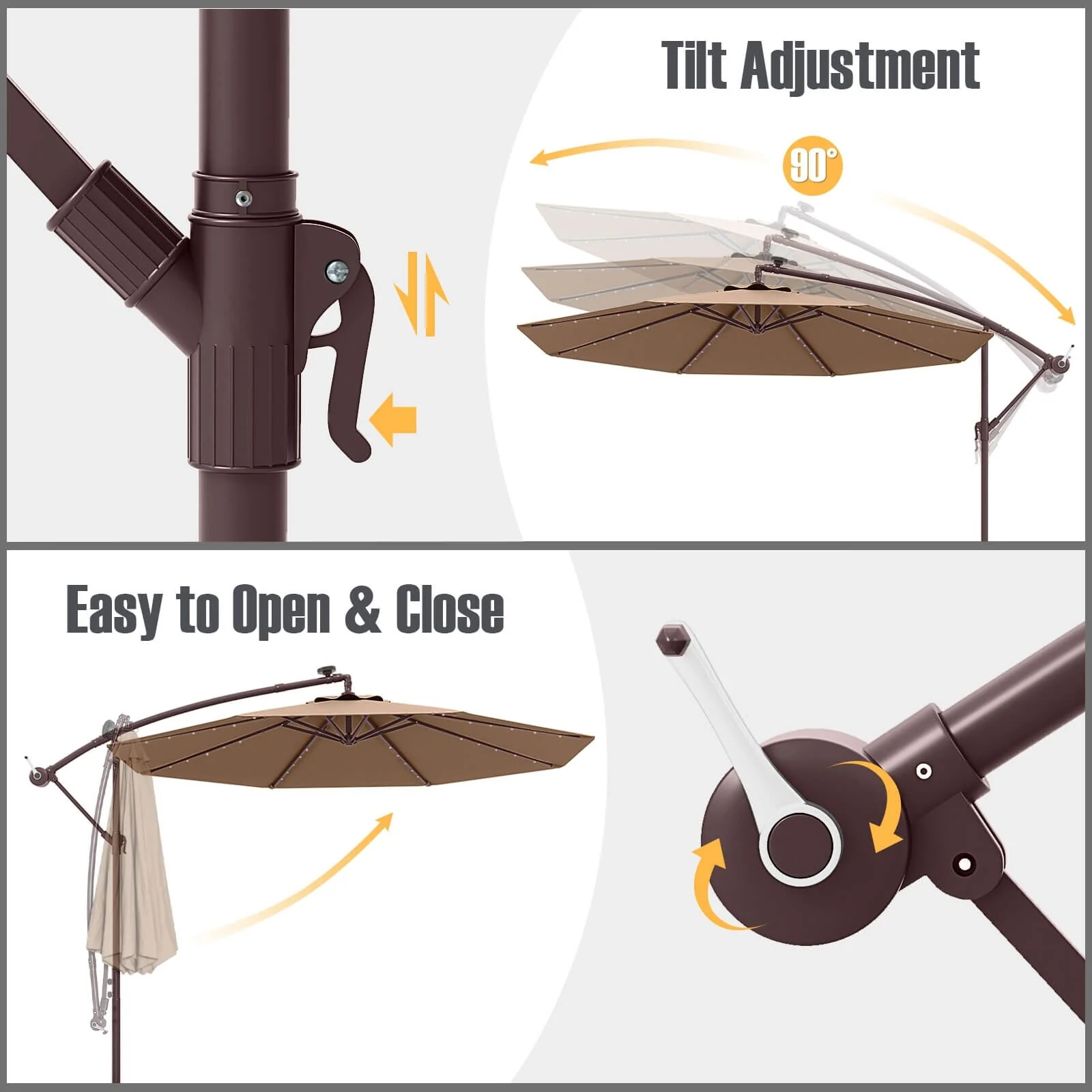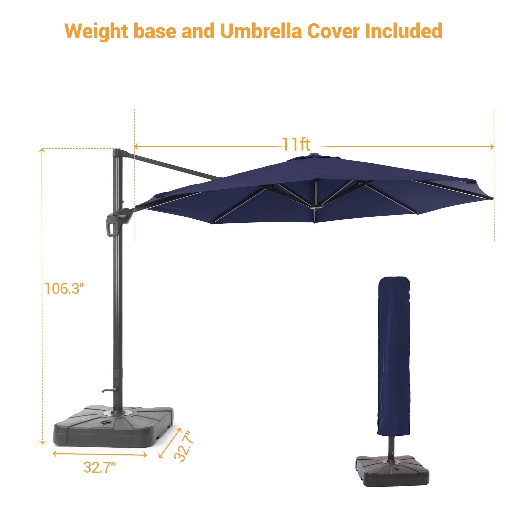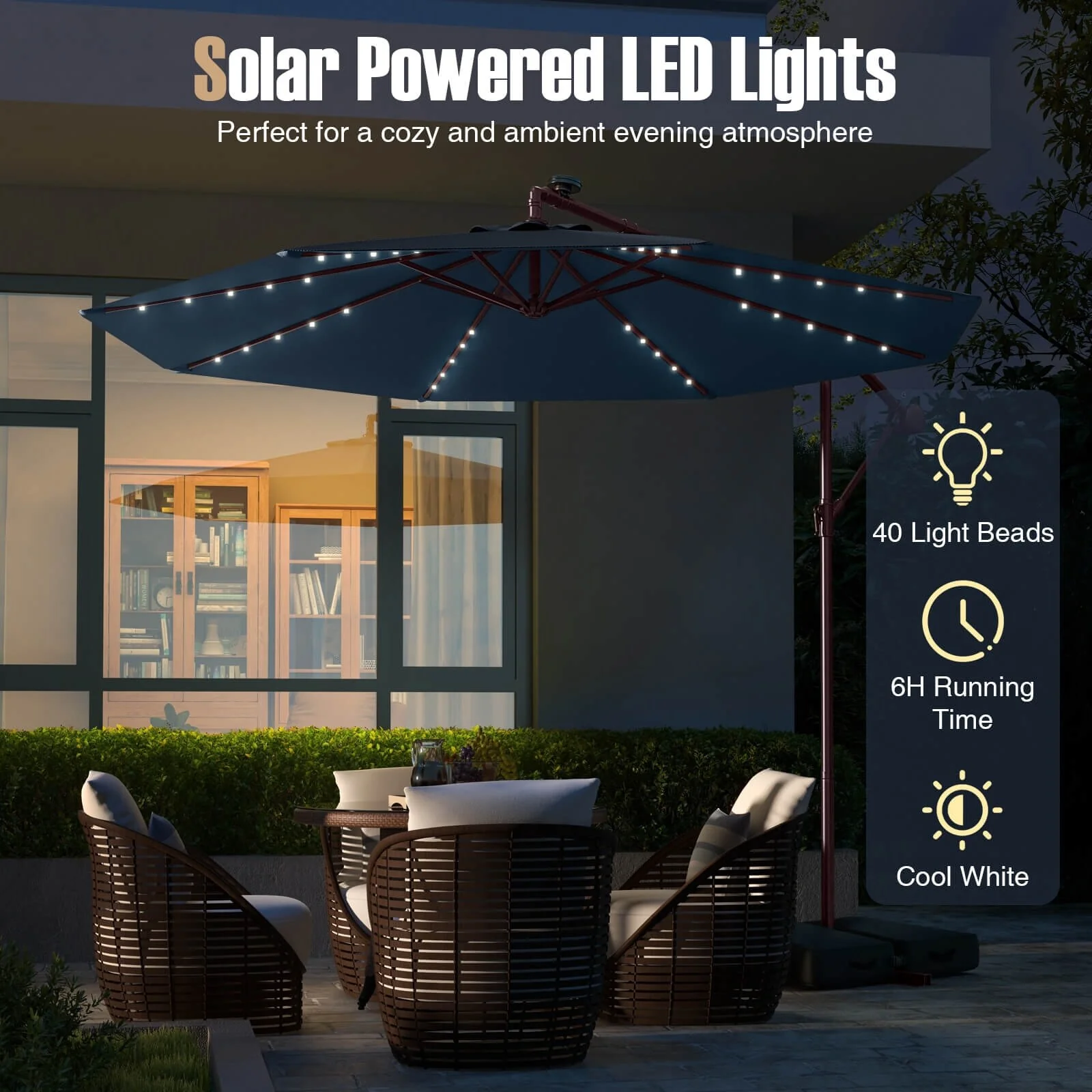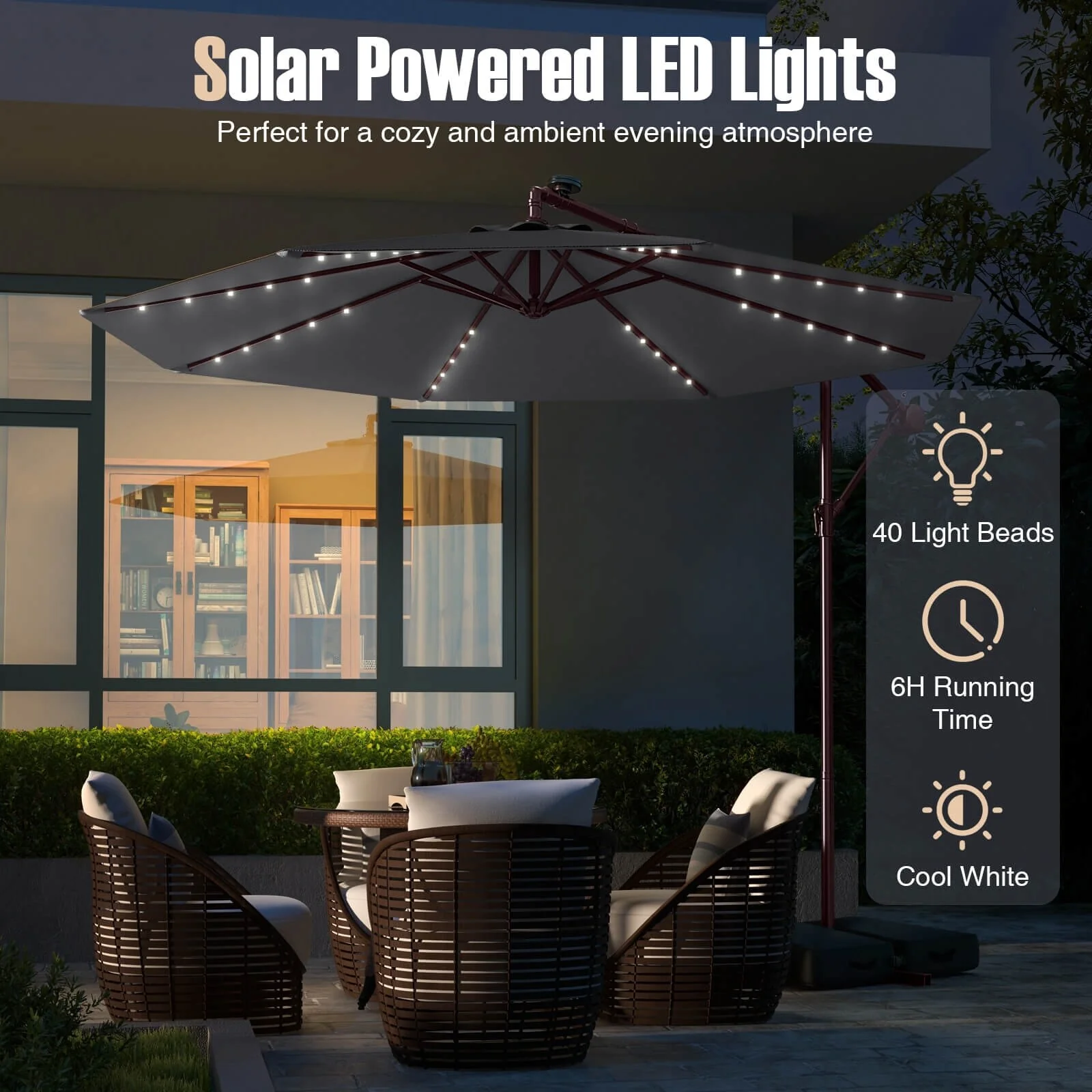 Patio Solar 10-foot Umbrella LED Sun Shade Offset with Cross Base