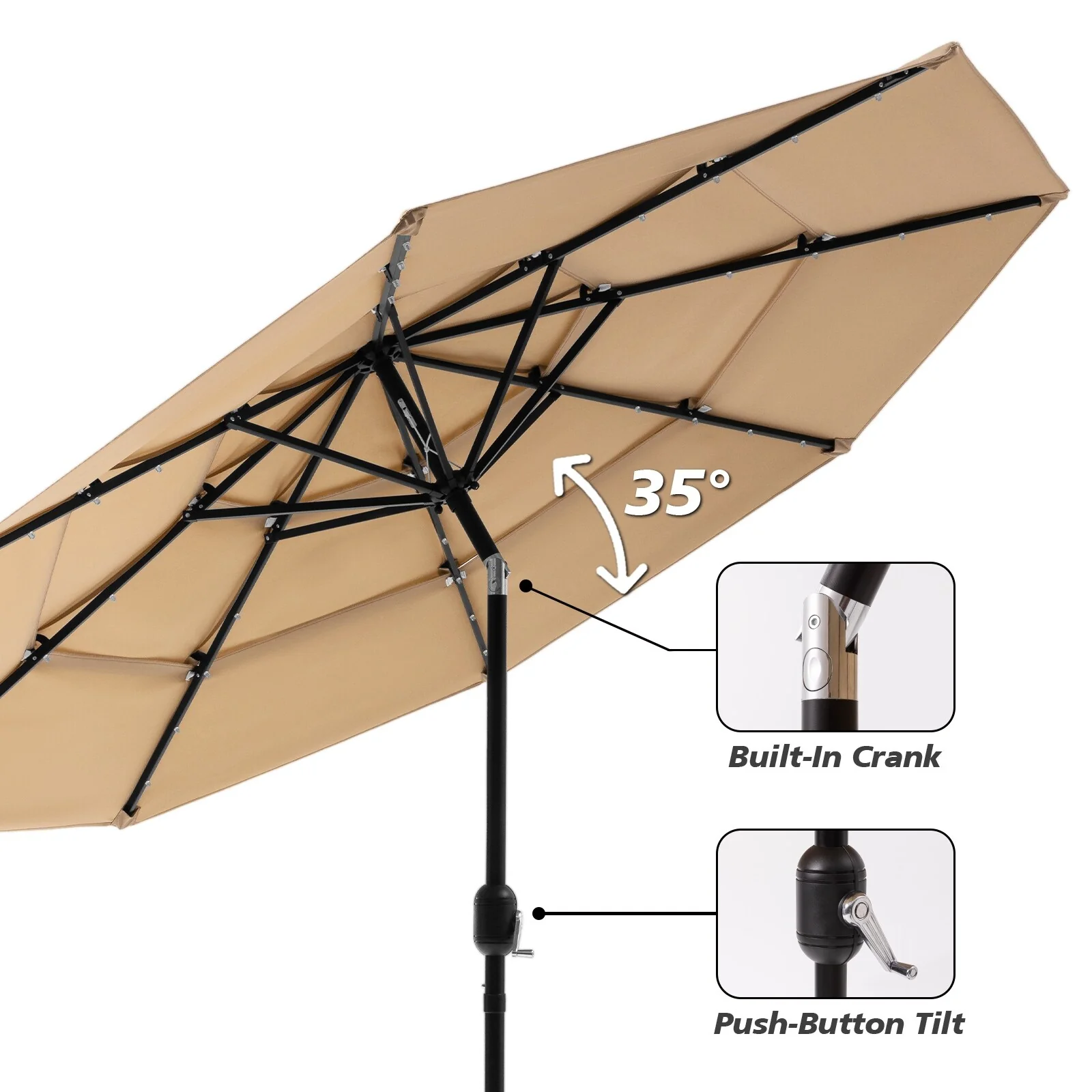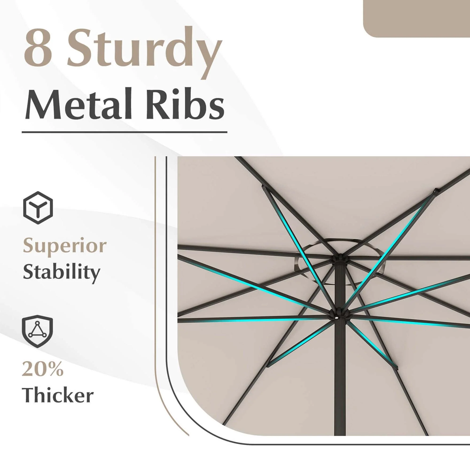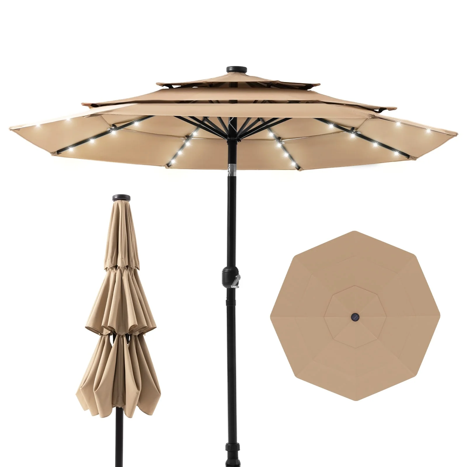 Ainfox 10ft Patio Umbrella with Lights without Base Outdoor Solar Umbrella