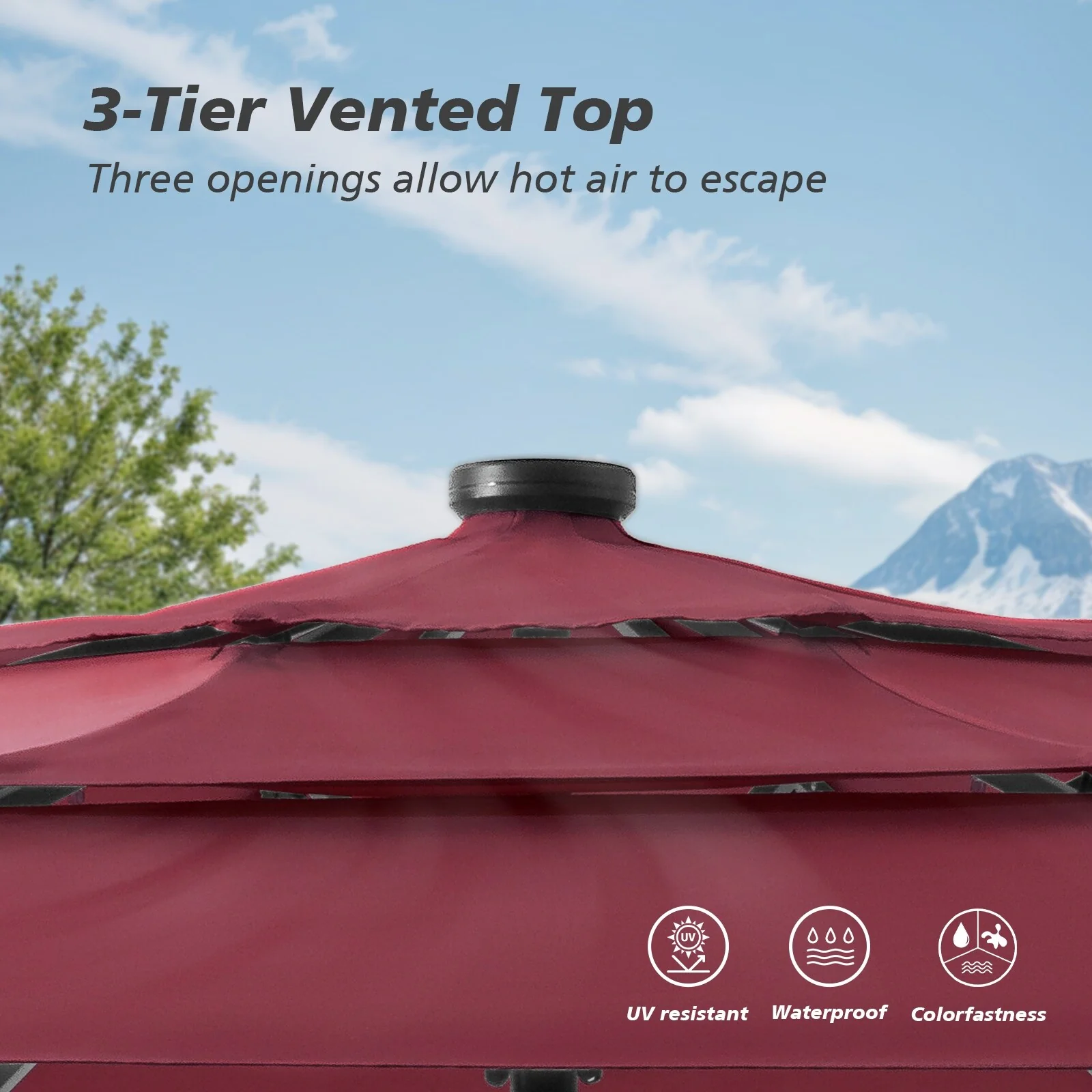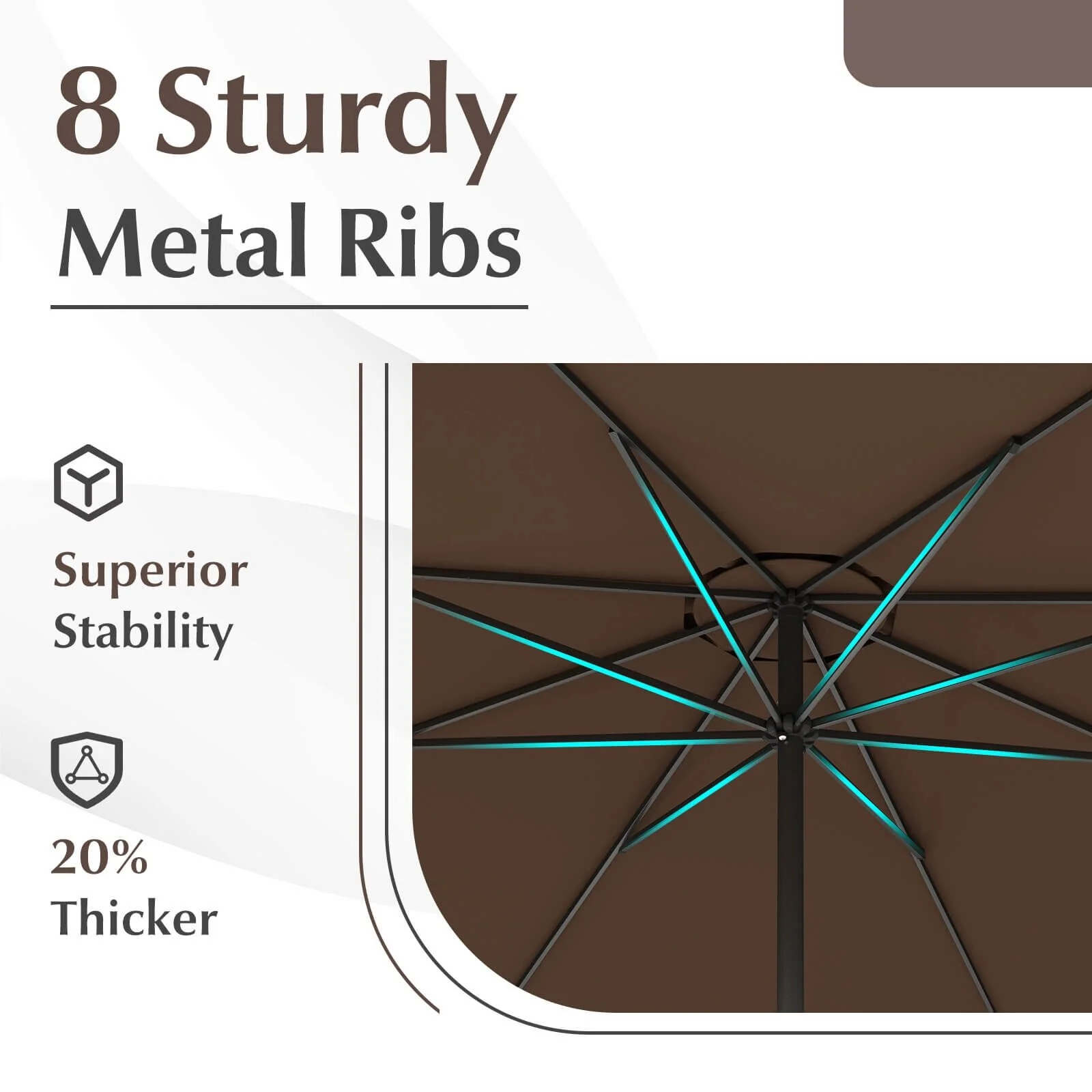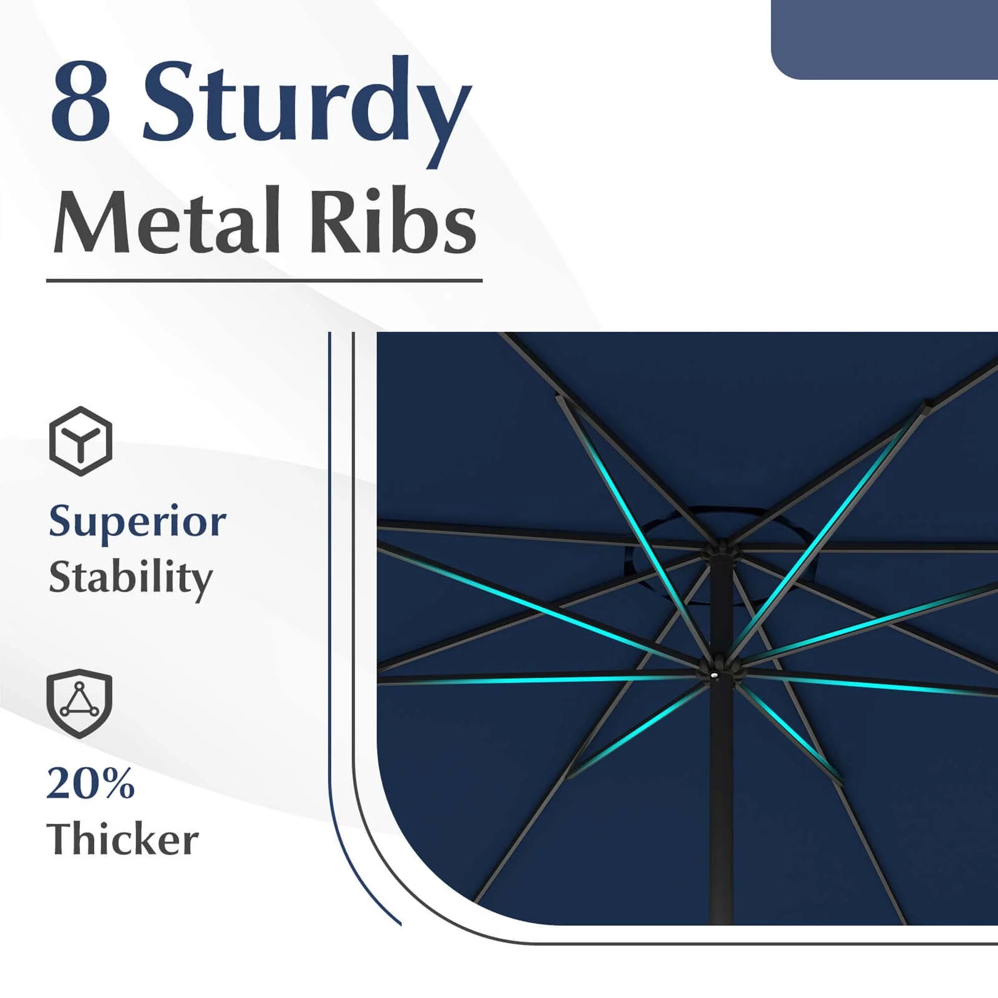 Ainfox 10ft Patio Umbrella with Lights without Base Outdoor Solar Umbrella