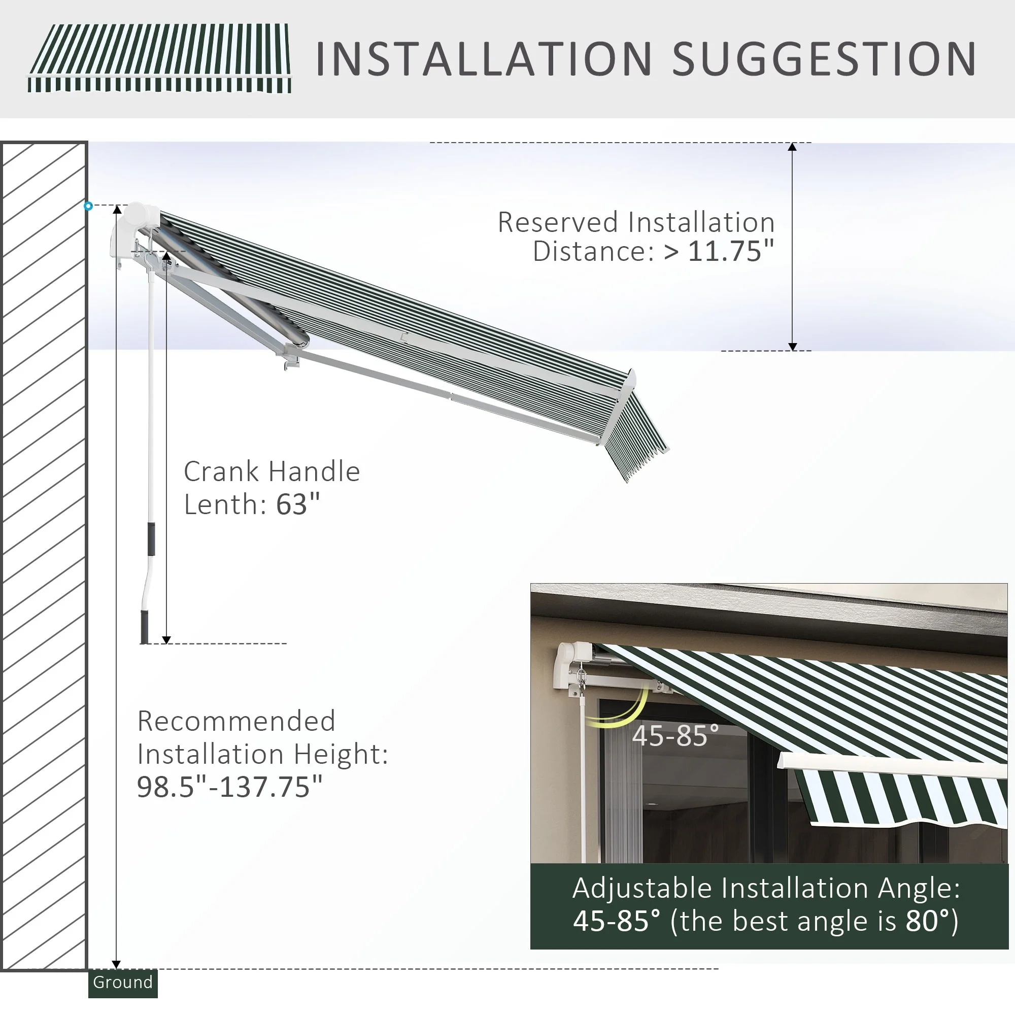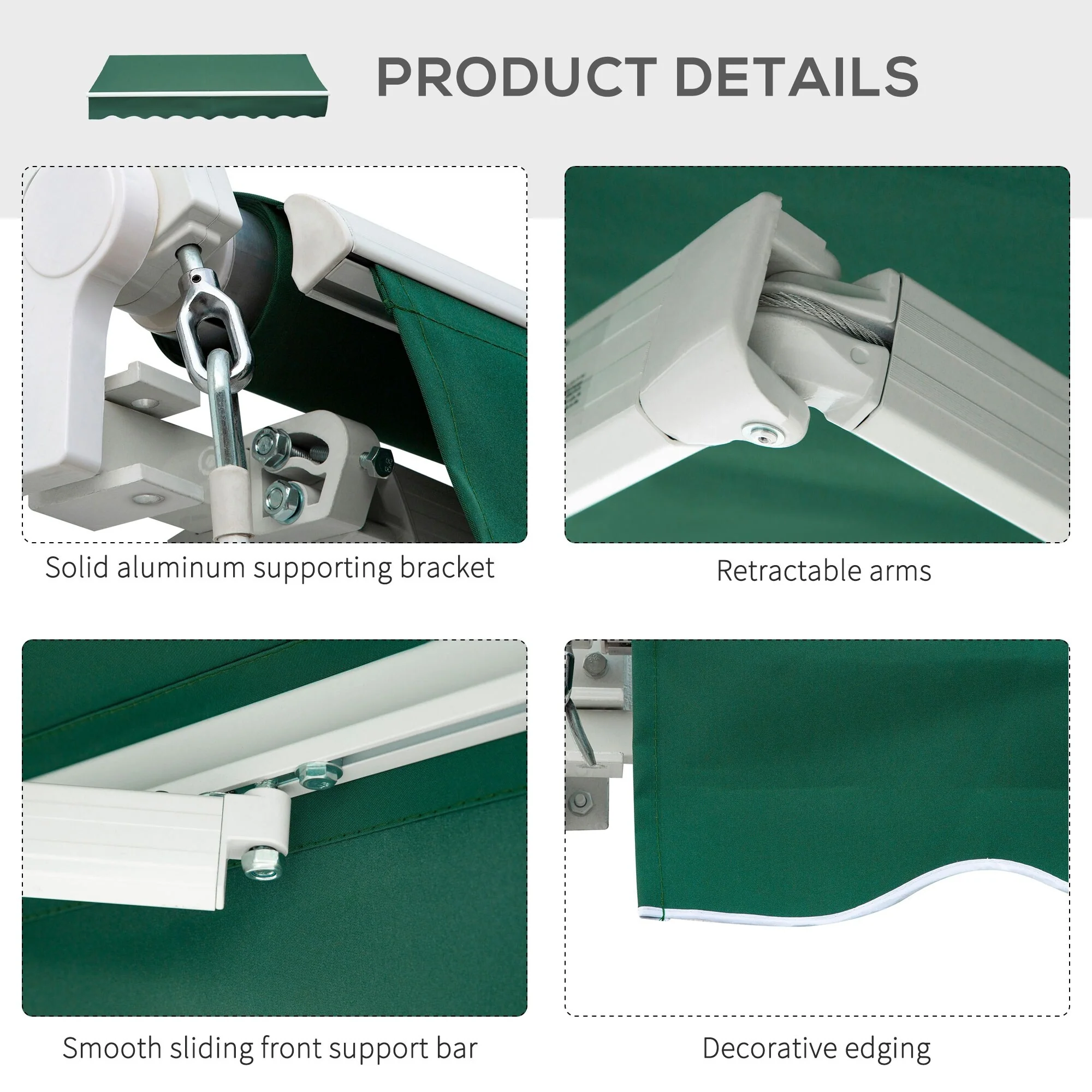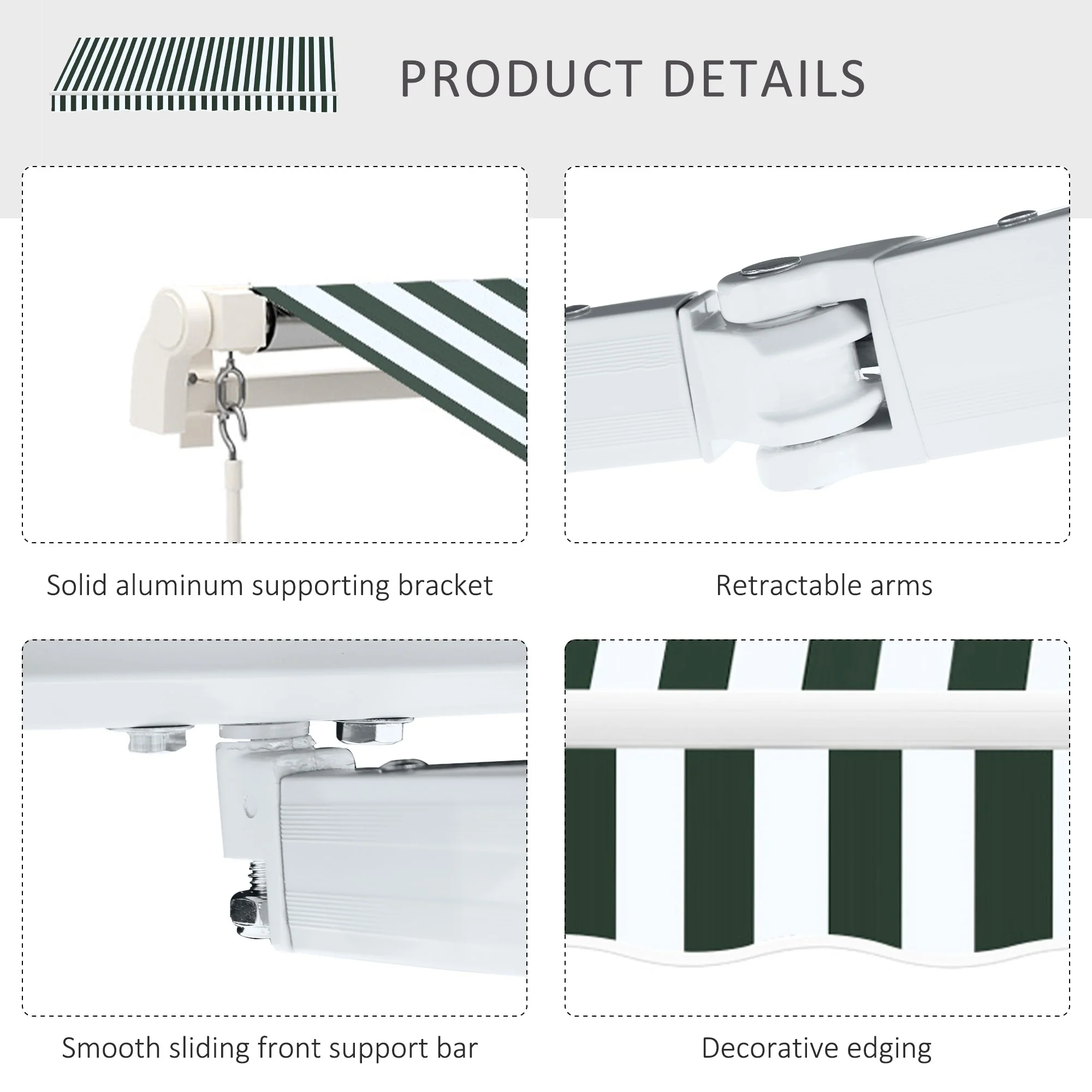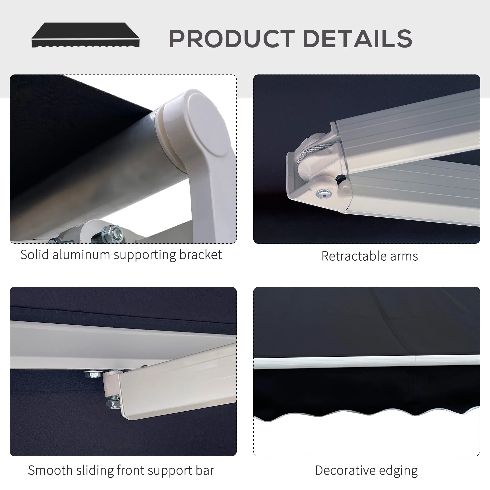 10' x 8' Retractable Sun Shade Patio/Window Awning - Polyester Fabric