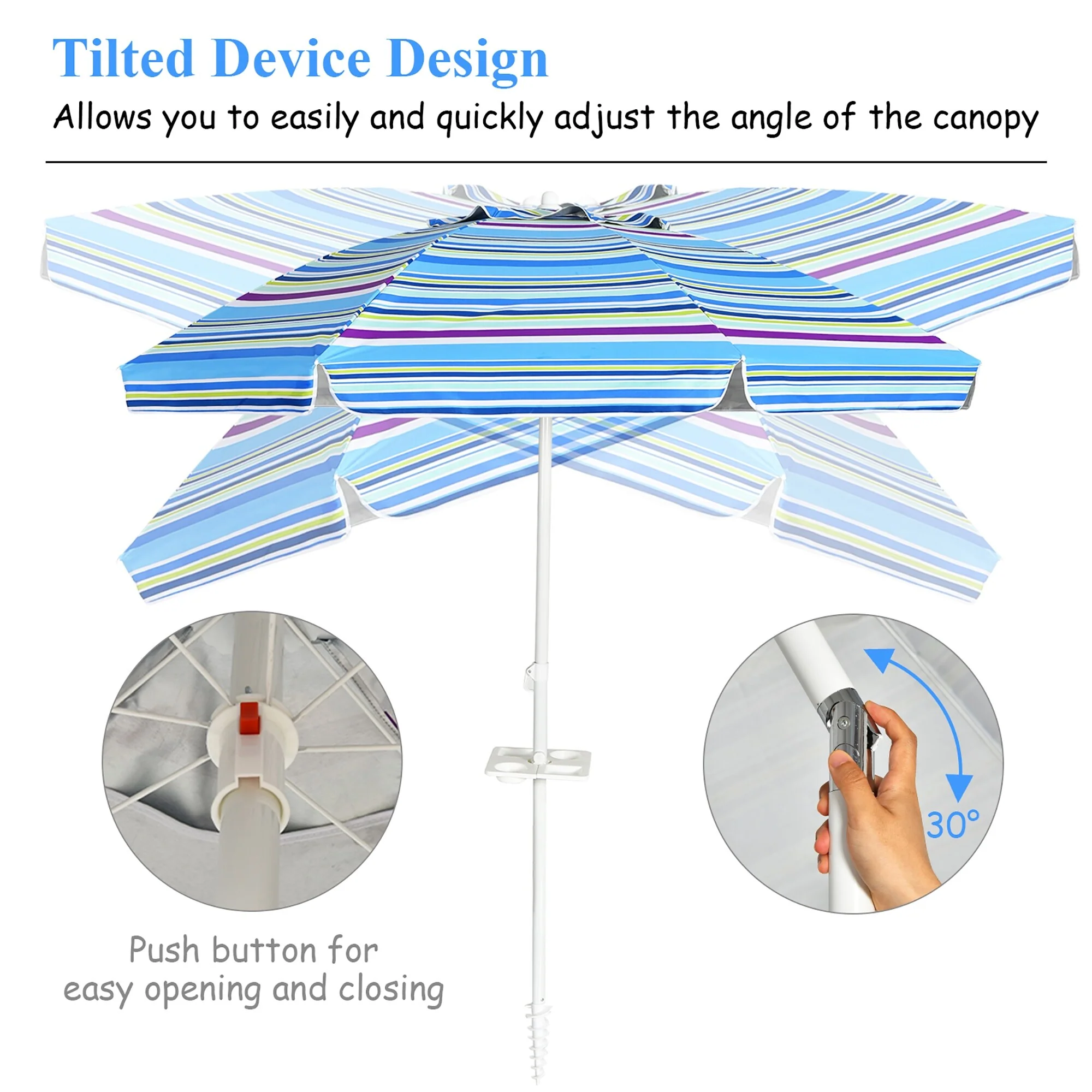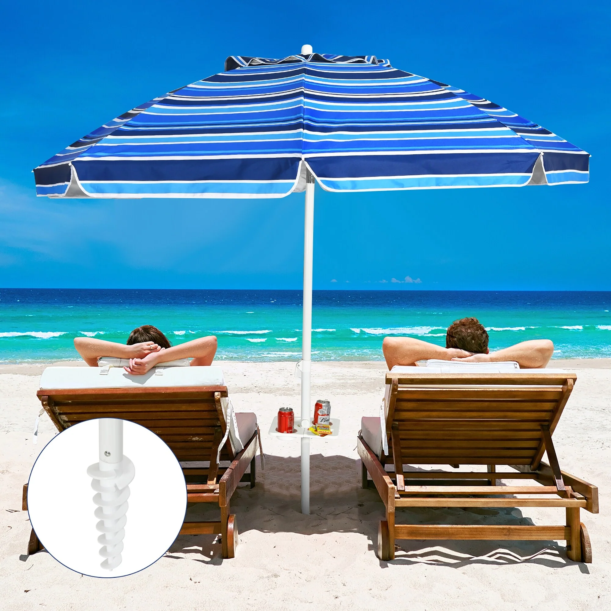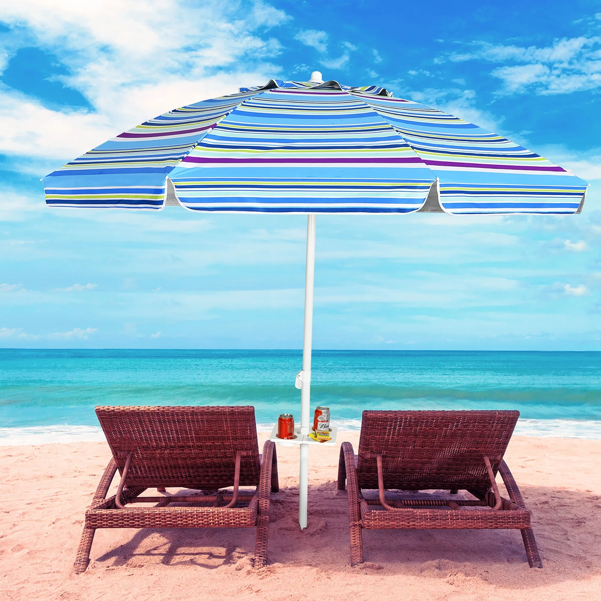 Costway 7.2 FT Portable Beach Umbrella Tilt Sand Anchor Cup Holder - 7.2' x 7.2'