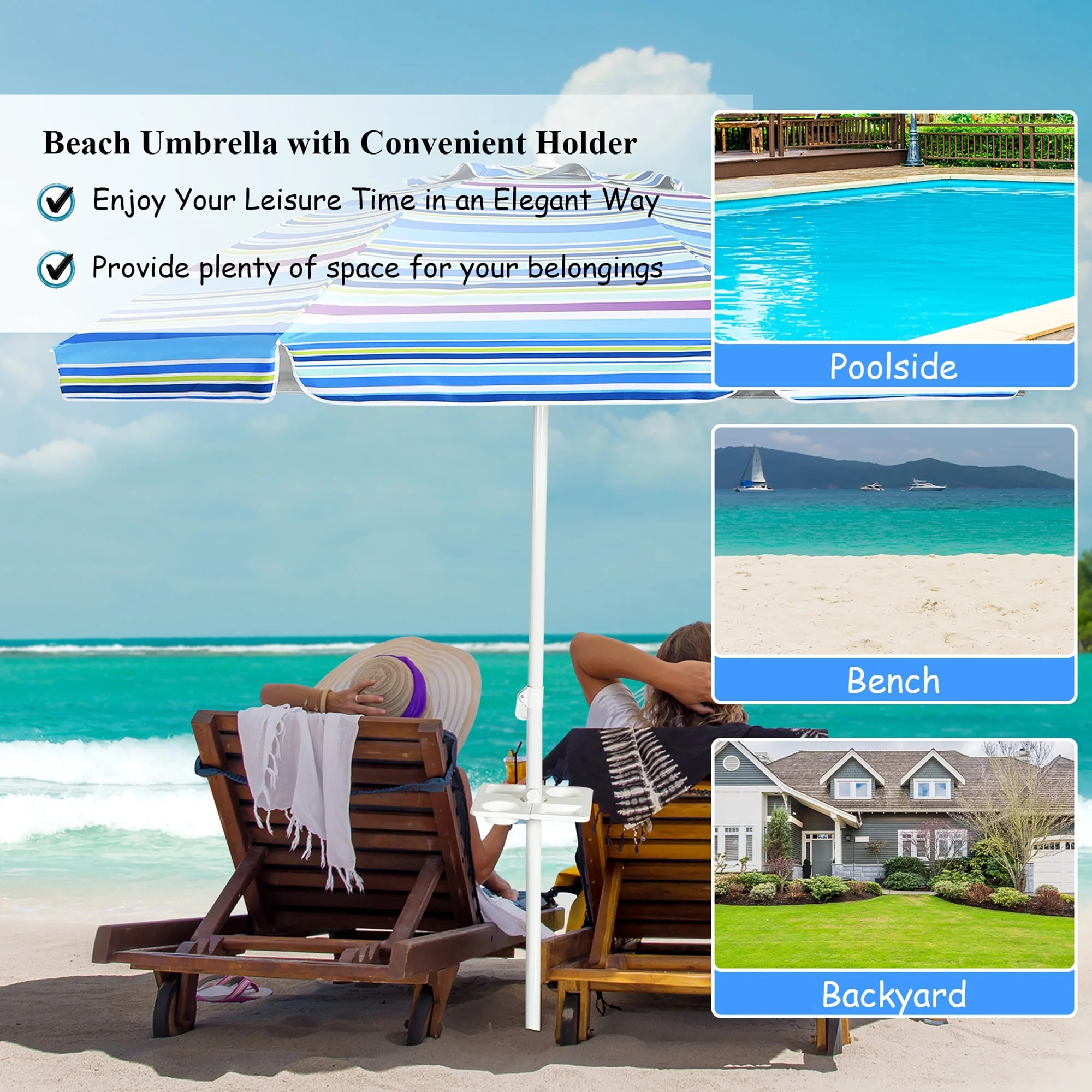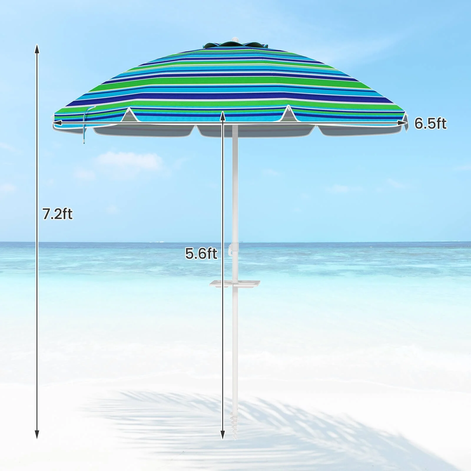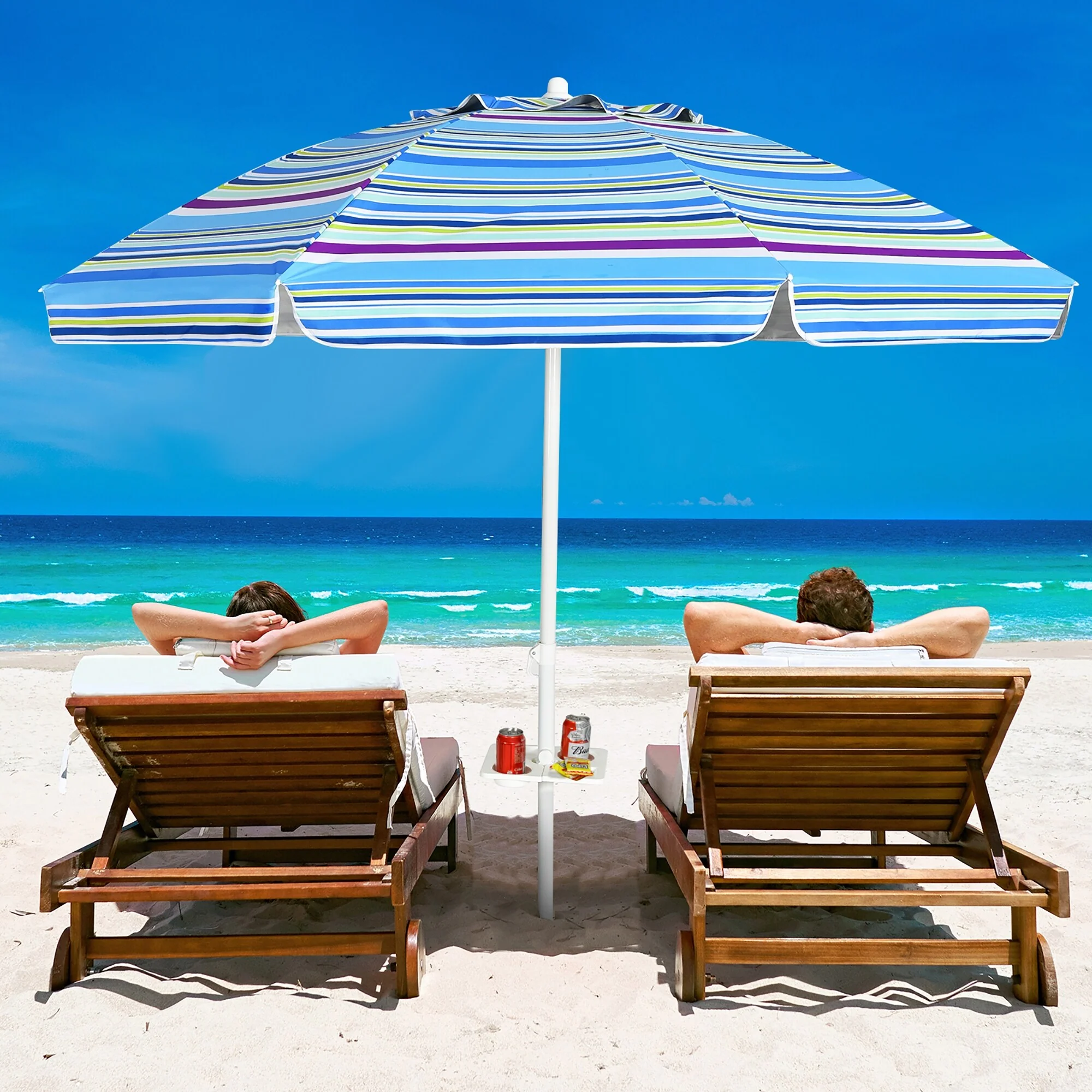 Costway 7.2 FT Portable Beach Umbrella Tilt Sand Anchor Cup Holder - 7.2' x 7.2'