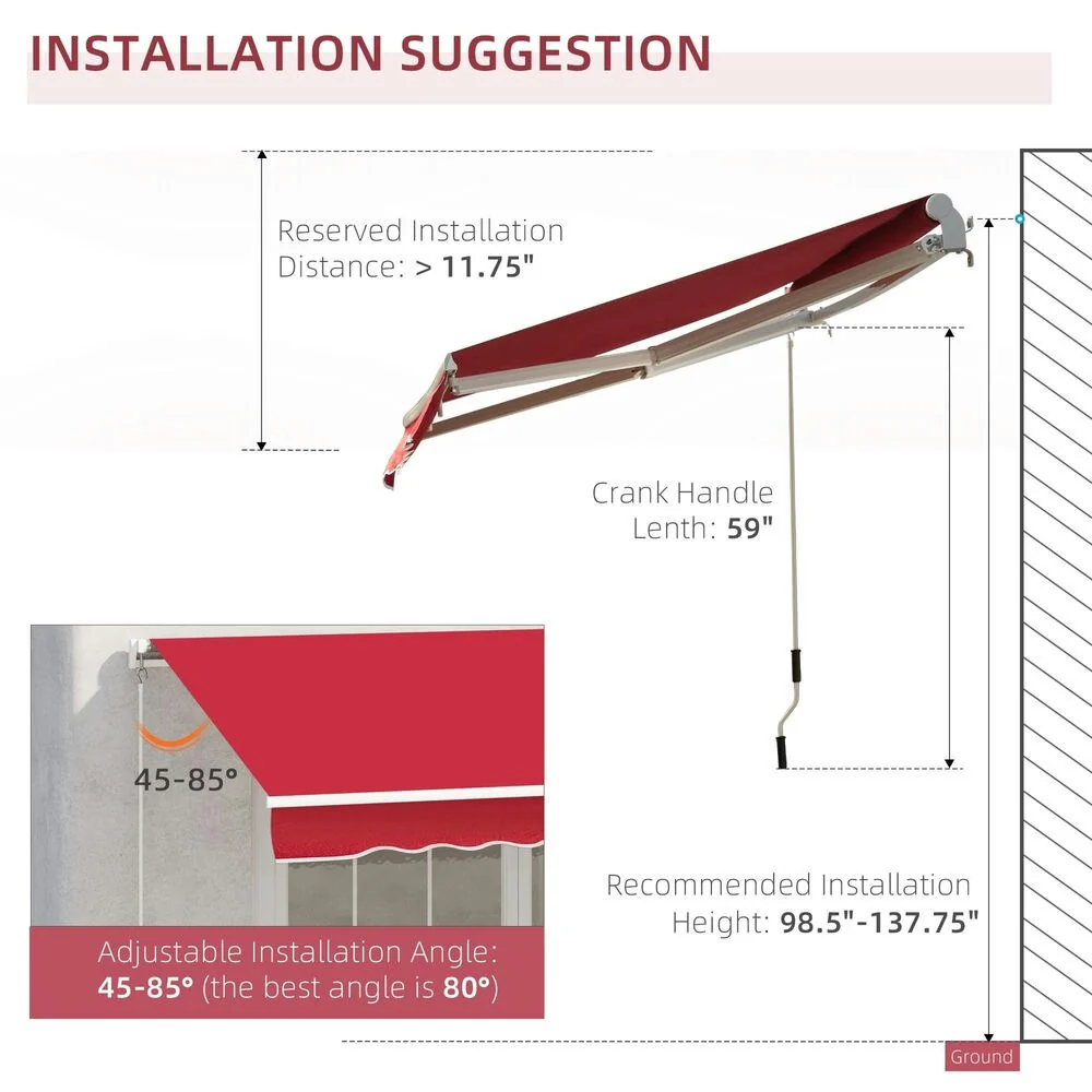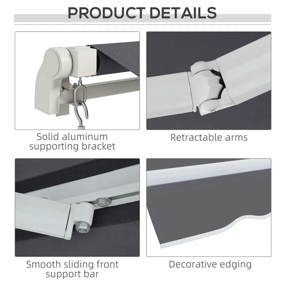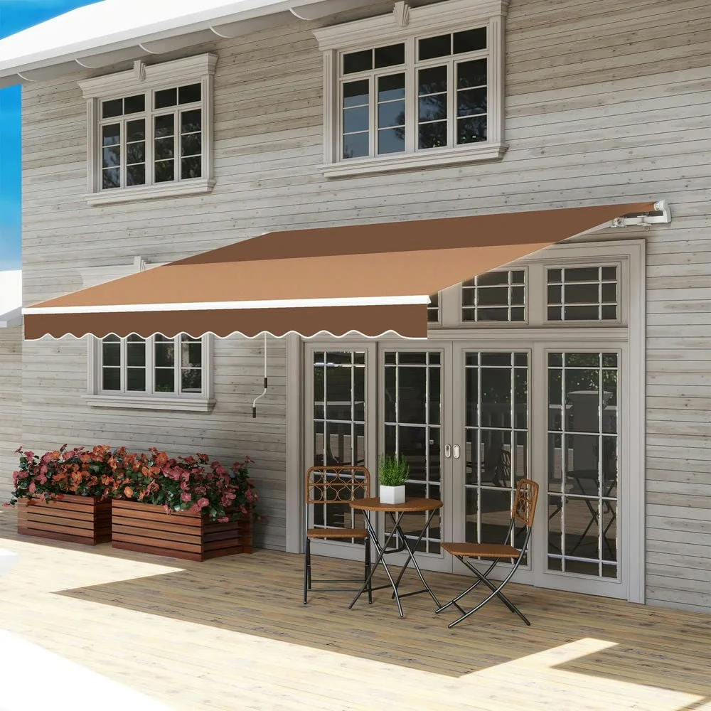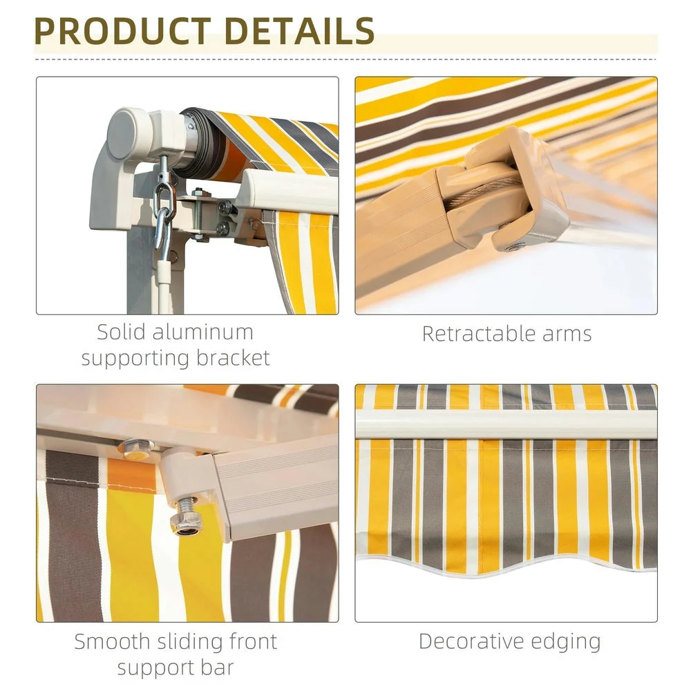 Outsunny 8' x 6.6' Patio Retractable Awning/Manual Exterior Sun Shade Deck Window Cover