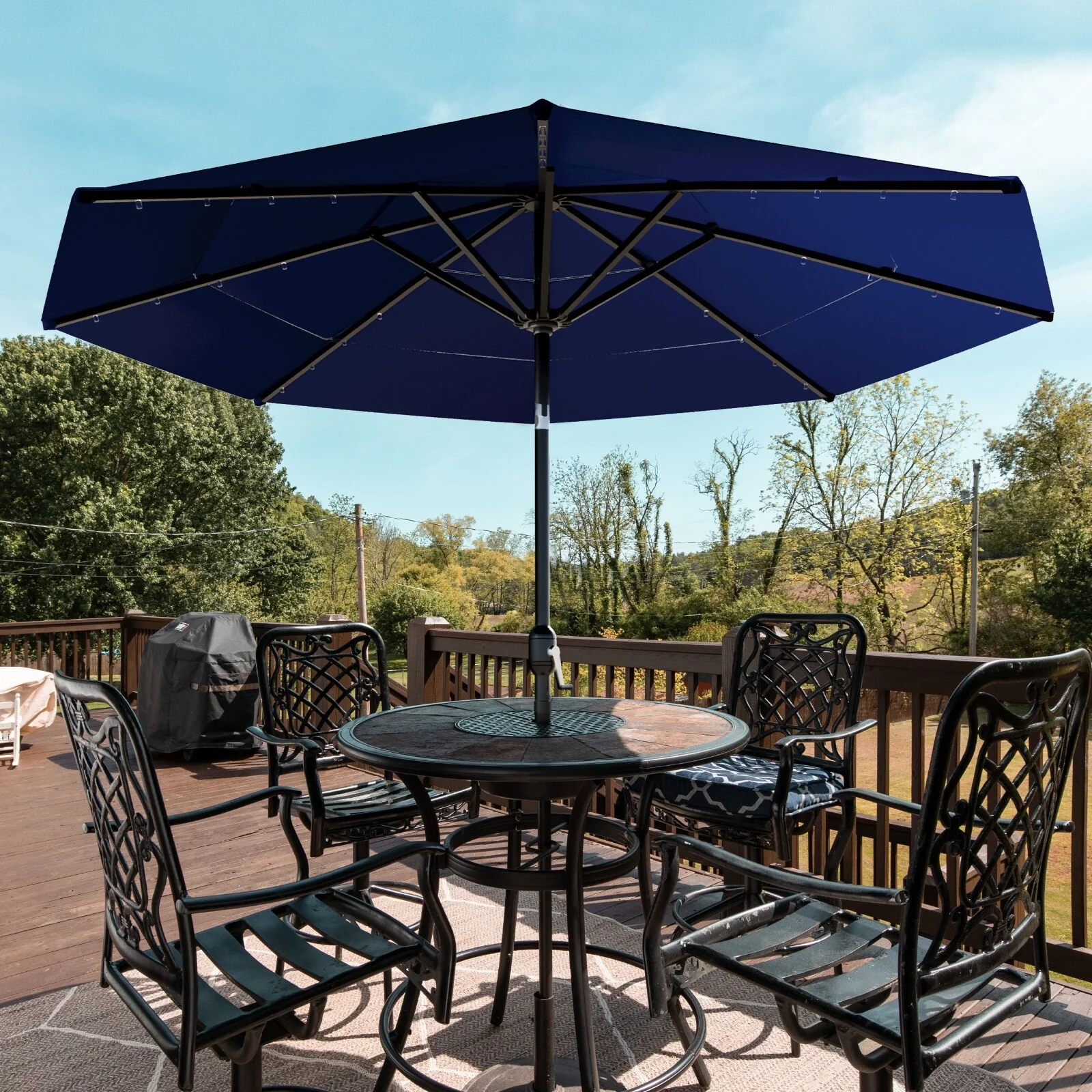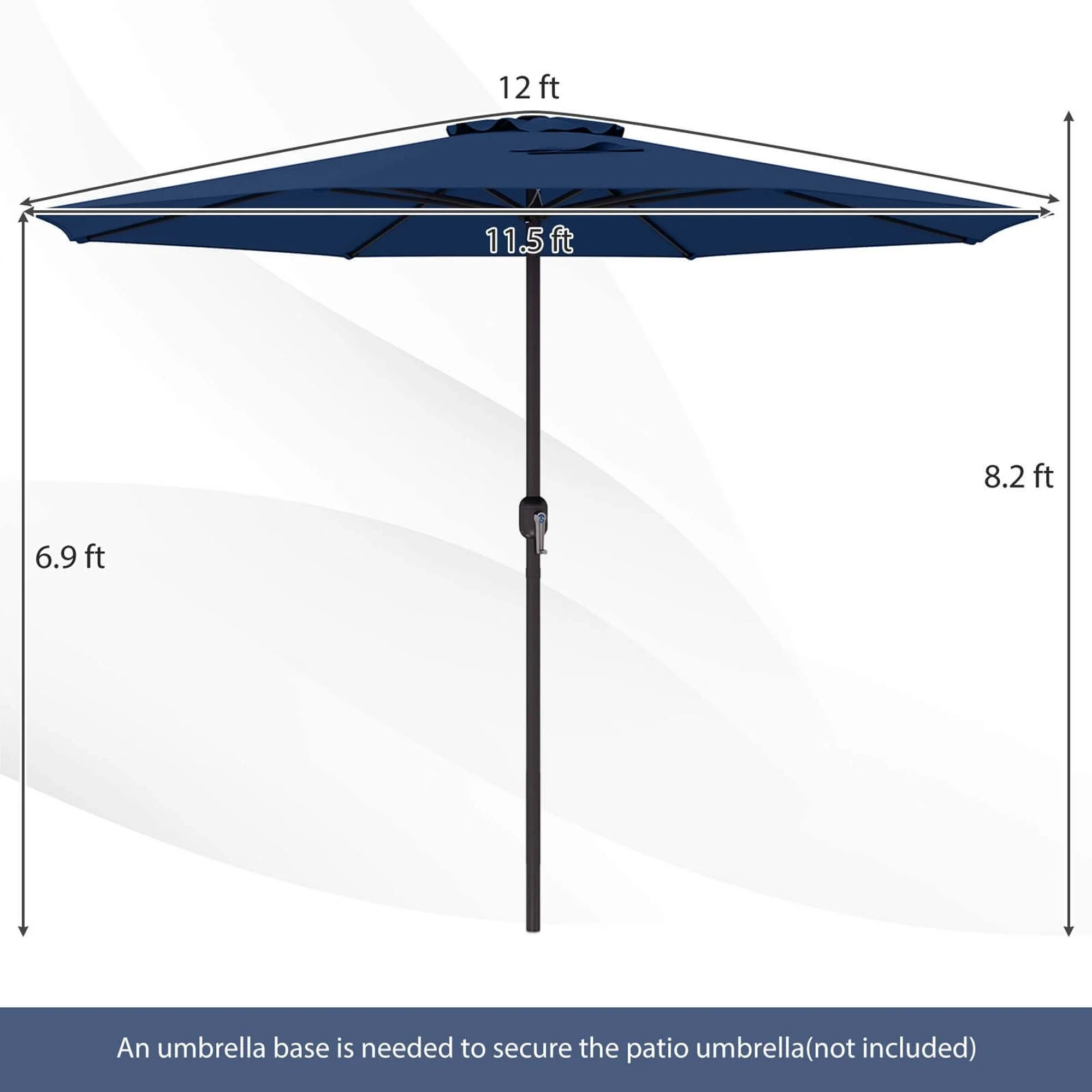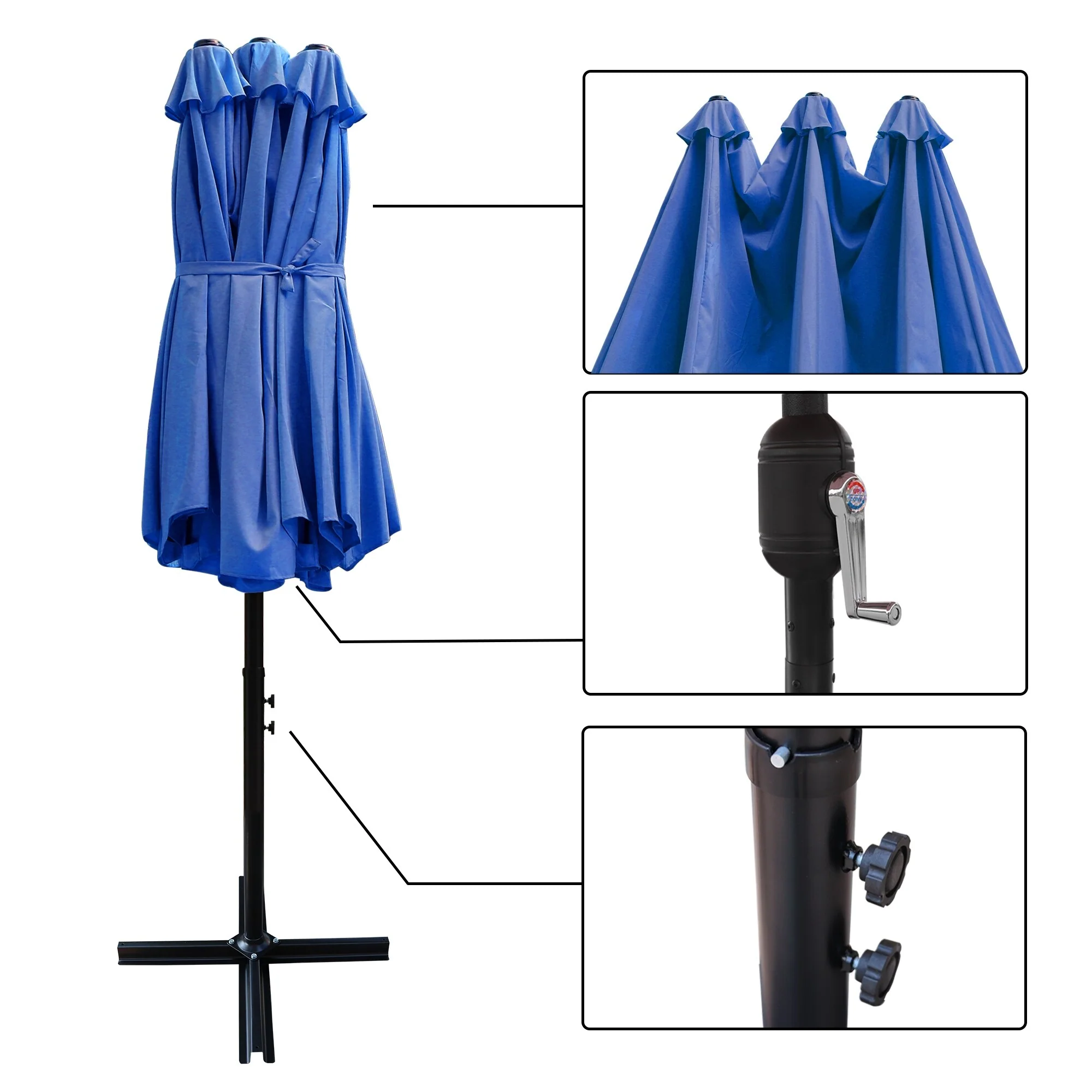 California Umbrella 9' Round Crank Lift Push Button Tilt Black Aluminum Patio Umbrella with Olefin Royal Blue Fabric
