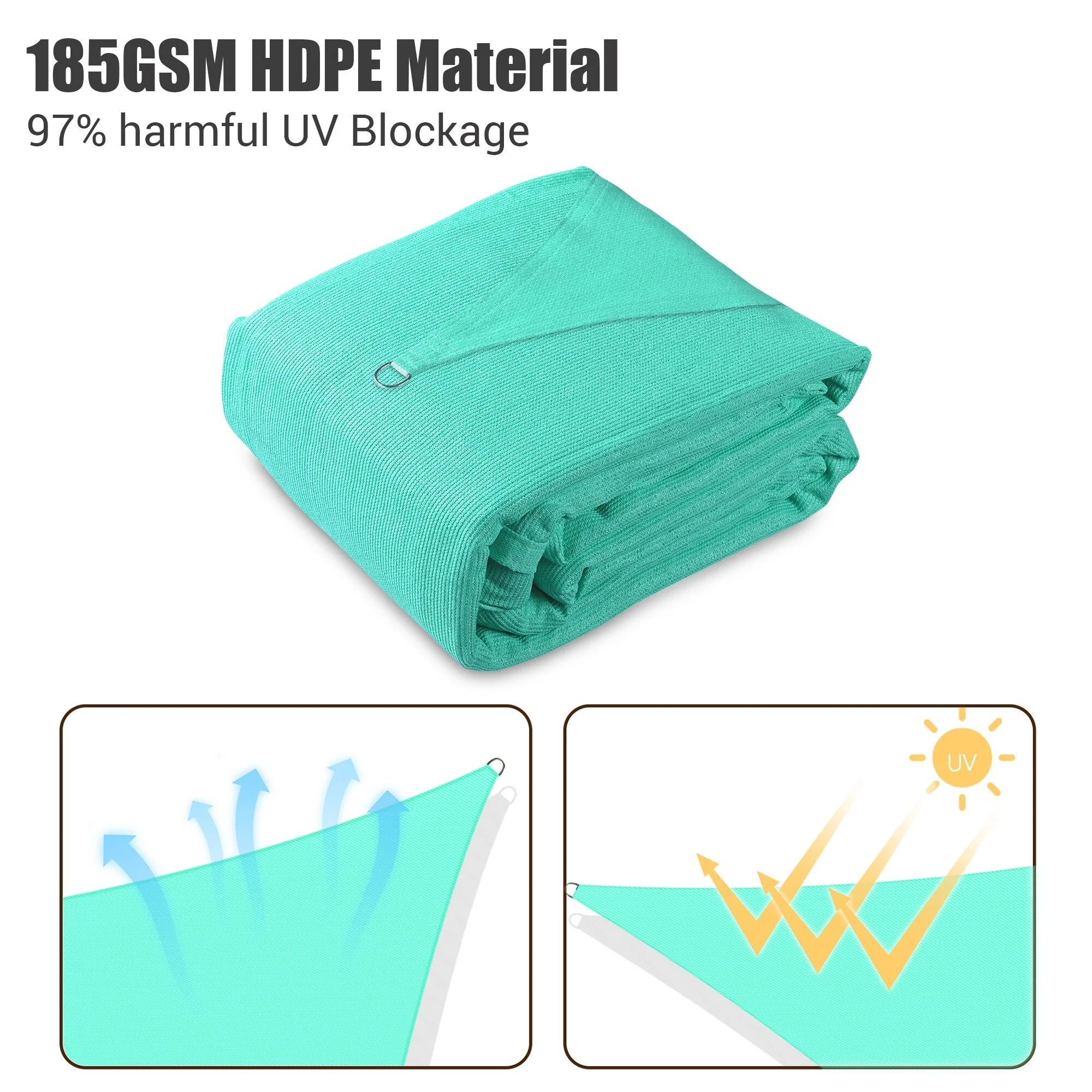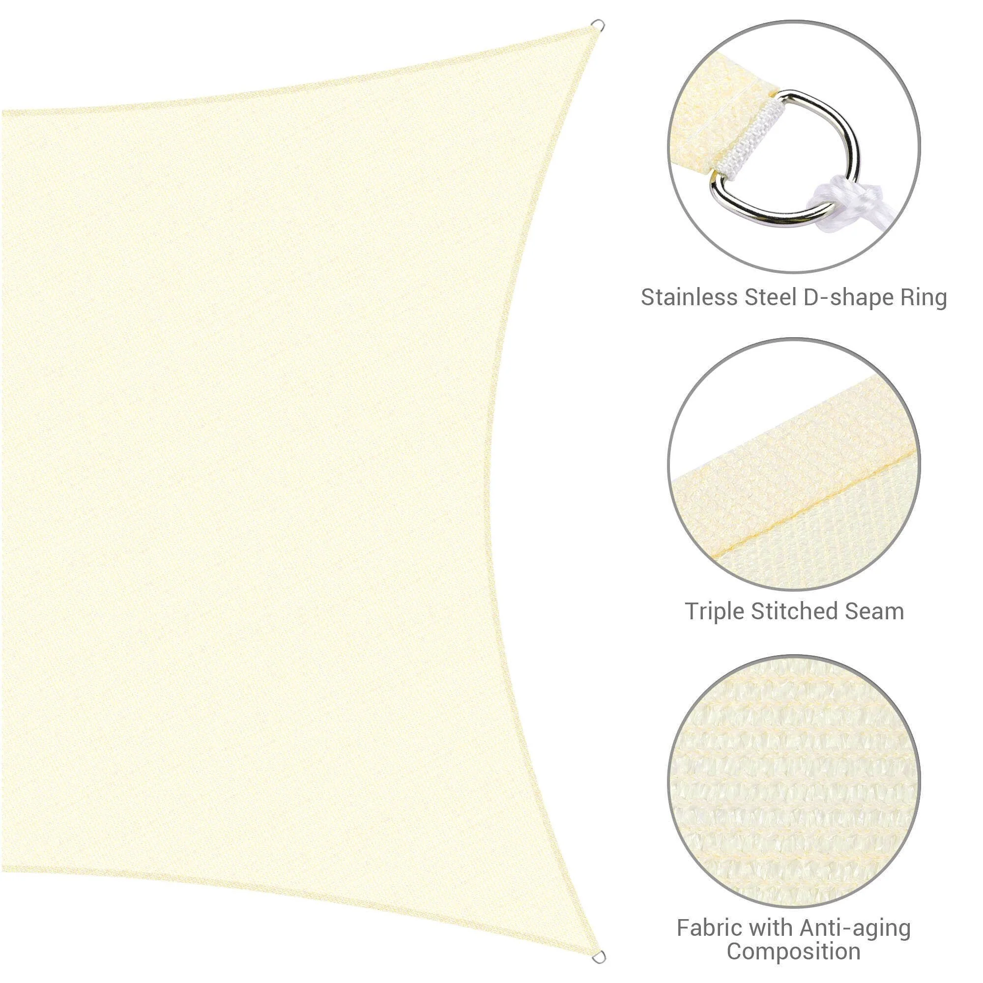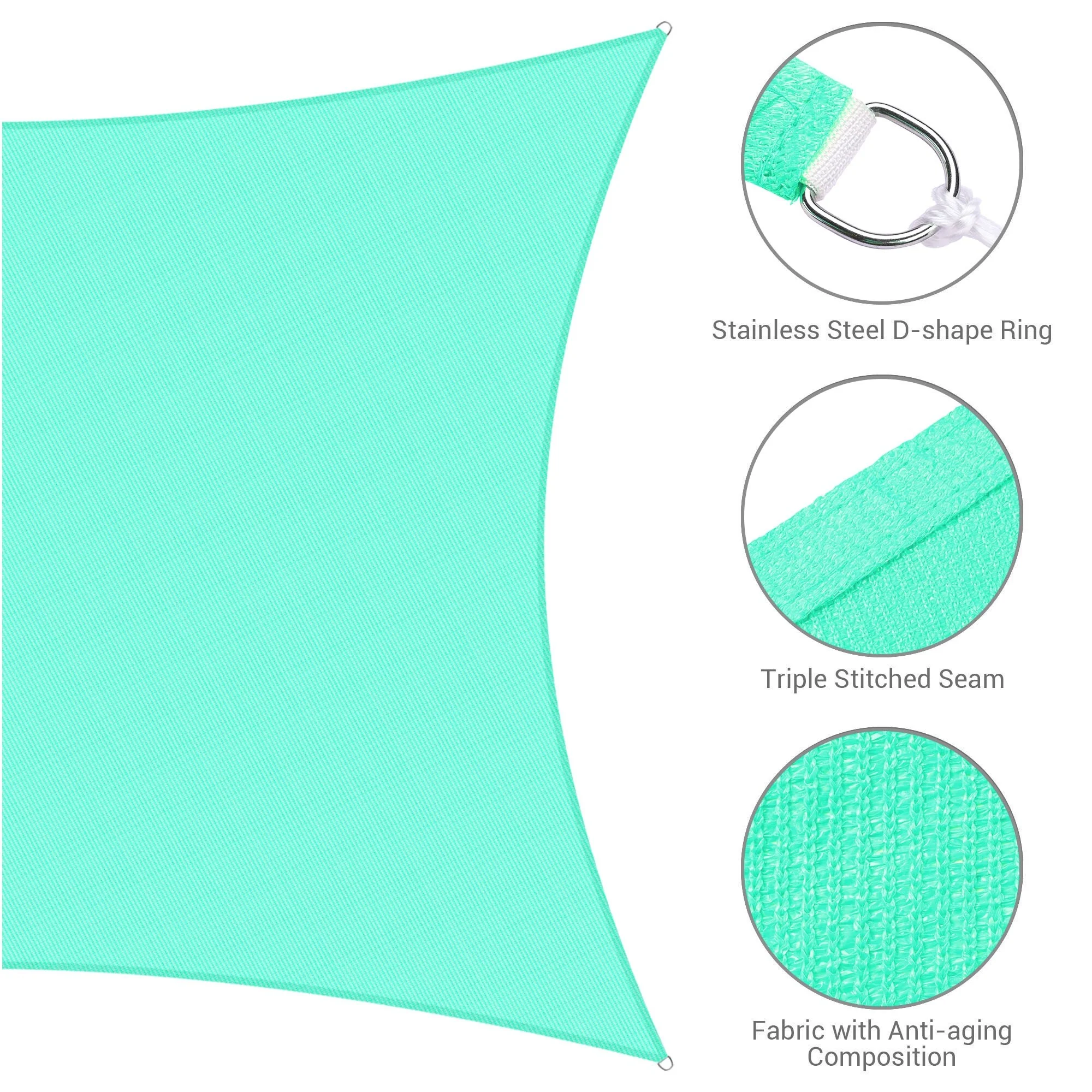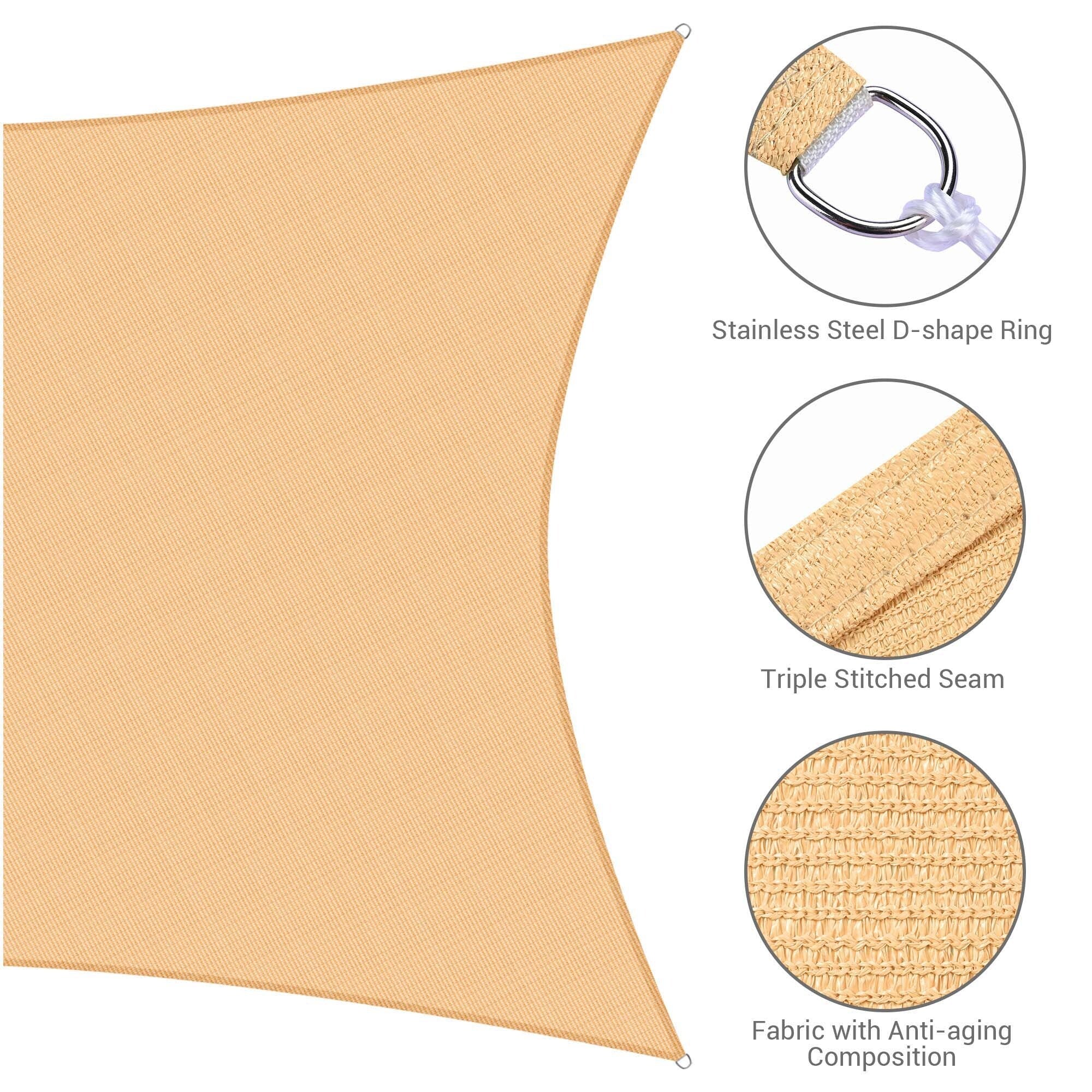 ColourTreeUSA Square Waterproof Sun Shade Sail HDPE Mesh Fabric Screen Canopy UV Block 220 GSM