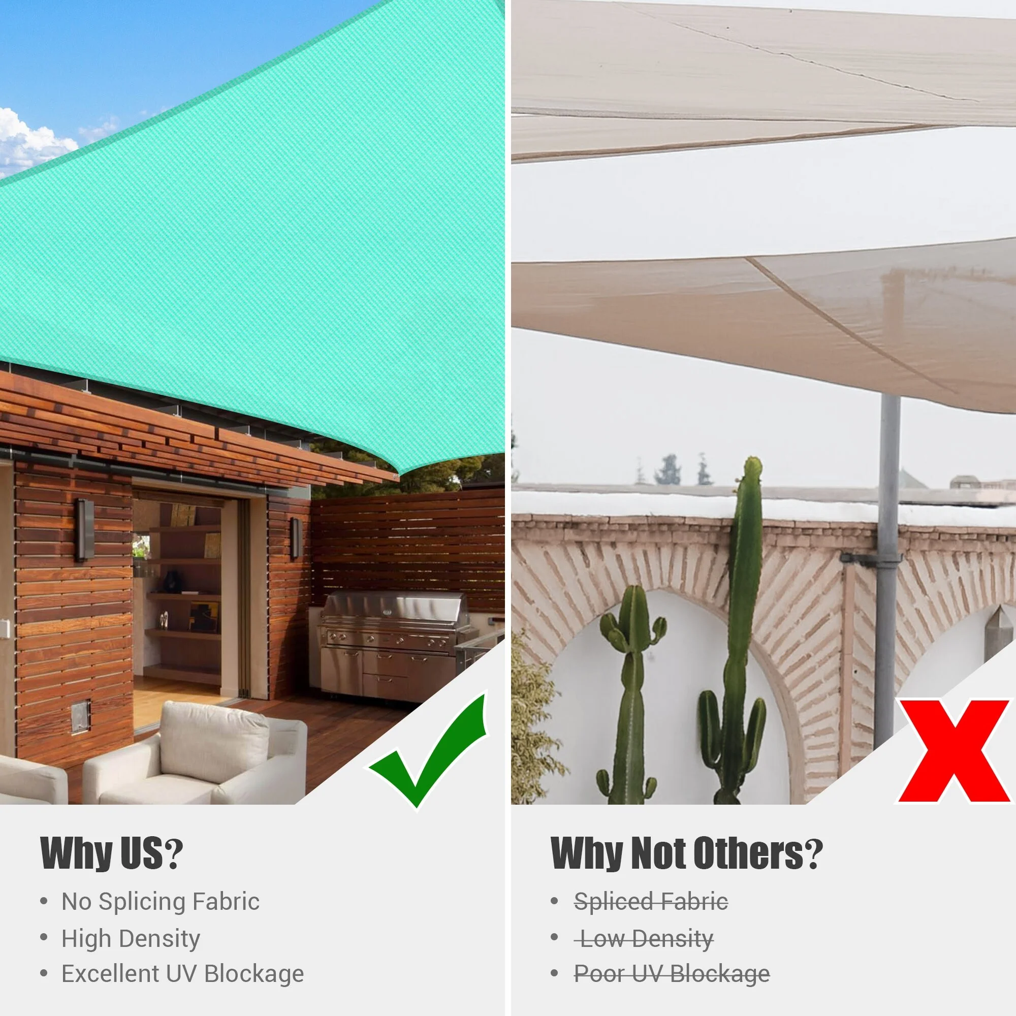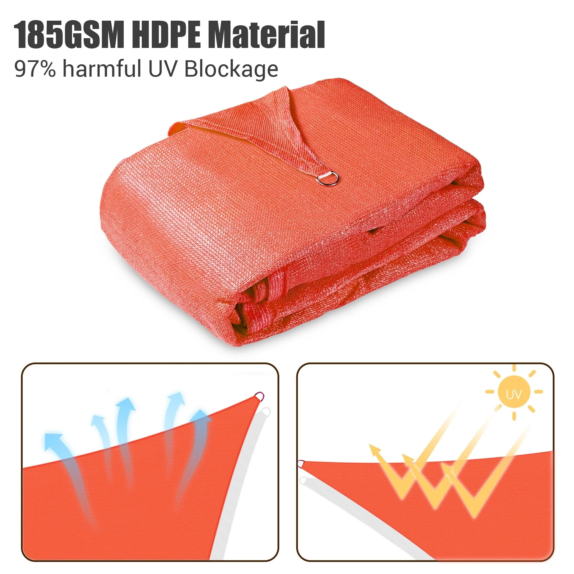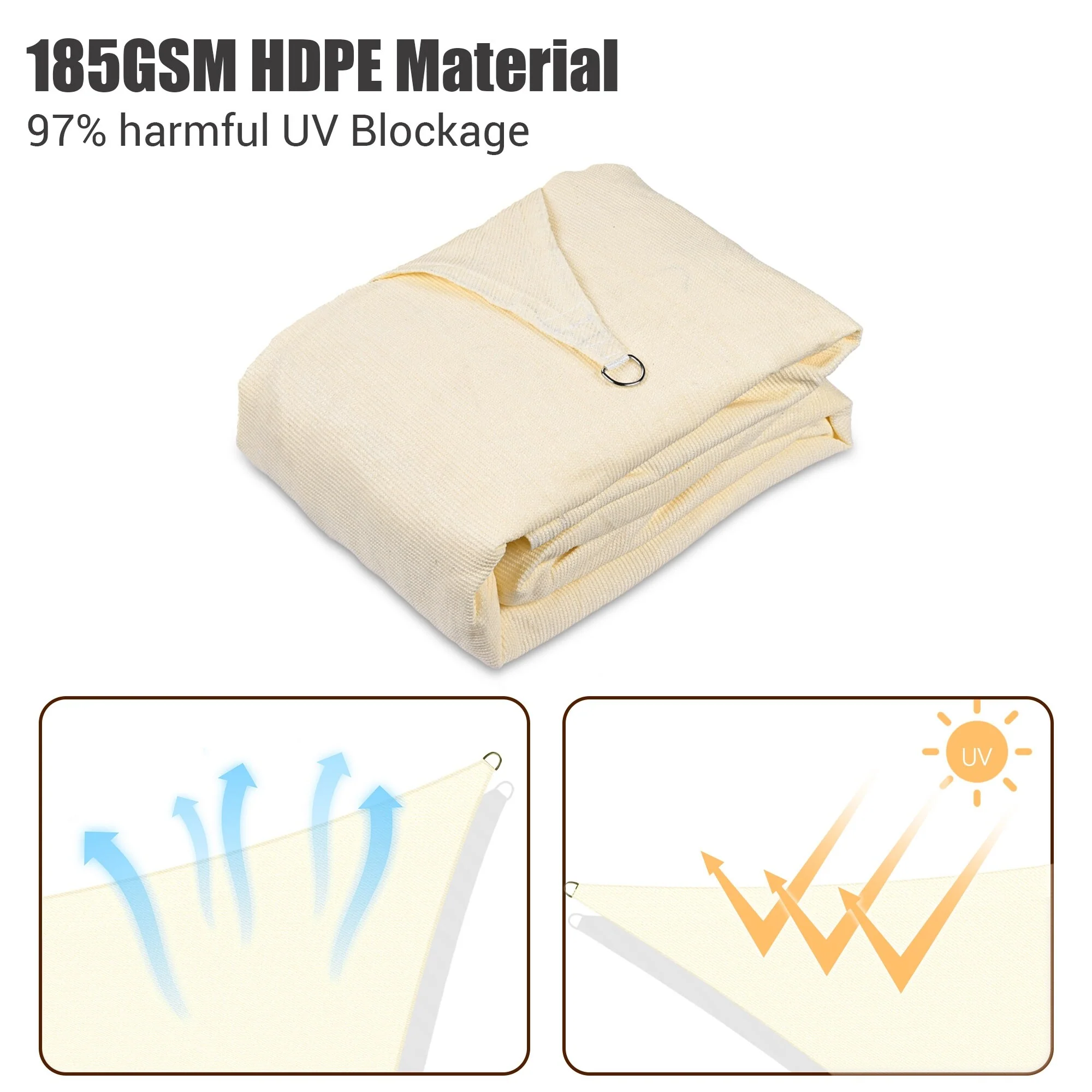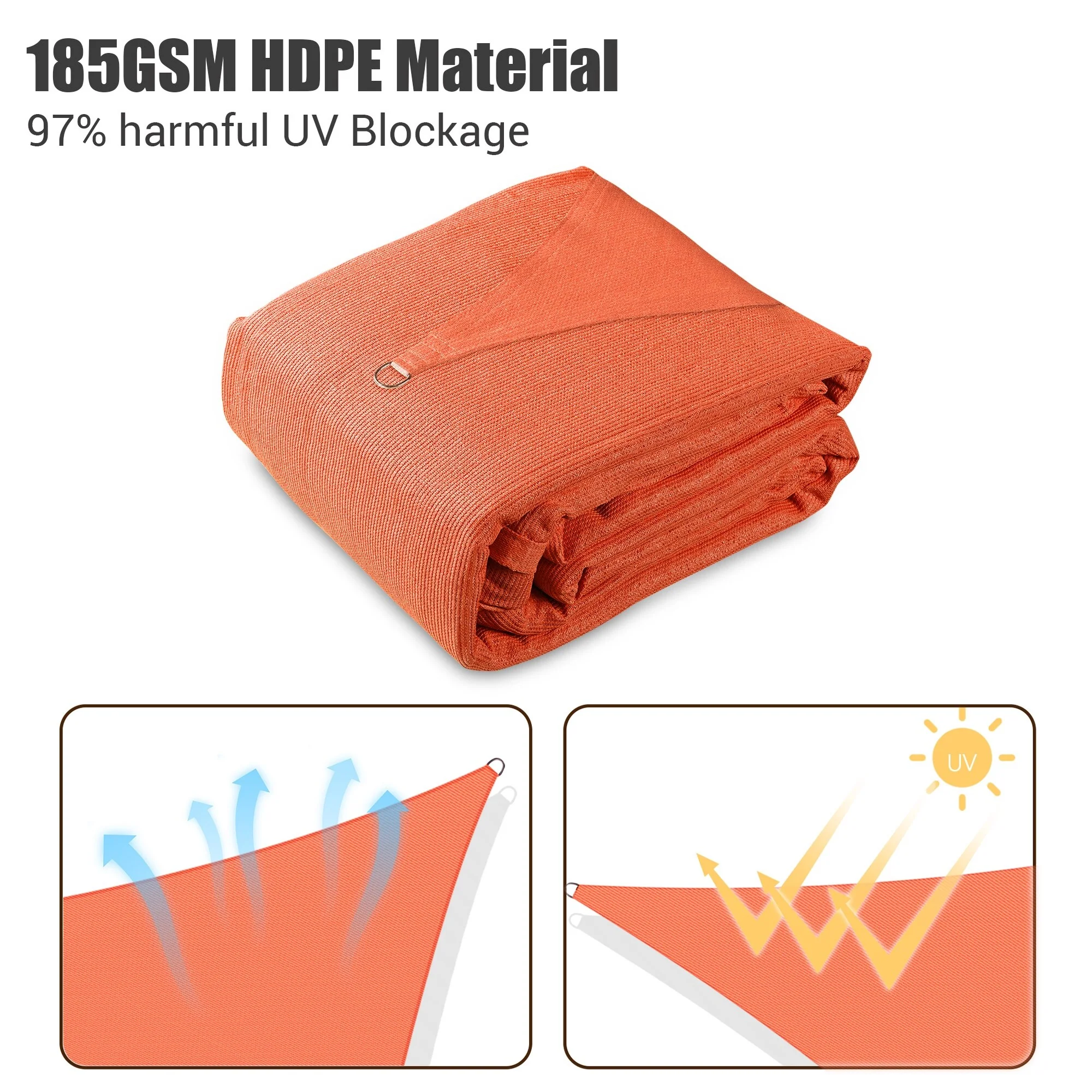ColourTreeUSA Square Waterproof Sun Shade Sail HDPE Mesh Fabric Screen Canopy UV Block 220 GSM