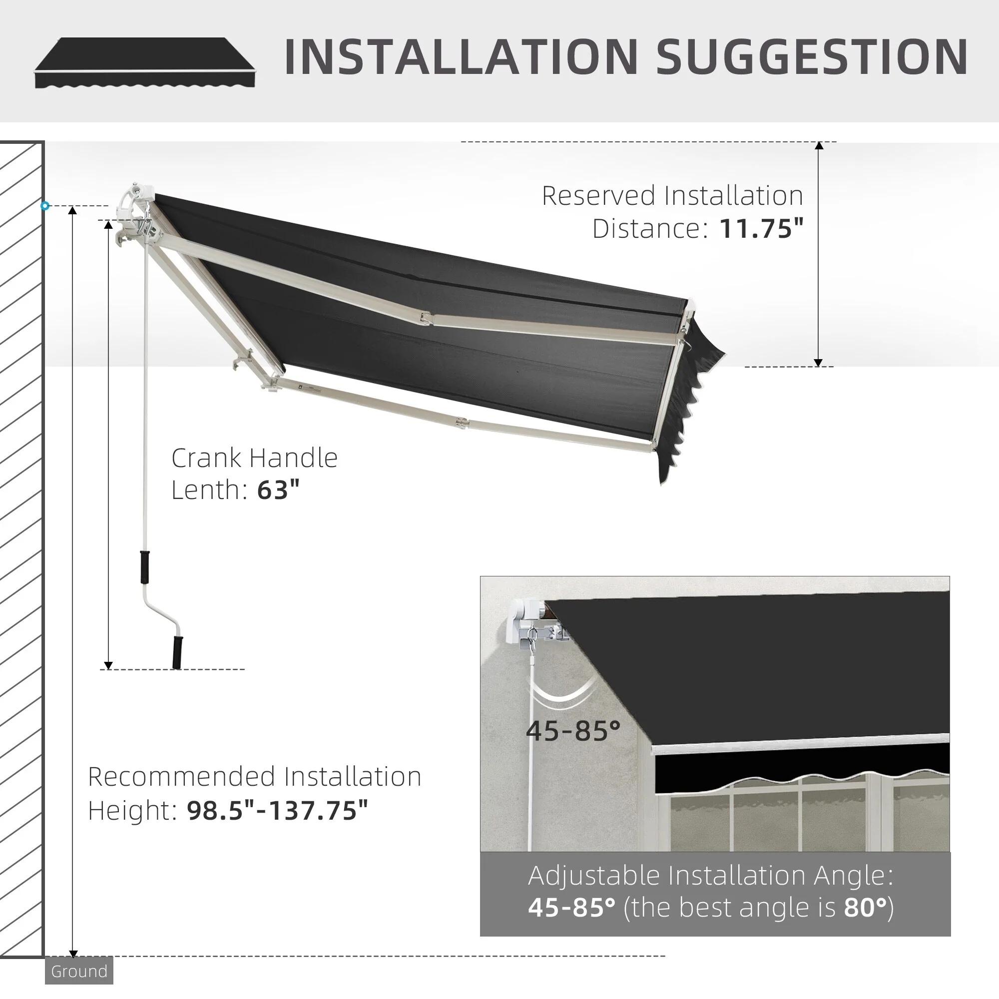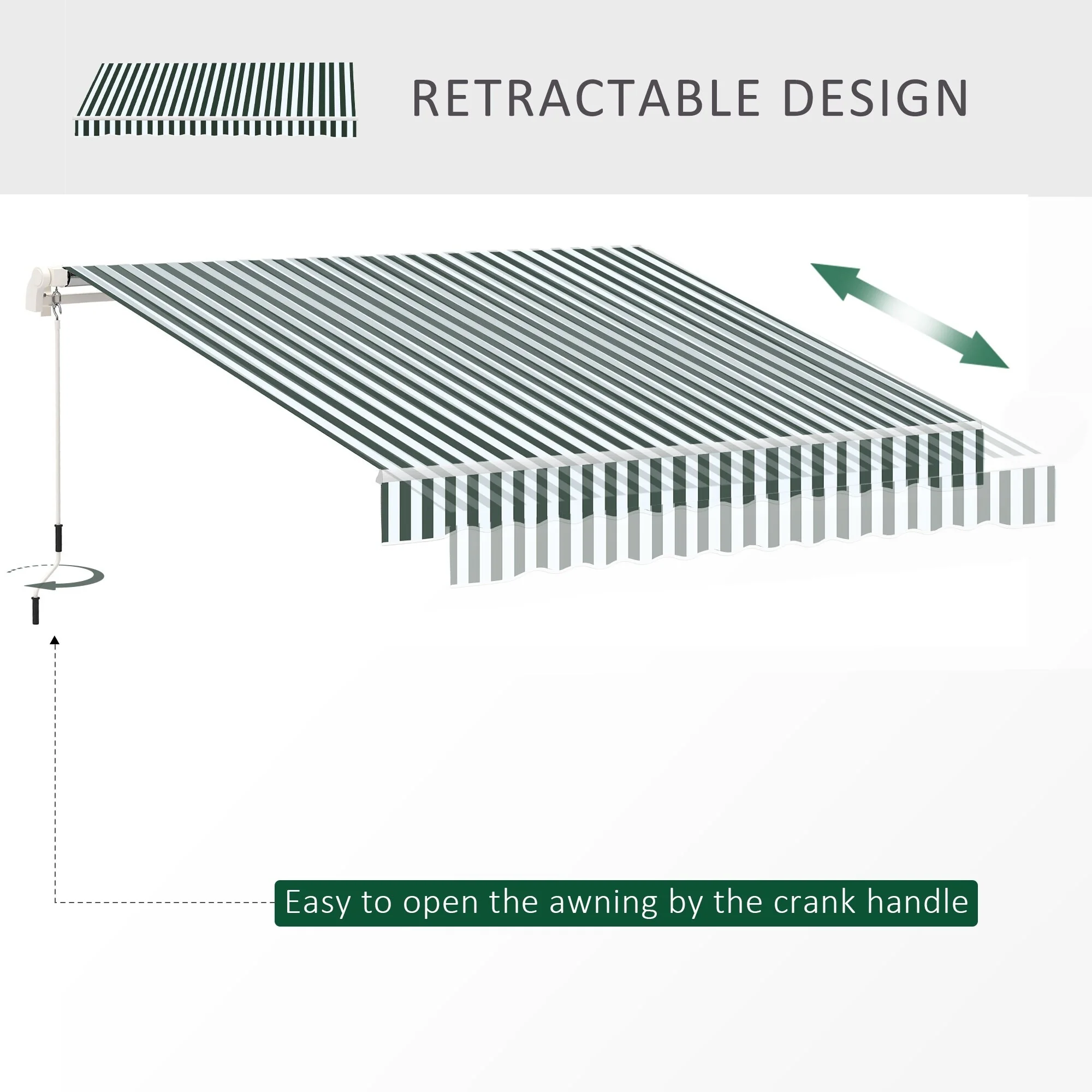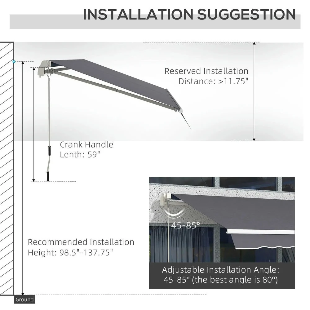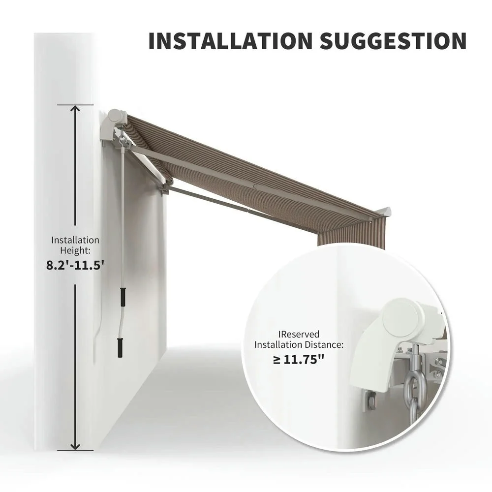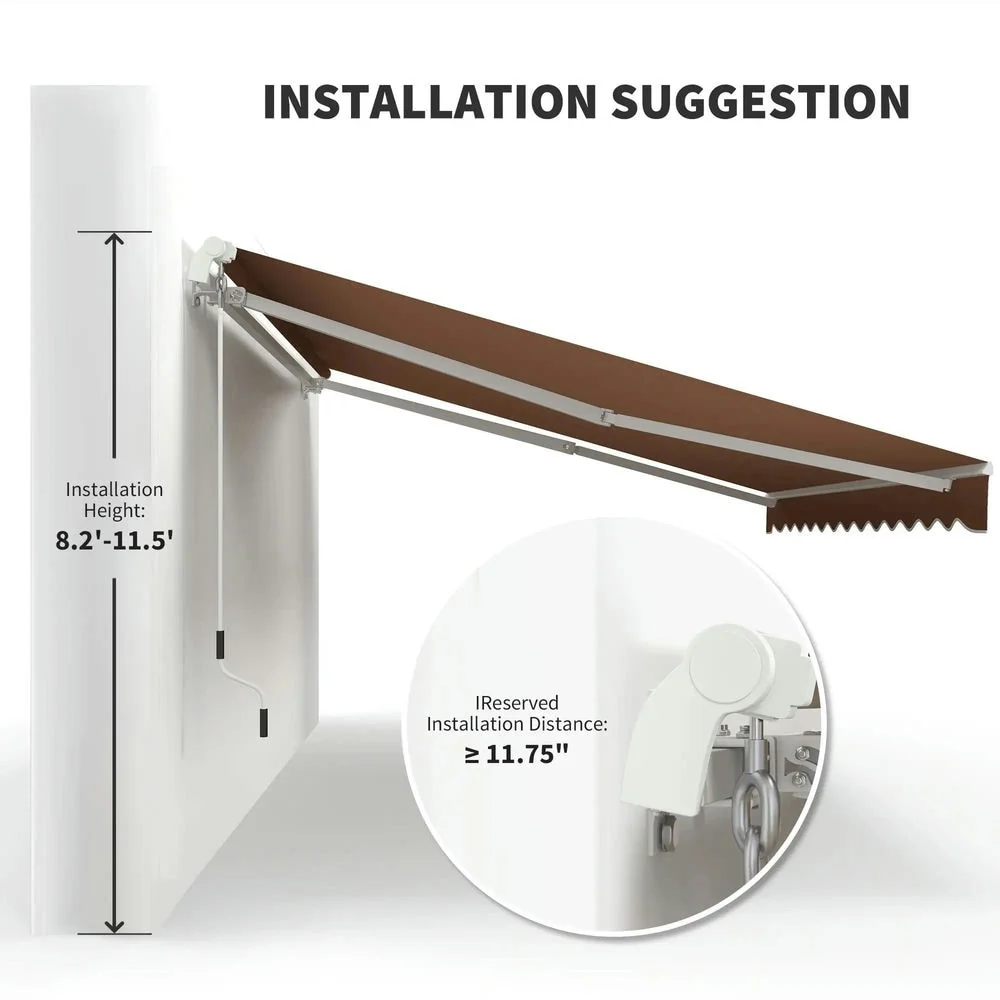 12'x10' Retractable Patio Awning,Manual Crank,UV and Water-Resistant