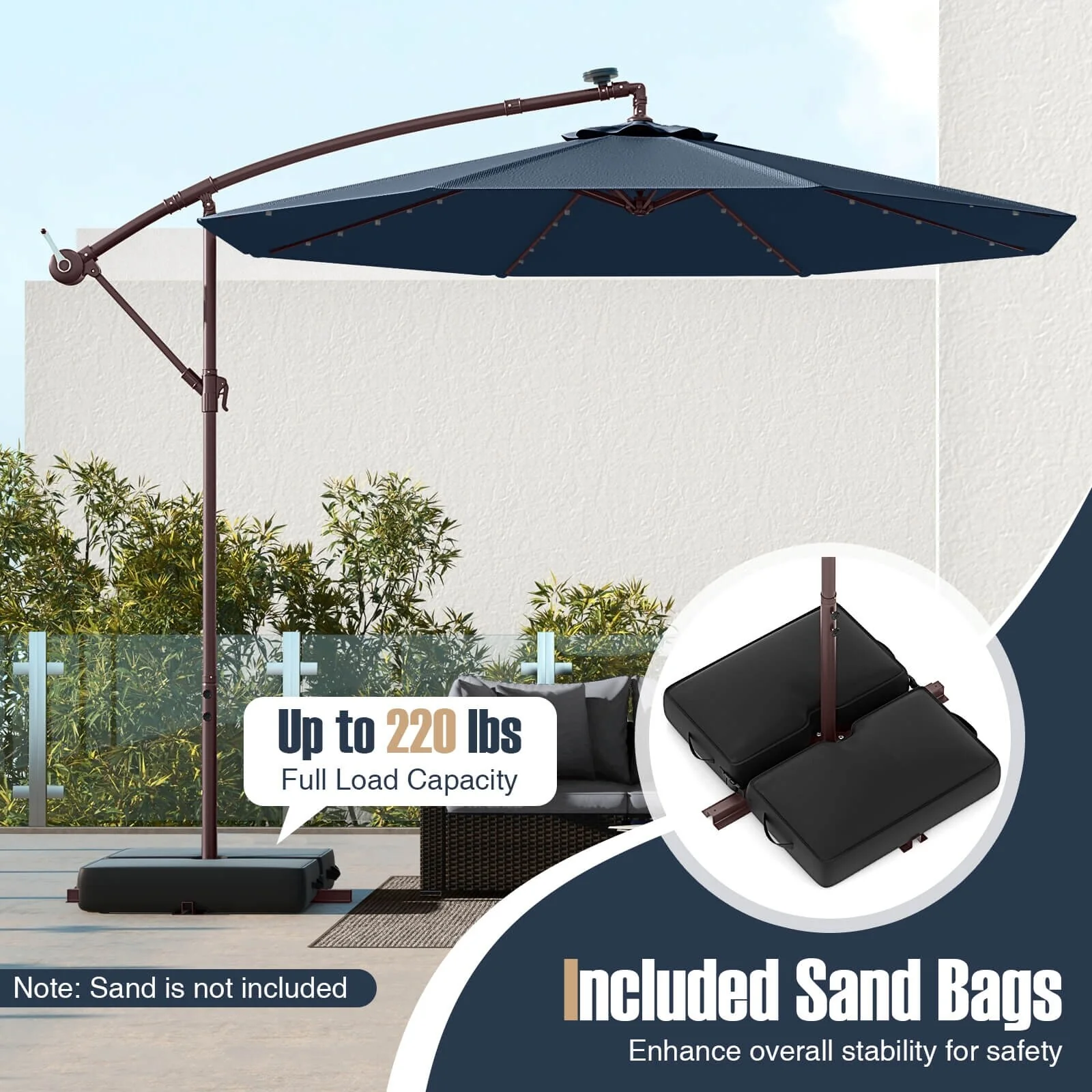 Costway Patio 10FT Hanging Offset Umbrella 32 LED Lights Sand Bag