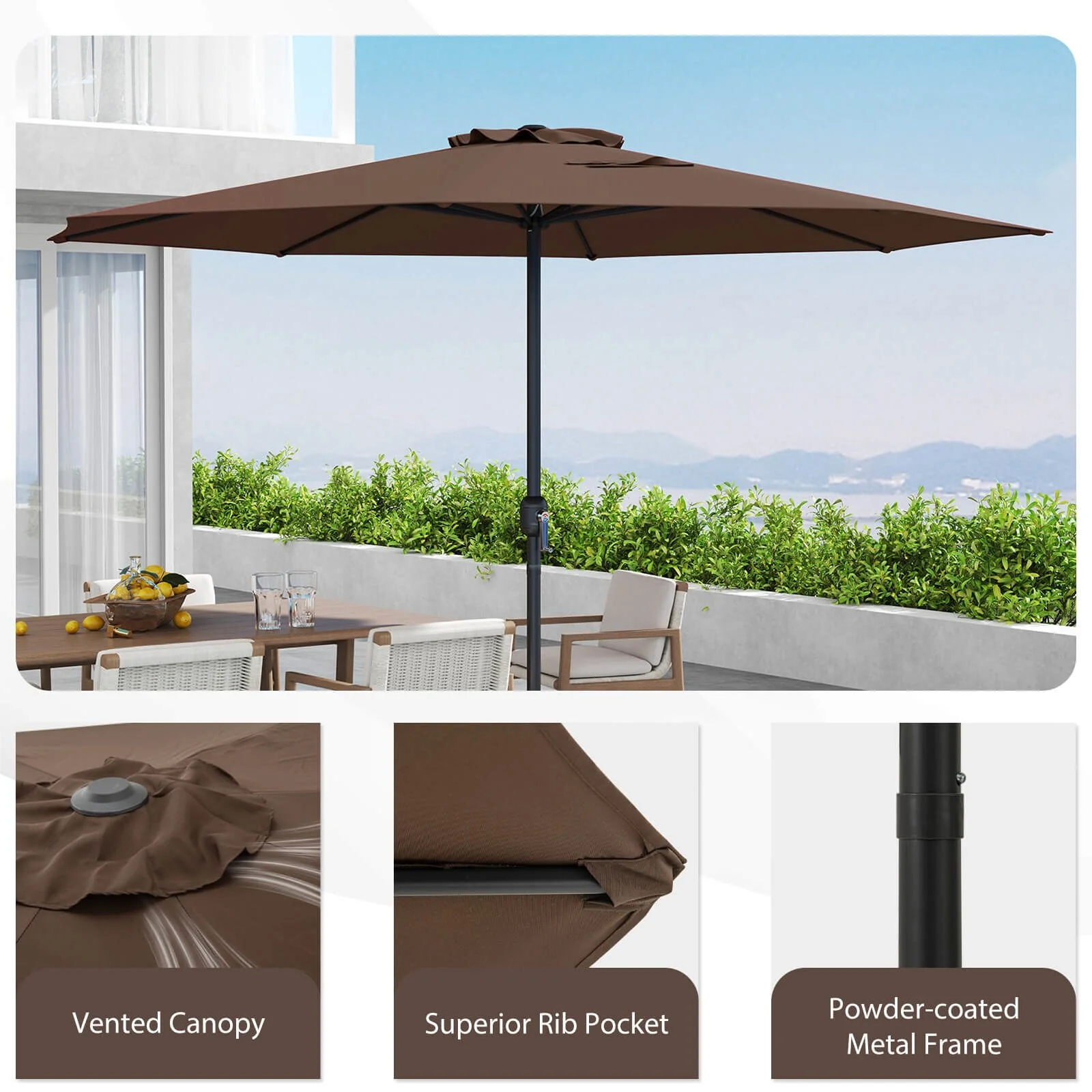 9-foot Steel Outdoor Patio Umbrella