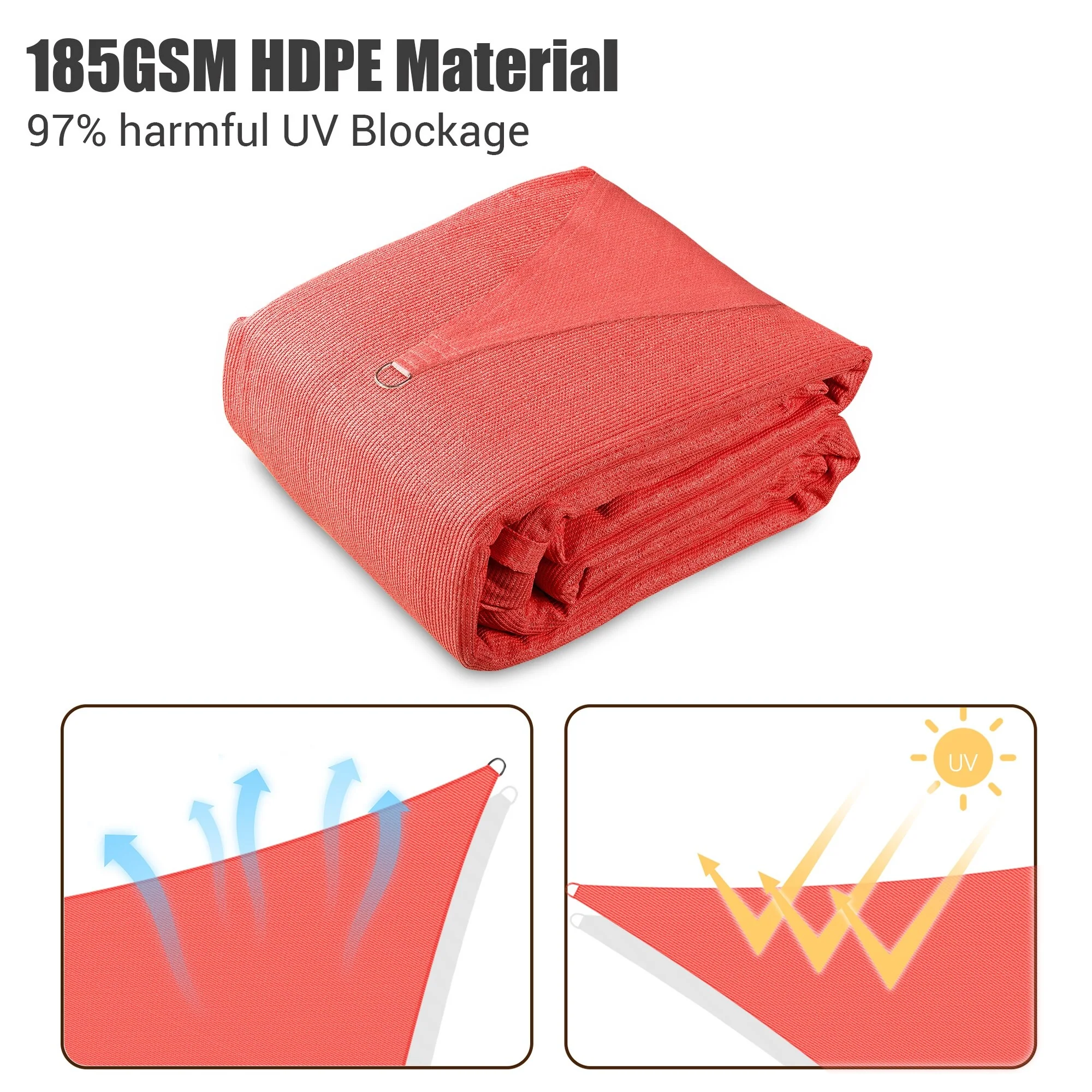 Yescom 16x12FT 97% UV Block Rectangle Sun Shade Sail Outdoor Patio Pool Garden Yard Lawn Carport Net Watermelon Red - 12' x 16'