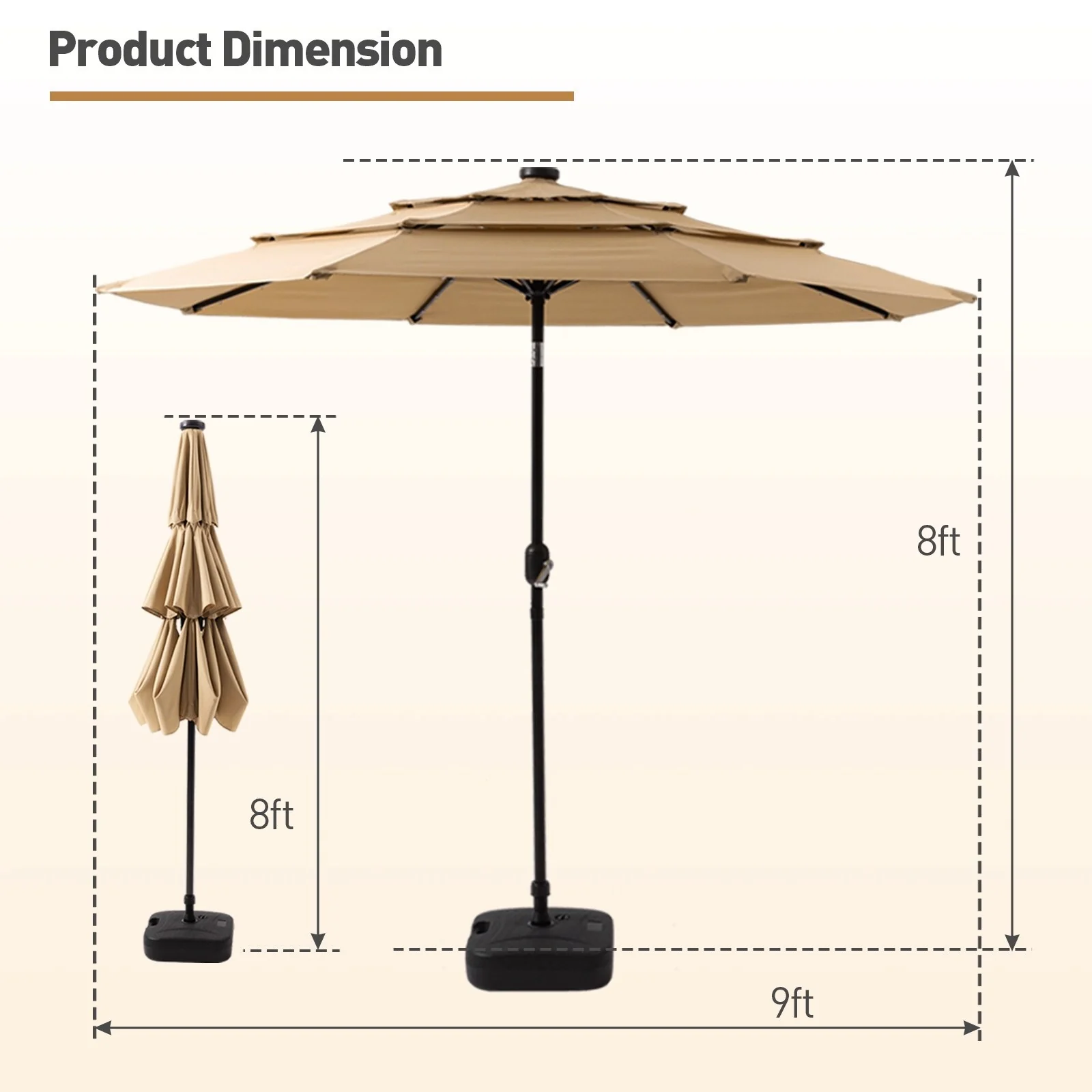 9ft.Patio Umbrella Replacement Canopy, Outdoor Table & Market & Yard Umbrella Replacement Top Cover (No stand and base)