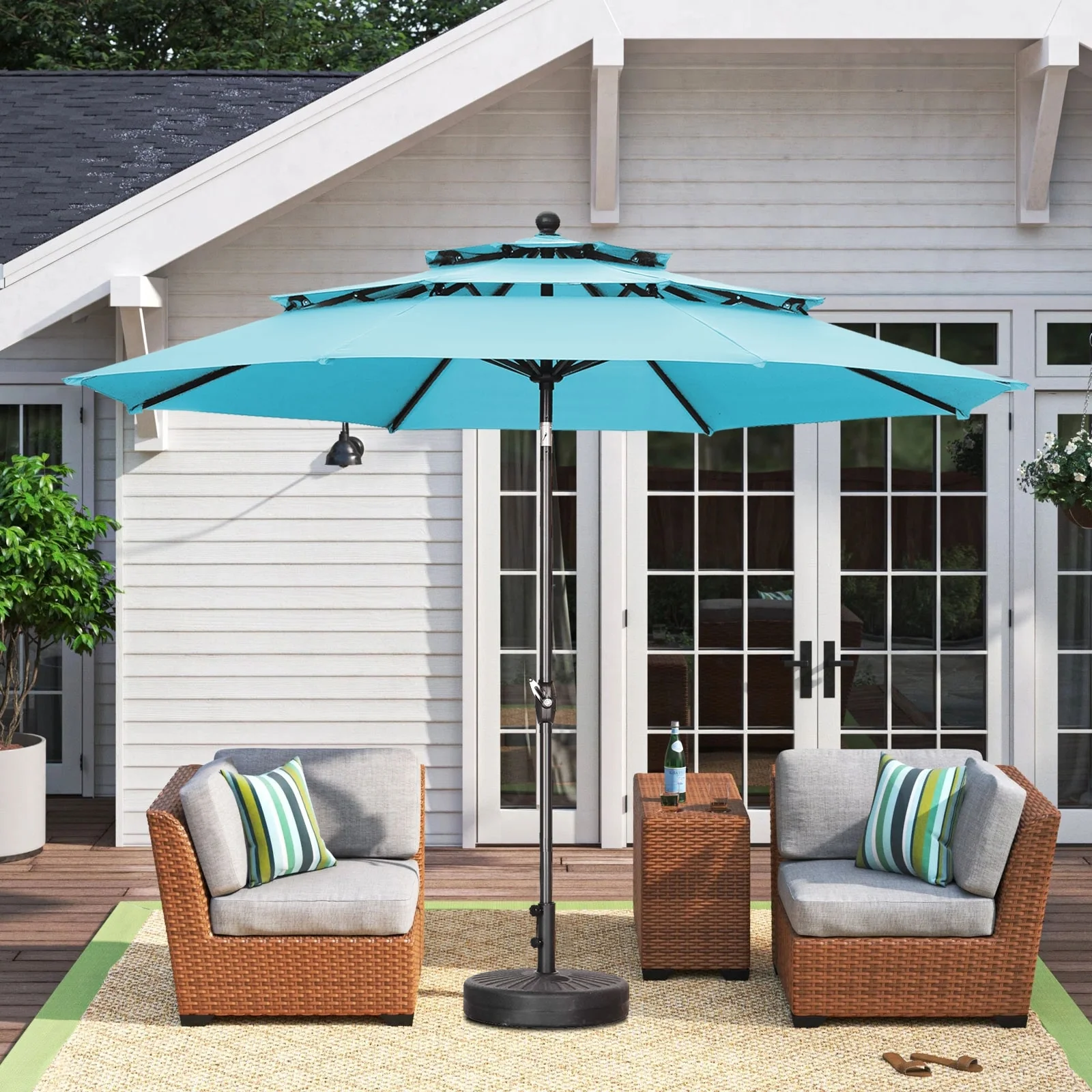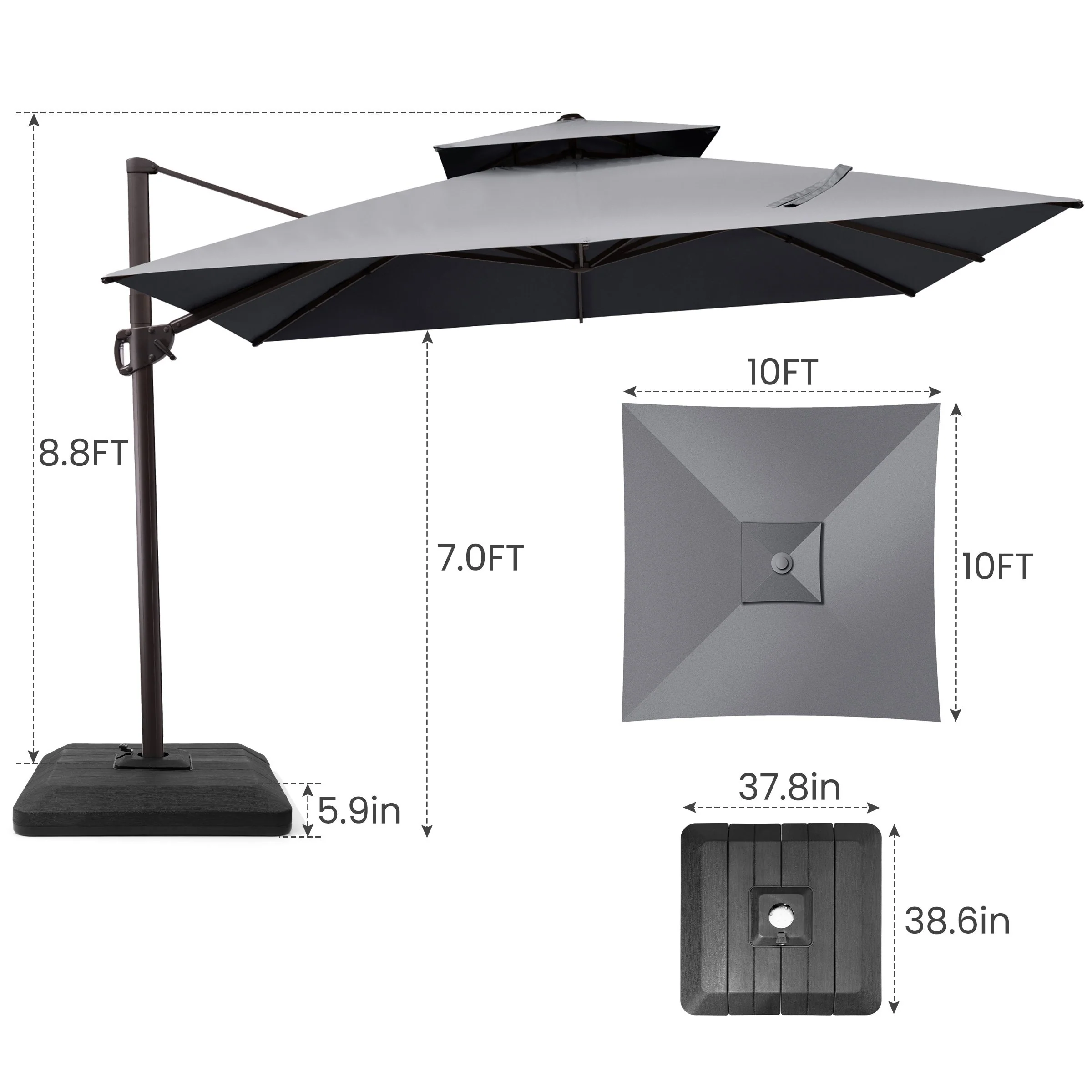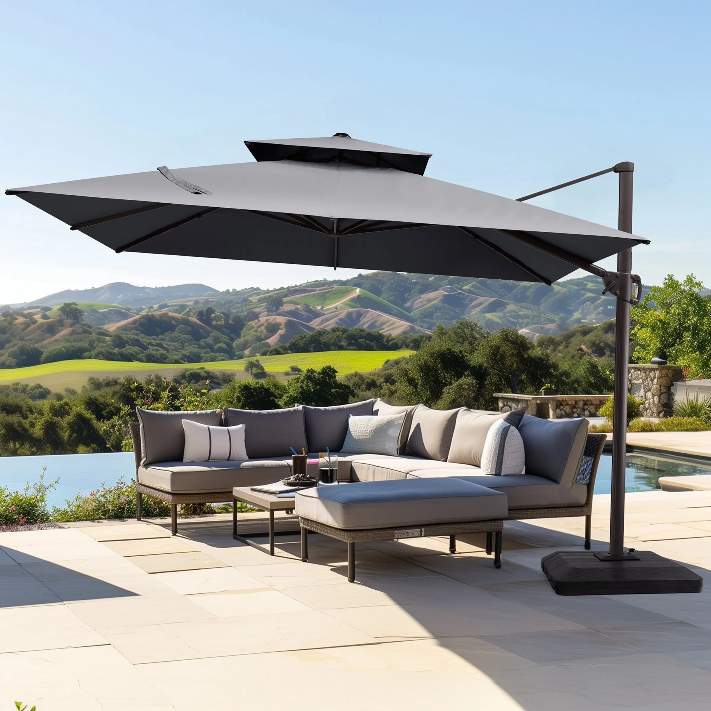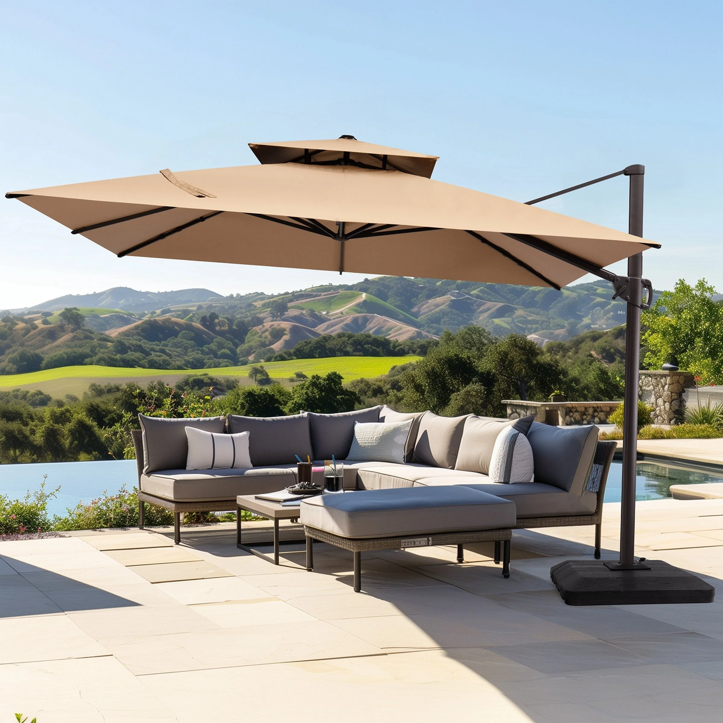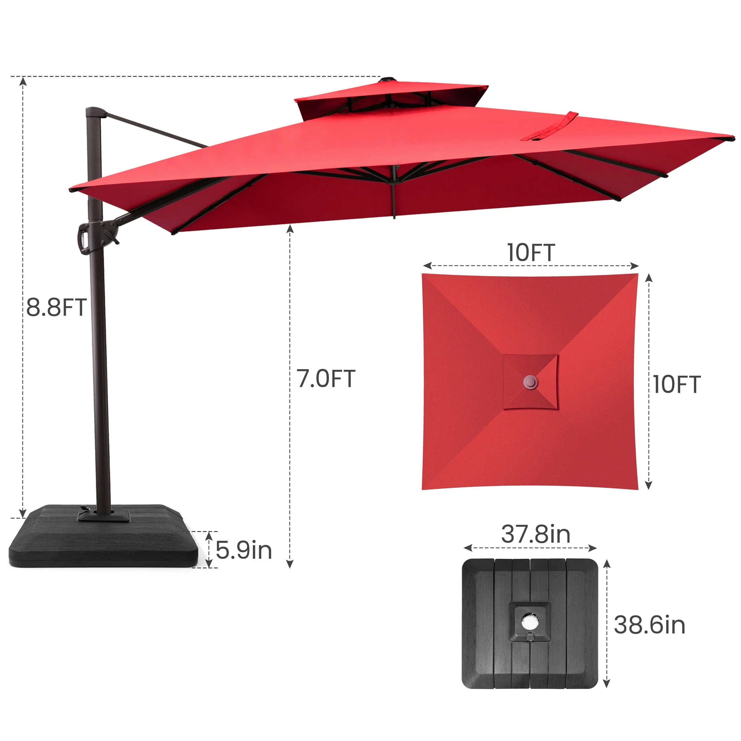 11FT Patio Umbrella Outdoor Square Double Top Umbrella with Base