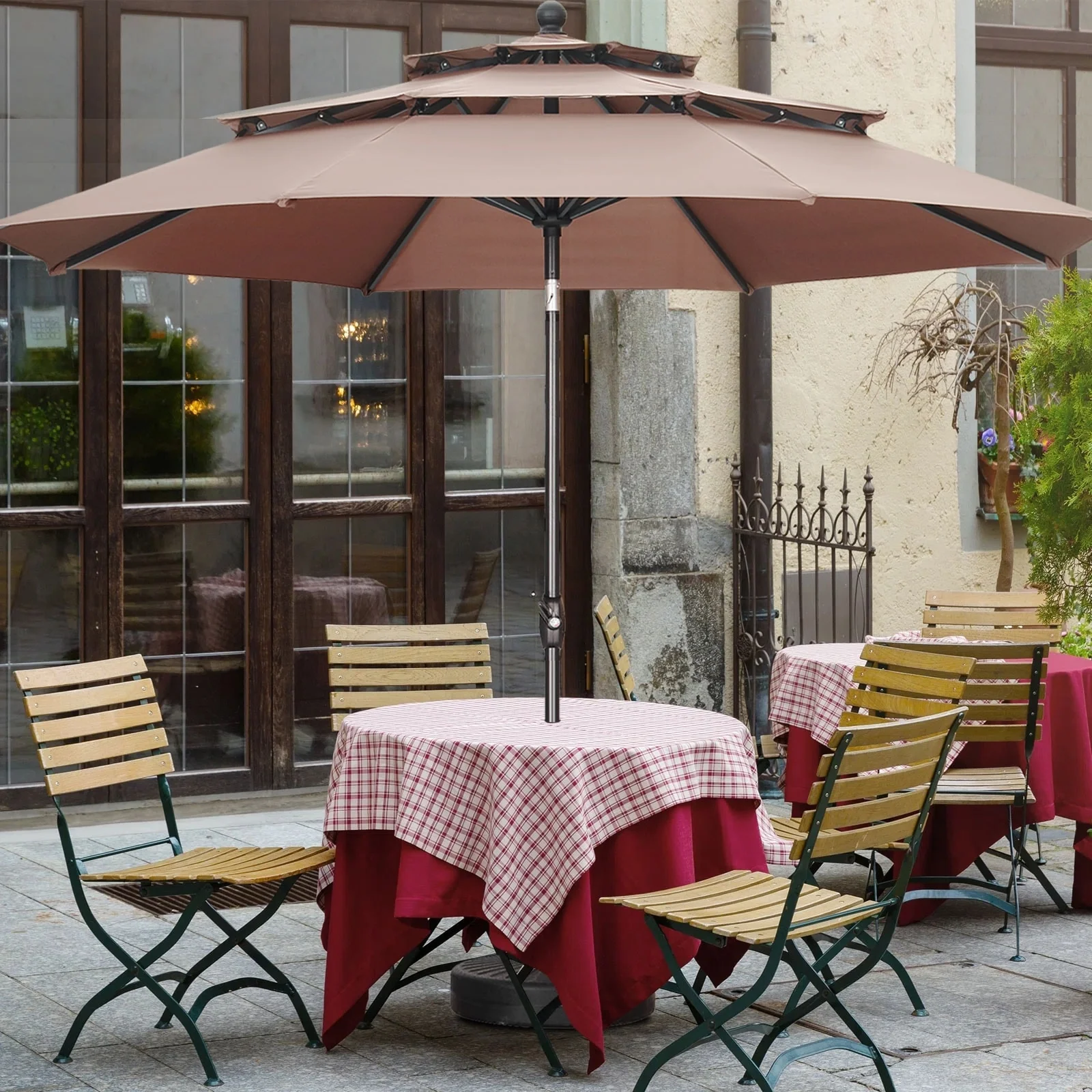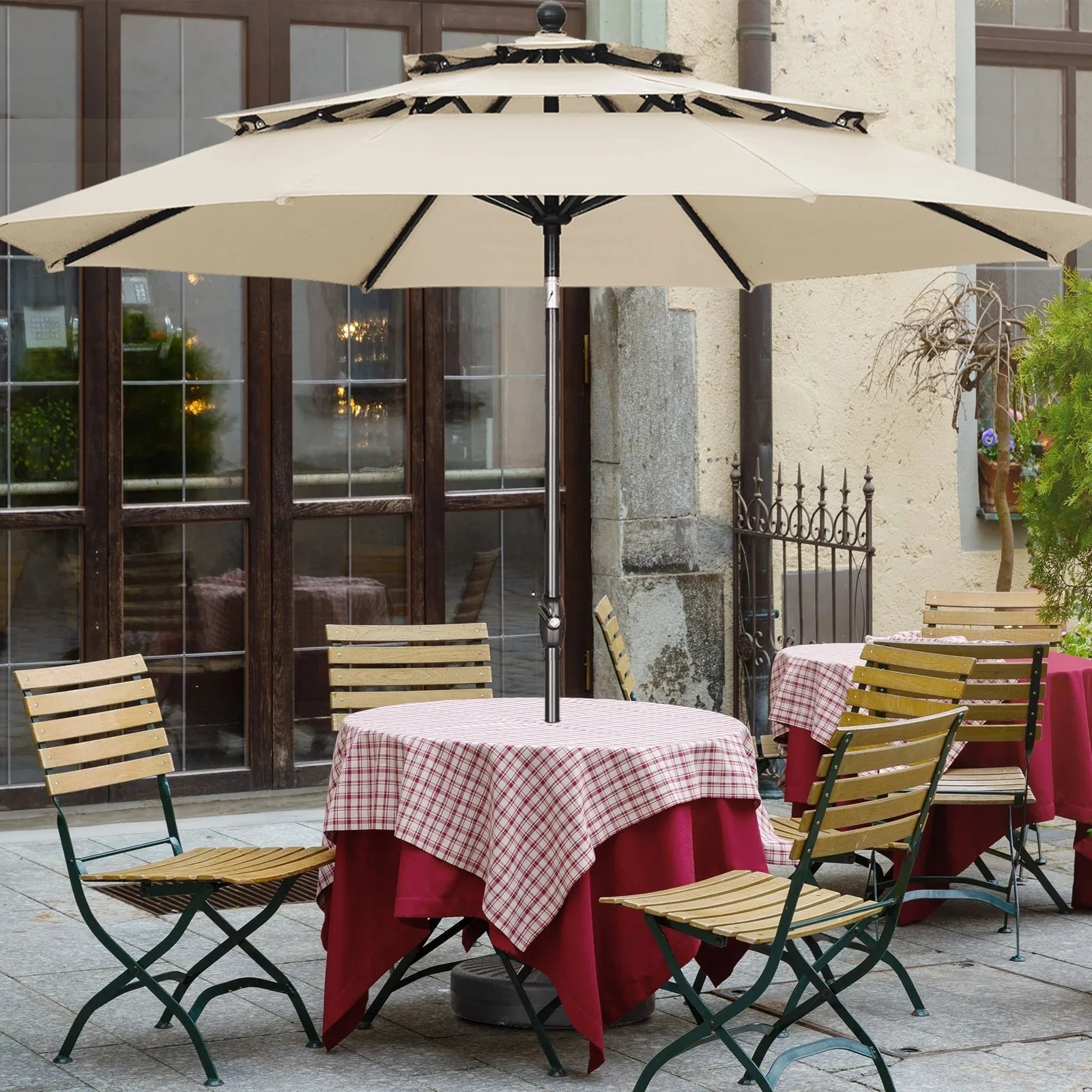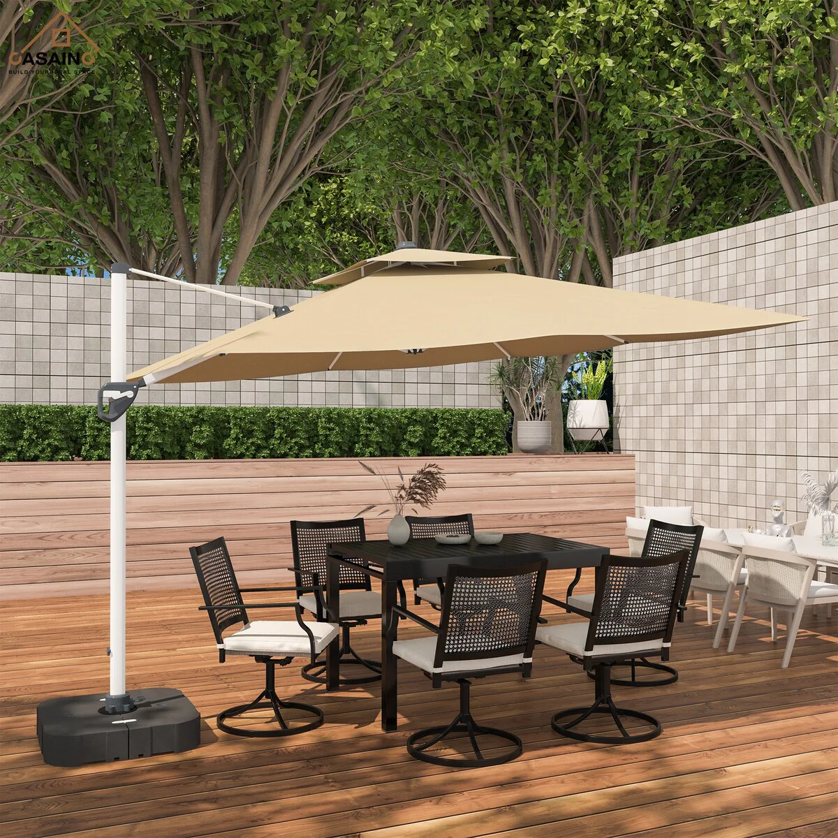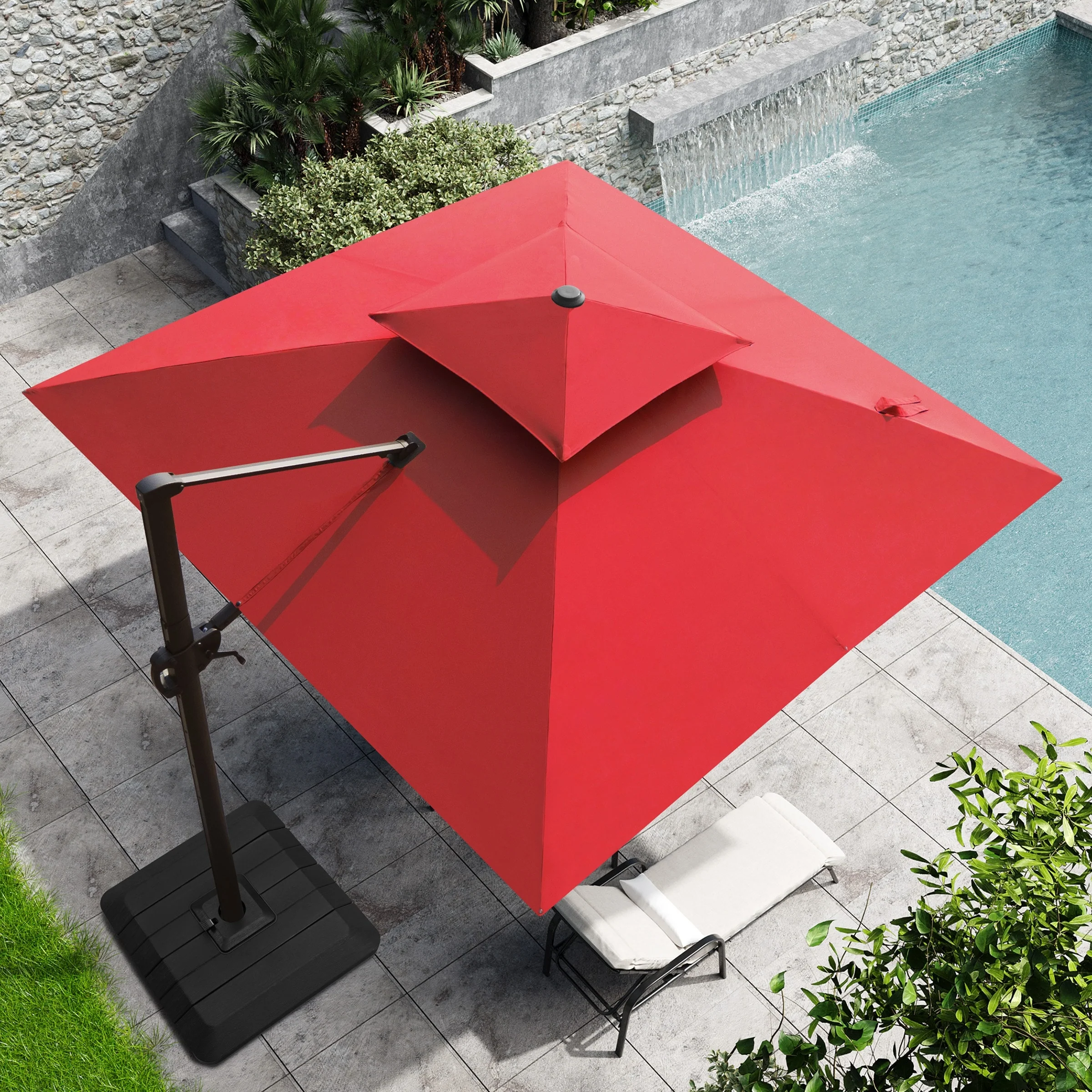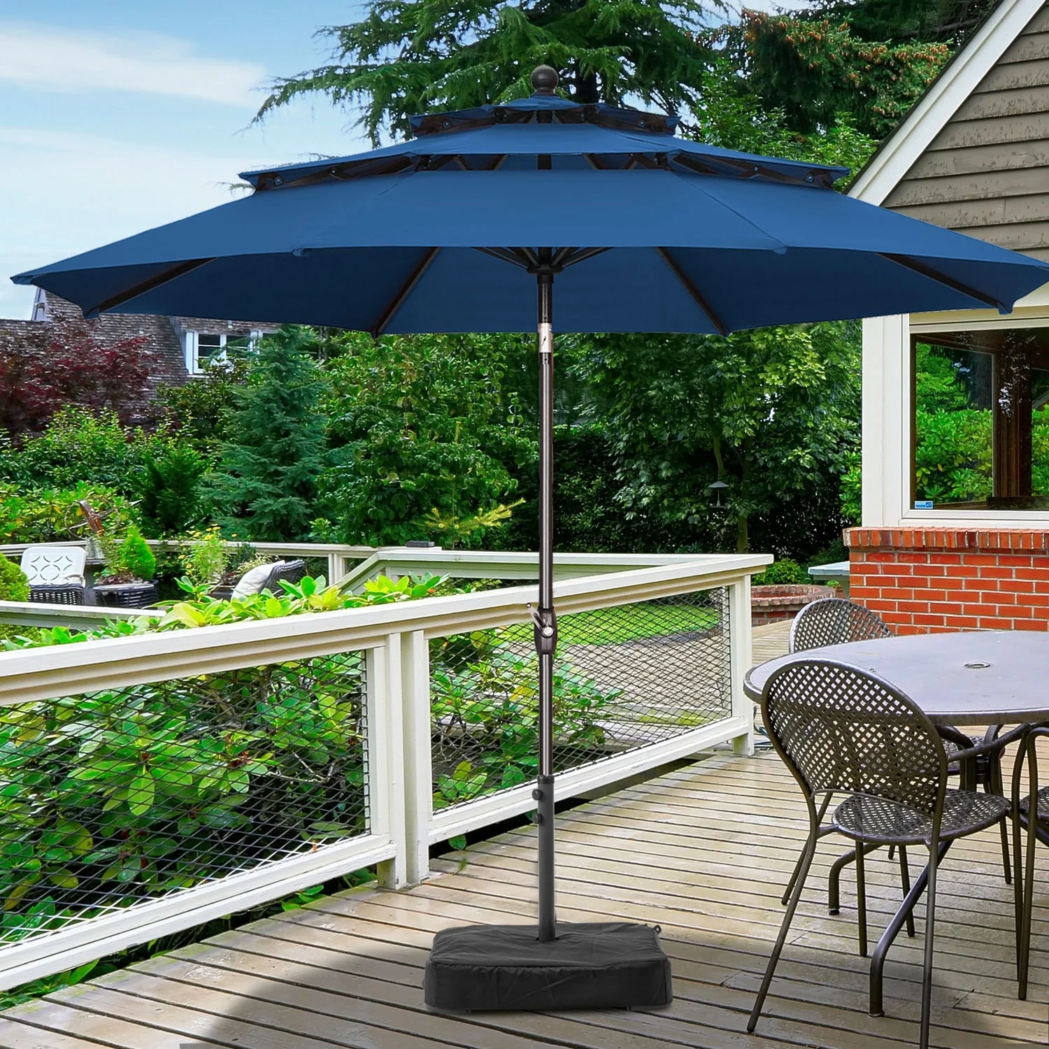 11FT Patio Umbrella Outdoor Square Double Top Umbrella with Base