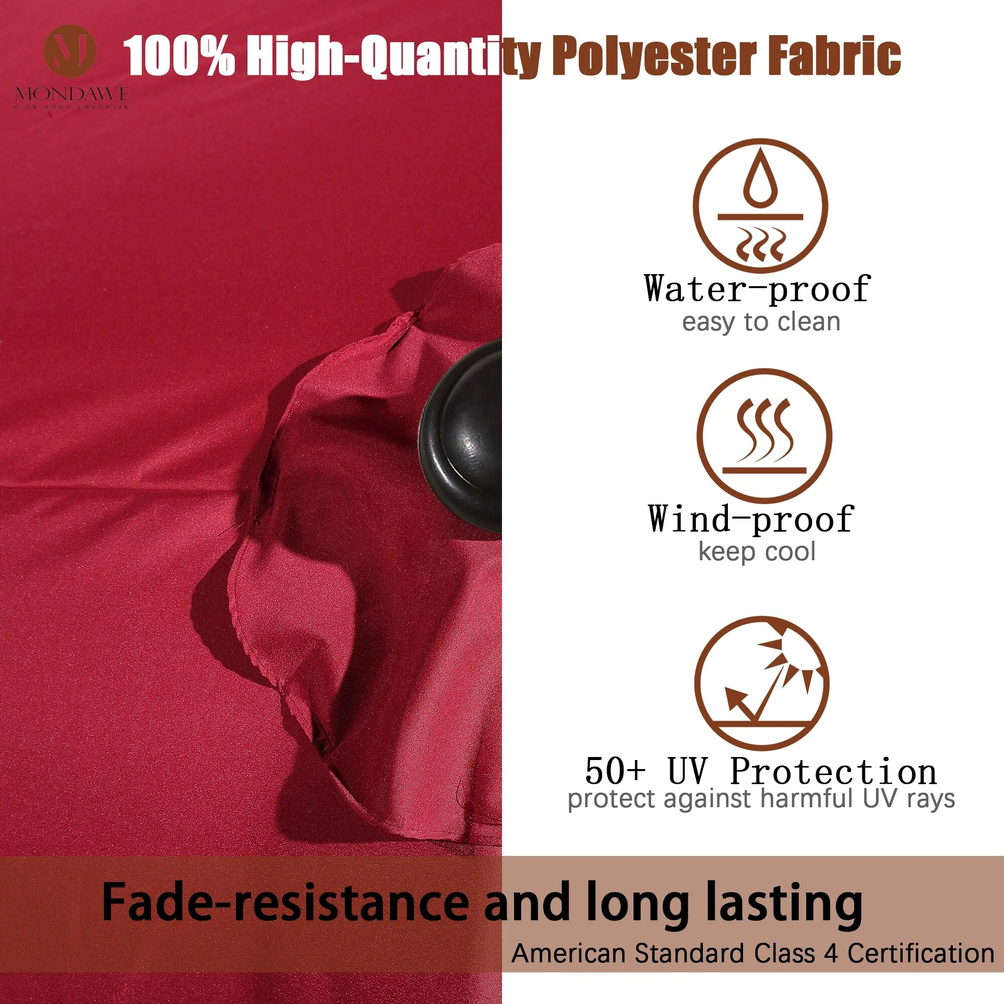 TropiShade 11 ft. Dark Wood Market Umbrella with Brick Red Olefin Cover
