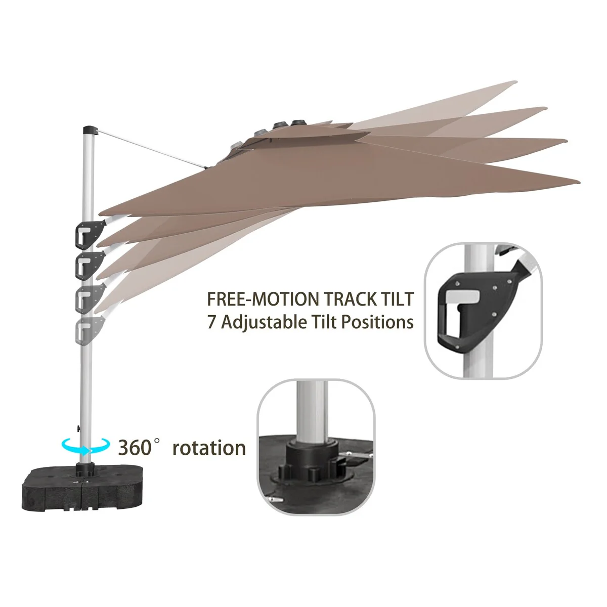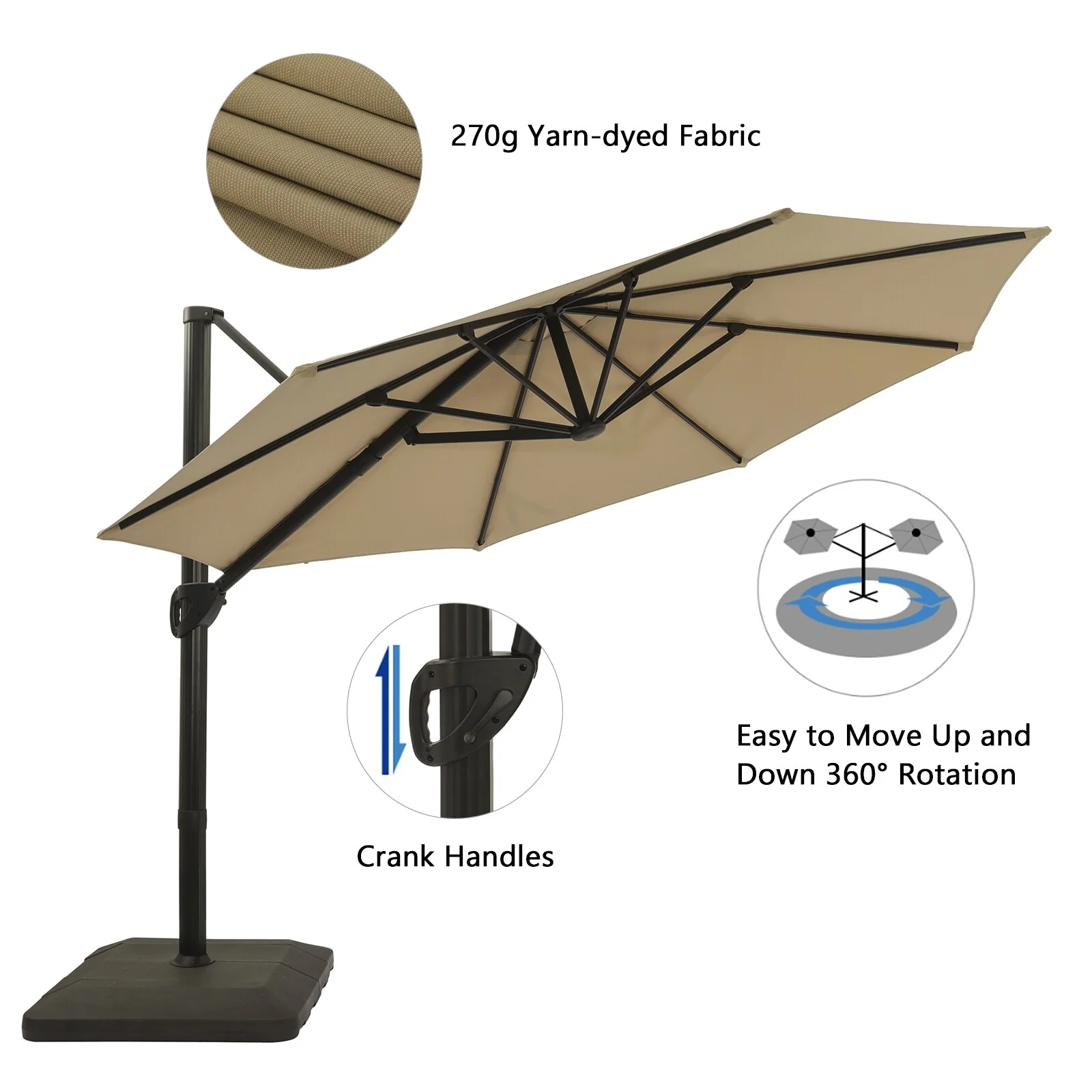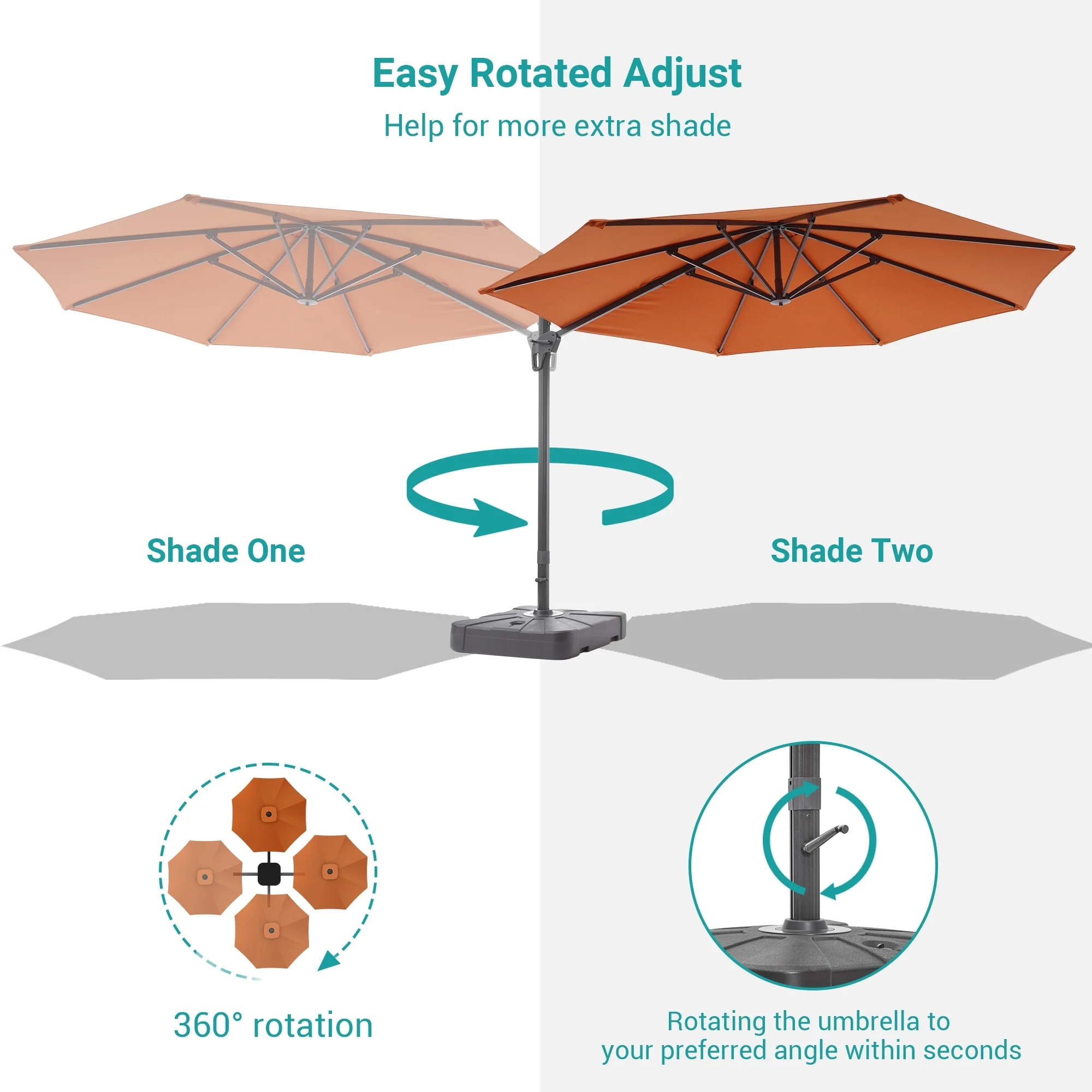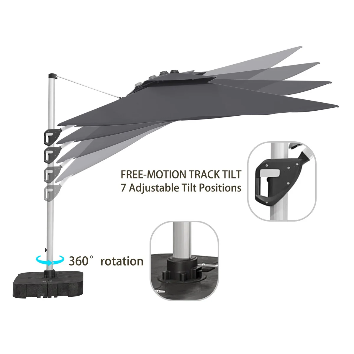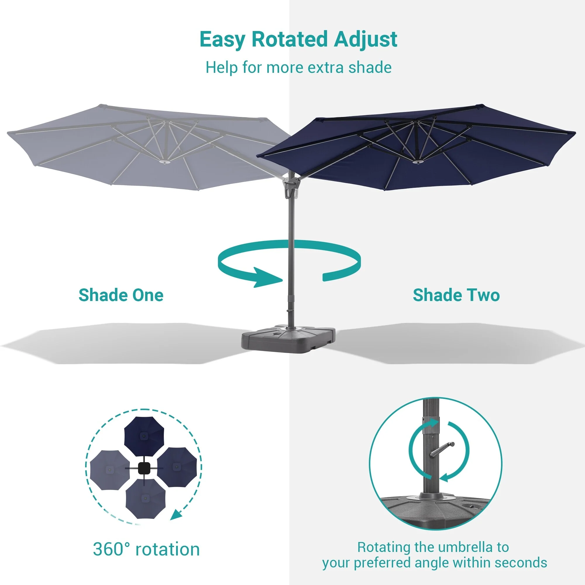 Outdoor Patio Offset Cantilever Umbrella 360-Degree Rotation with Base