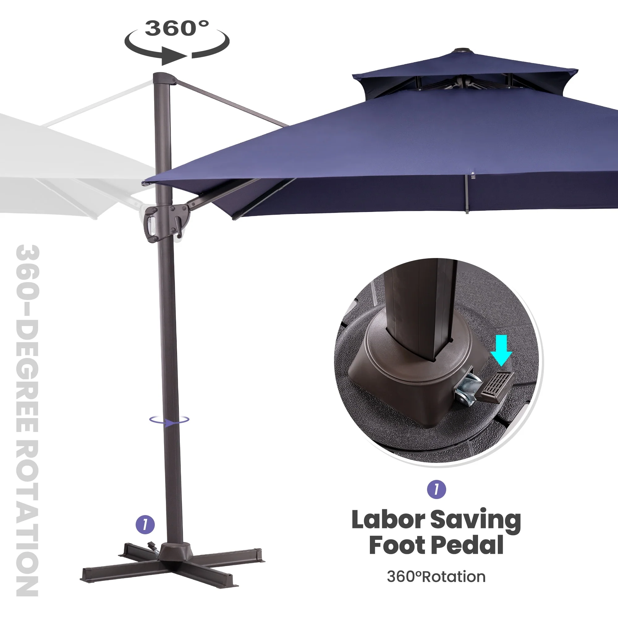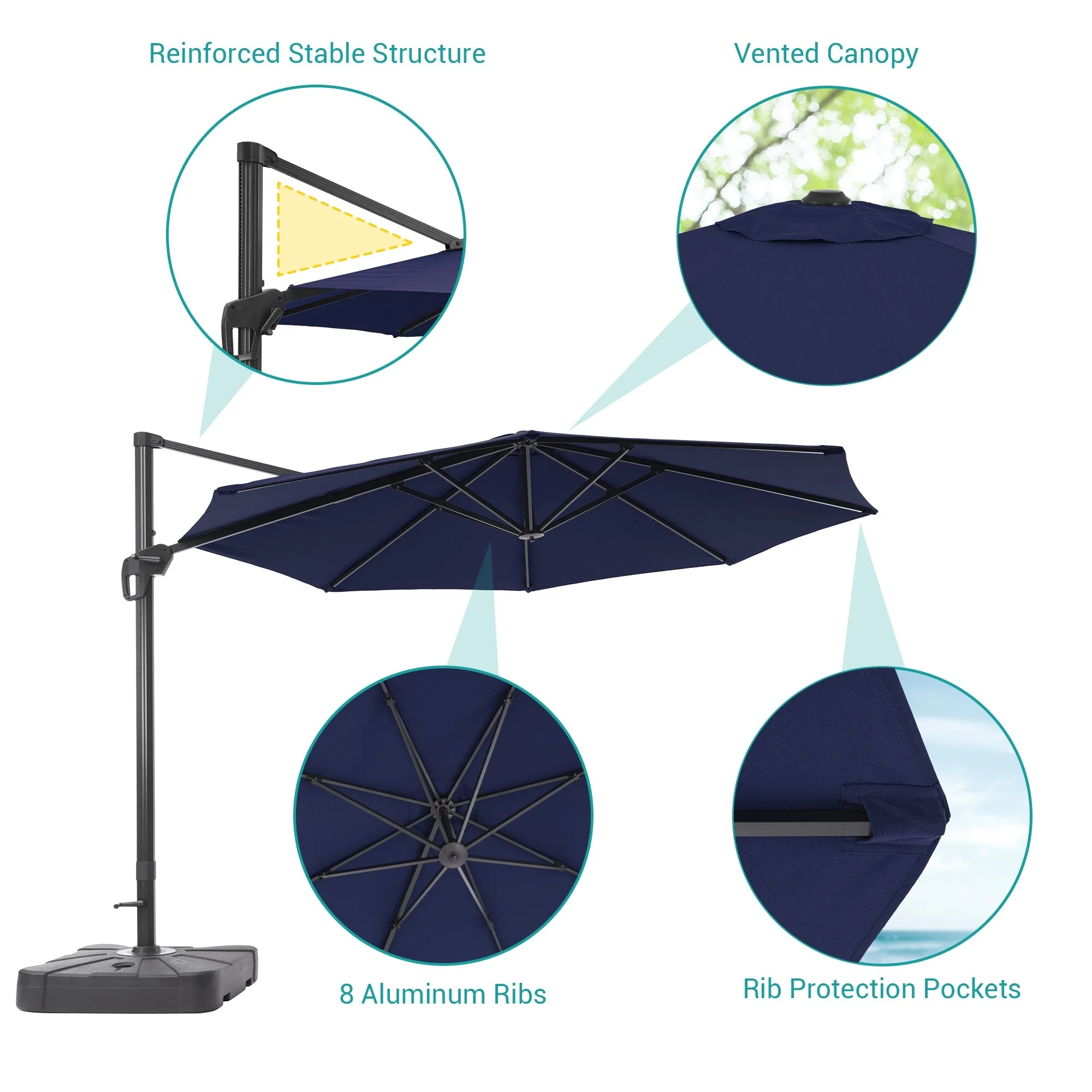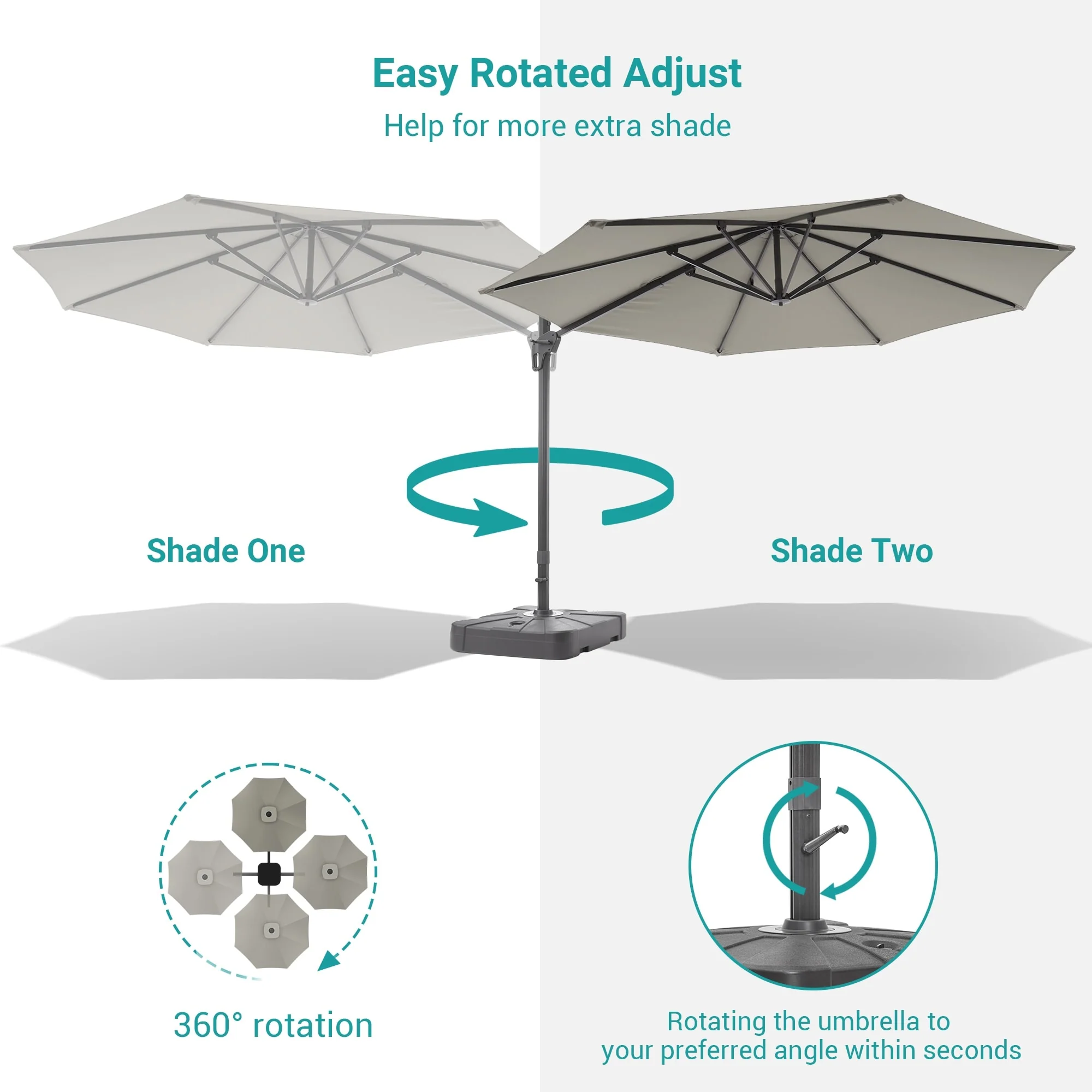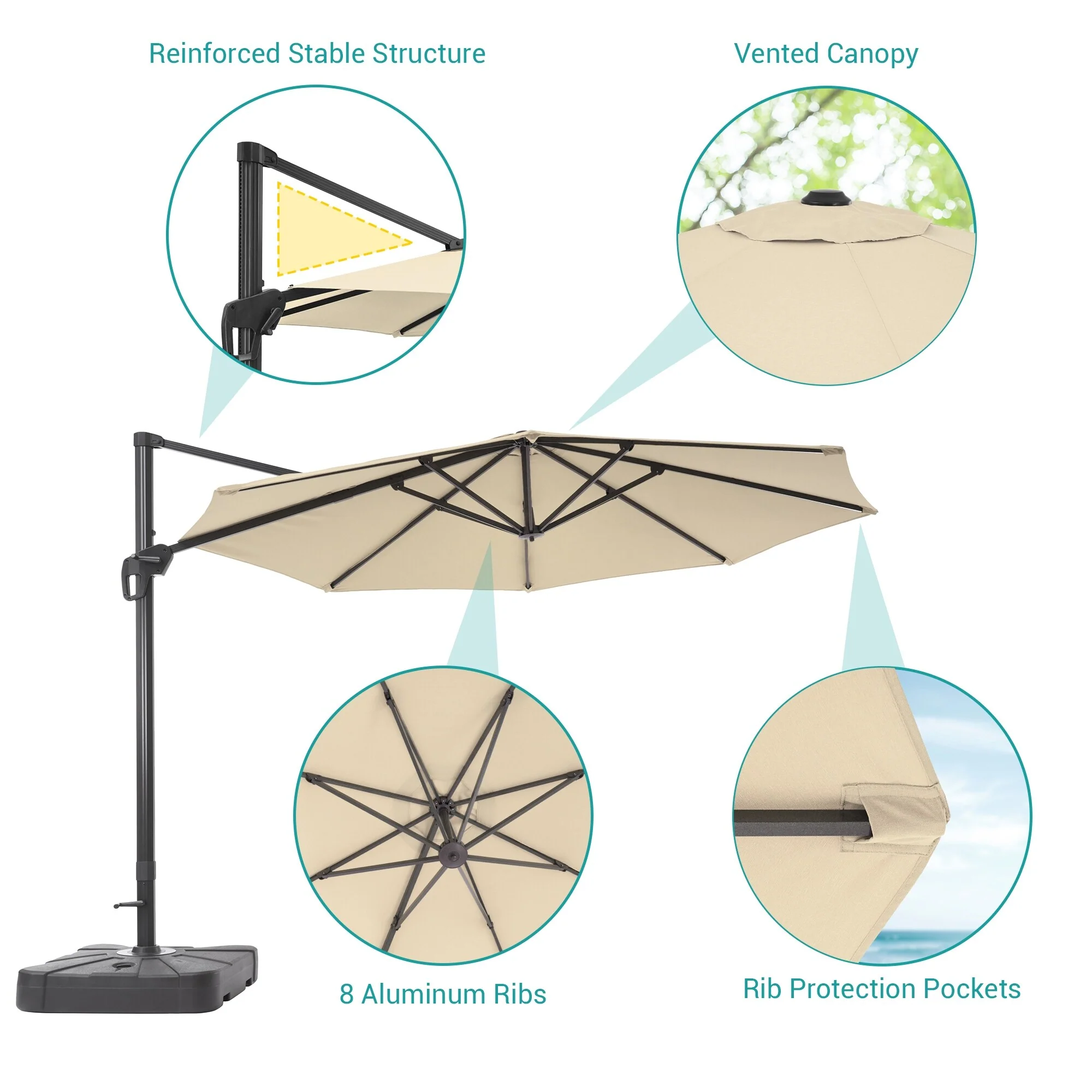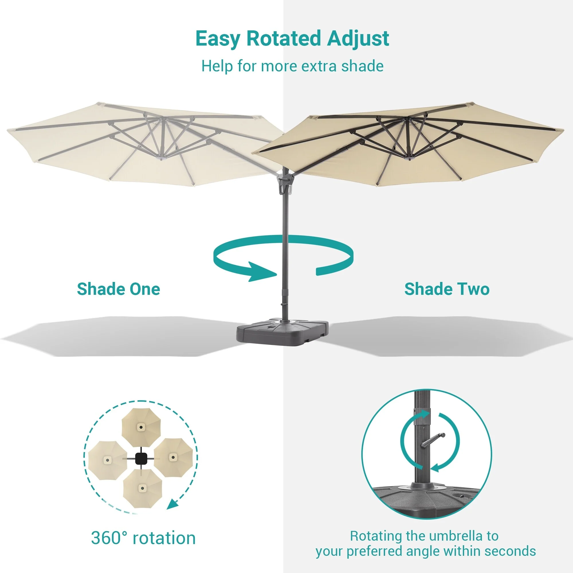 Outdoor Patio Offset Cantilever Umbrella 360-Degree Rotation with Base