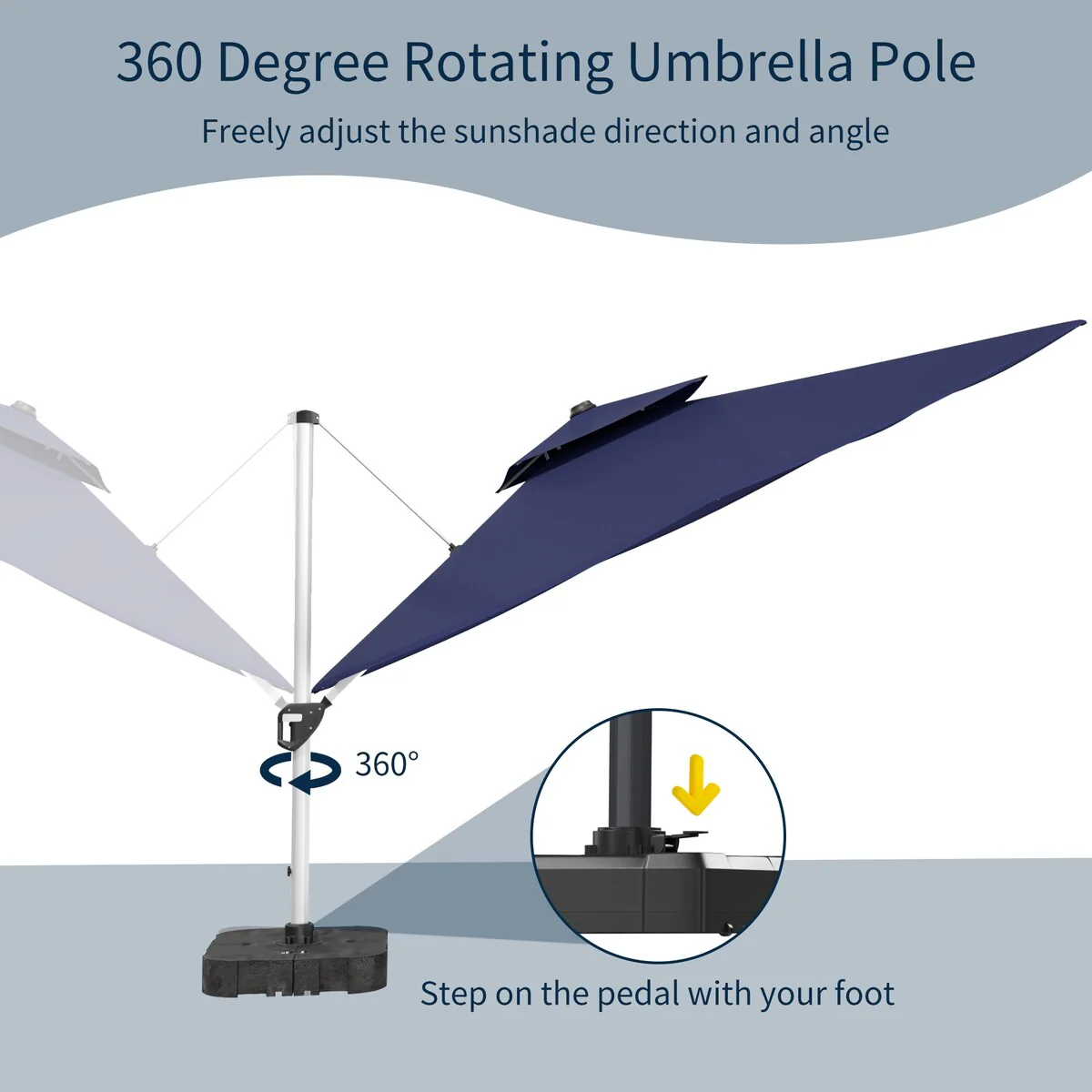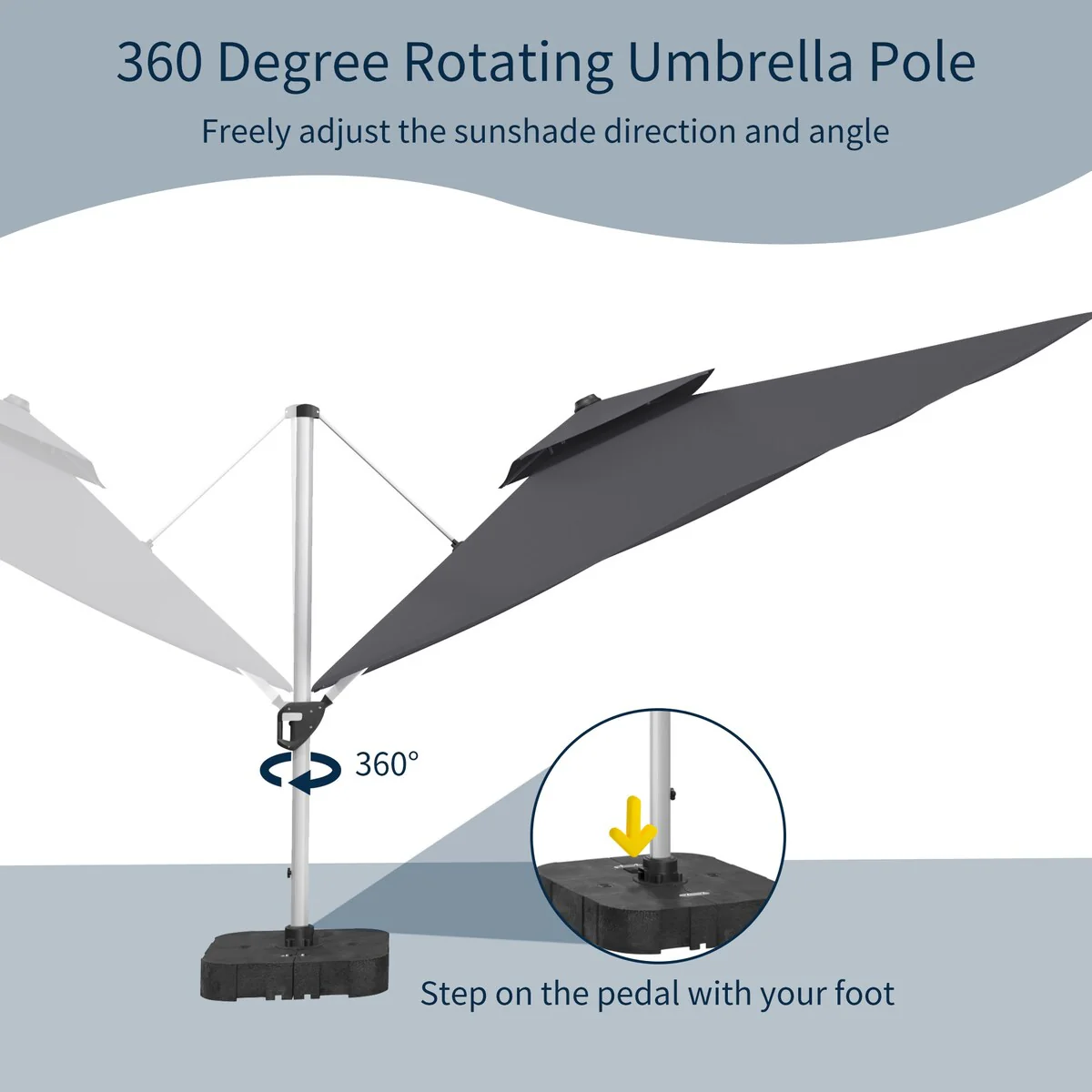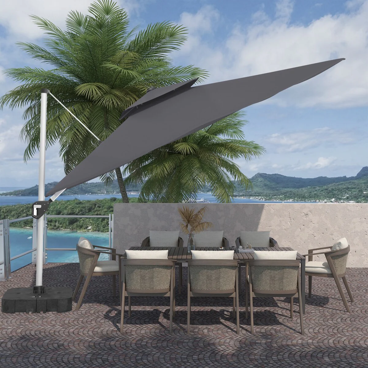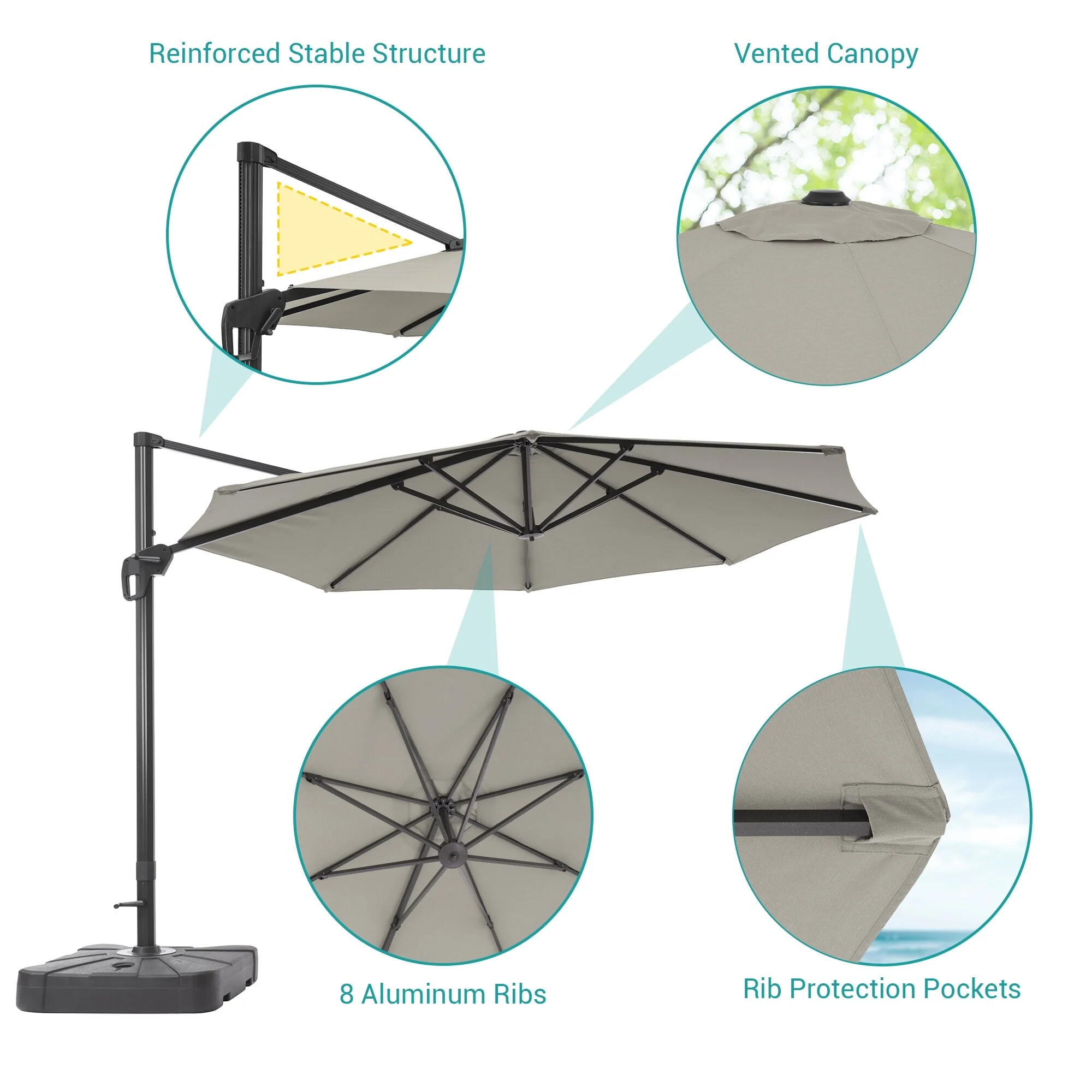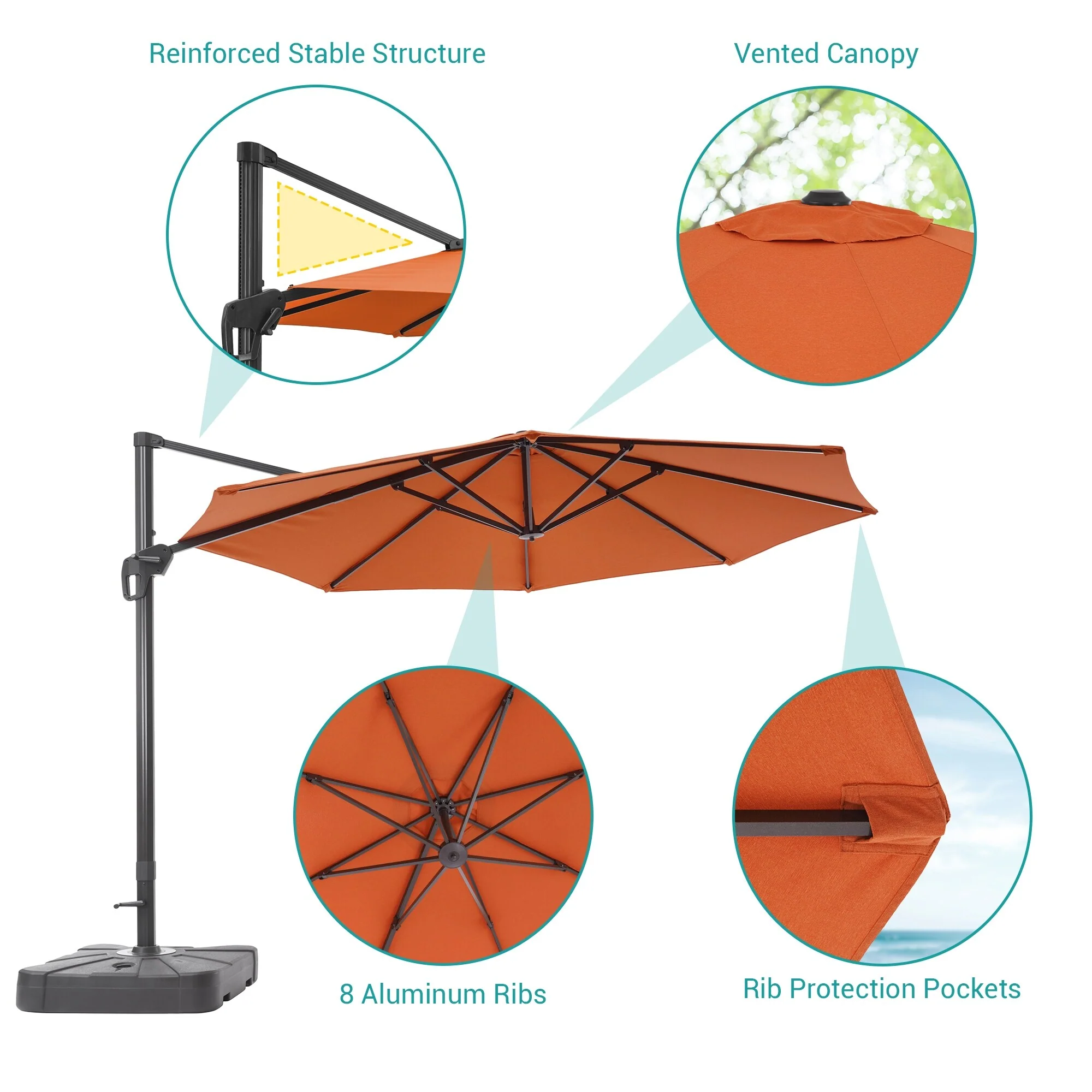 Outdoor Patio Offset Cantilever Umbrella 360-Degree Rotation with Base