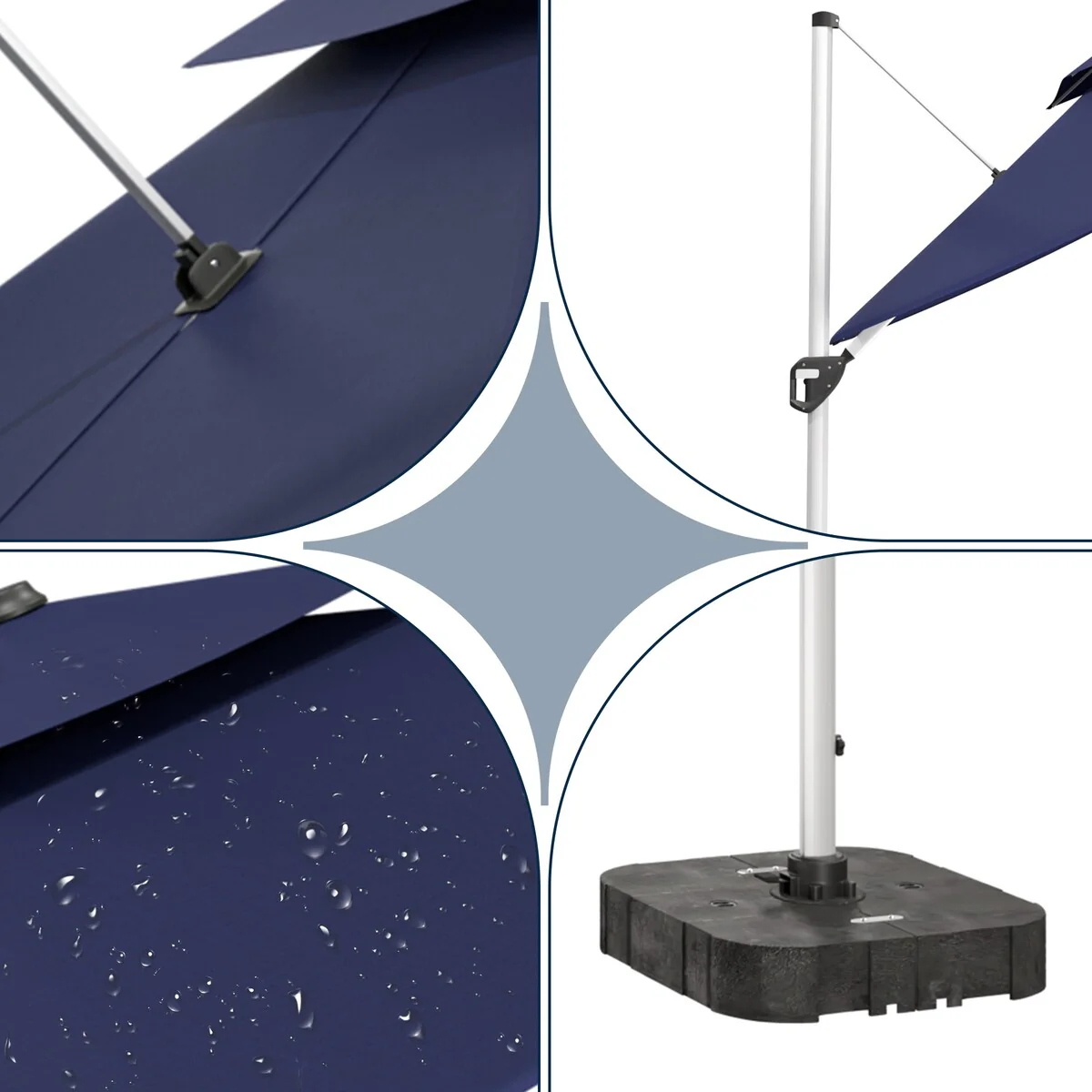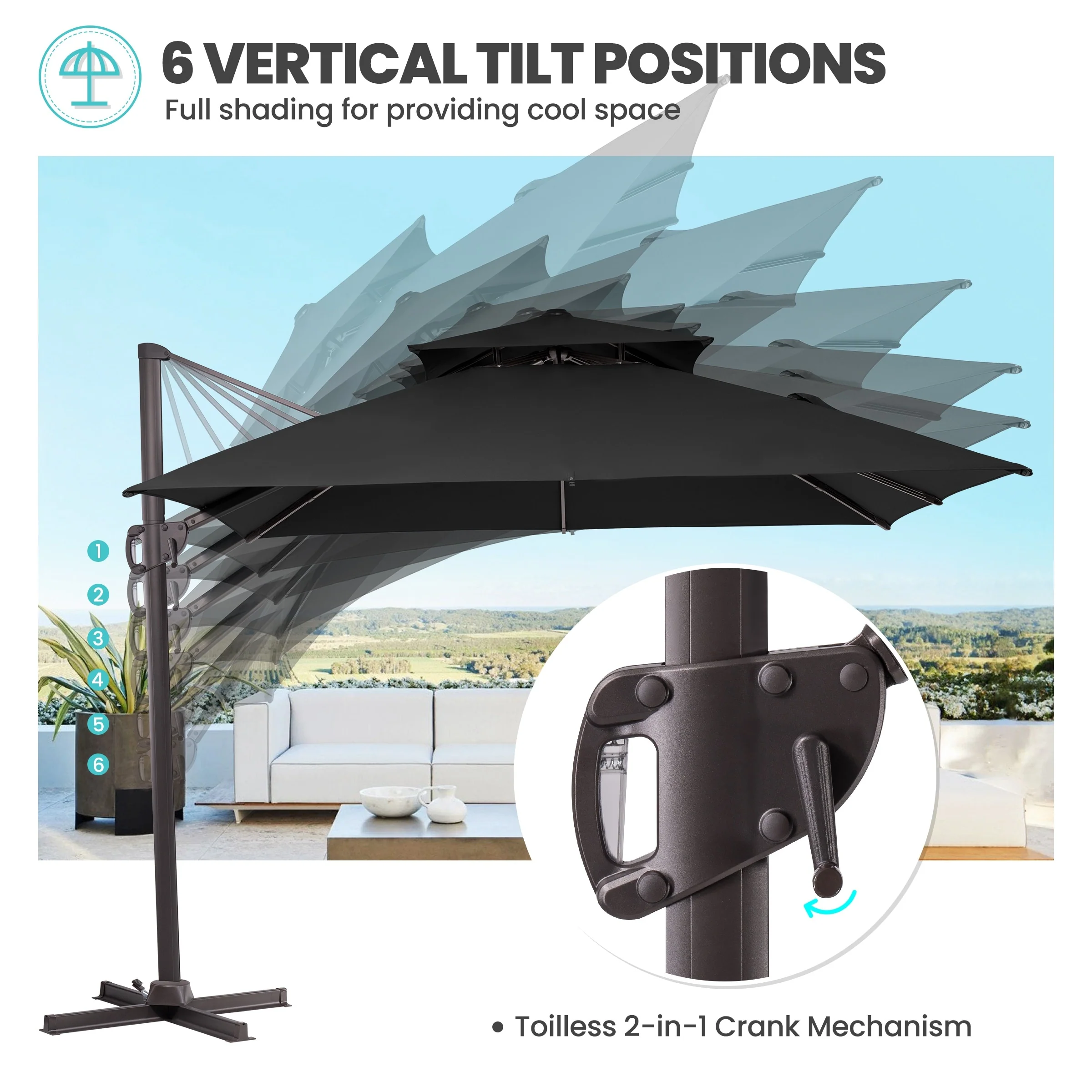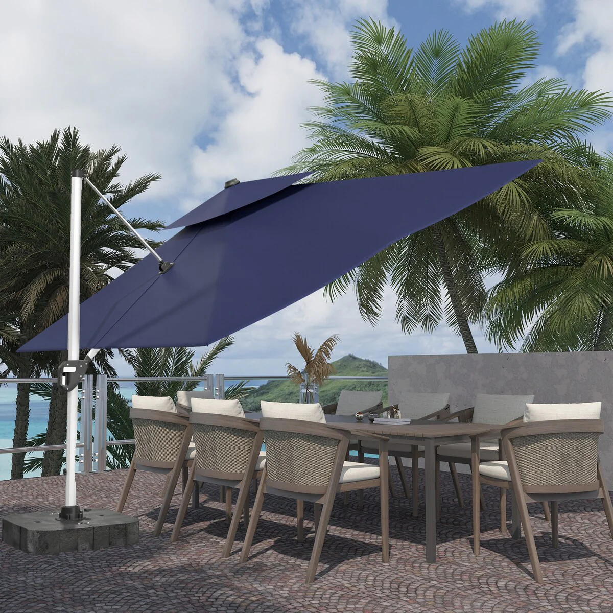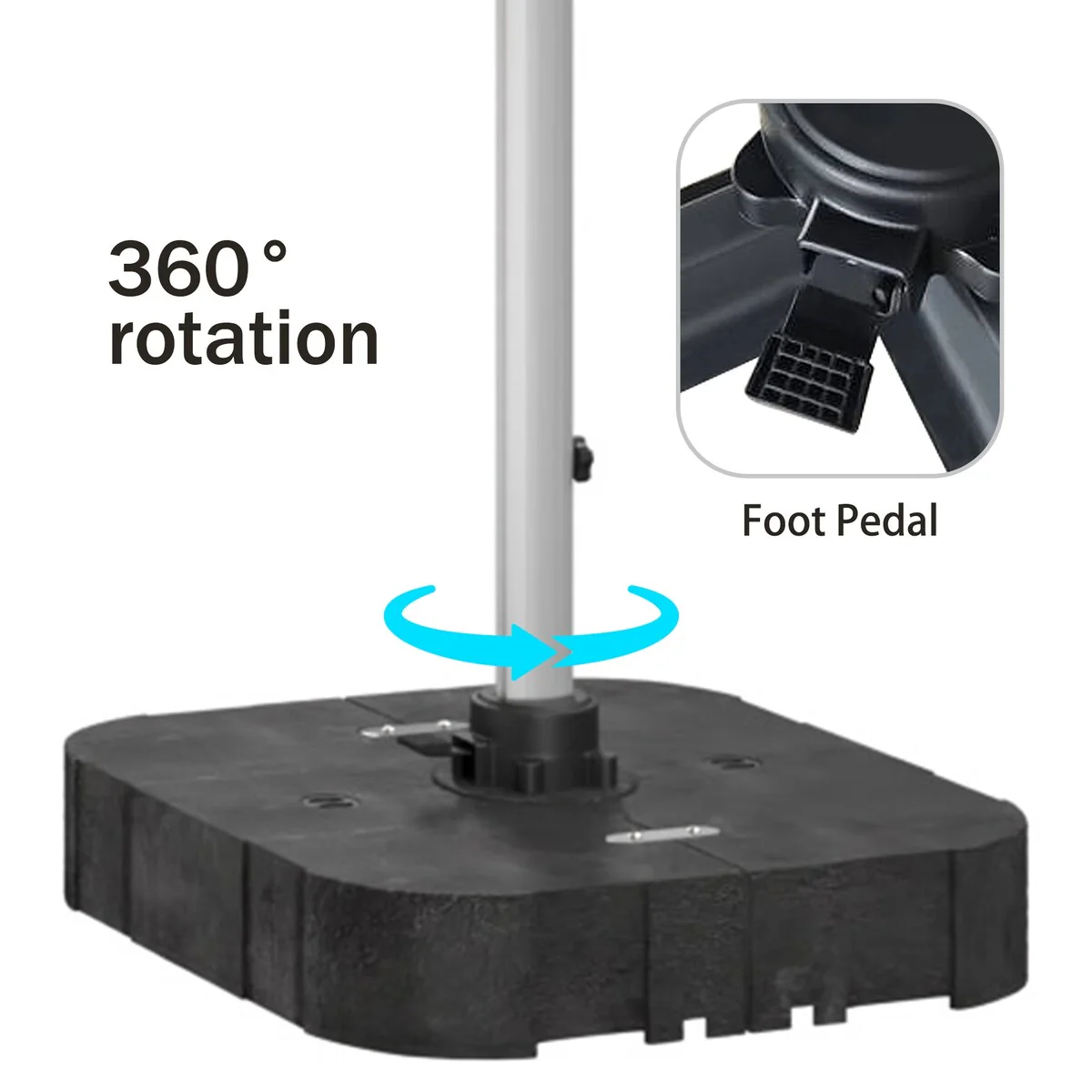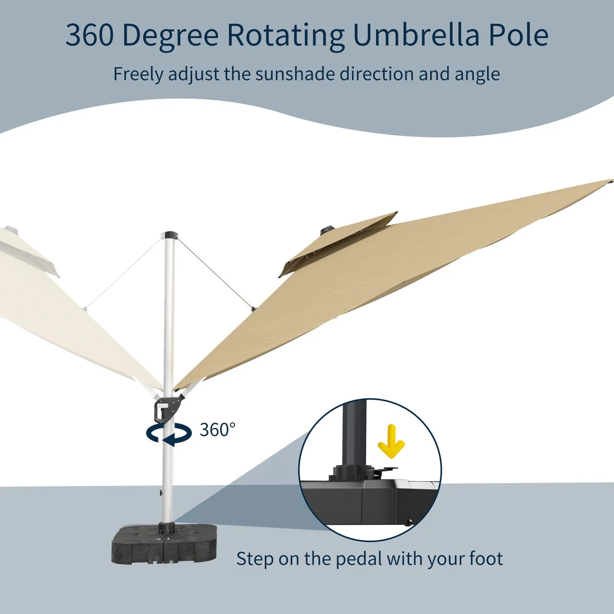 Outdoor Patio Offset Cantilever Umbrella 360-Degree Rotation with Base