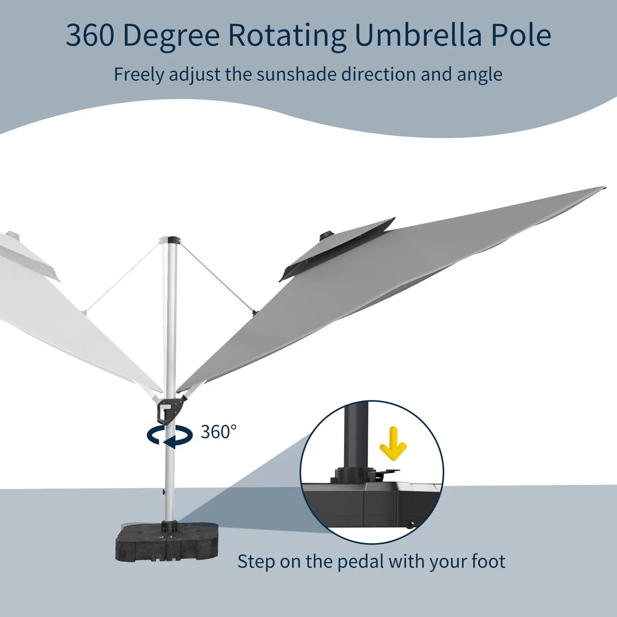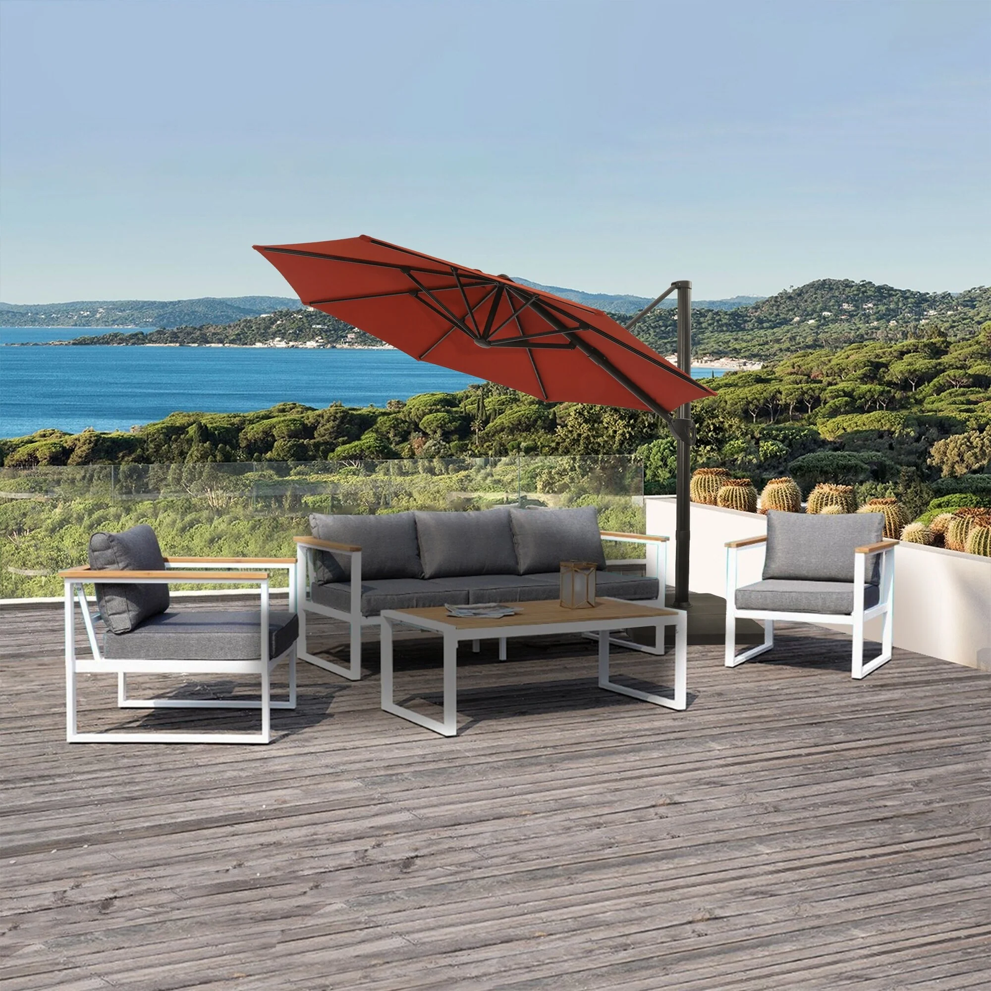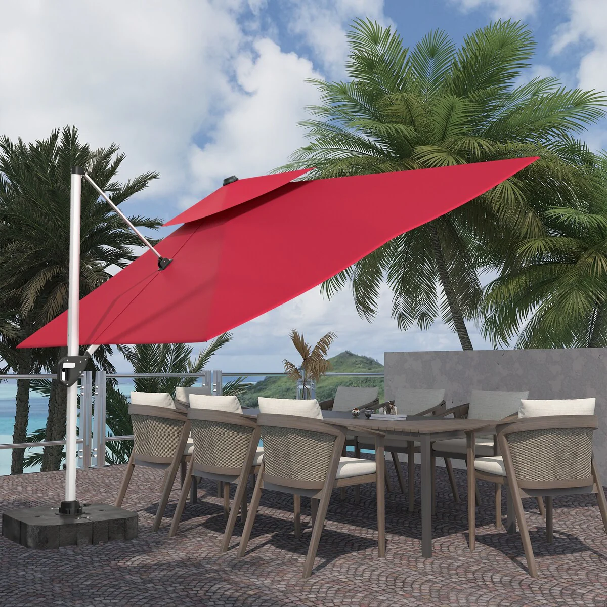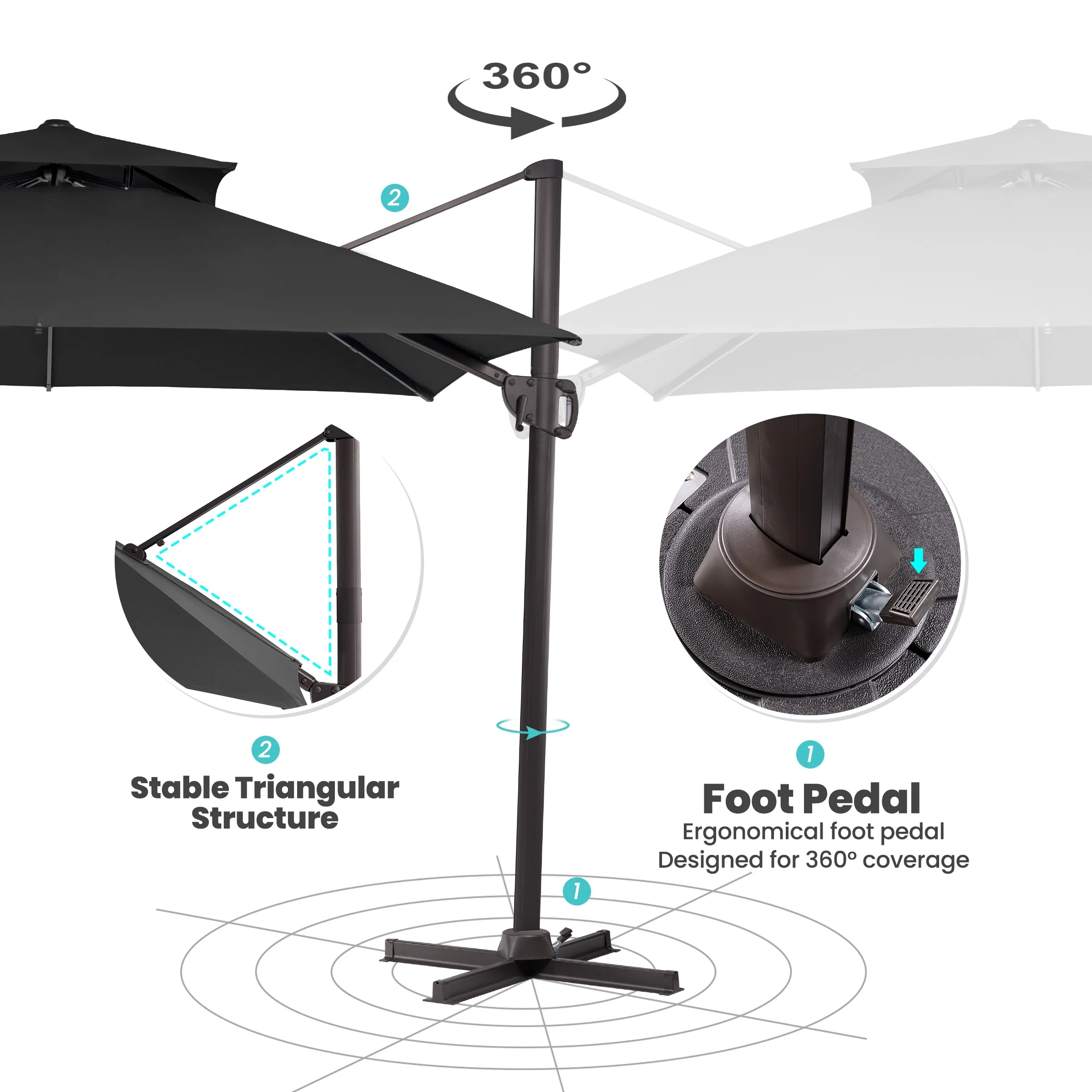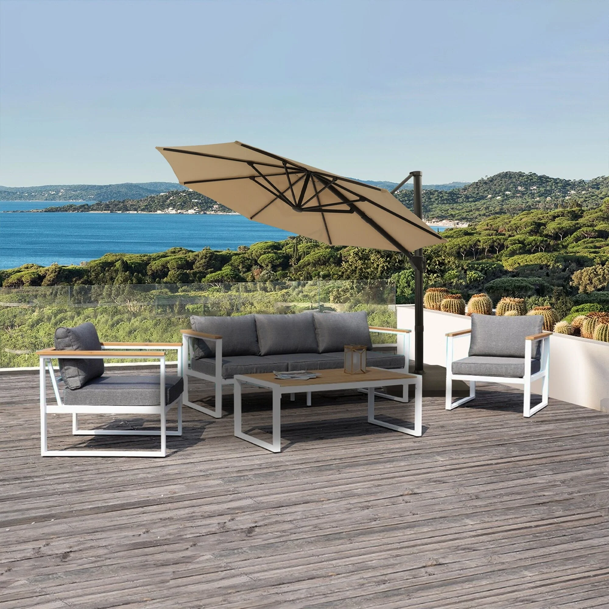 Outdoor Patio Offset Cantilever Umbrella 360-Degree Rotation with Base