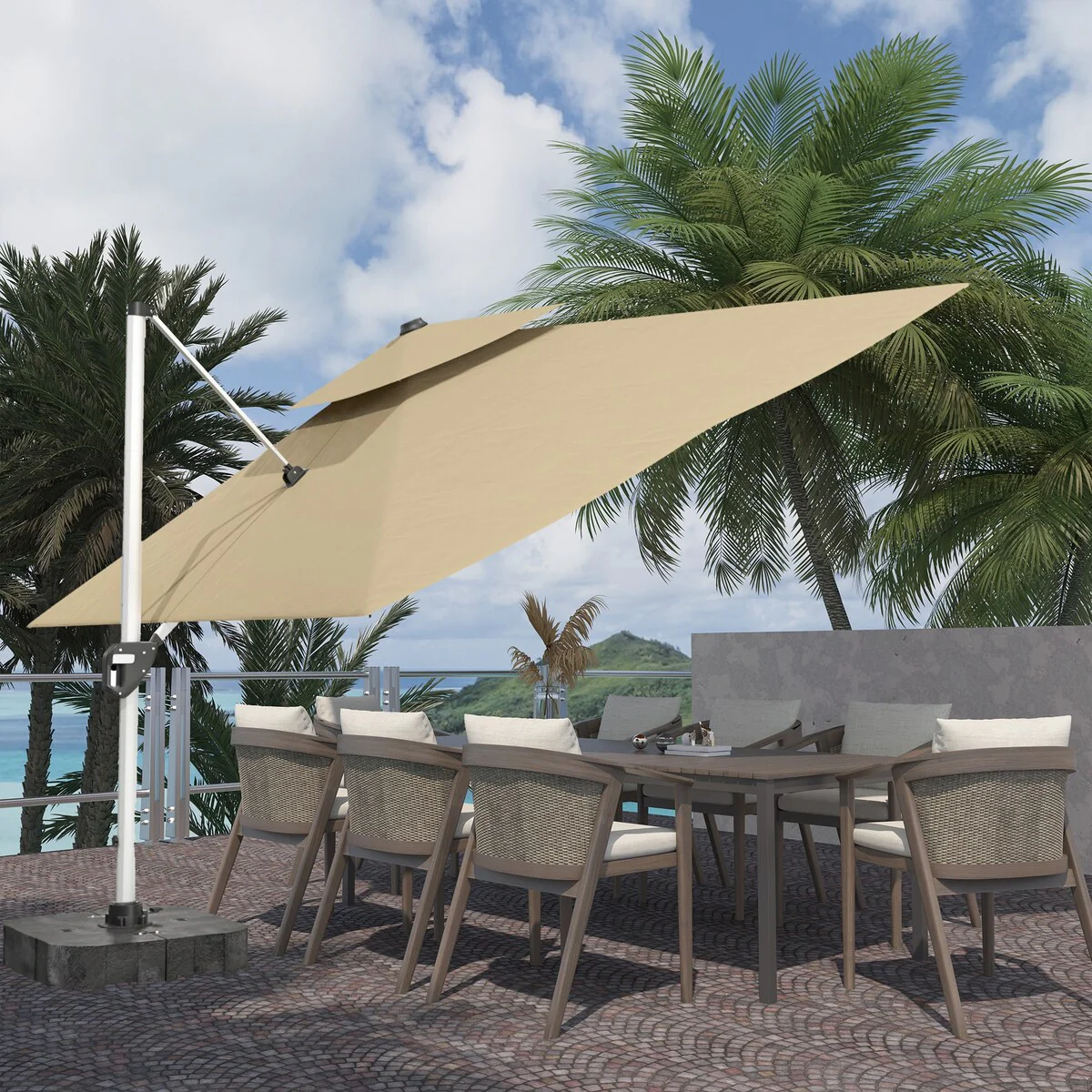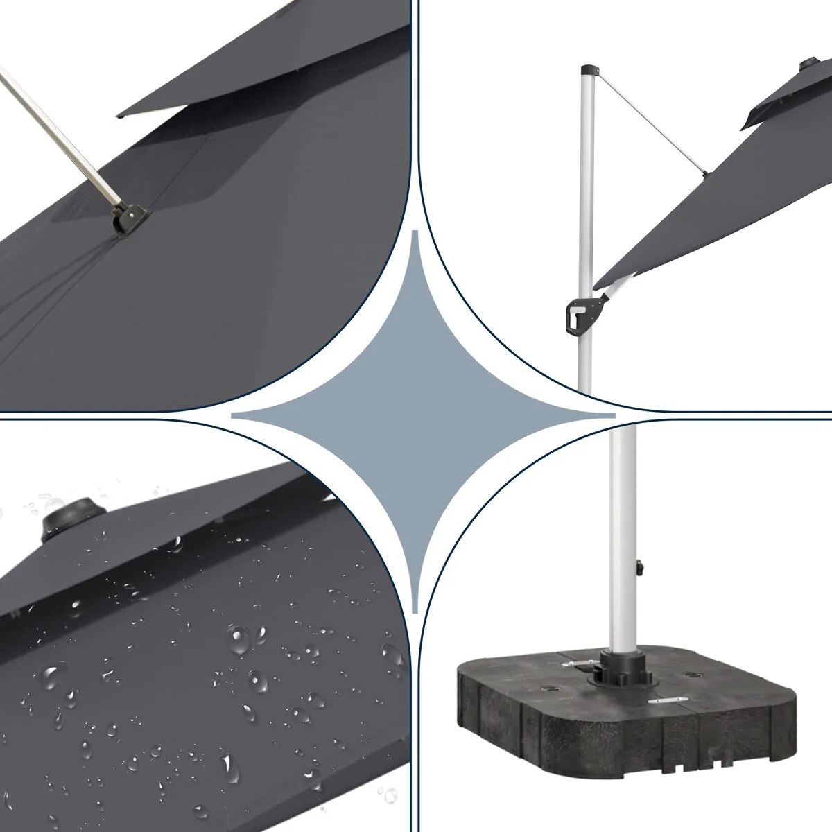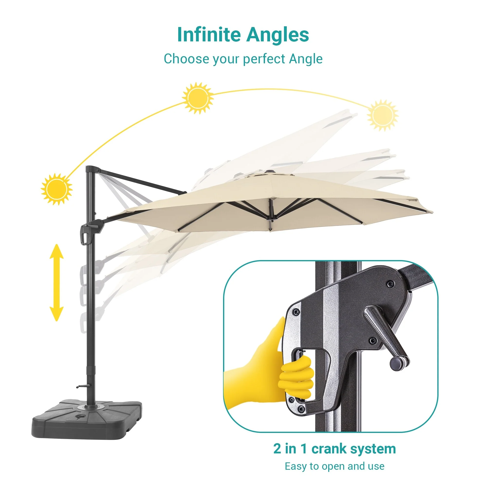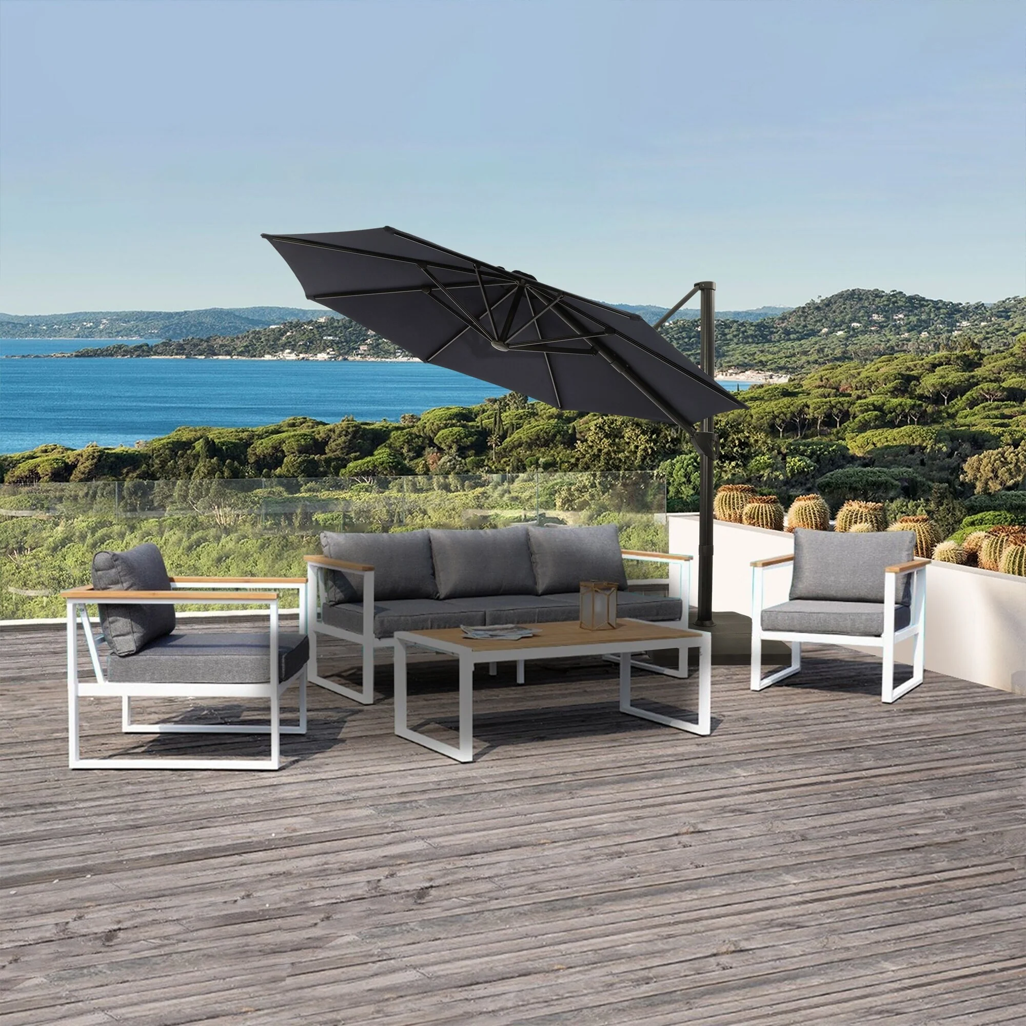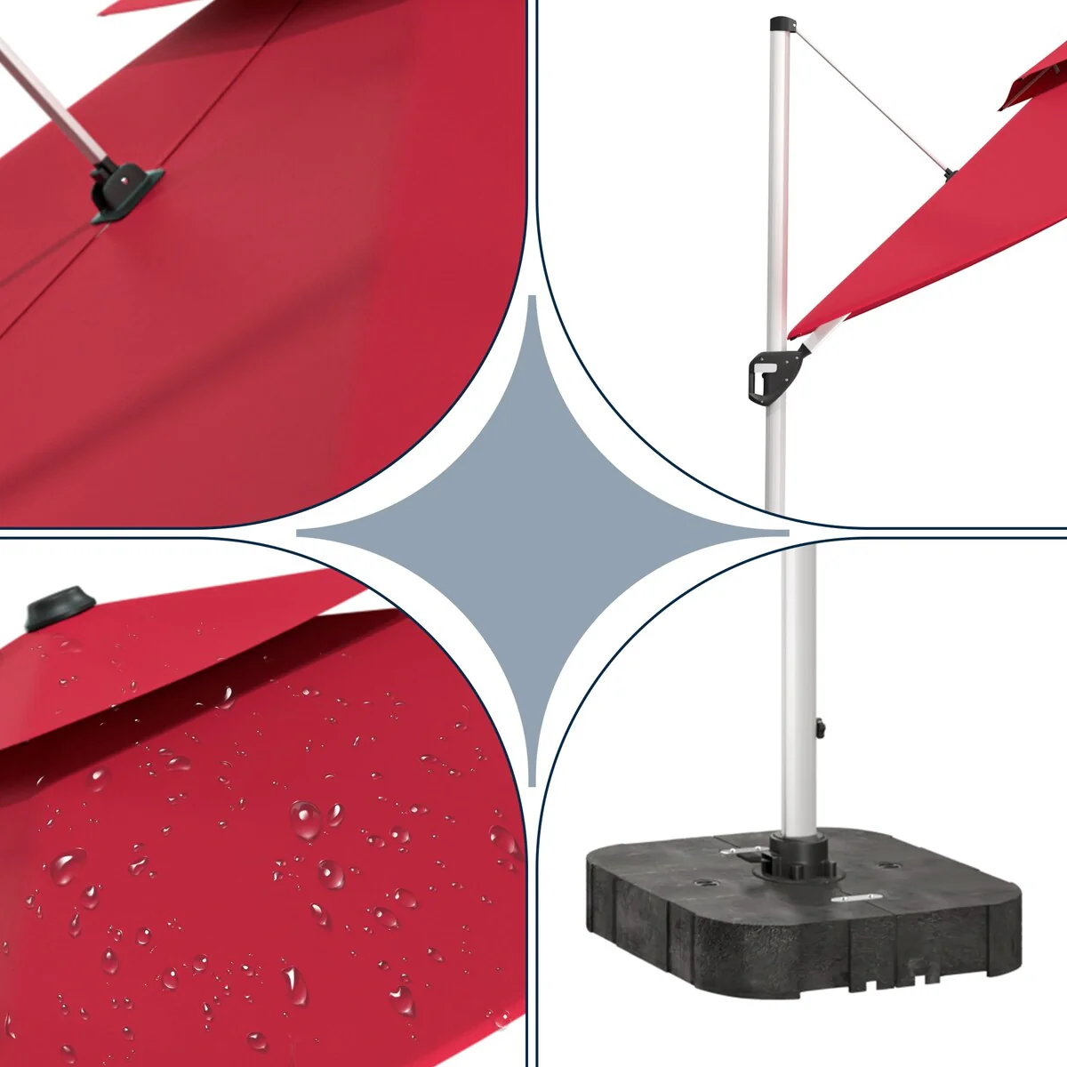 Outdoor Patio Offset Cantilever Umbrella 360-Degree Rotation with Base