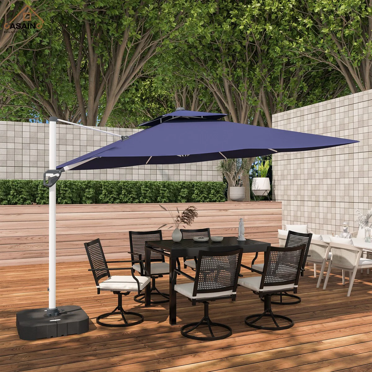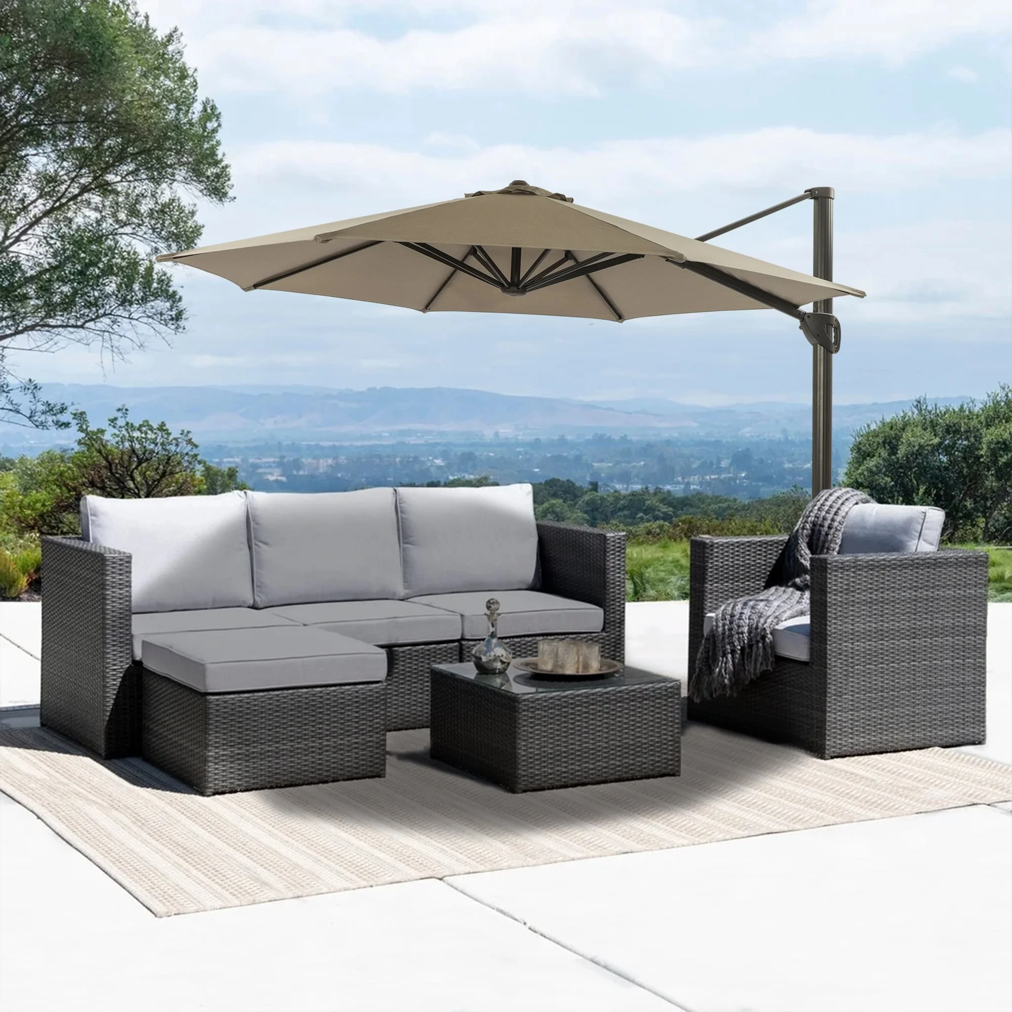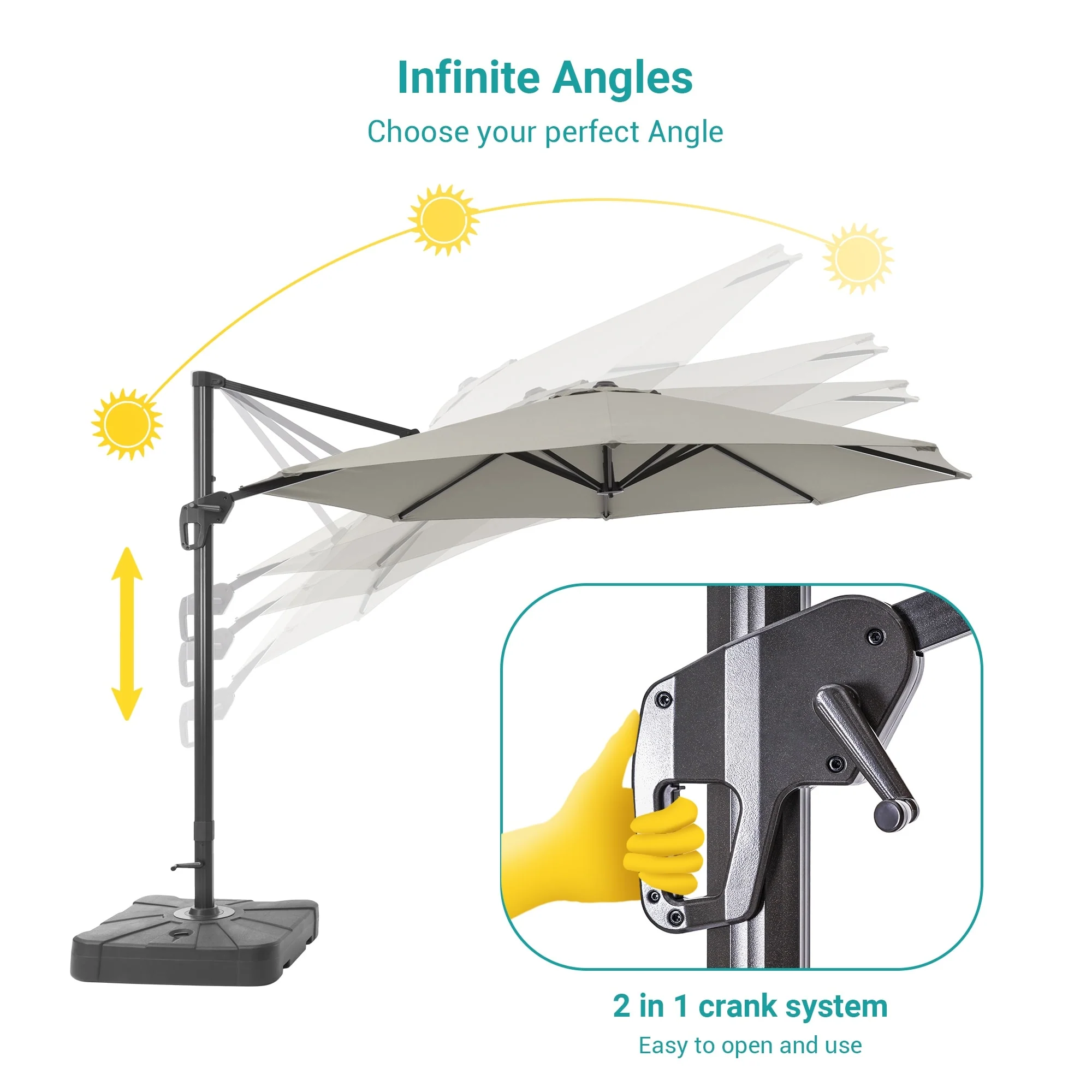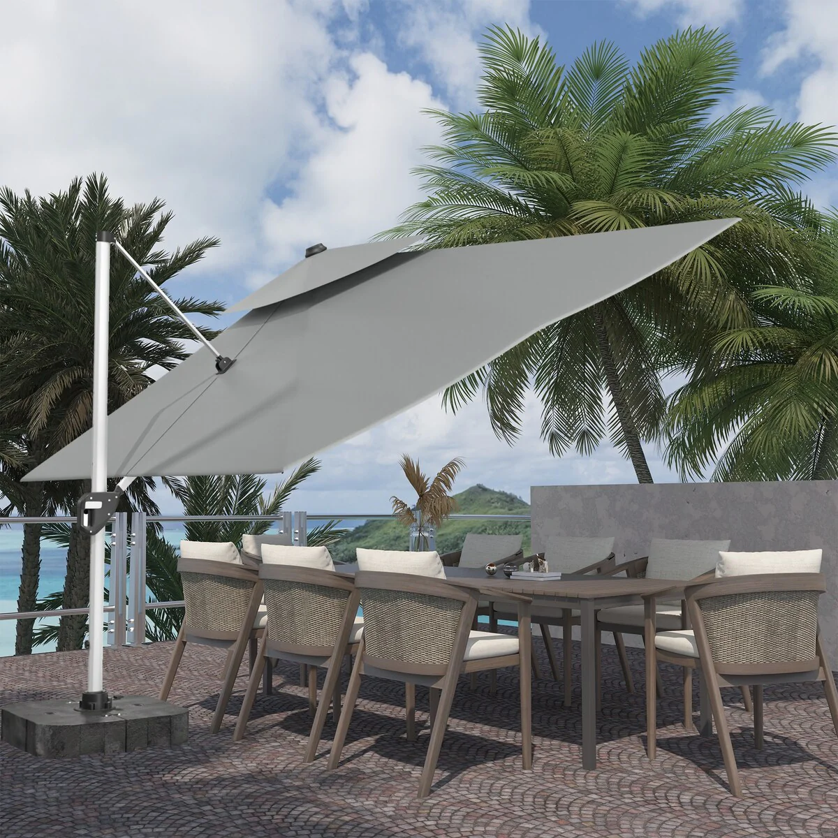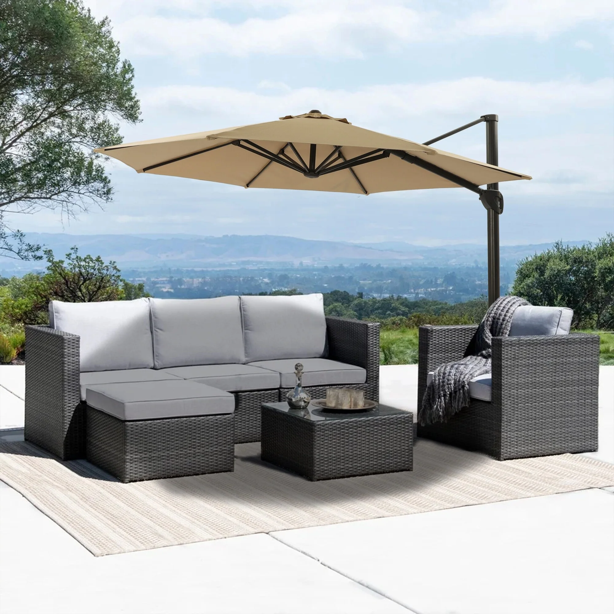 Outdoor Patio Offset Cantilever Umbrella 360-Degree Rotation with Base