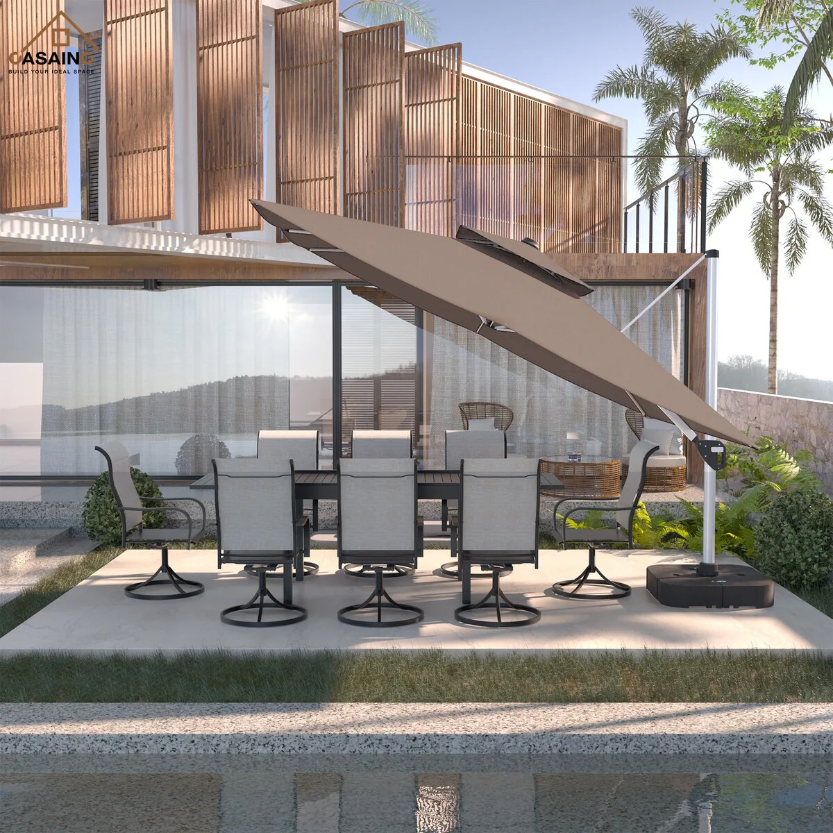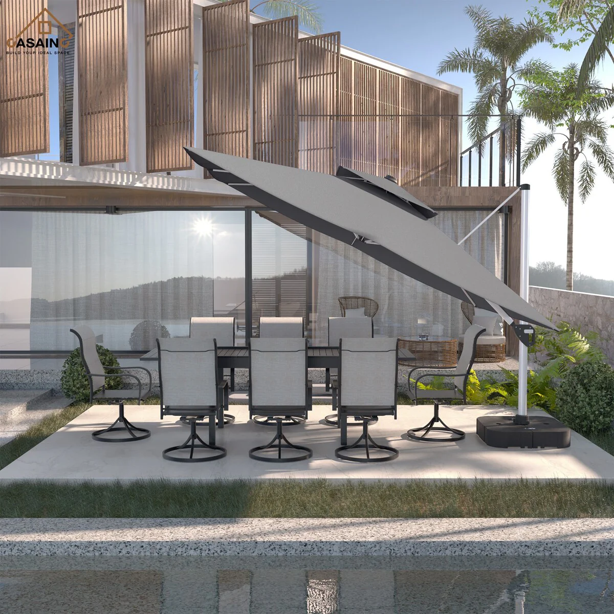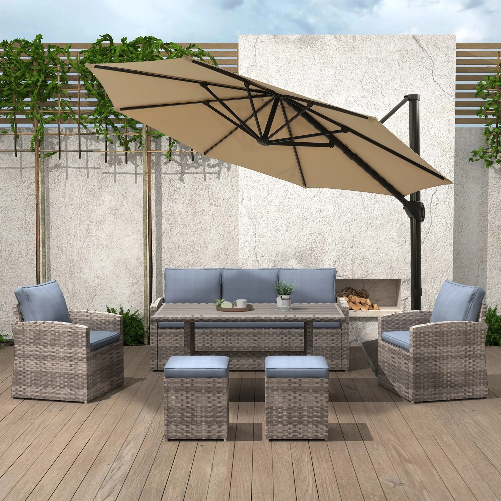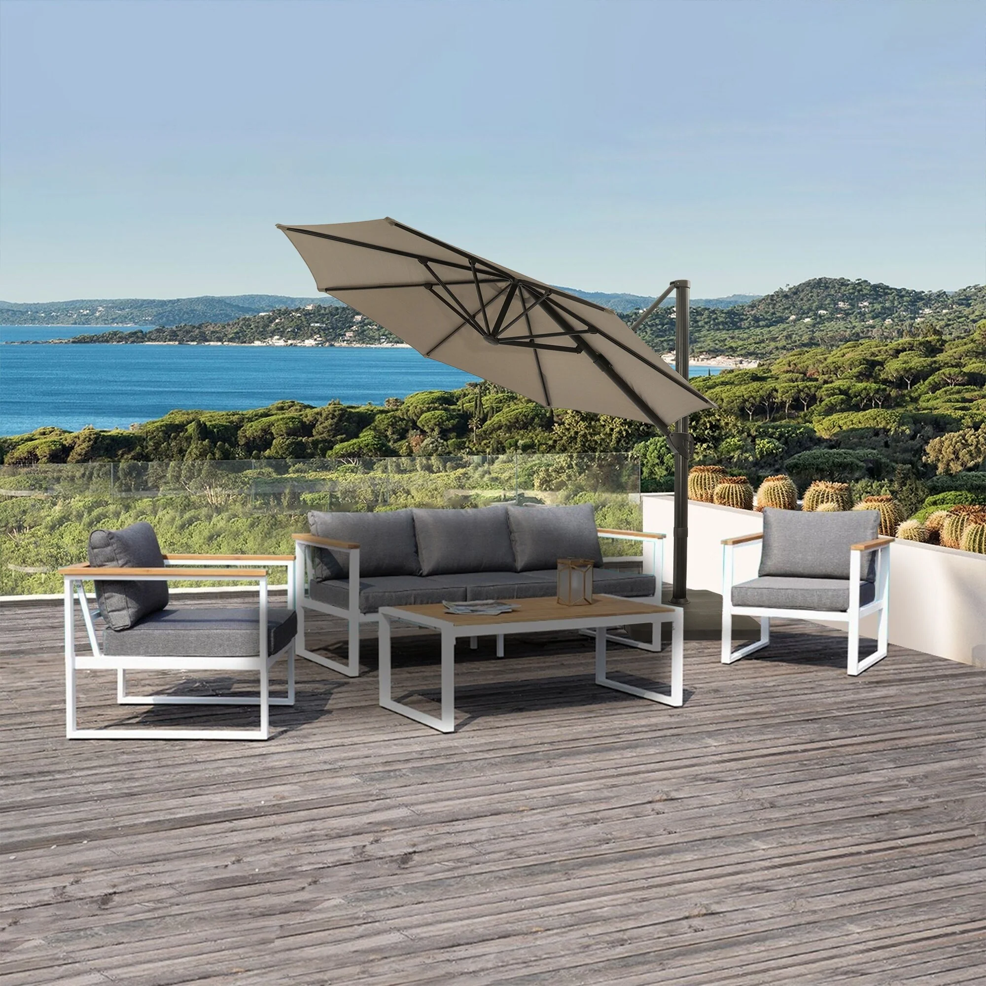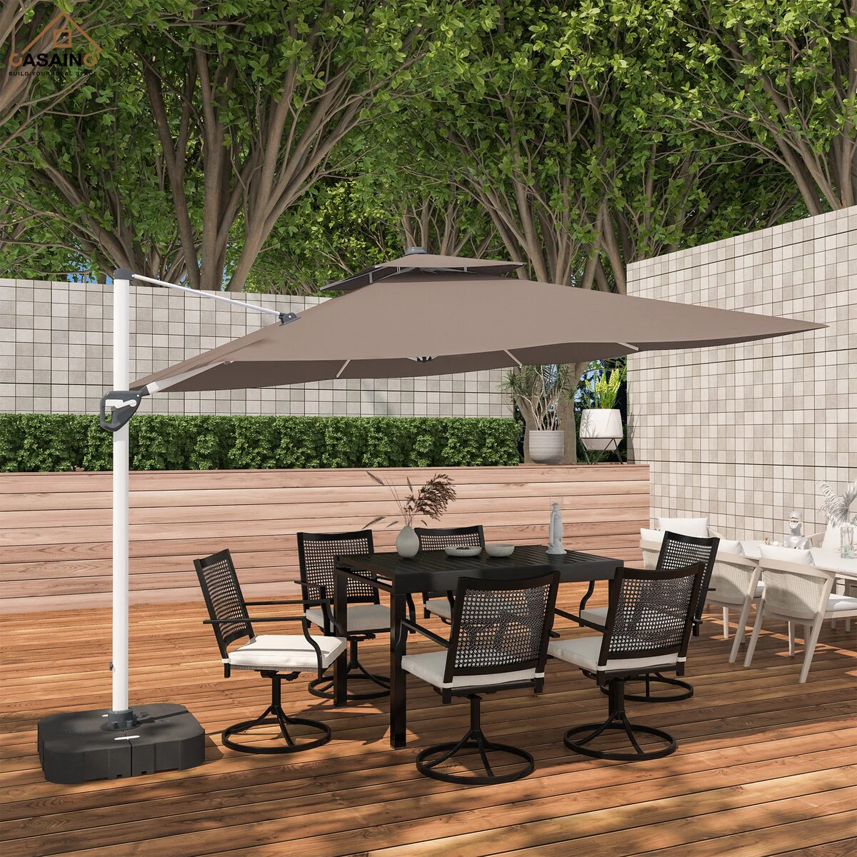 Outdoor Patio Offset Cantilever Umbrella 360-Degree Rotation with Base