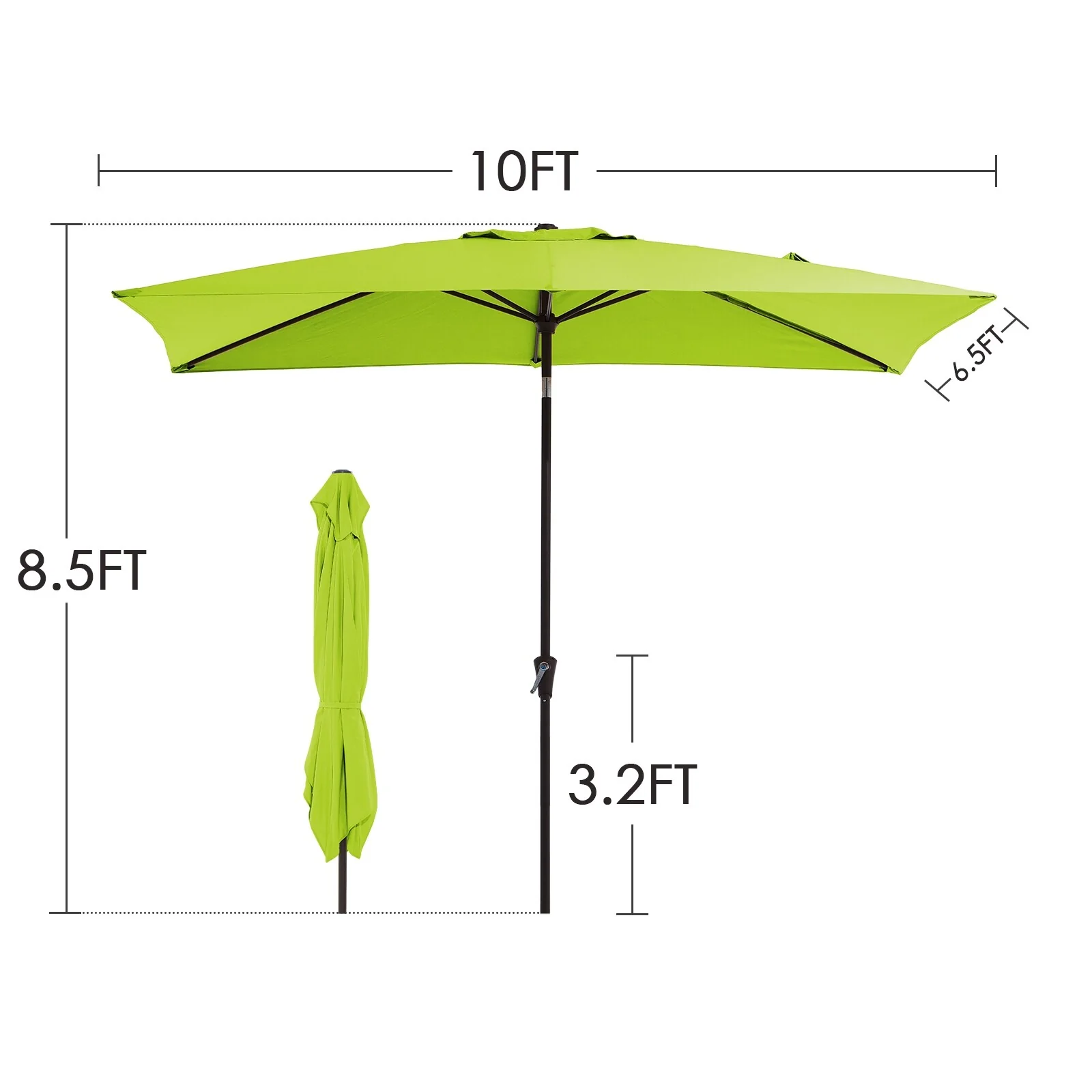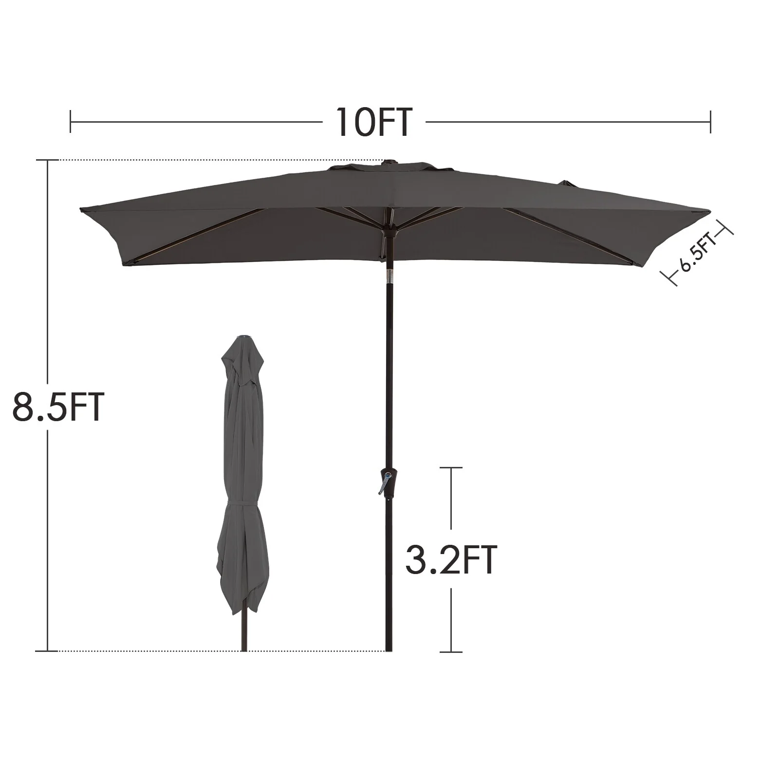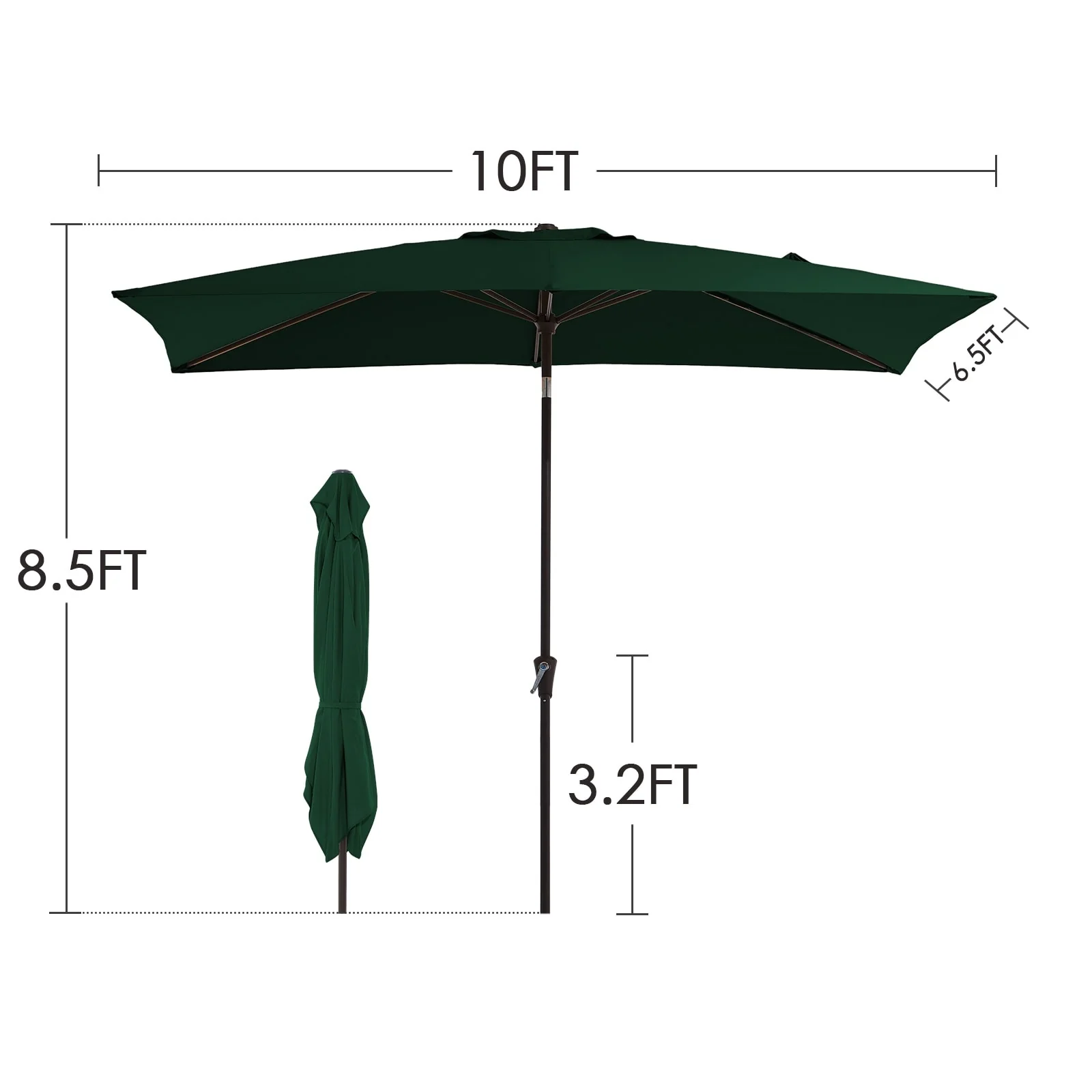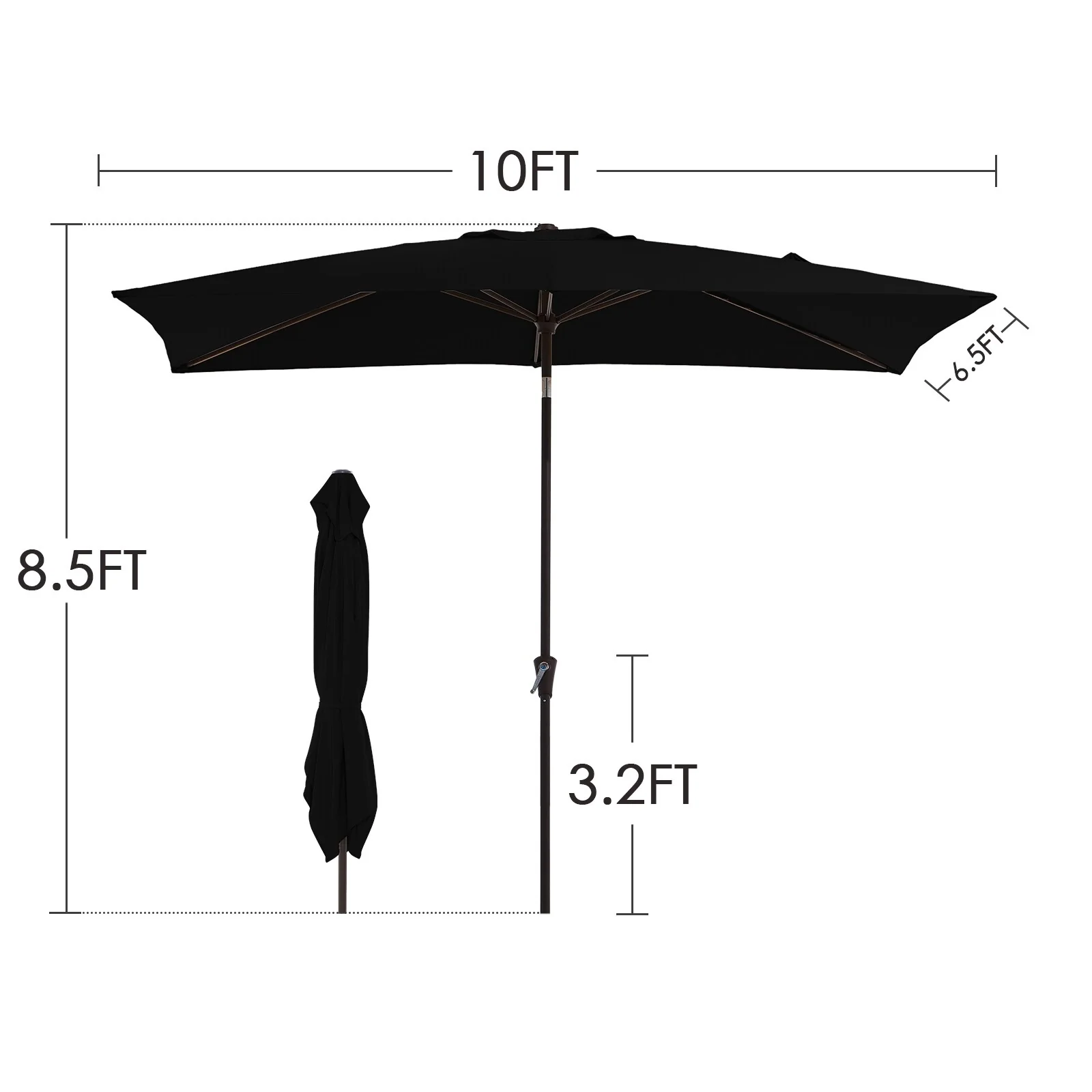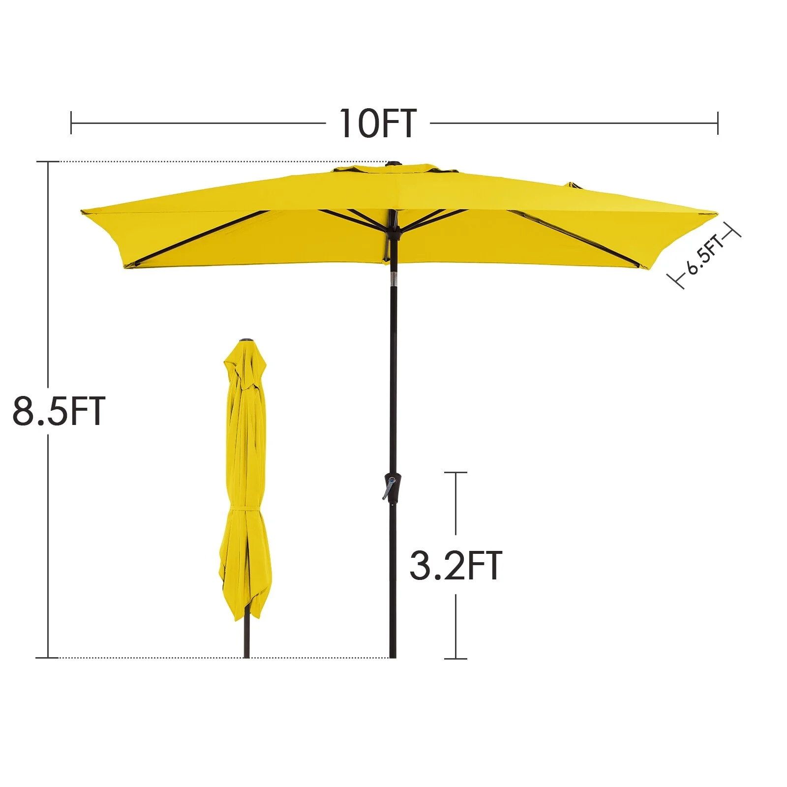 6.5*10ft Rectangular Patio Market Umbrella with Crank & Tilt, UV & Water-Resistant Canopy