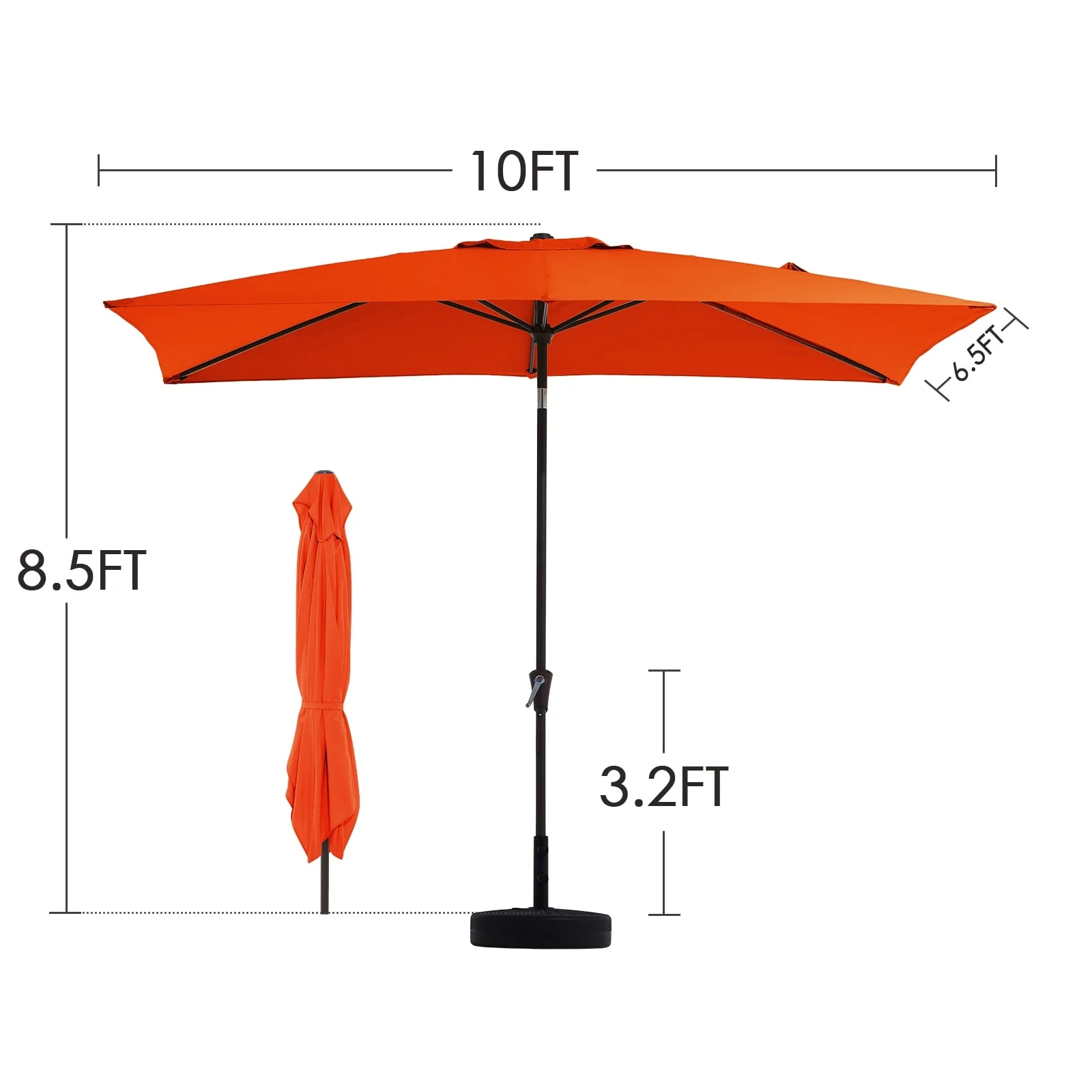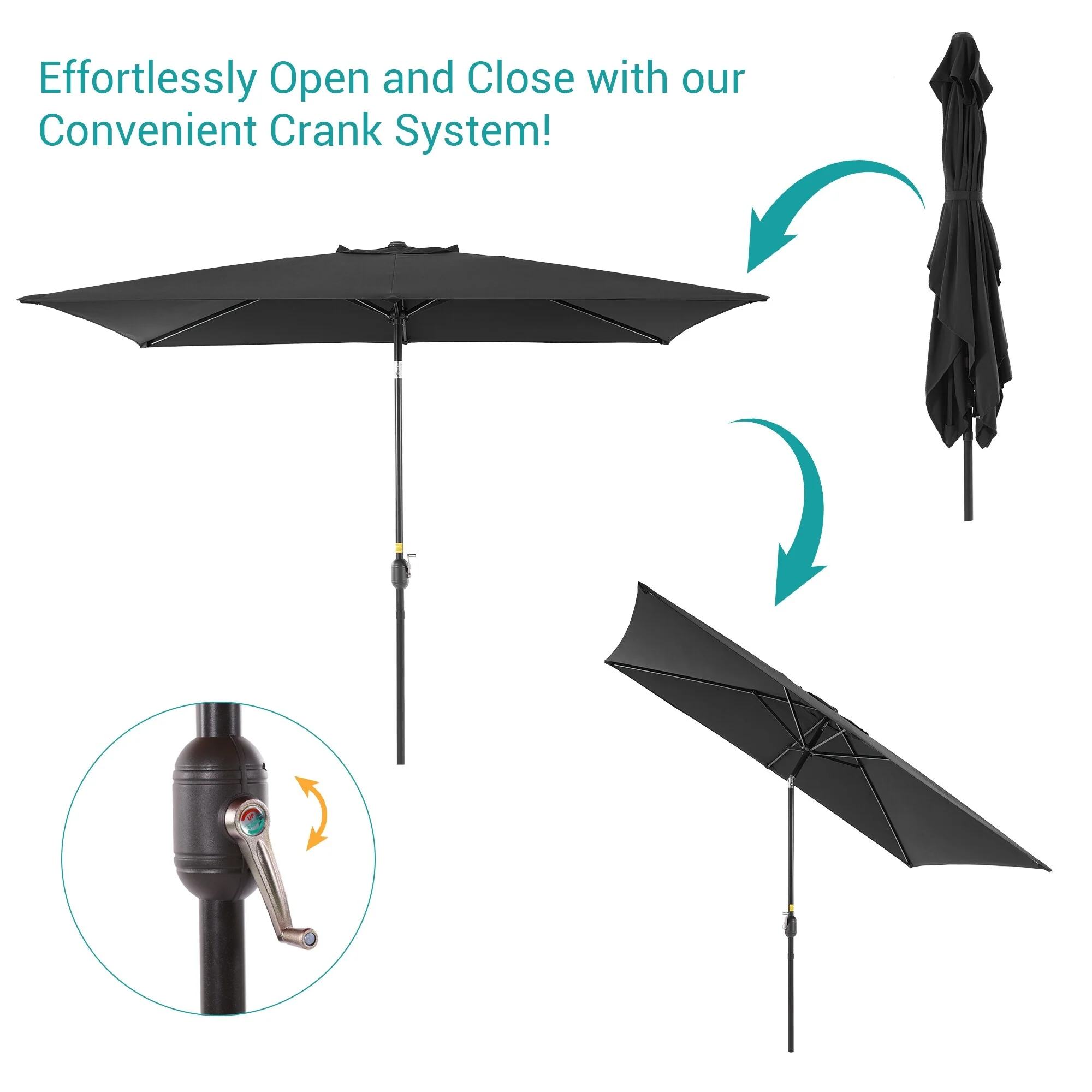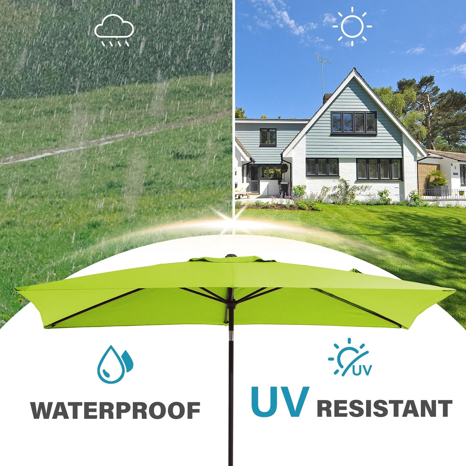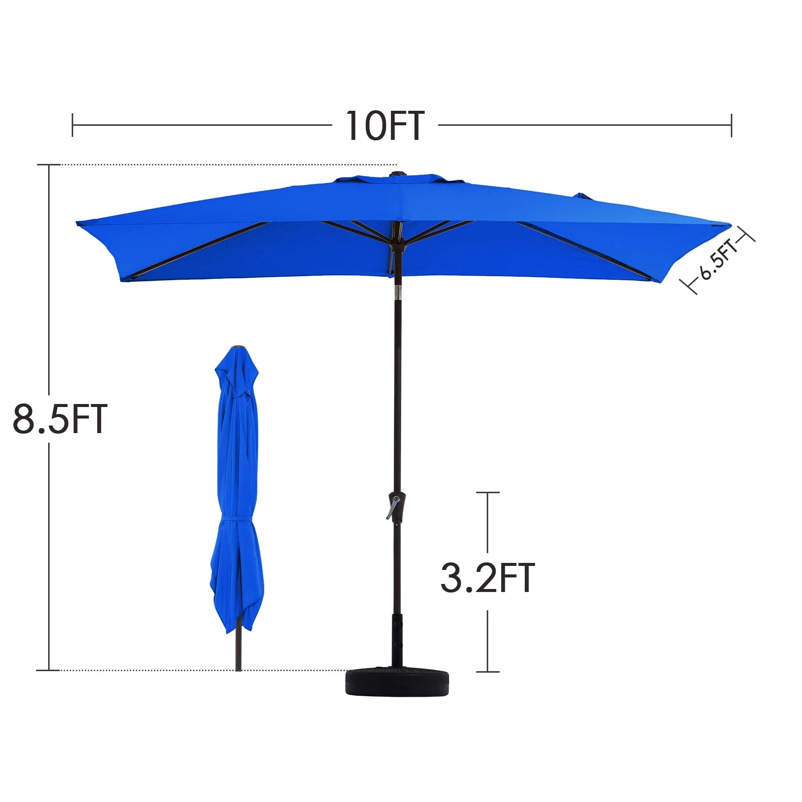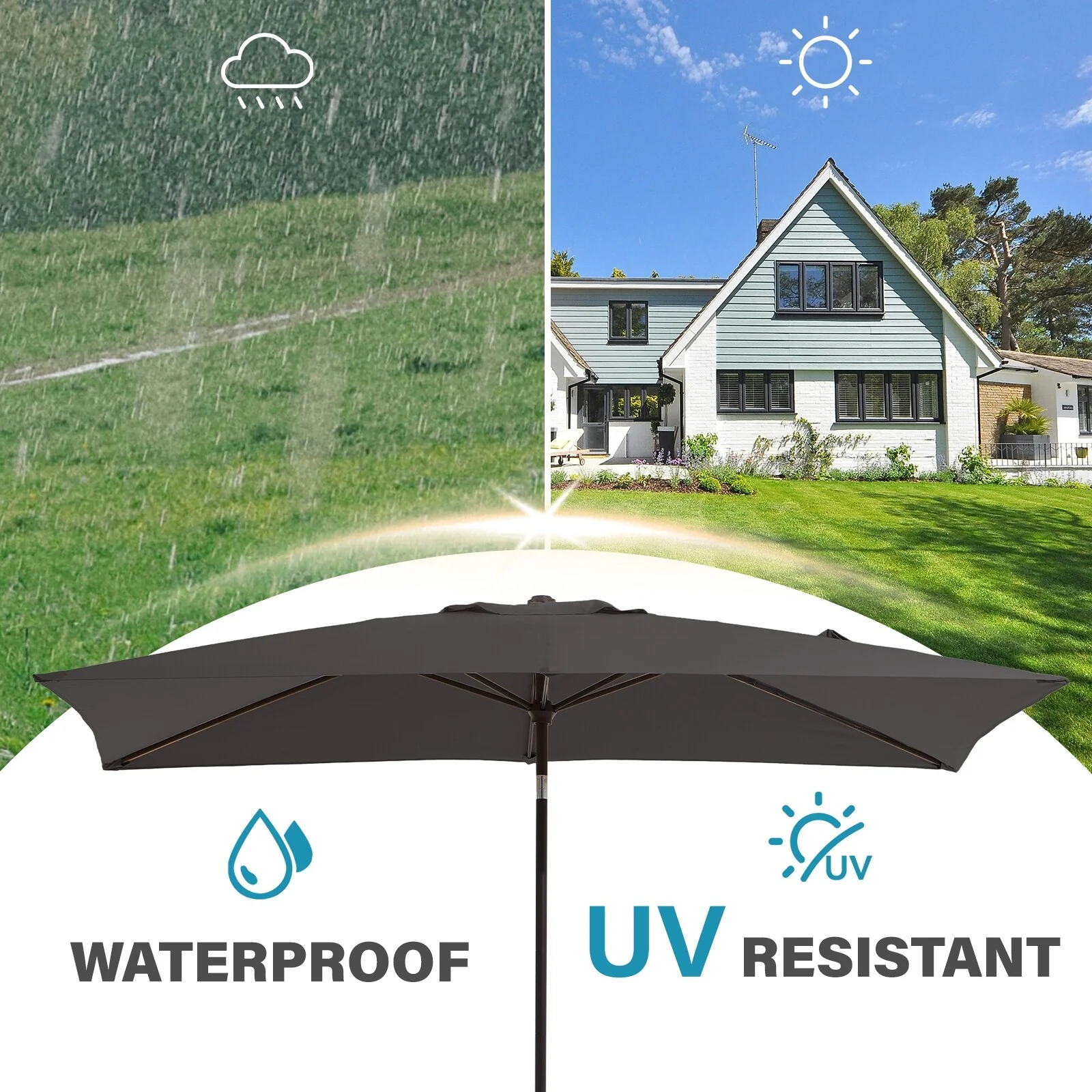 6.5*10ft Rectangular Patio Market Umbrella with Crank & Tilt, UV & Water-Resistant Canopy