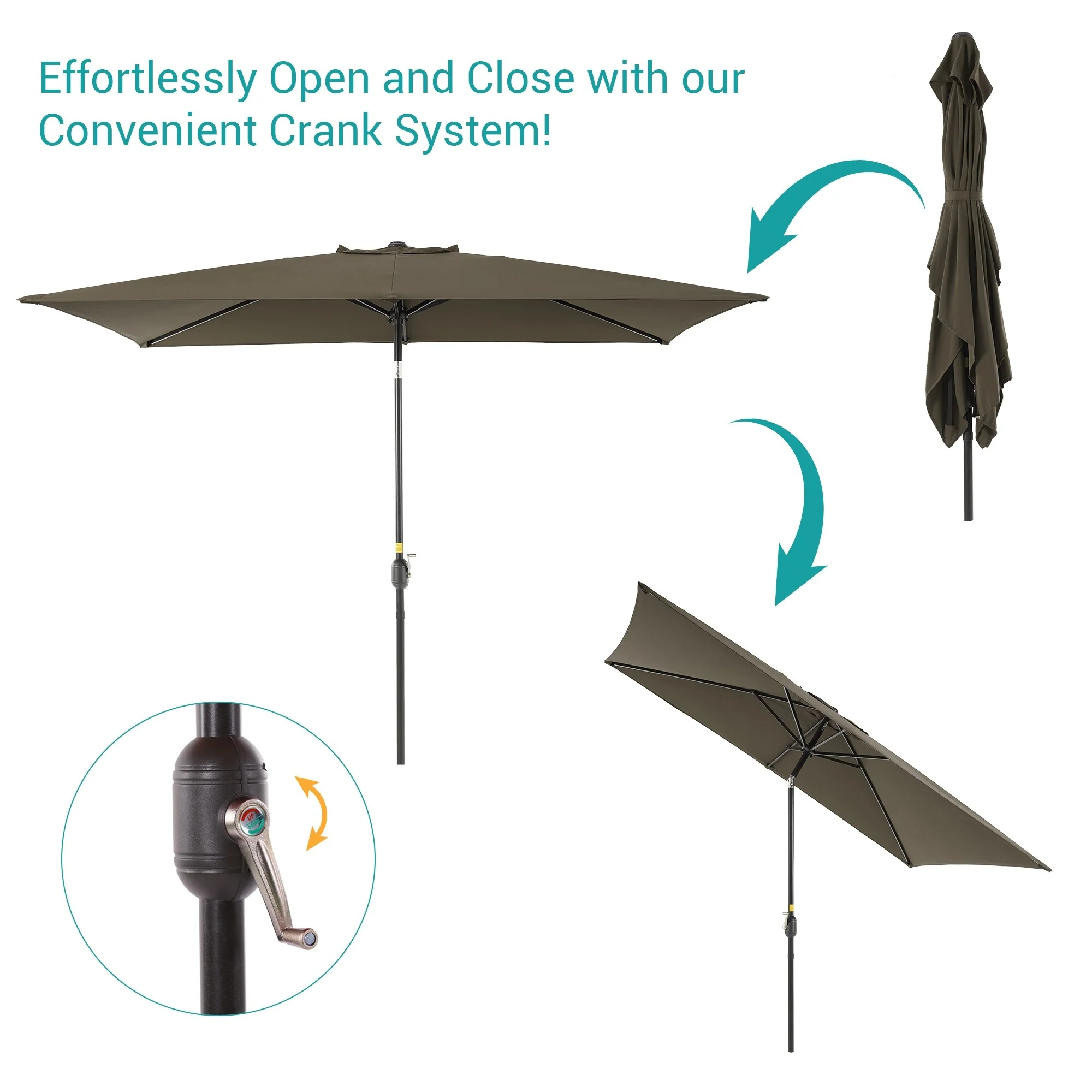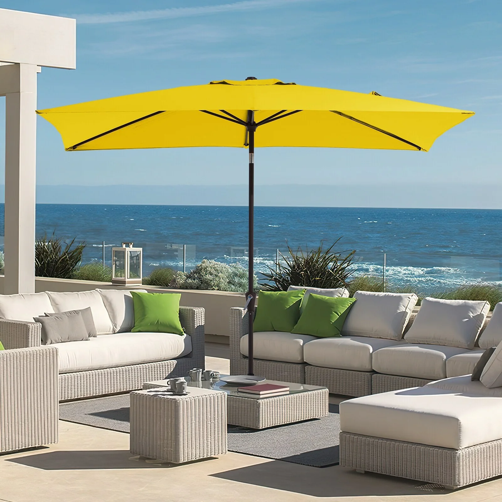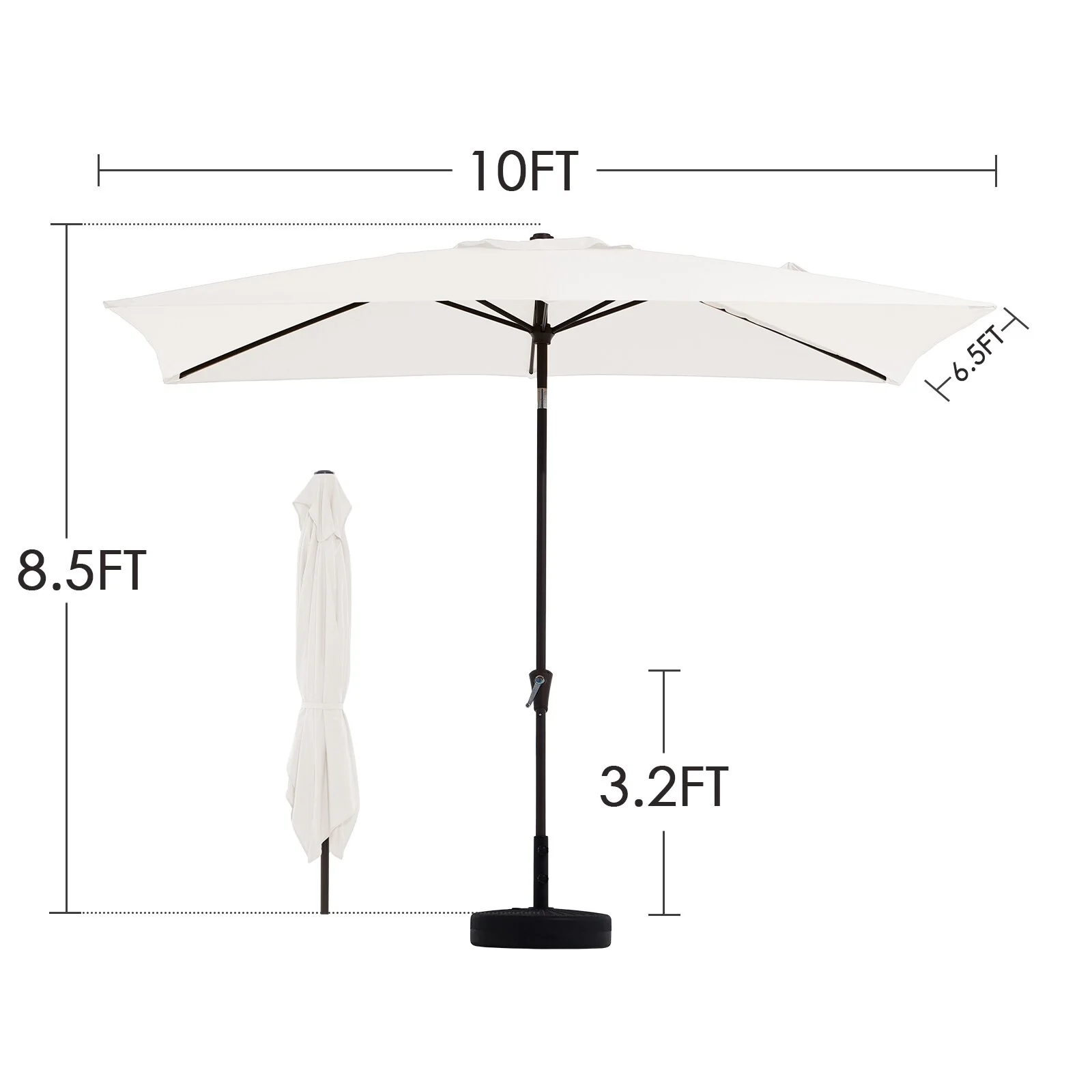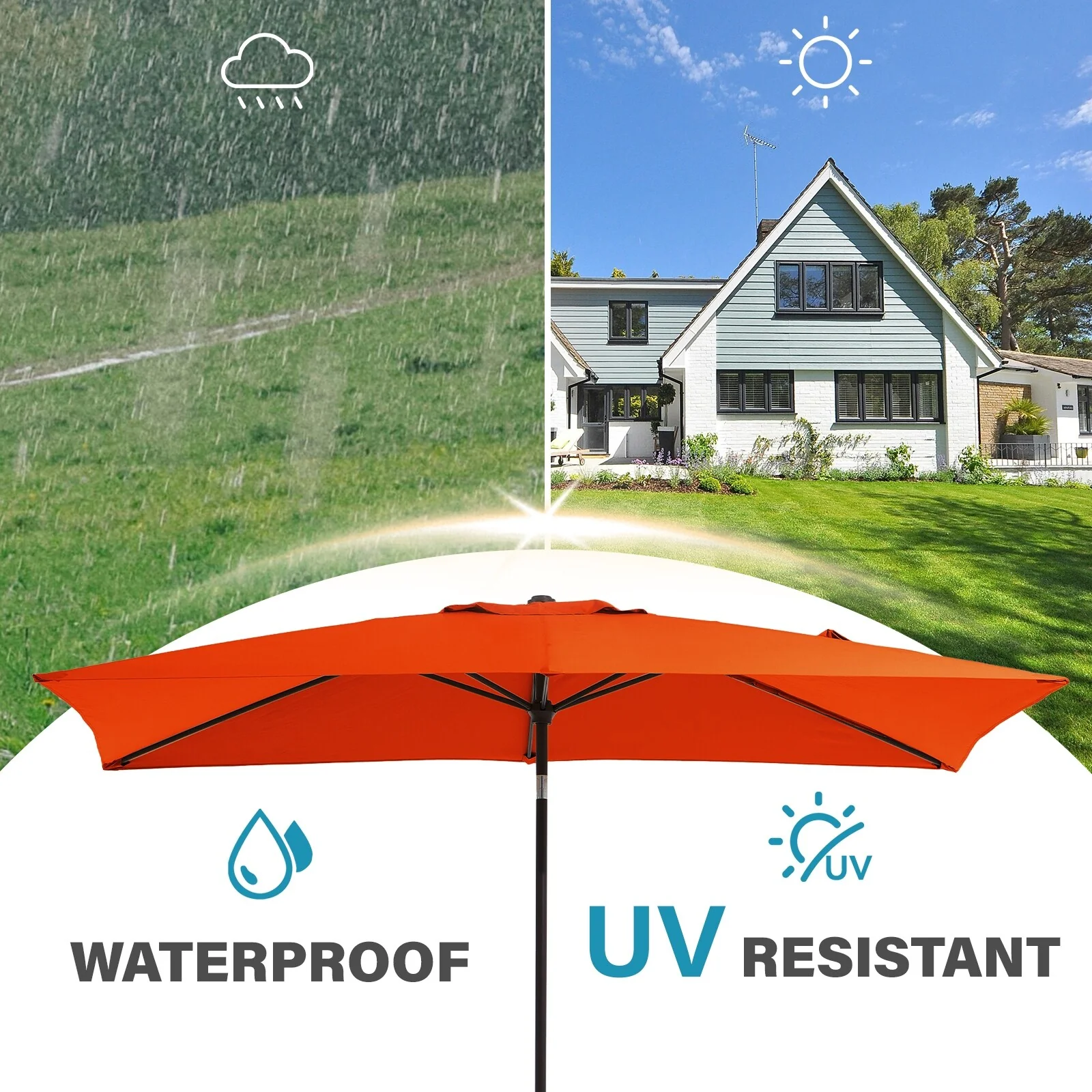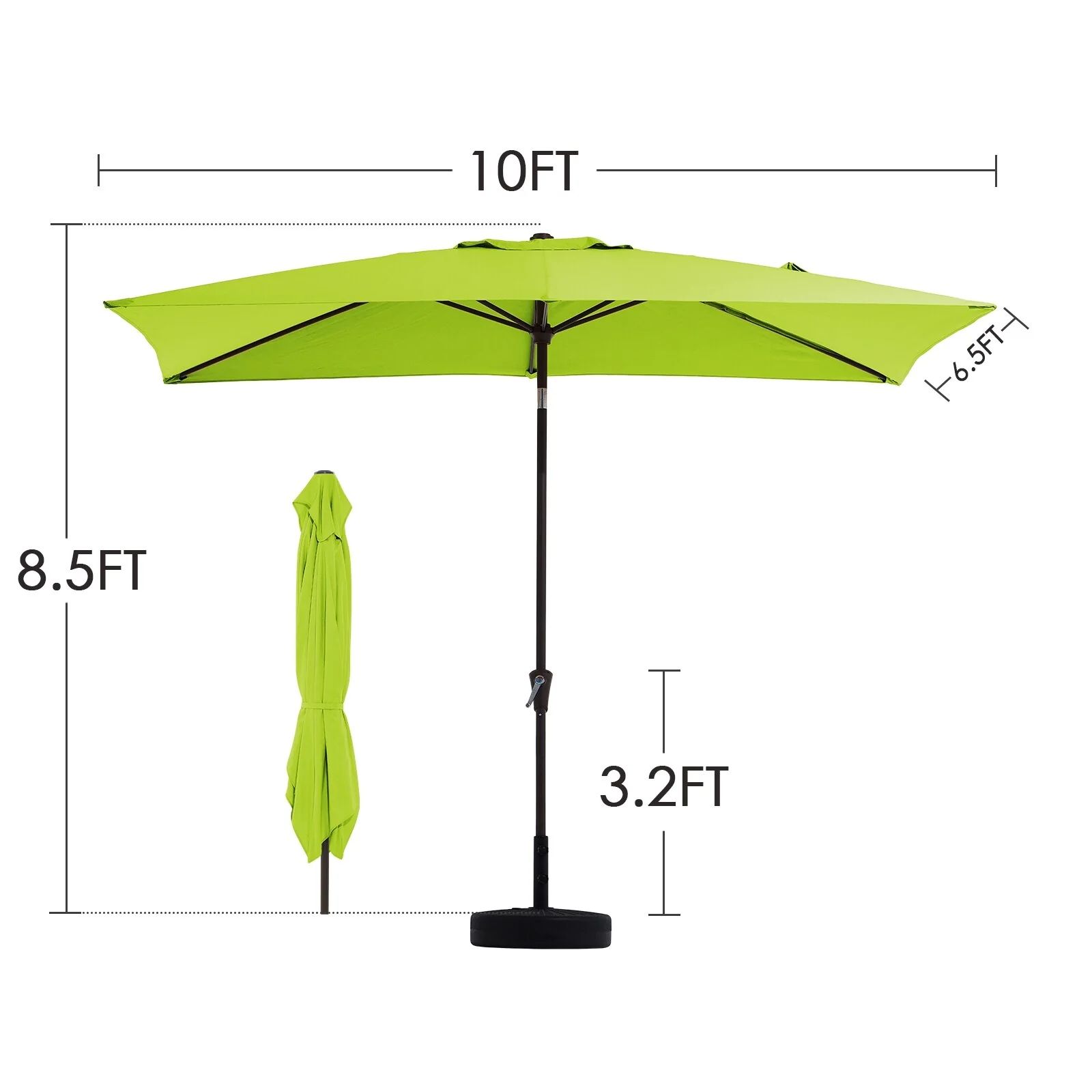6.5*10ft Rectangular Patio Market Umbrella with Crank & Tilt, UV & Water-Resistant Canopy