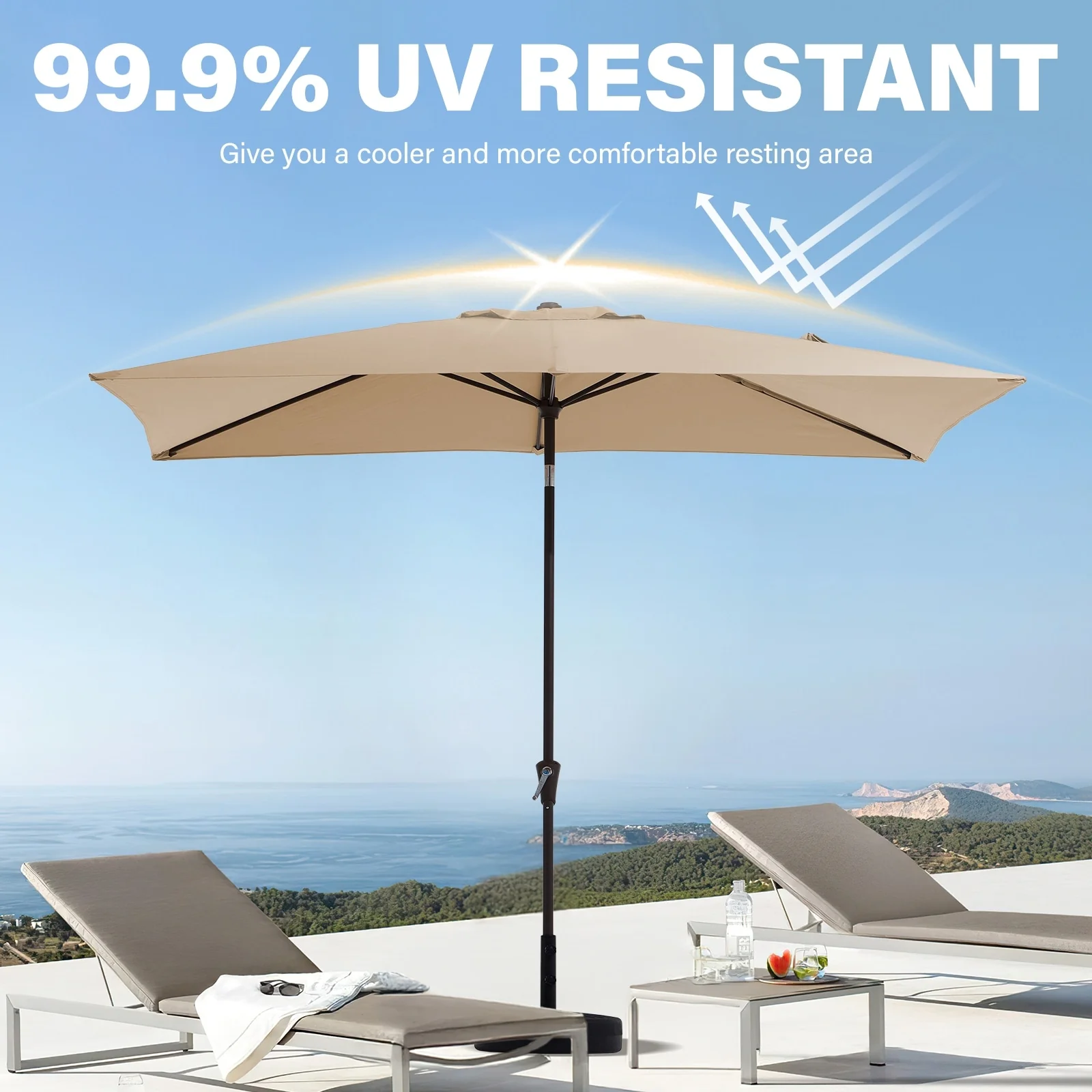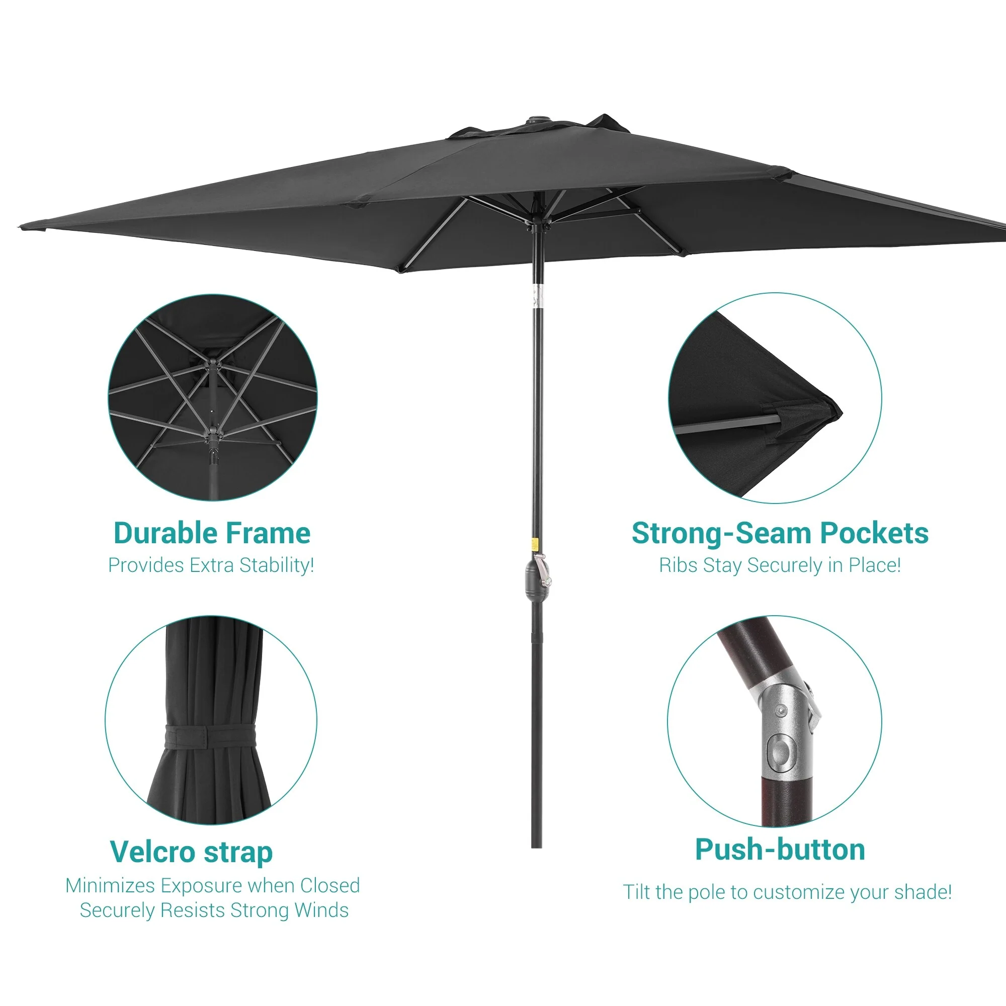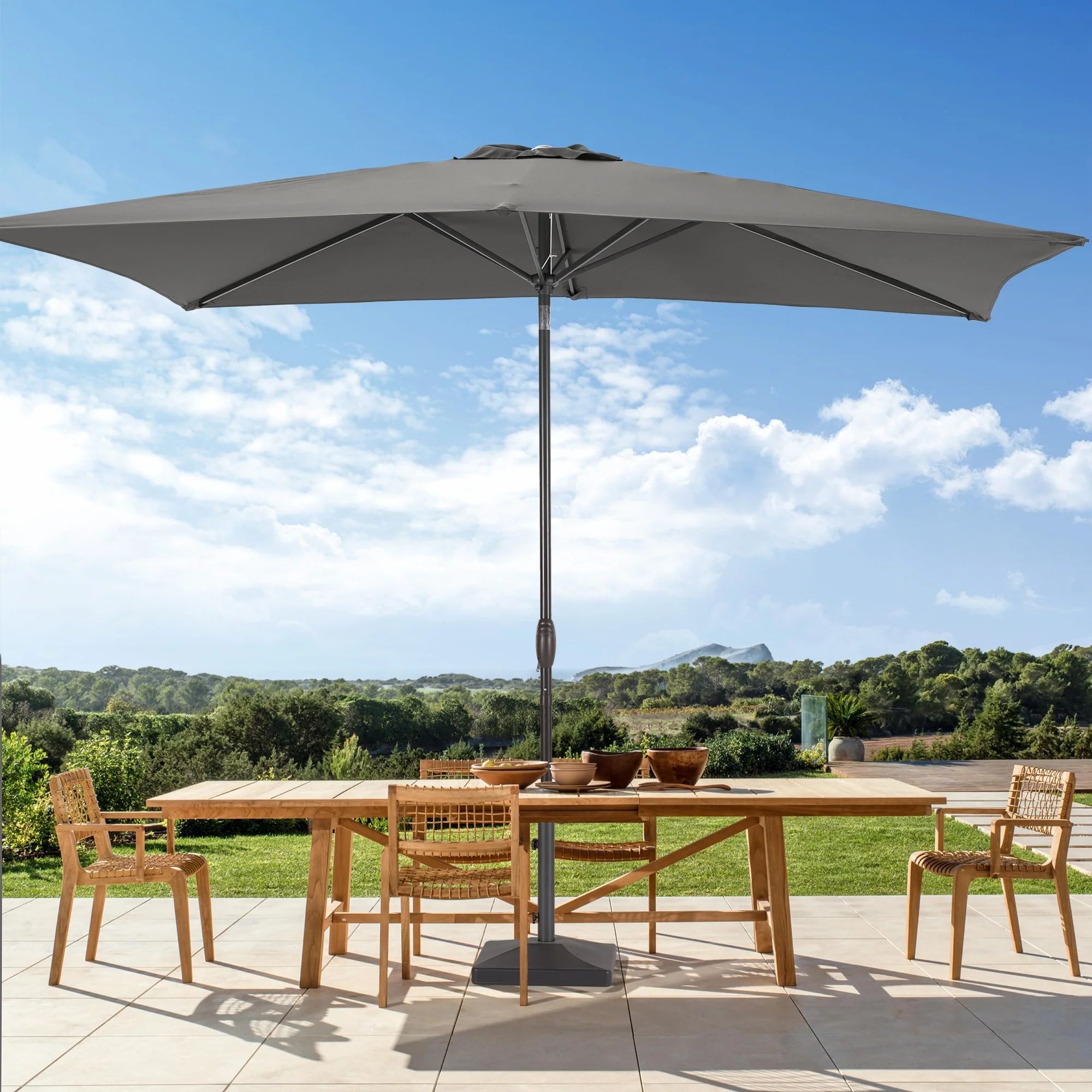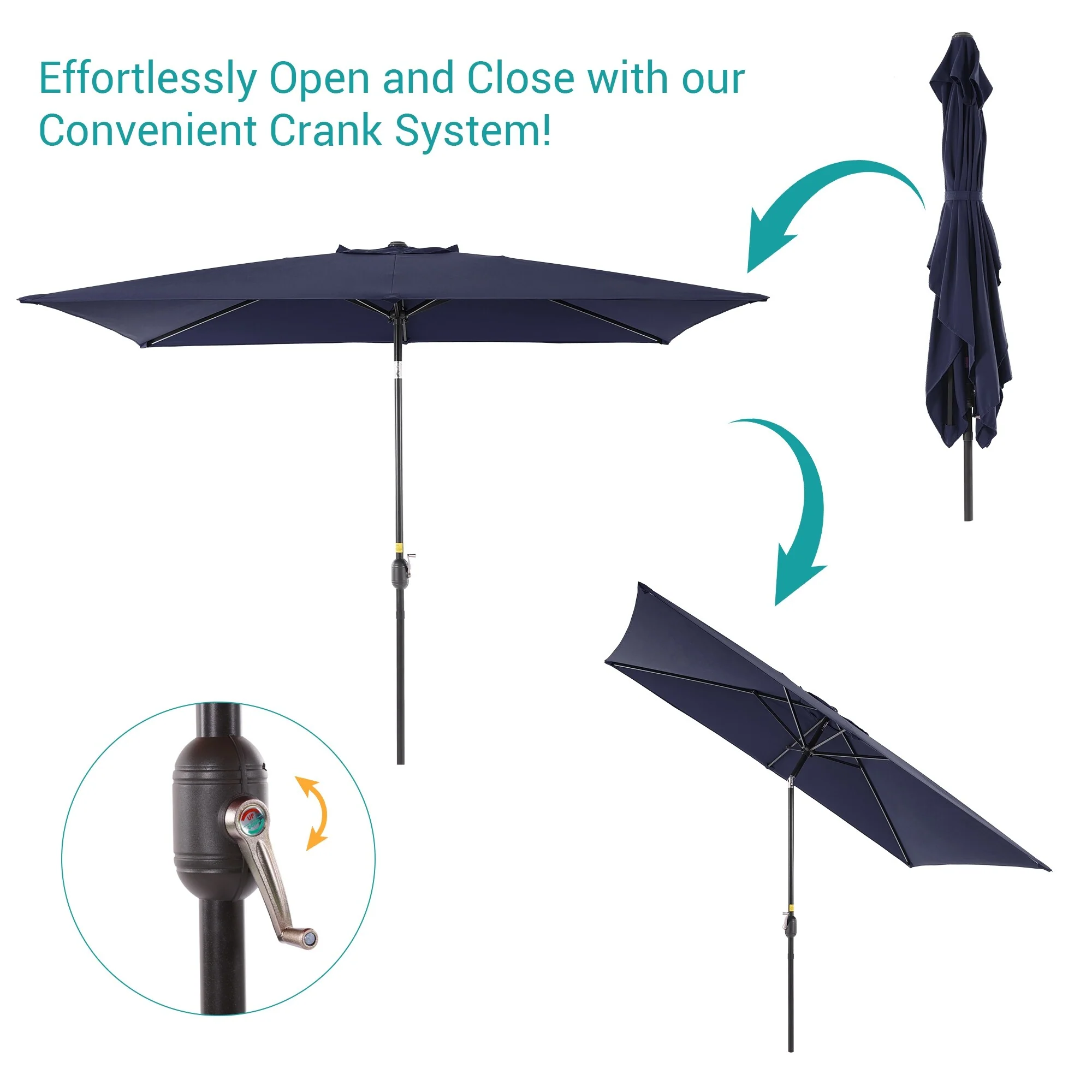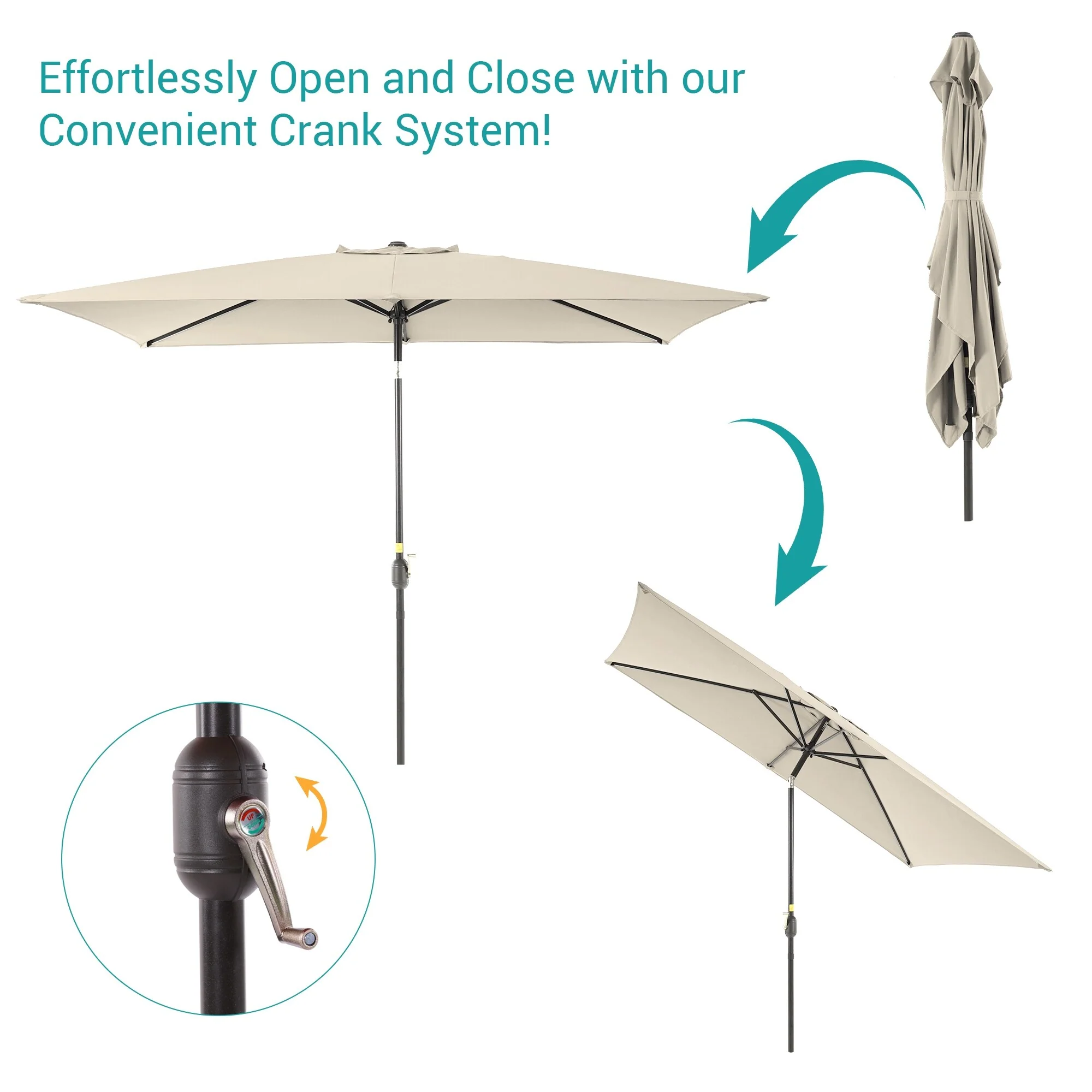 6.5*10ft Rectangular Patio Market Umbrella with Crank & Tilt, UV & Water-Resistant Canopy