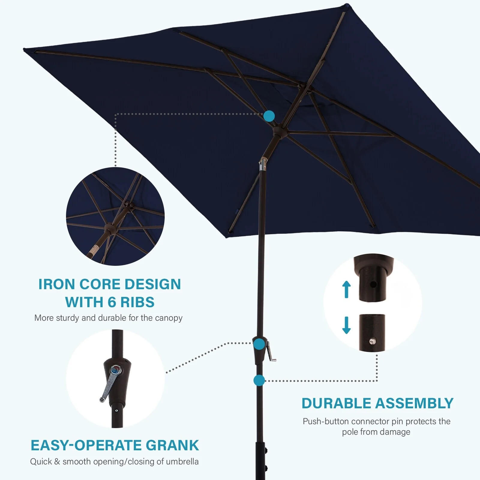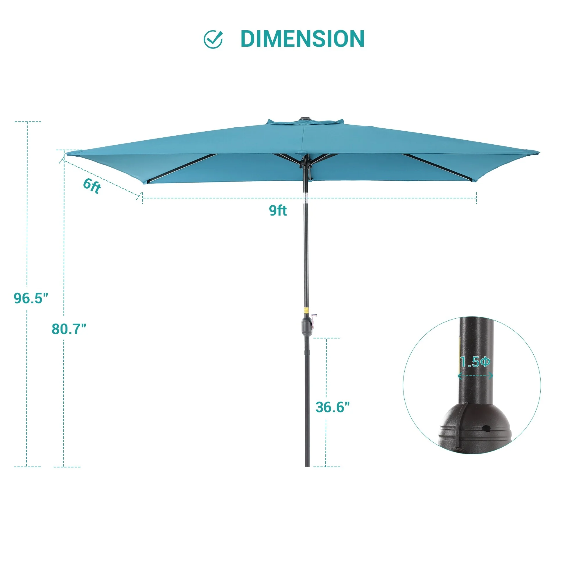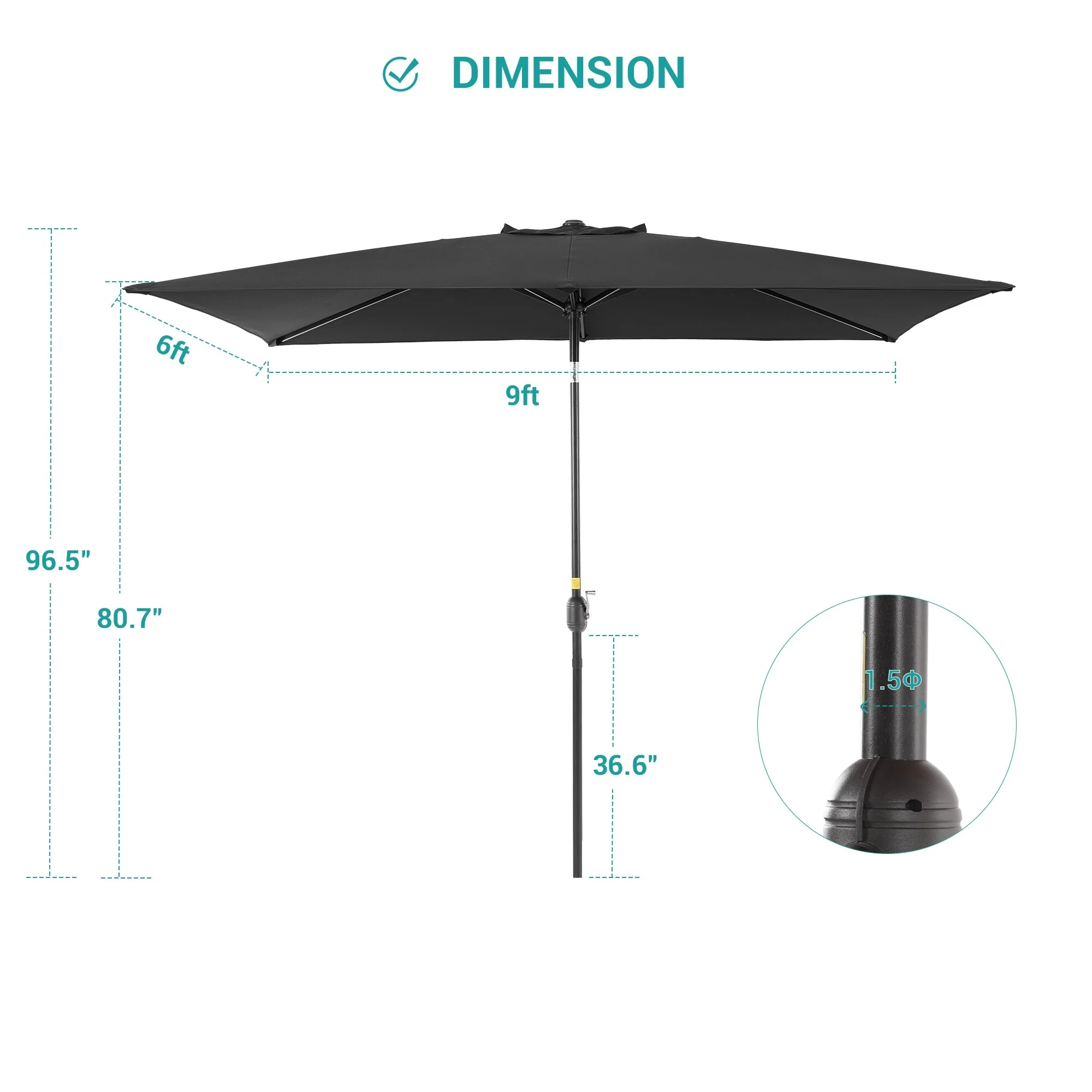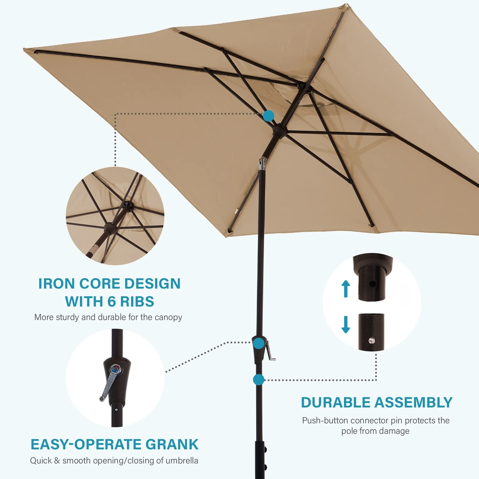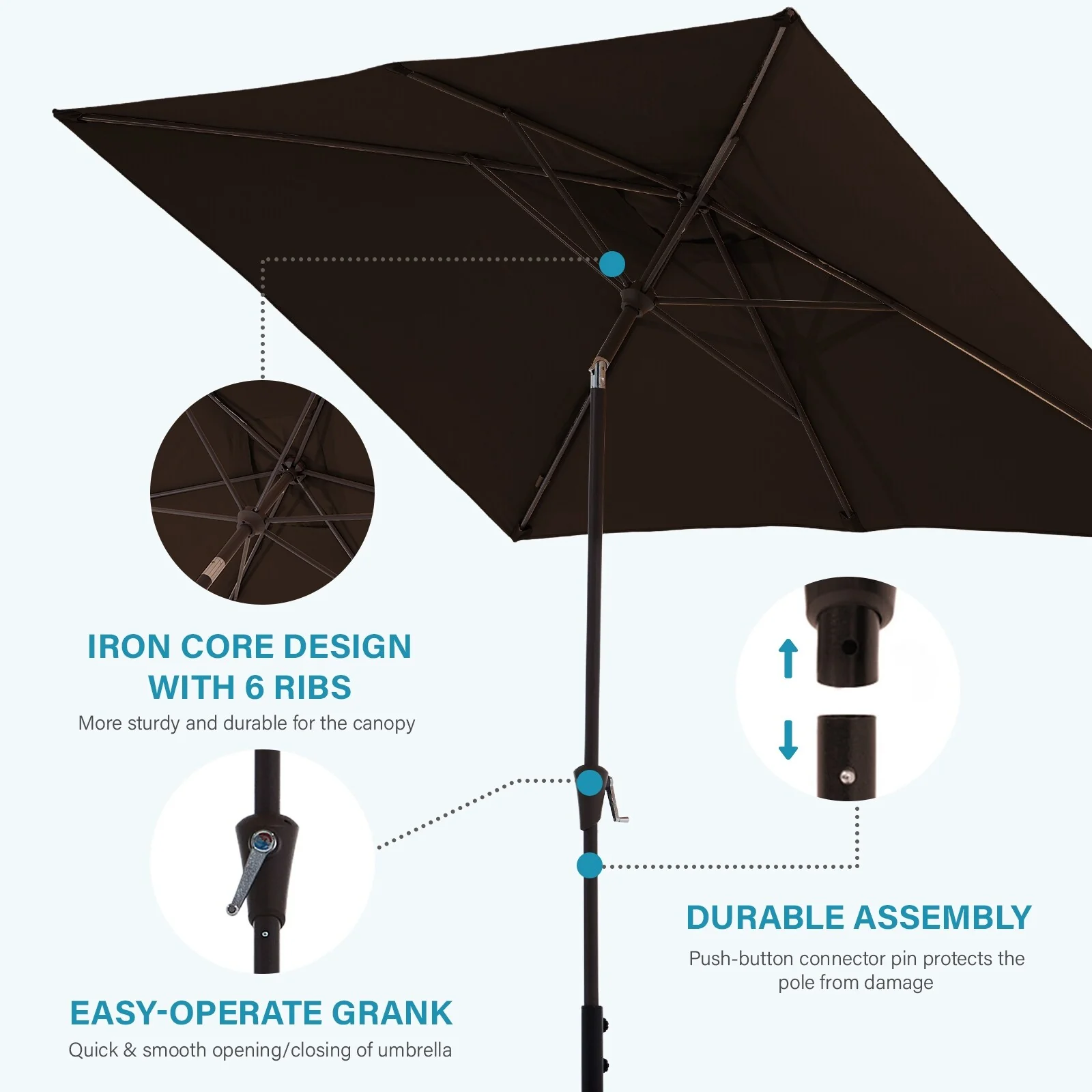 6.5*10ft Rectangular Patio Market Umbrella with Crank & Tilt, UV & Water-Resistant Canopy