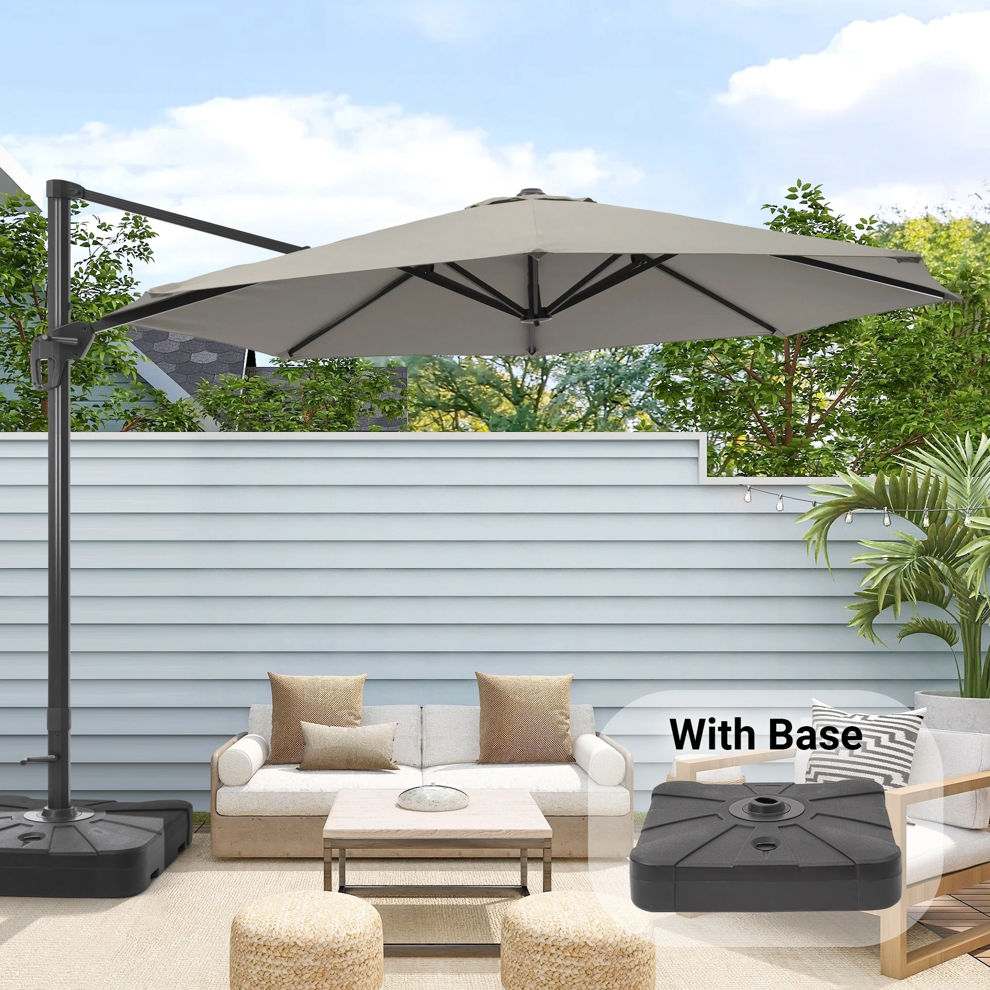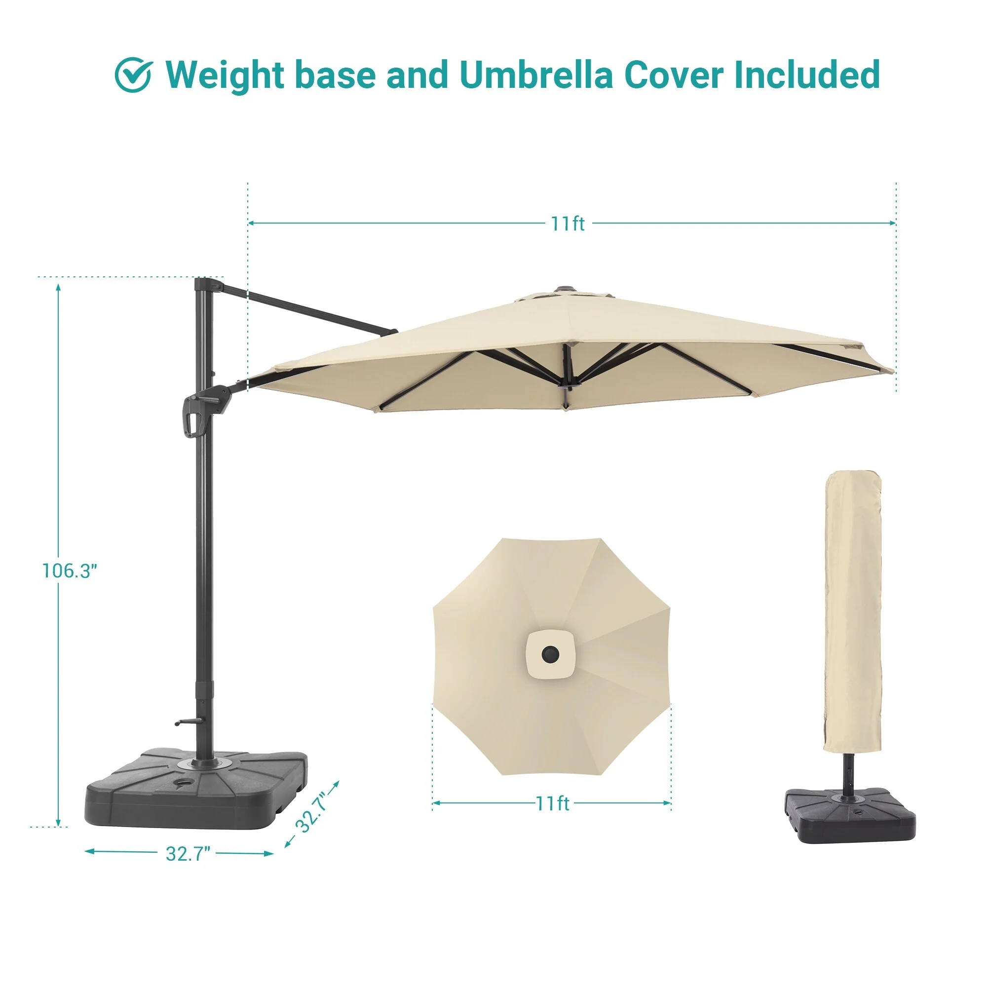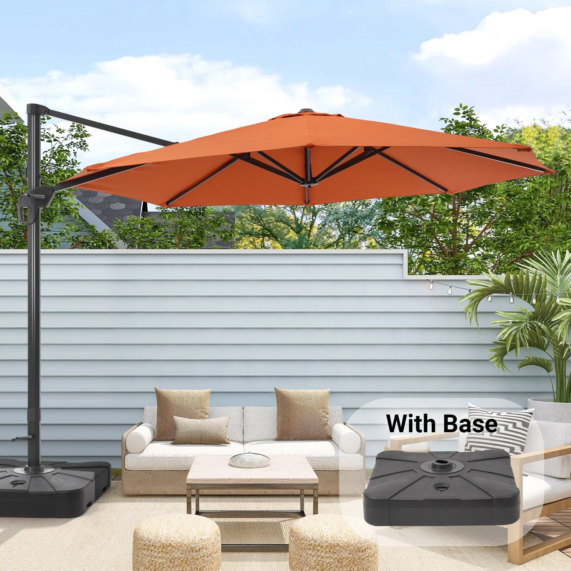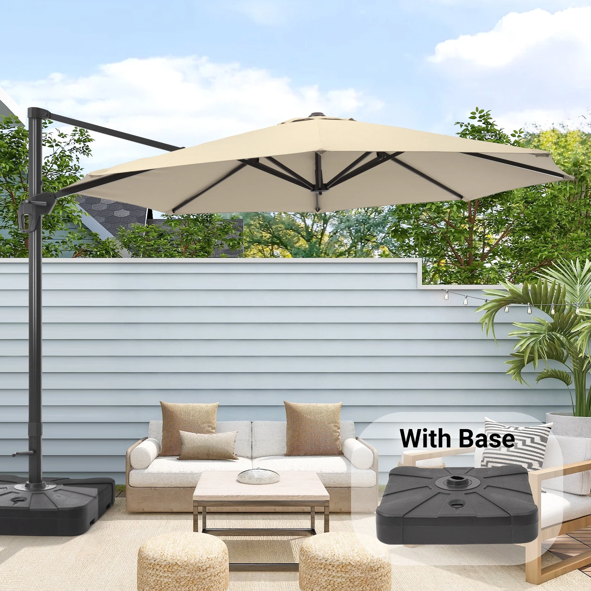 Bonosuki 11FT Patio Cantilever Umbrella With Resin Base