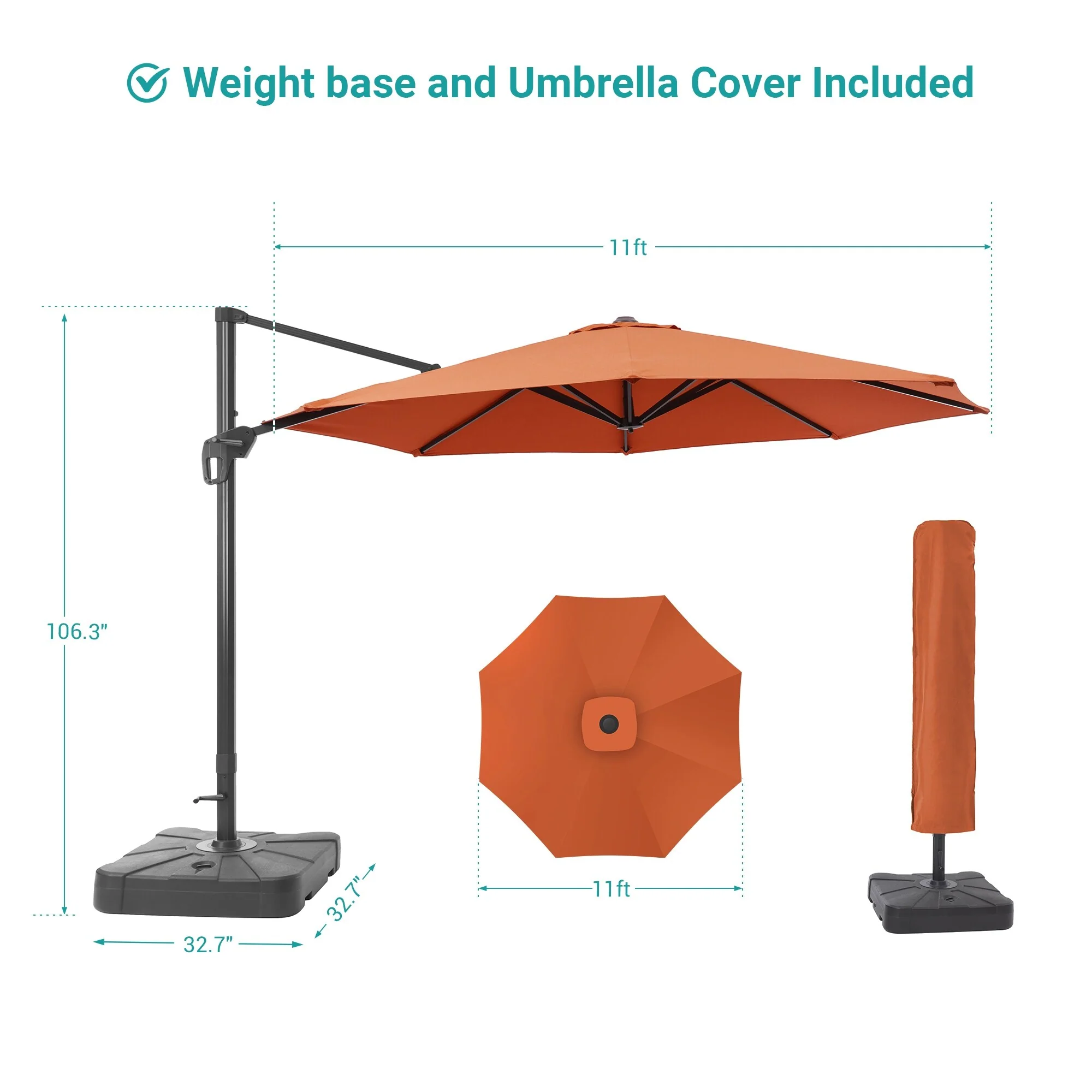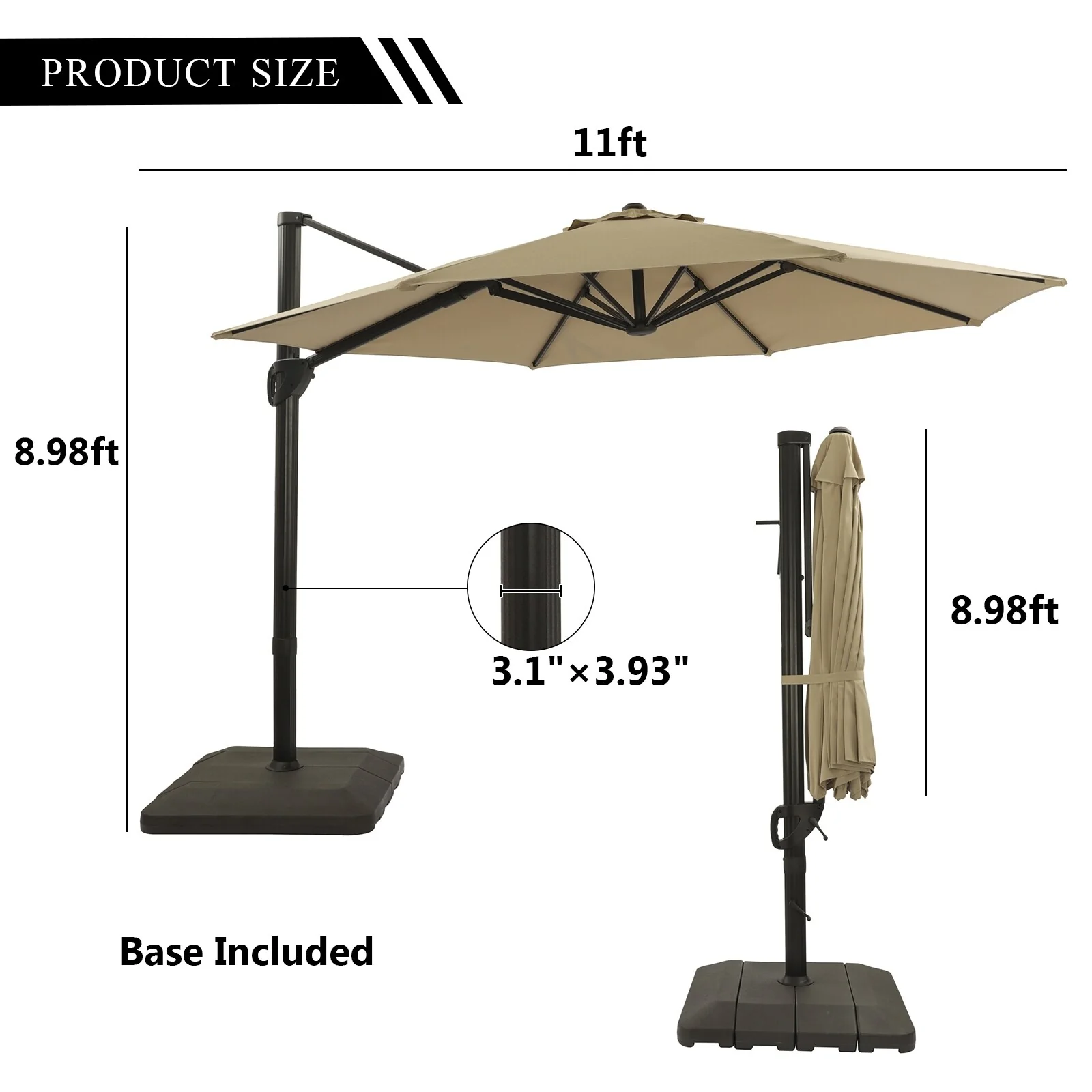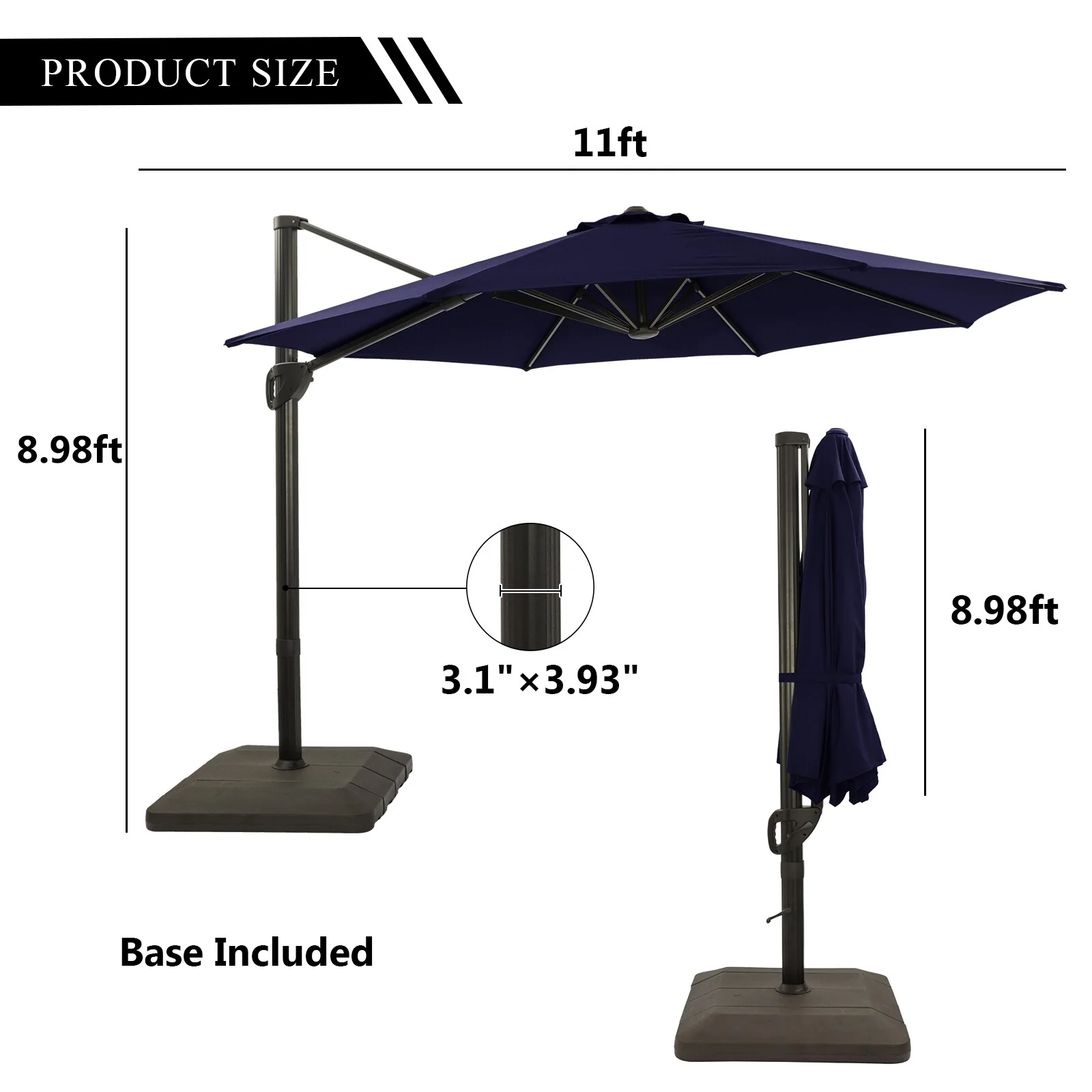 Bonosuki 11FT Patio Cantilever Umbrella With Resin Base