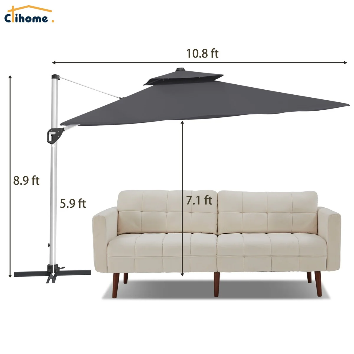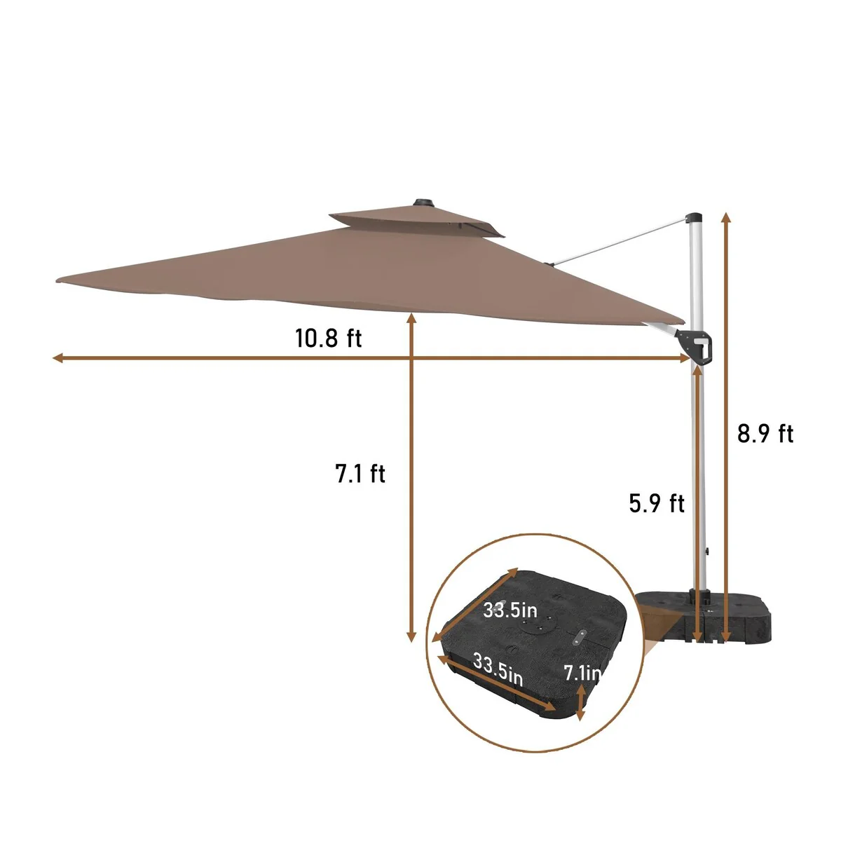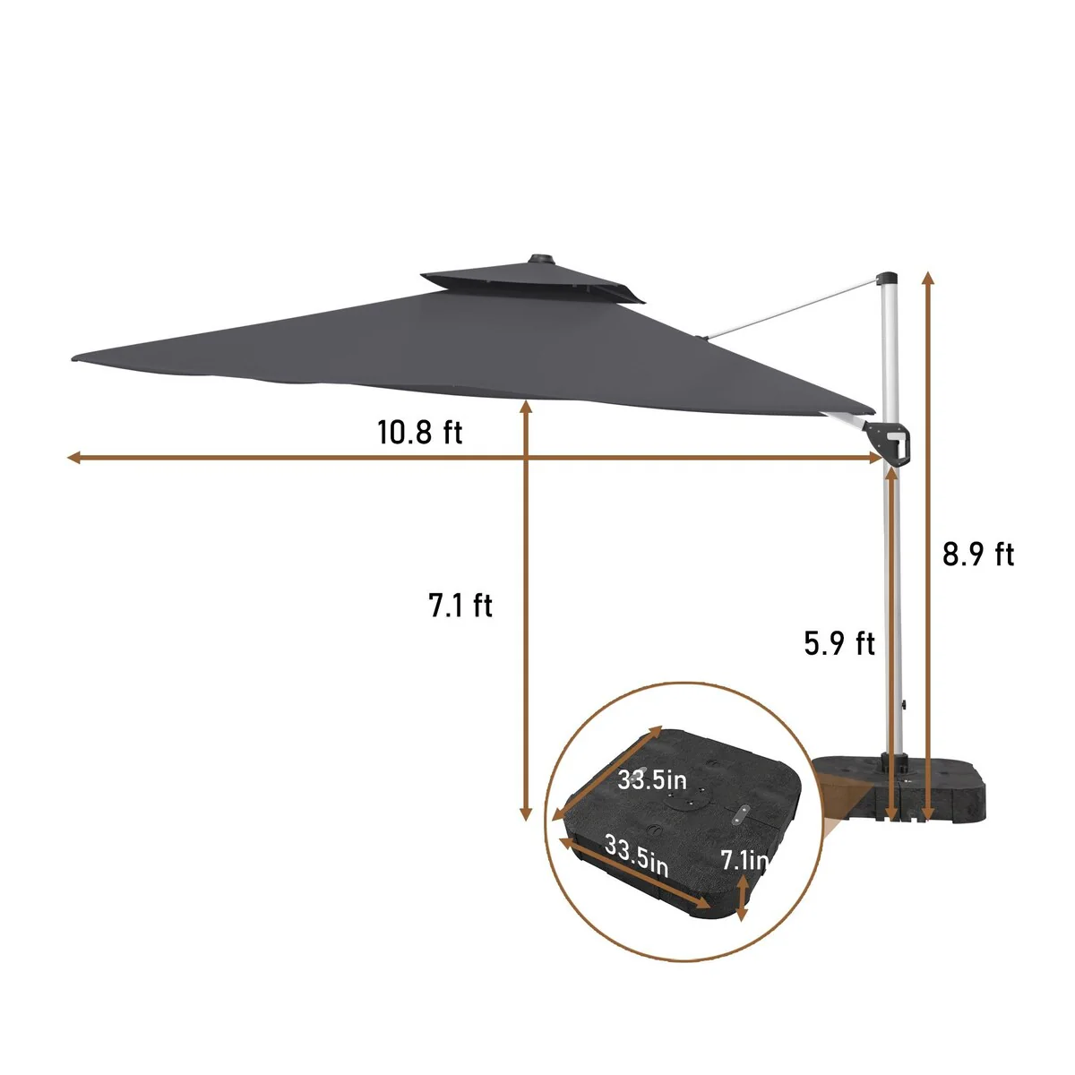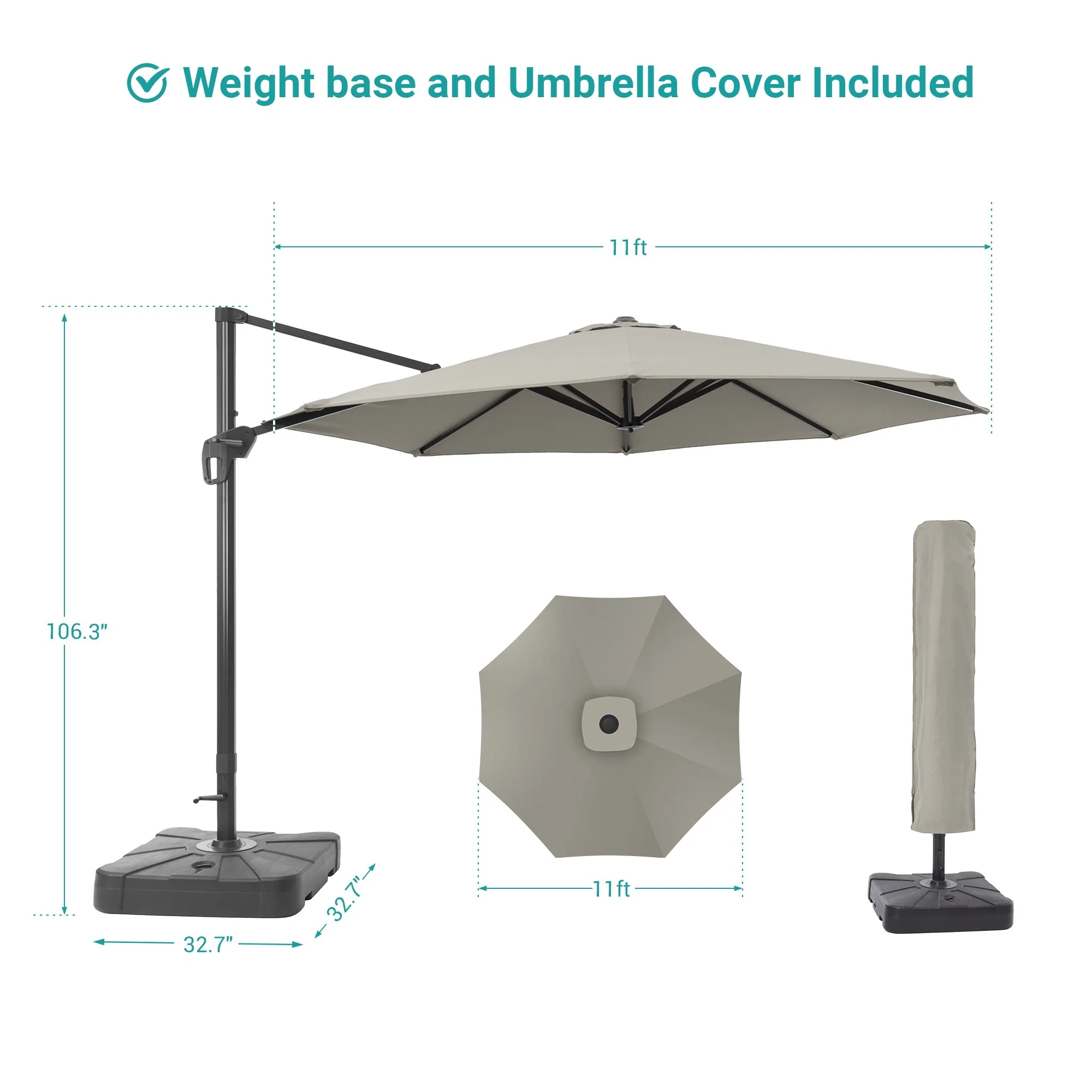 Bonosuki 11FT Patio Cantilever Umbrella With Resin Base