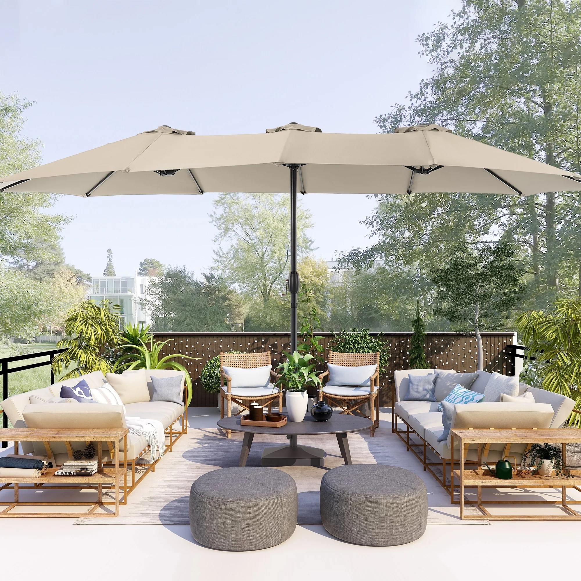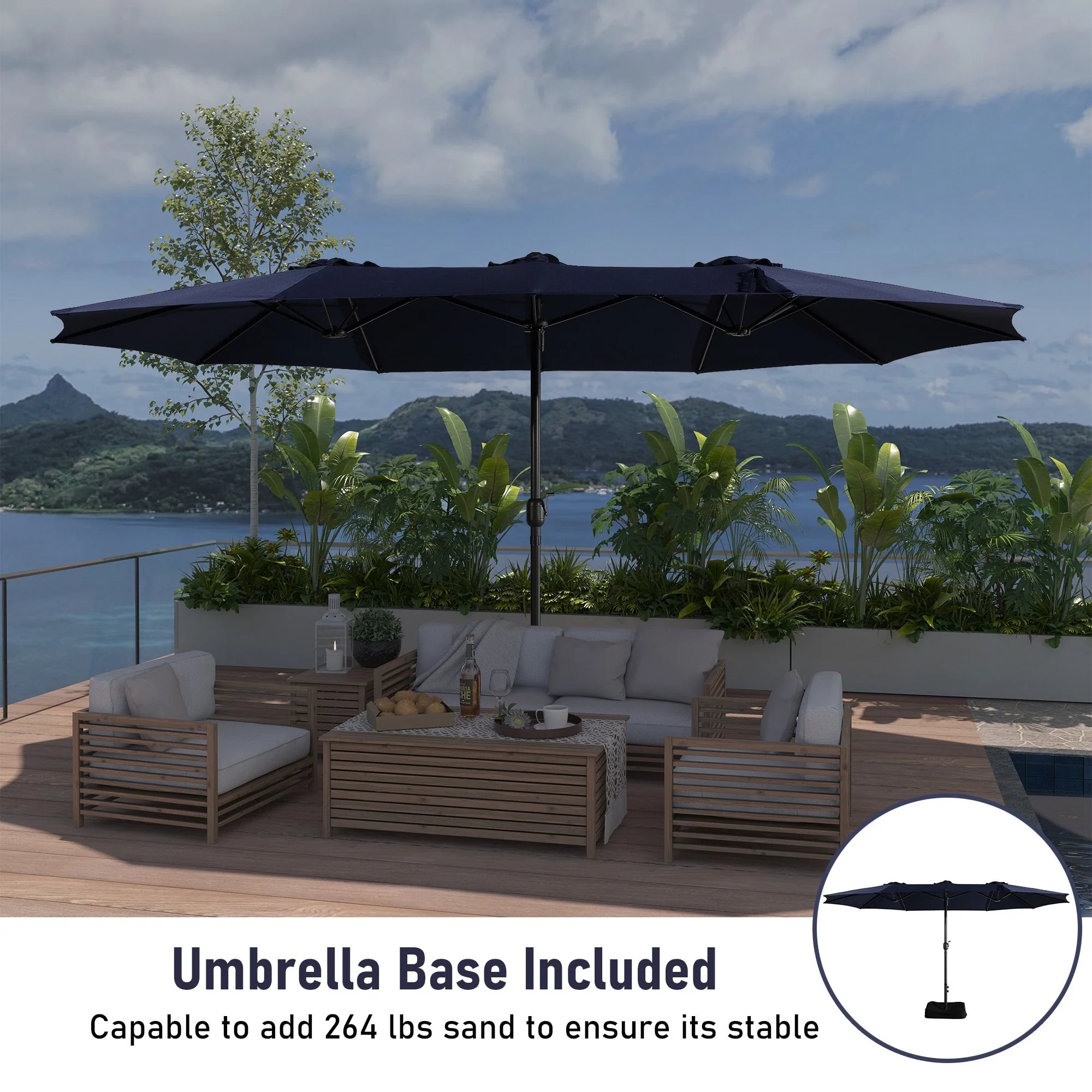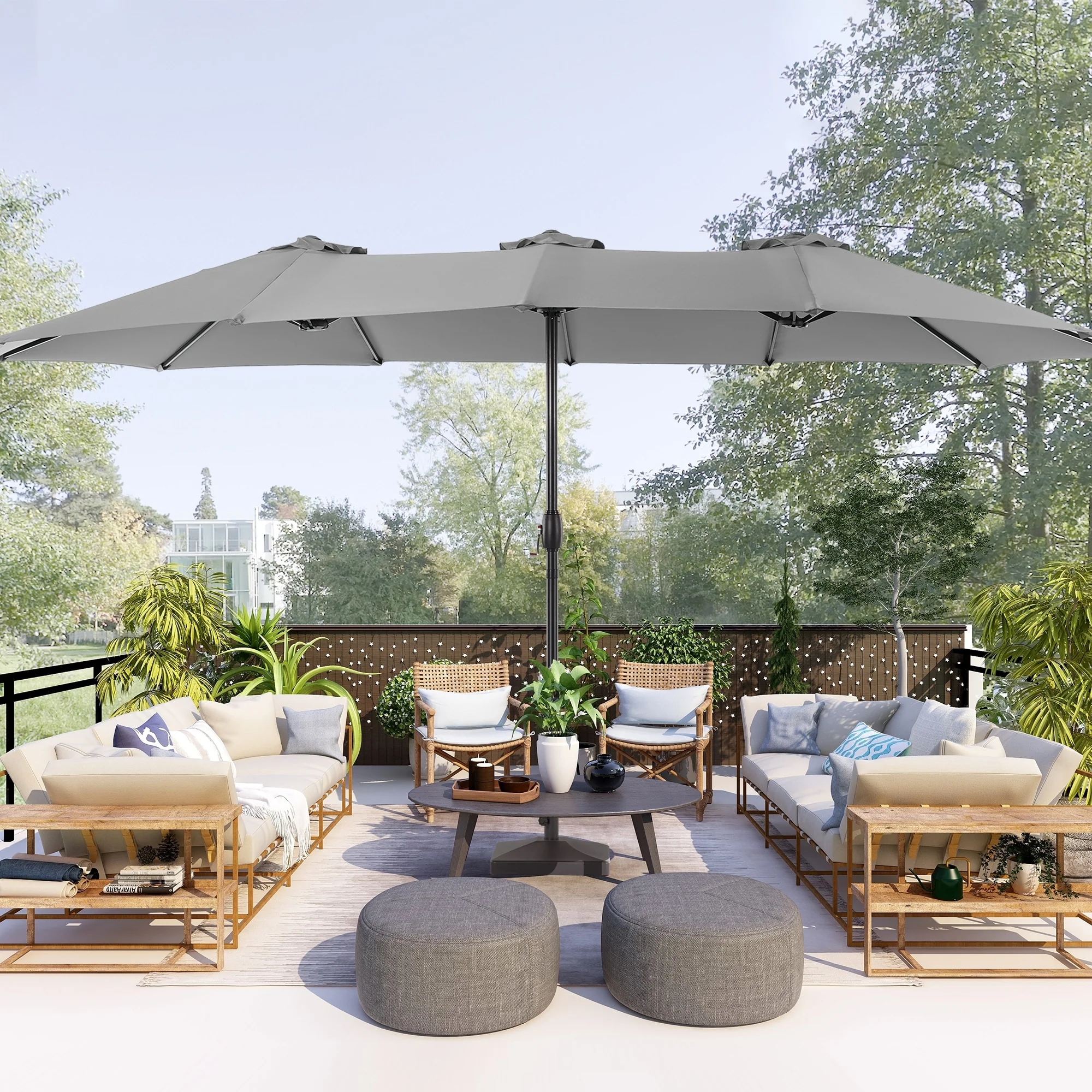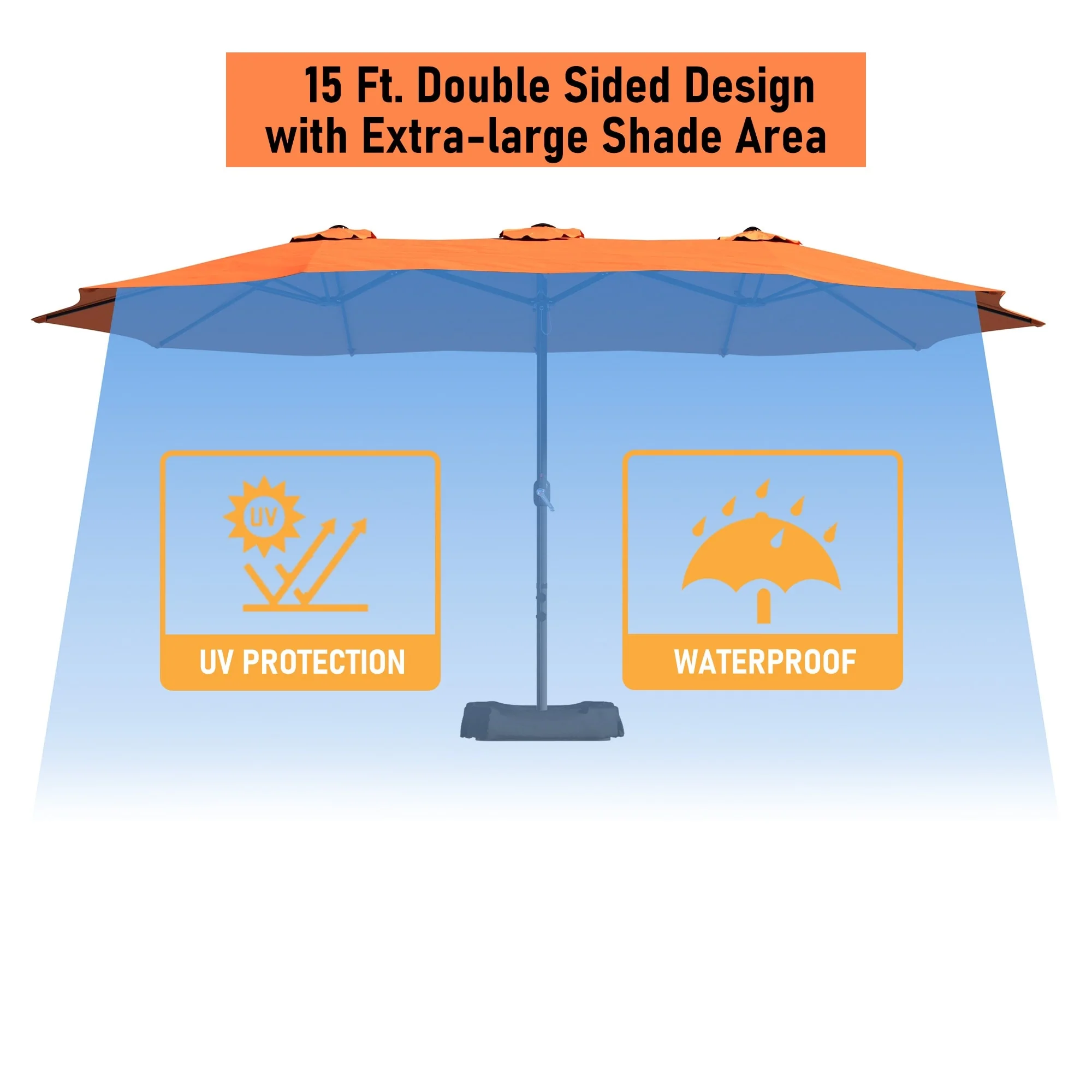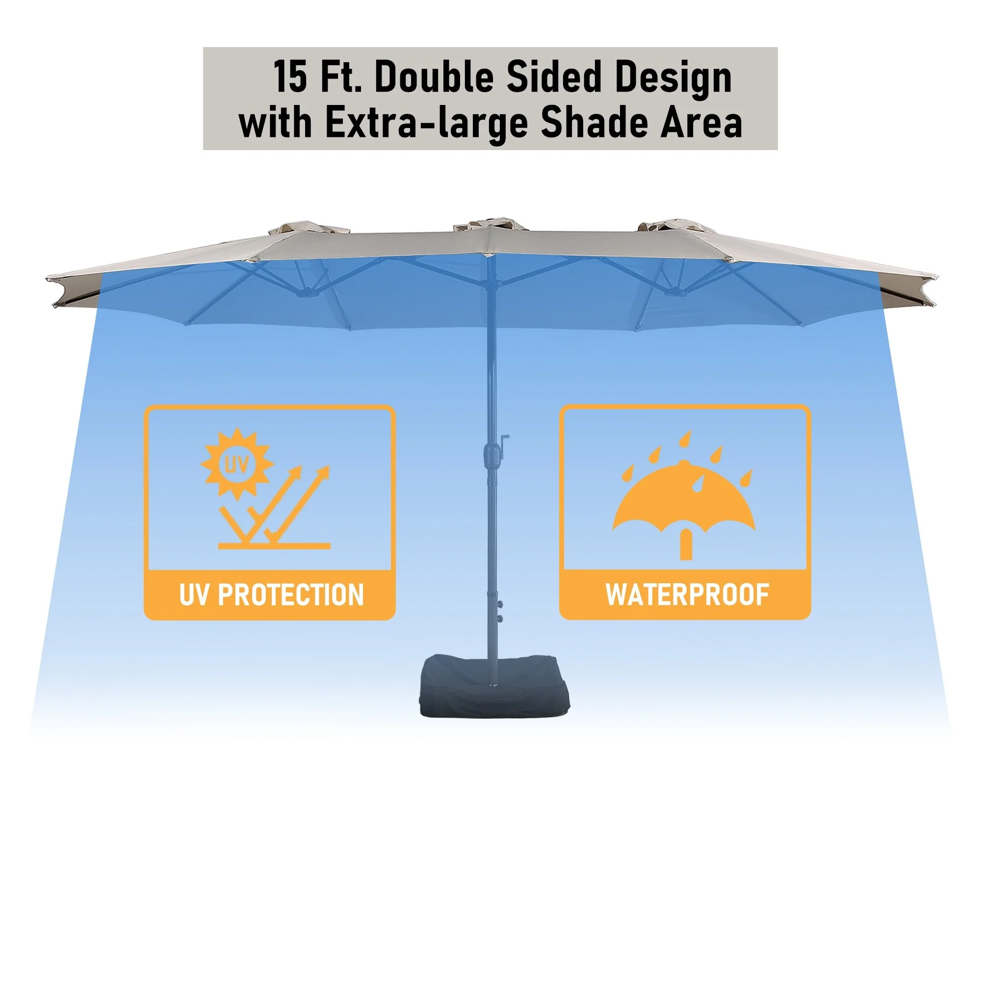 MAISON ARTS 15ft Double-Sided Patio Extra Large Twin Umbrella with Base