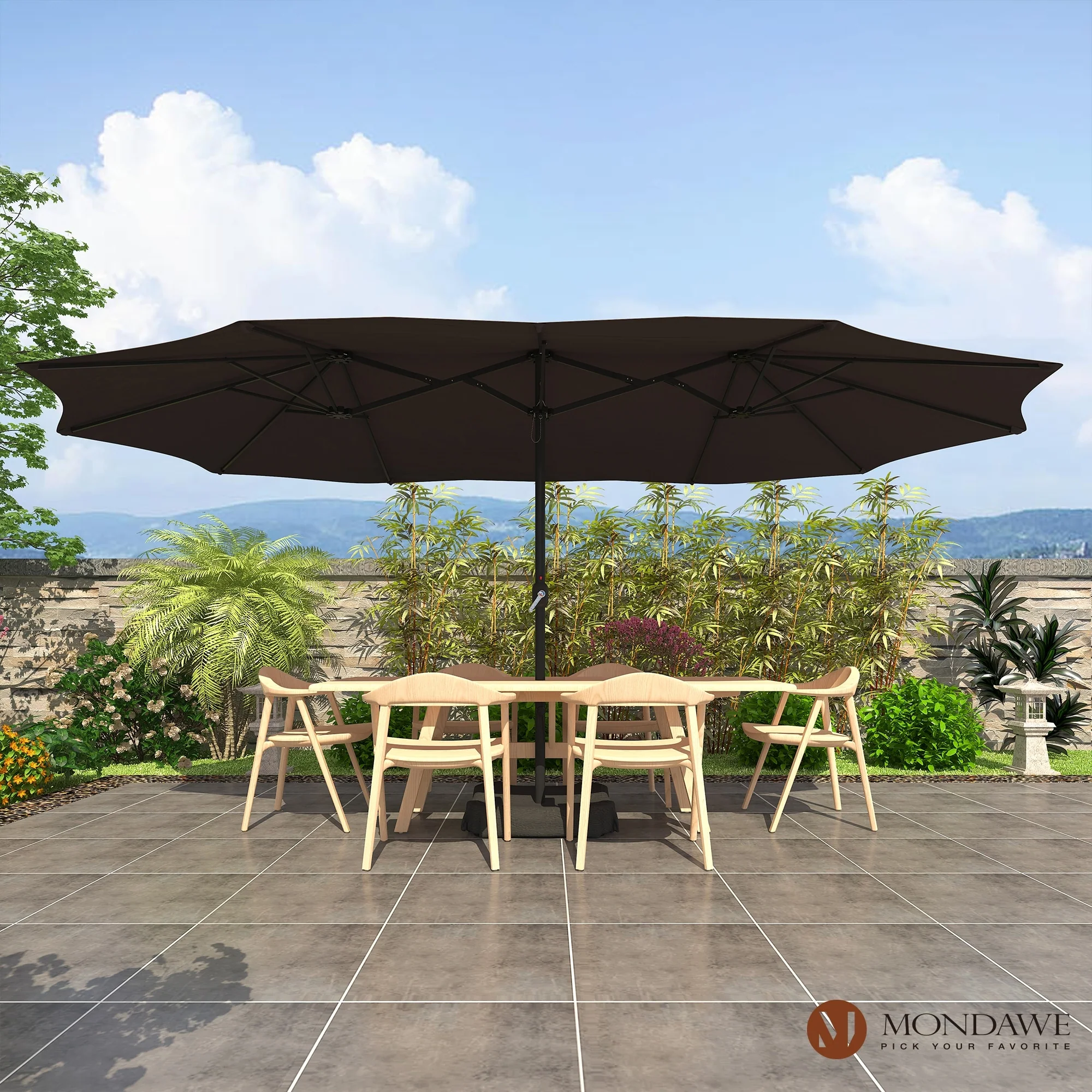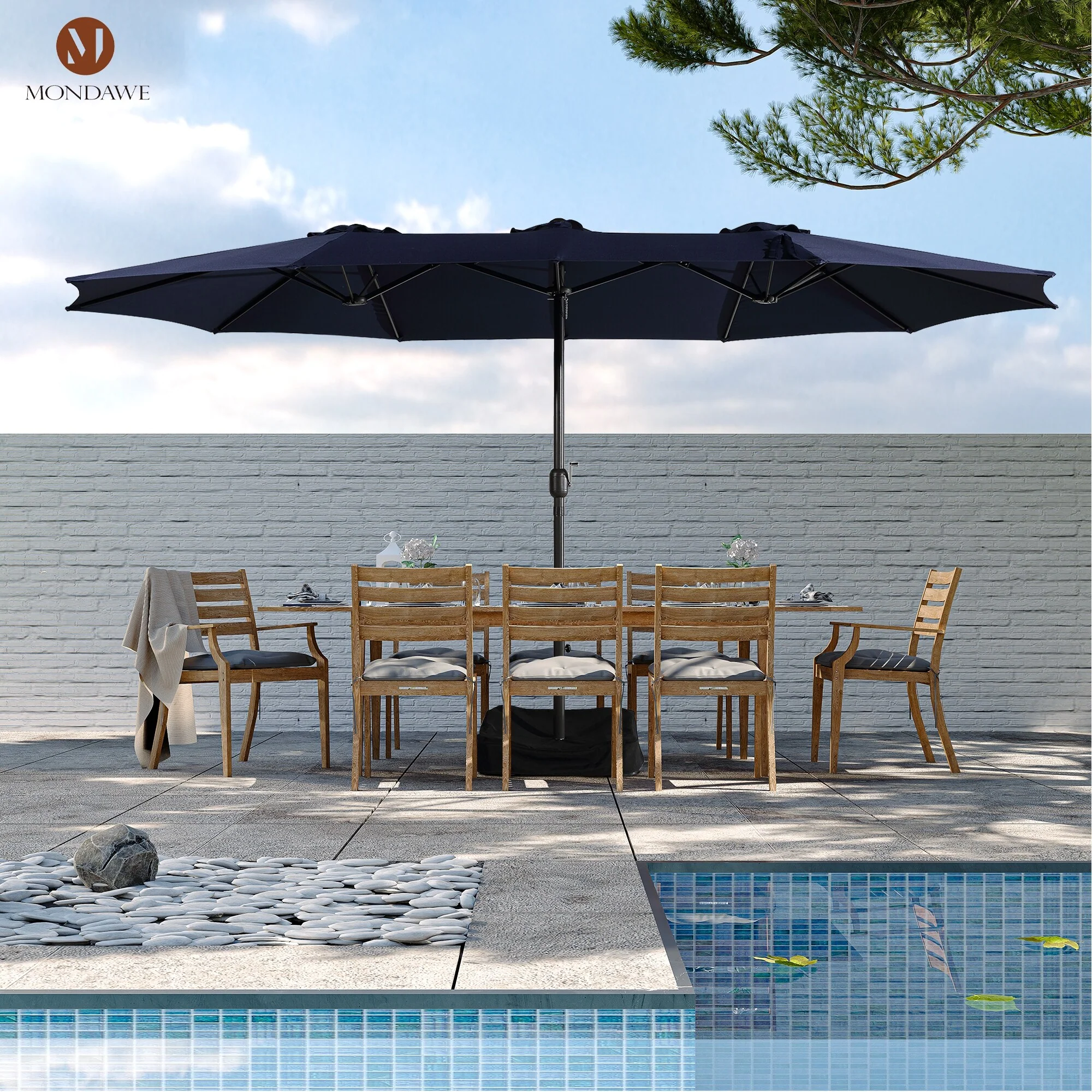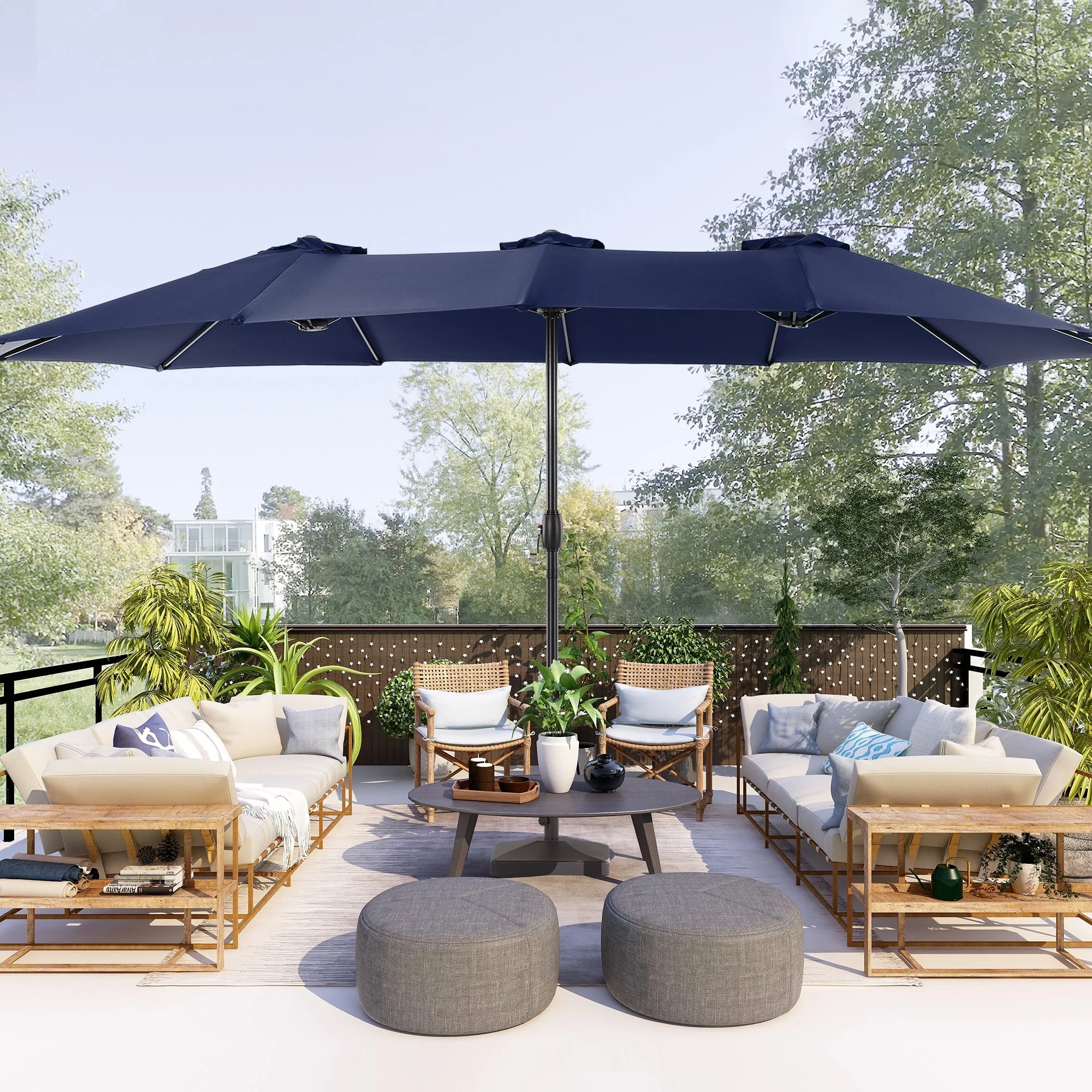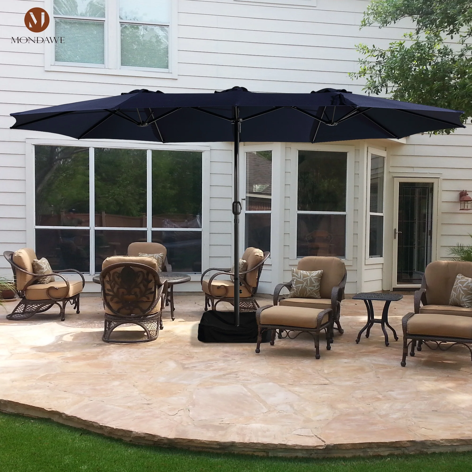 MAISON ARTS 15ft Double-Sided Patio Extra Large Twin Umbrella with Base