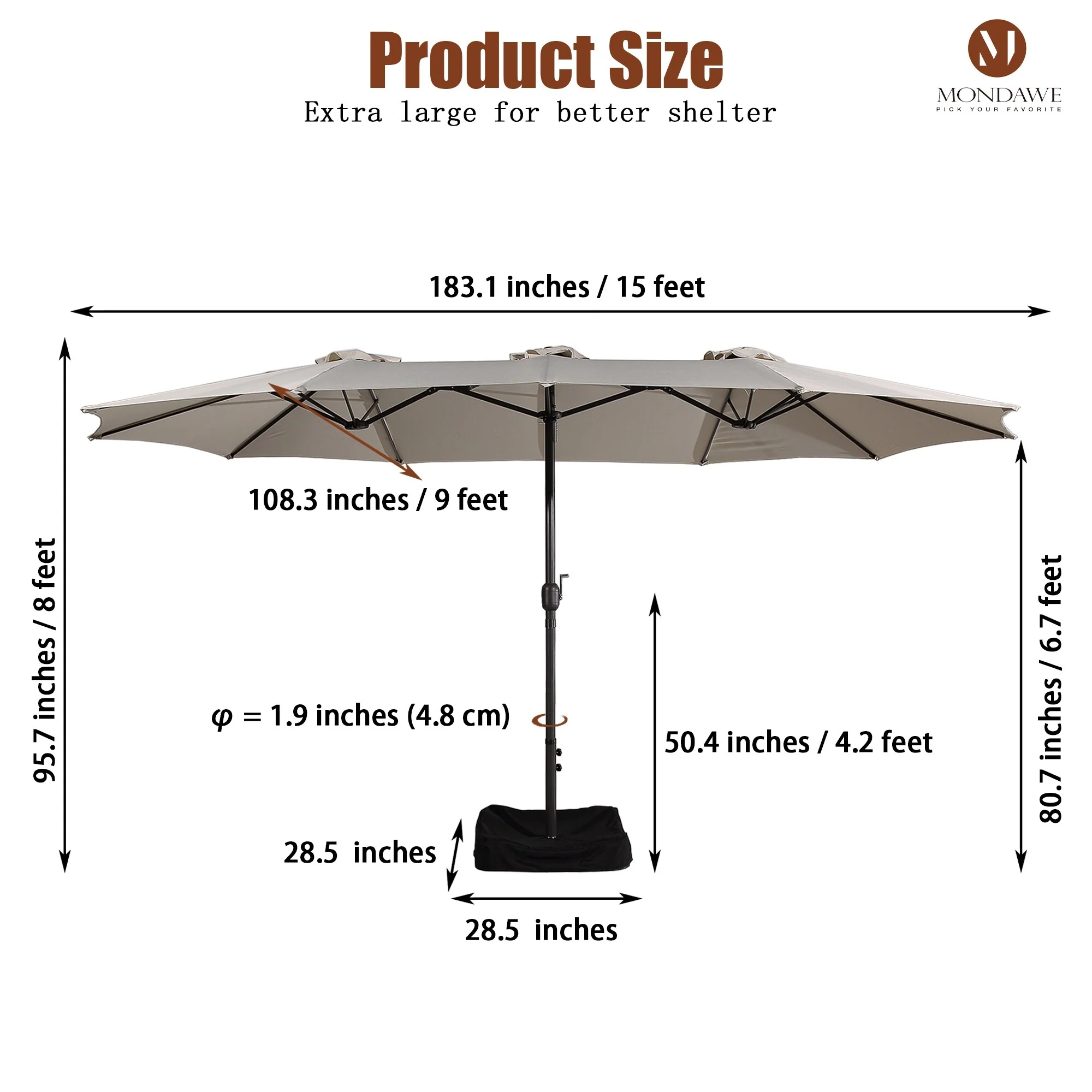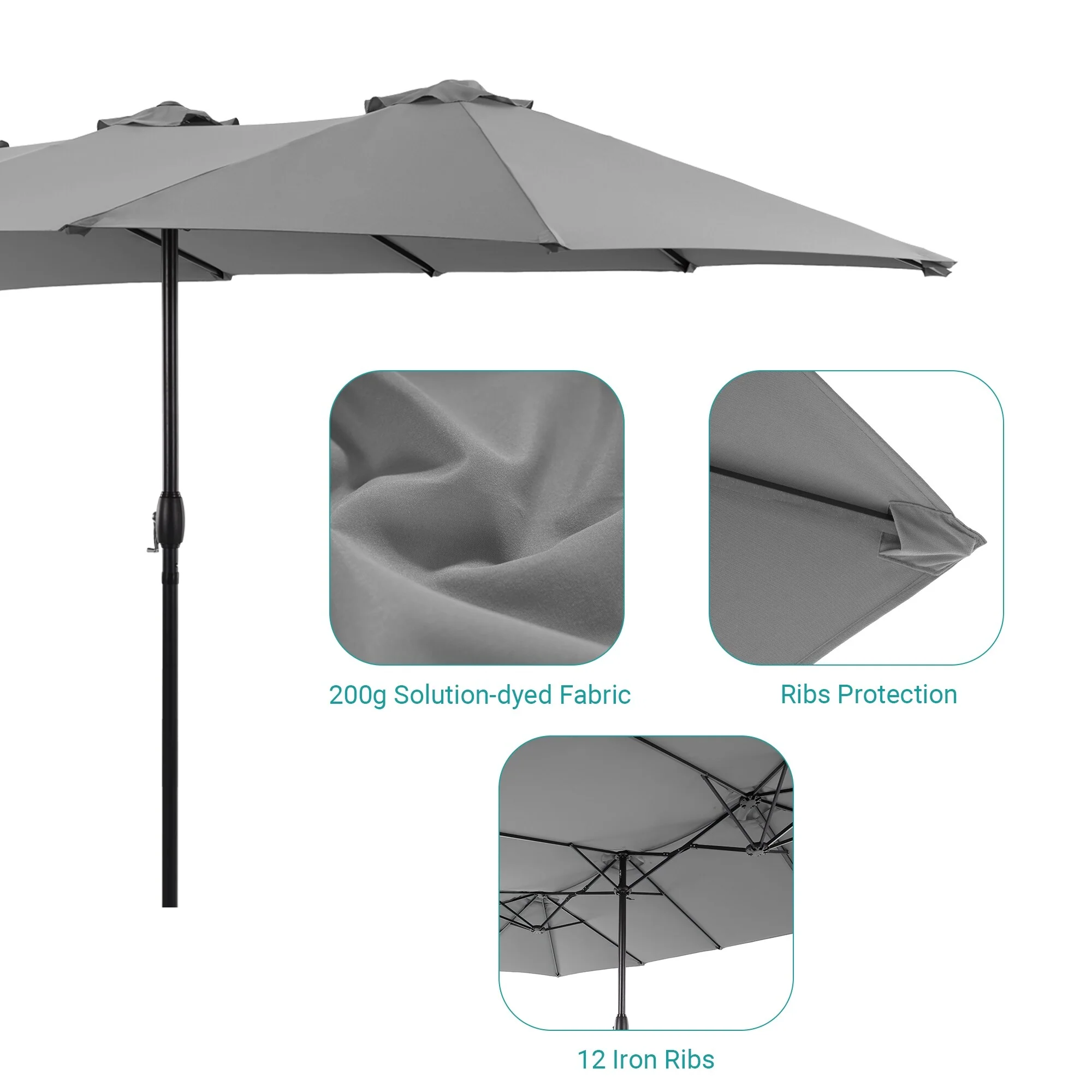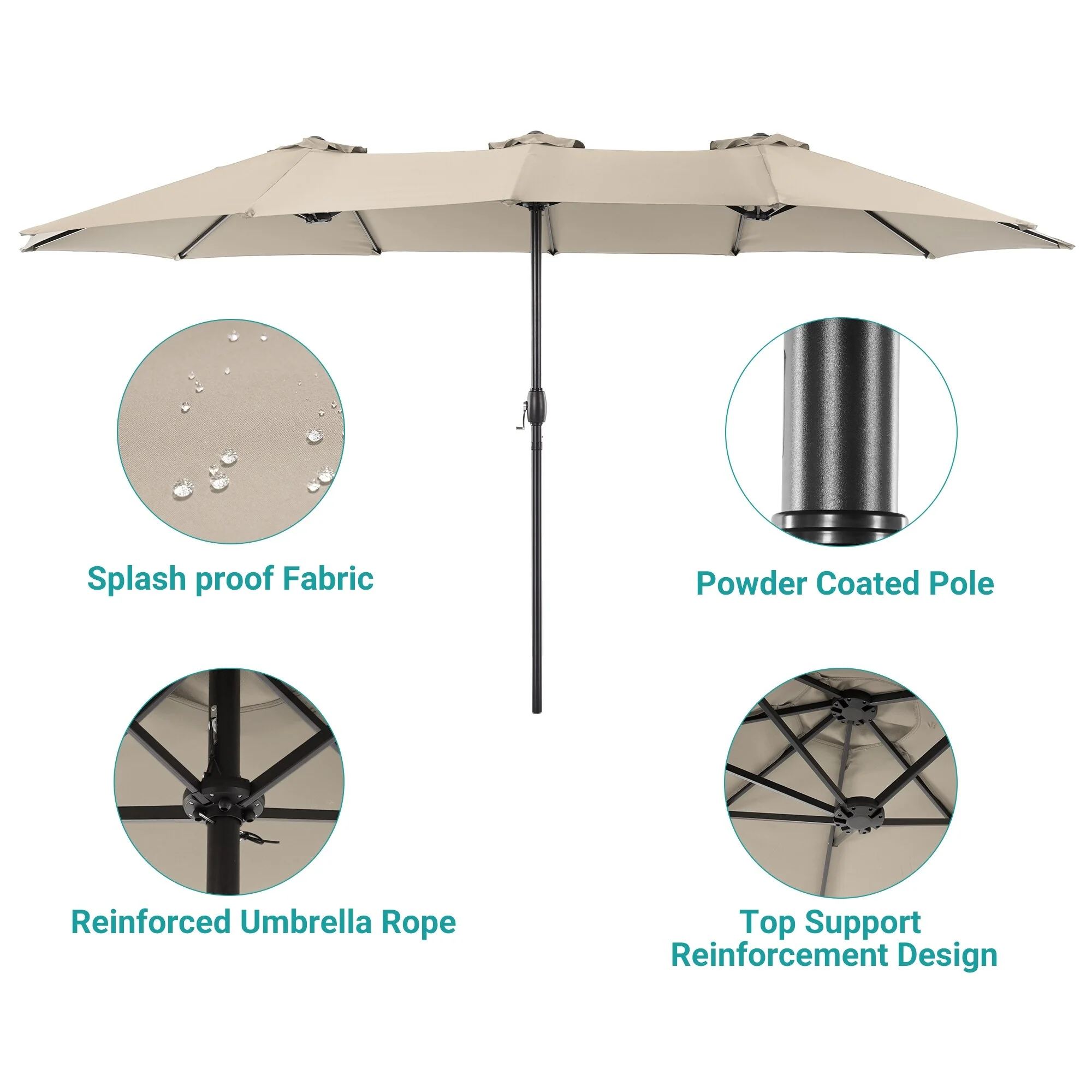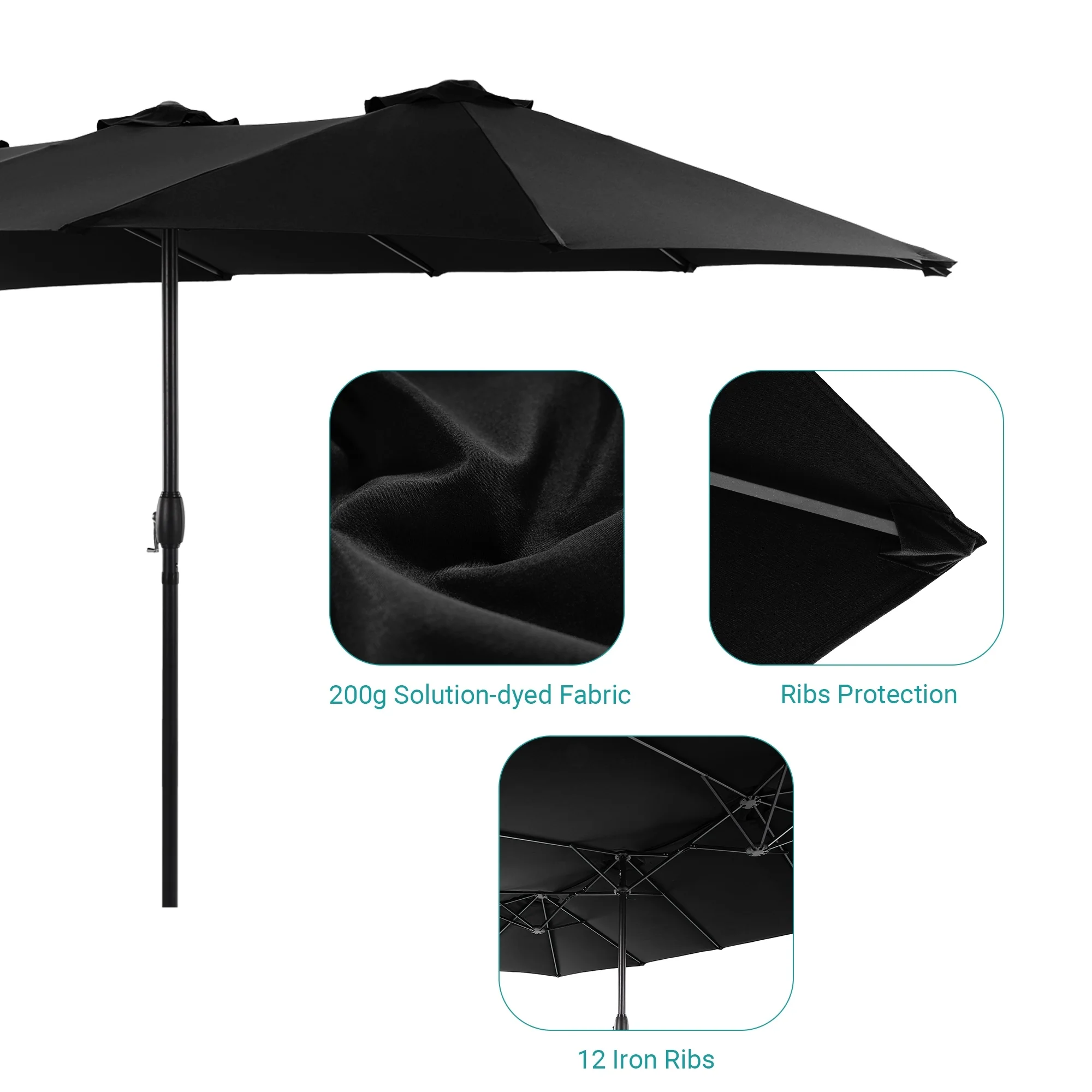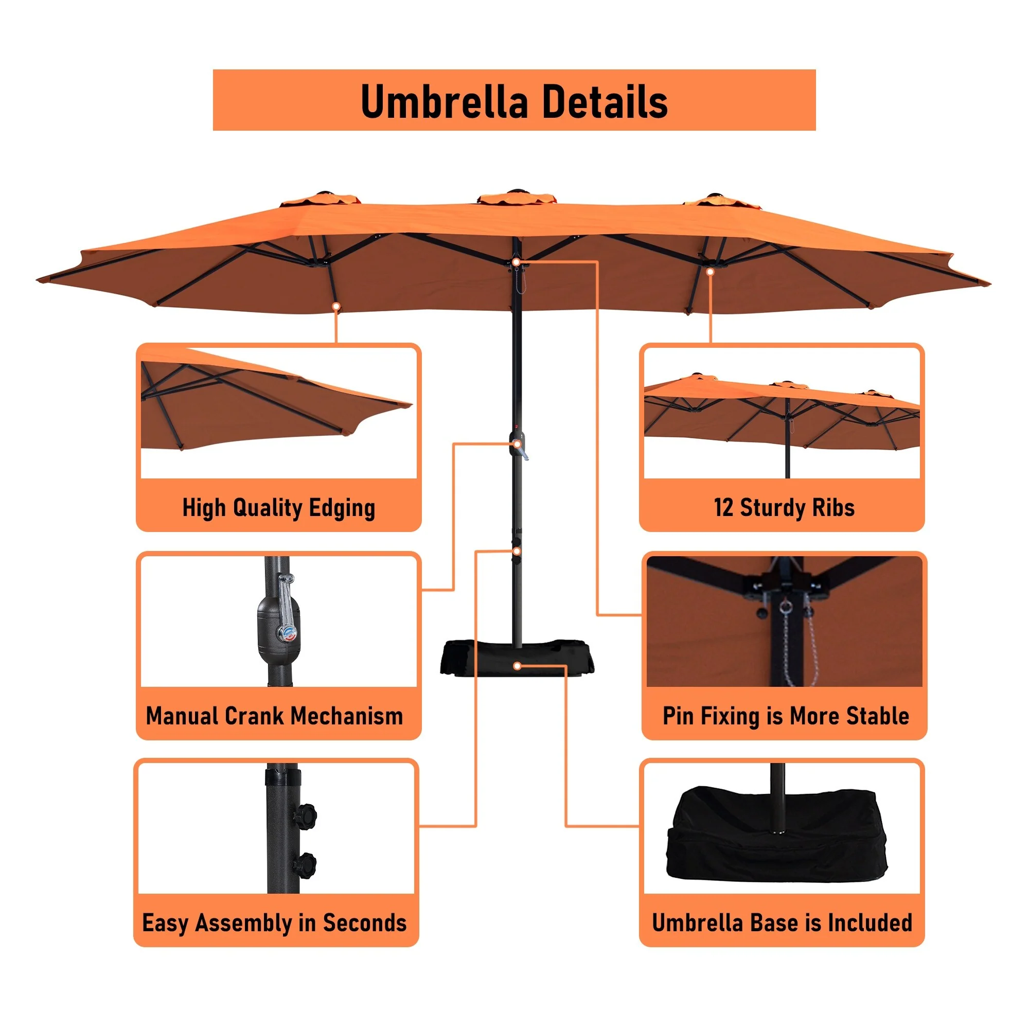 MAISON ARTS 15ft Double-Sided Patio Extra Large Twin Umbrella with Base