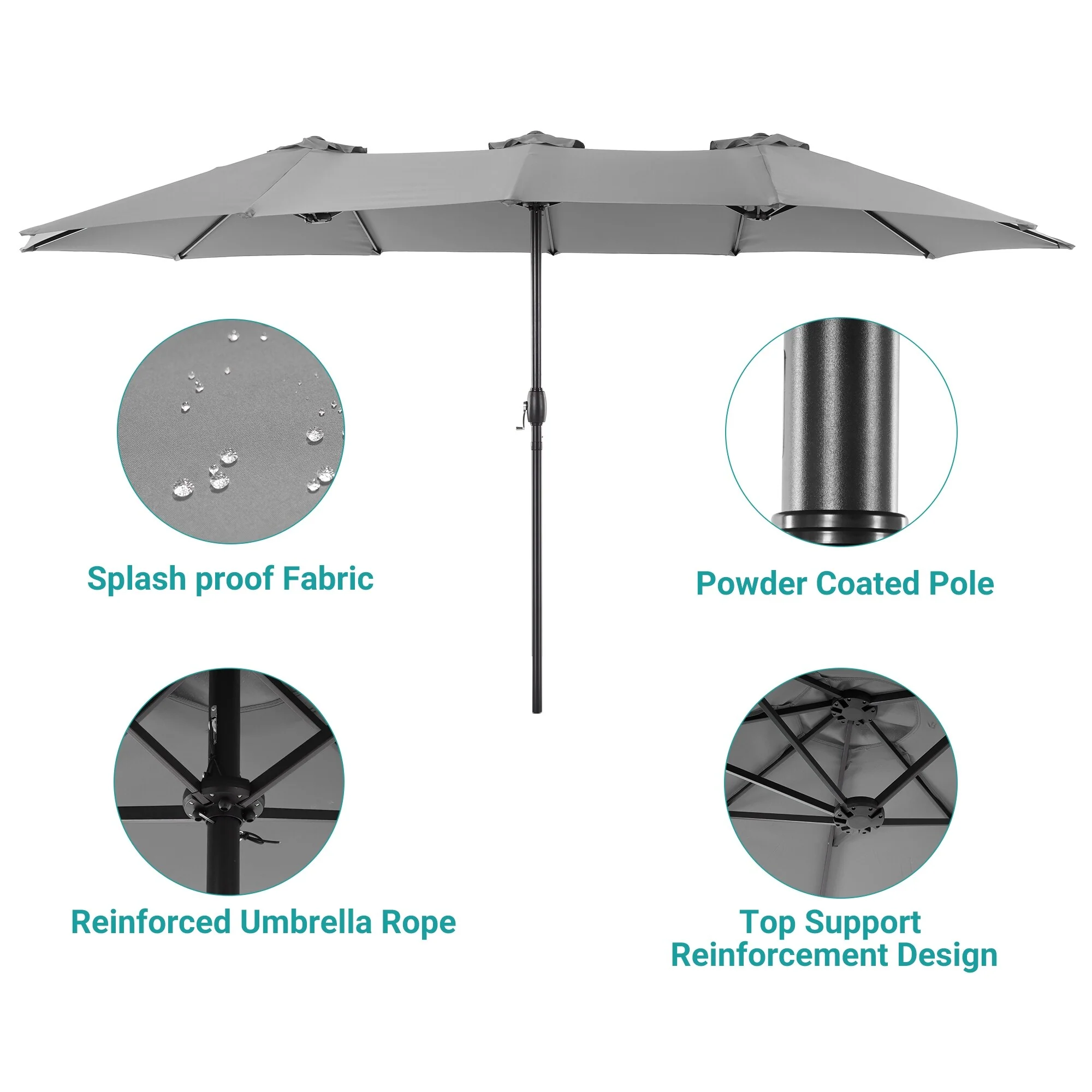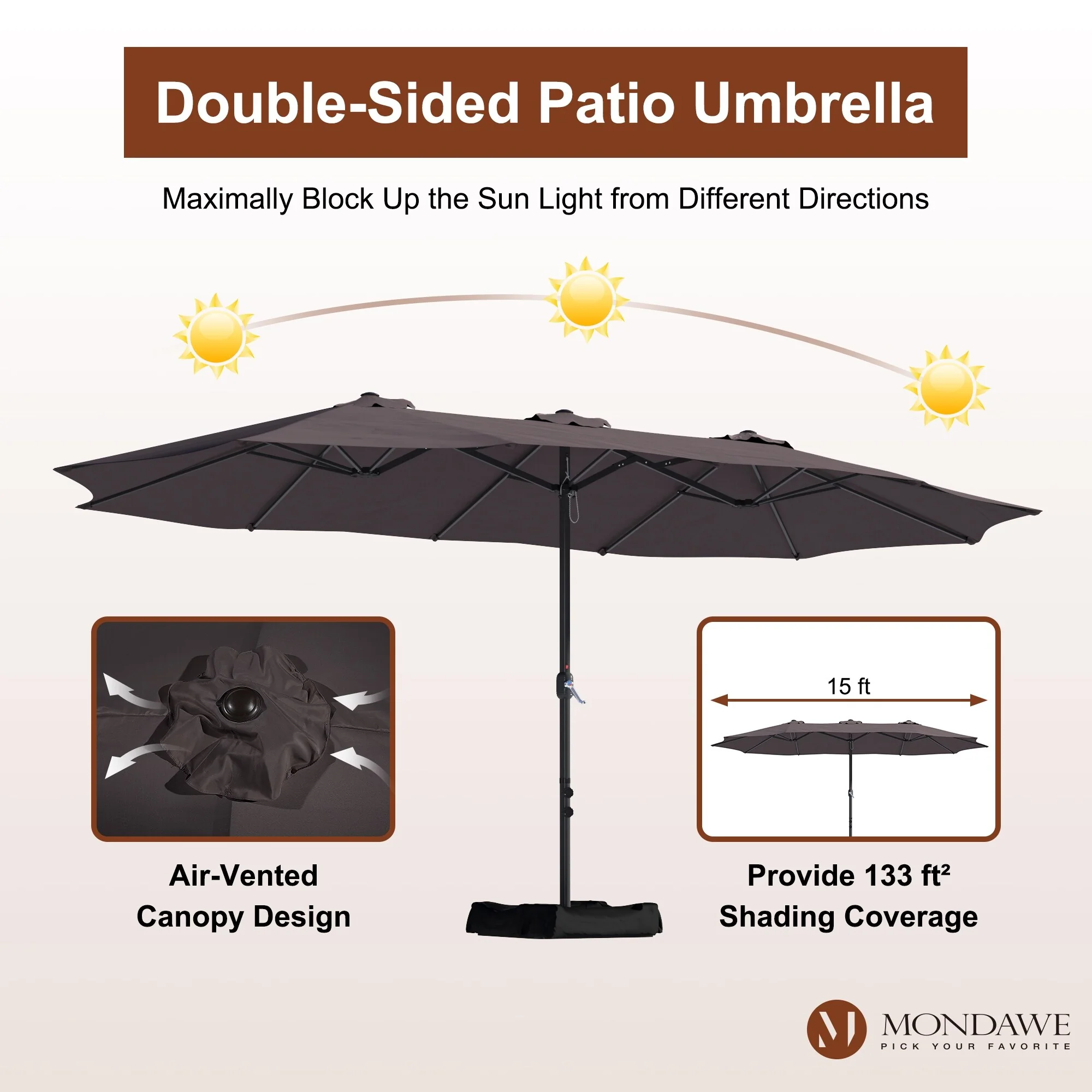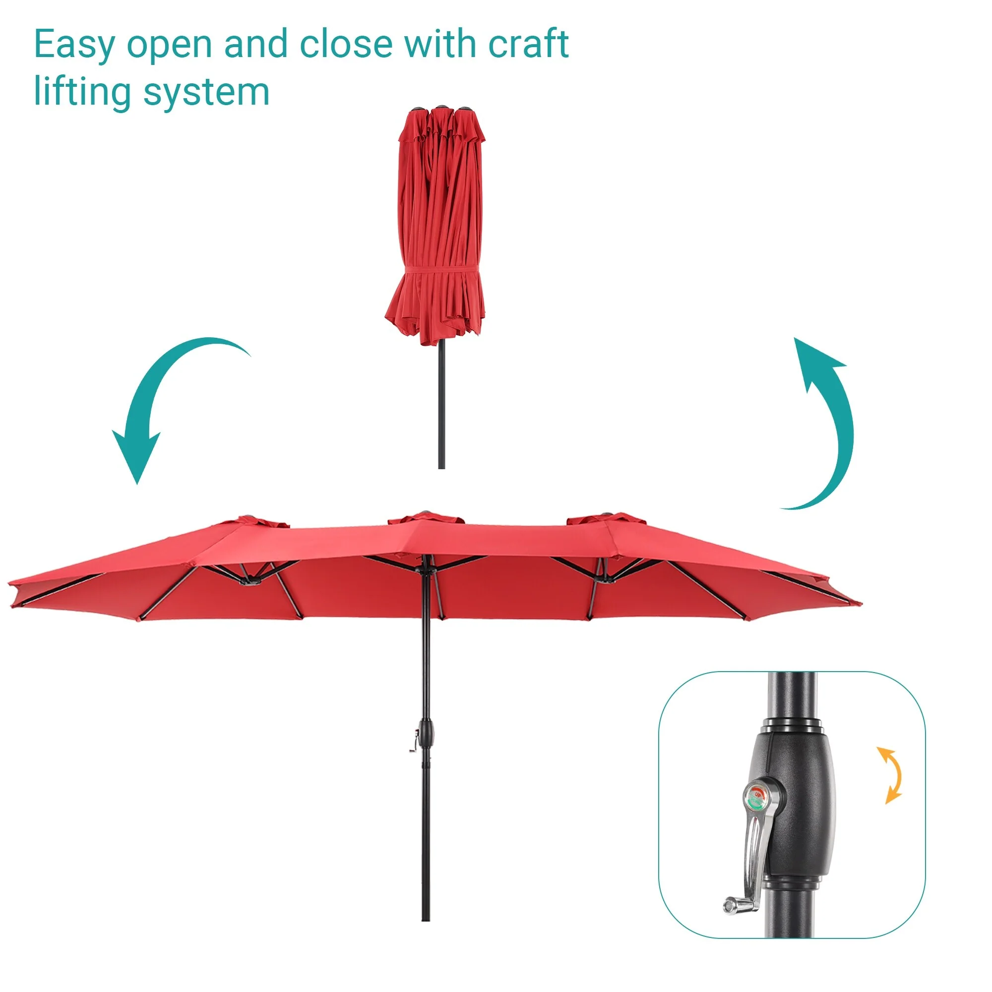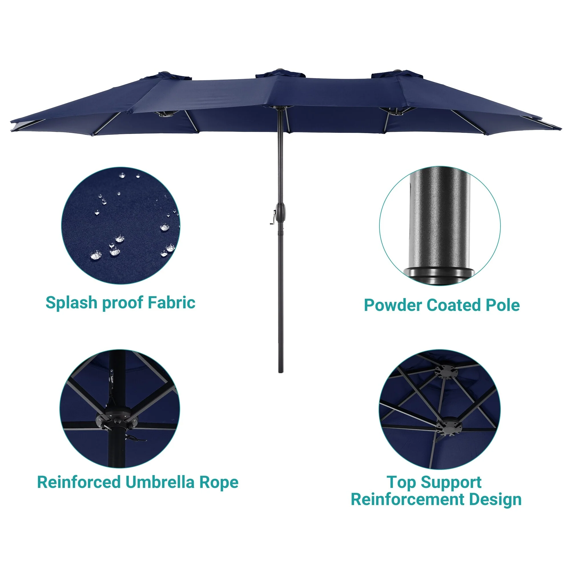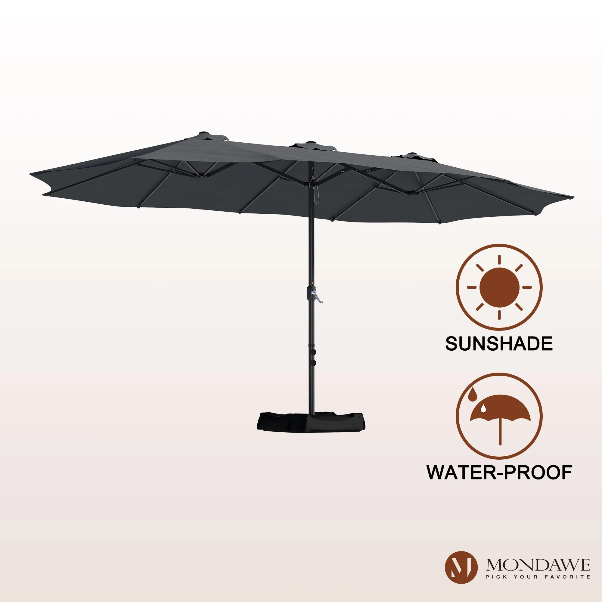MAISON ARTS 15ft Double-Sided Patio Extra Large Twin Umbrella with Base