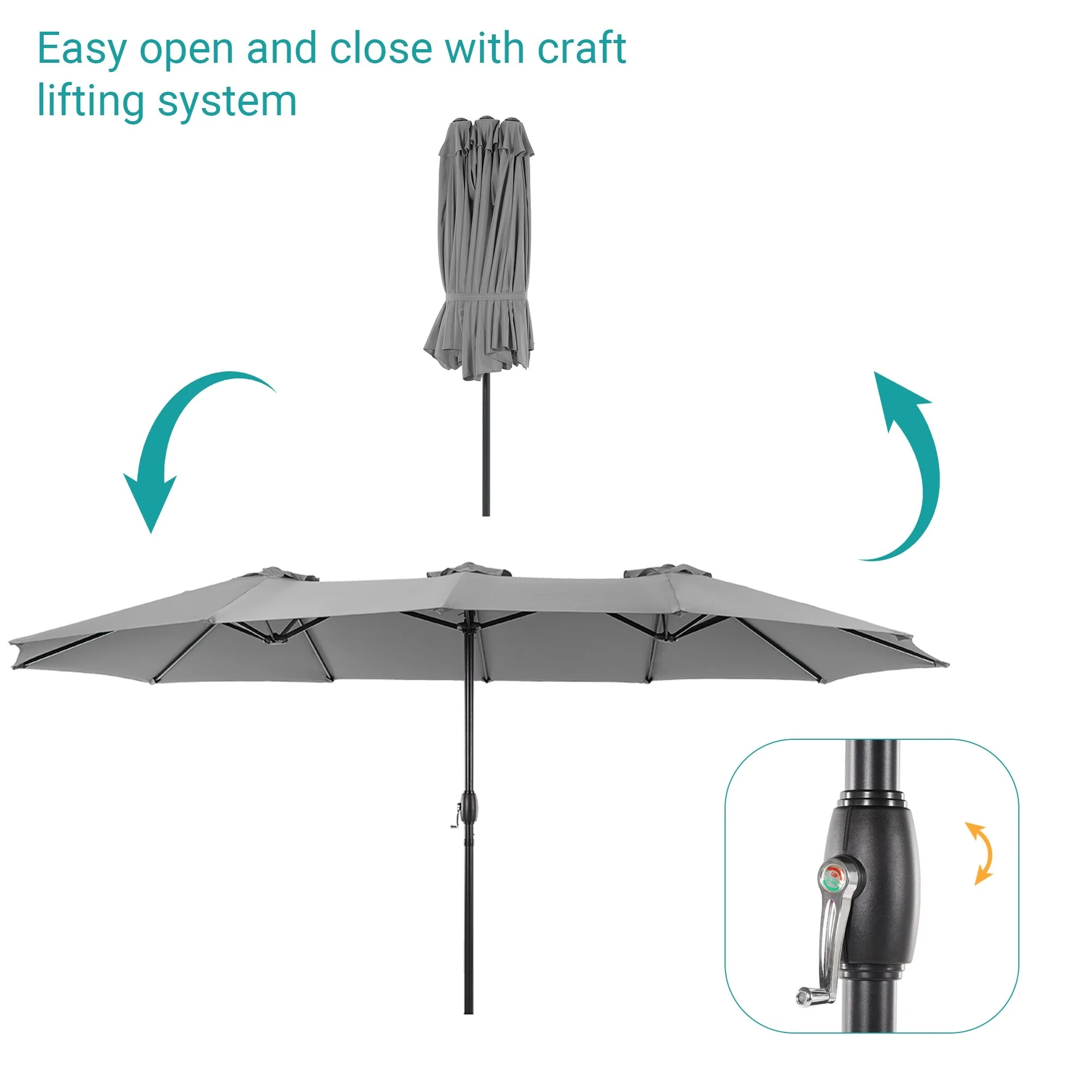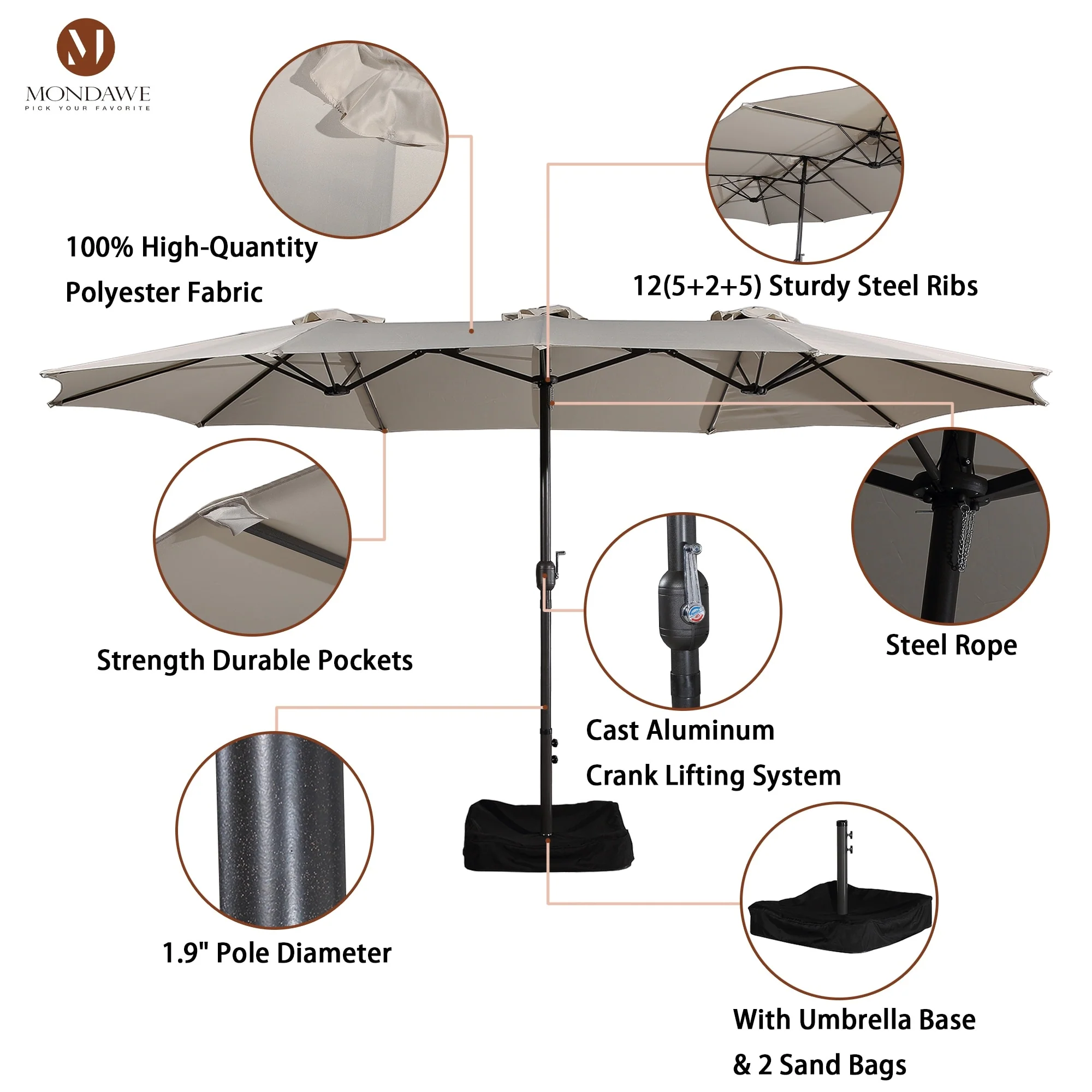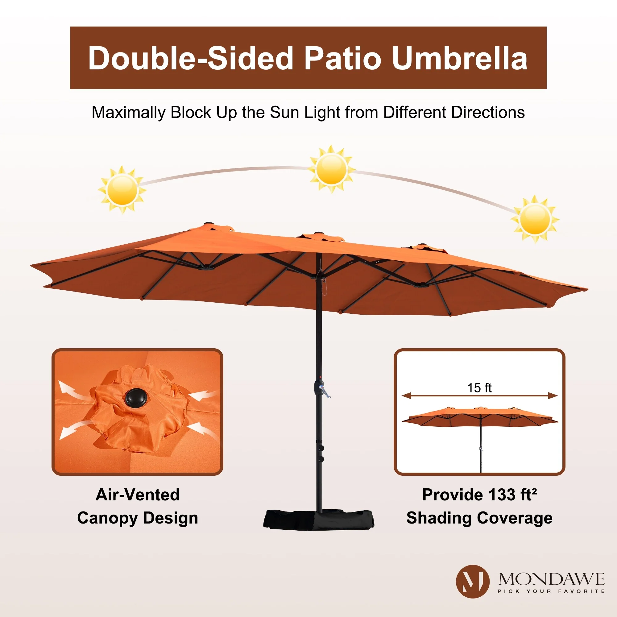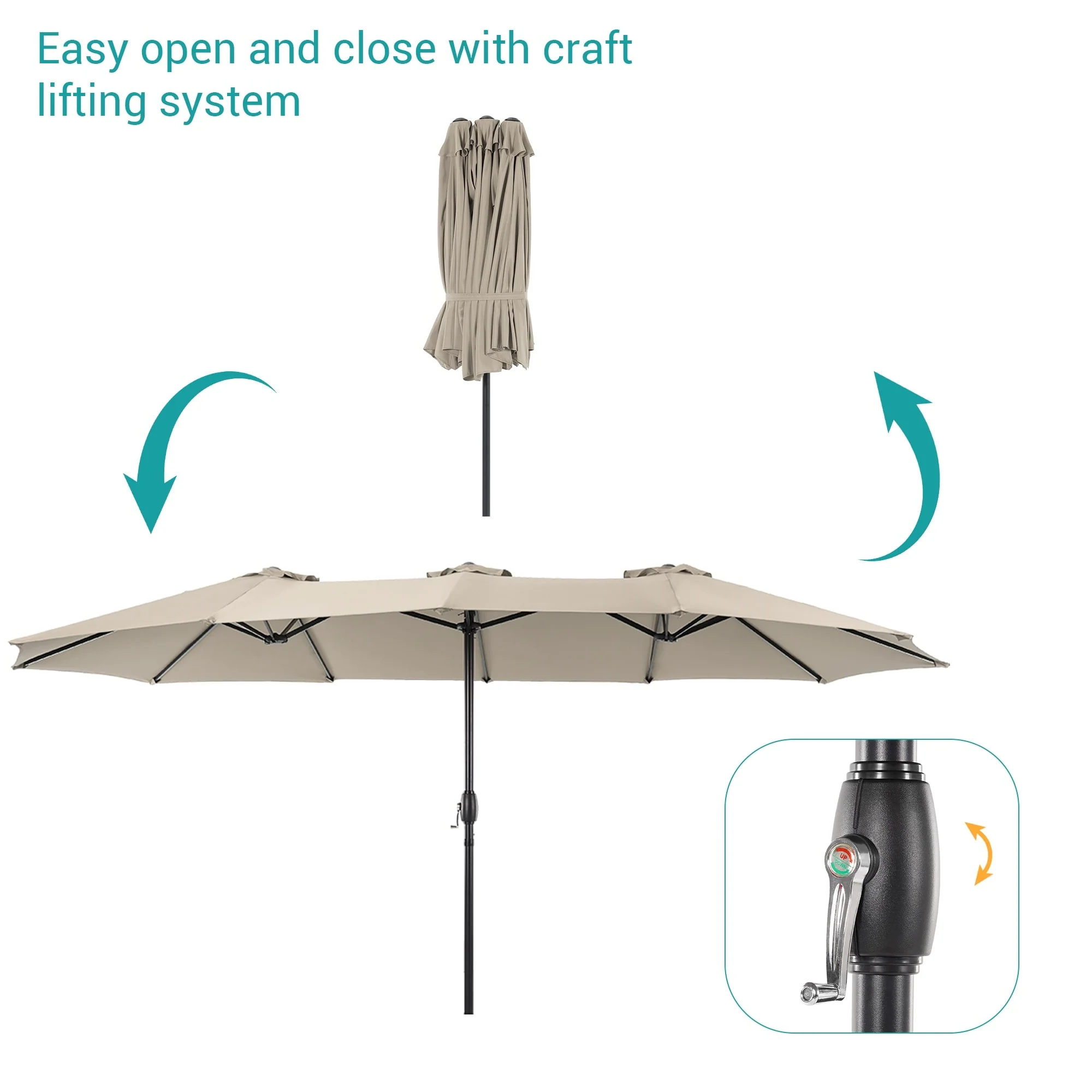 MAISON ARTS 15ft Double-Sided Patio Extra Large Twin Umbrella with Base