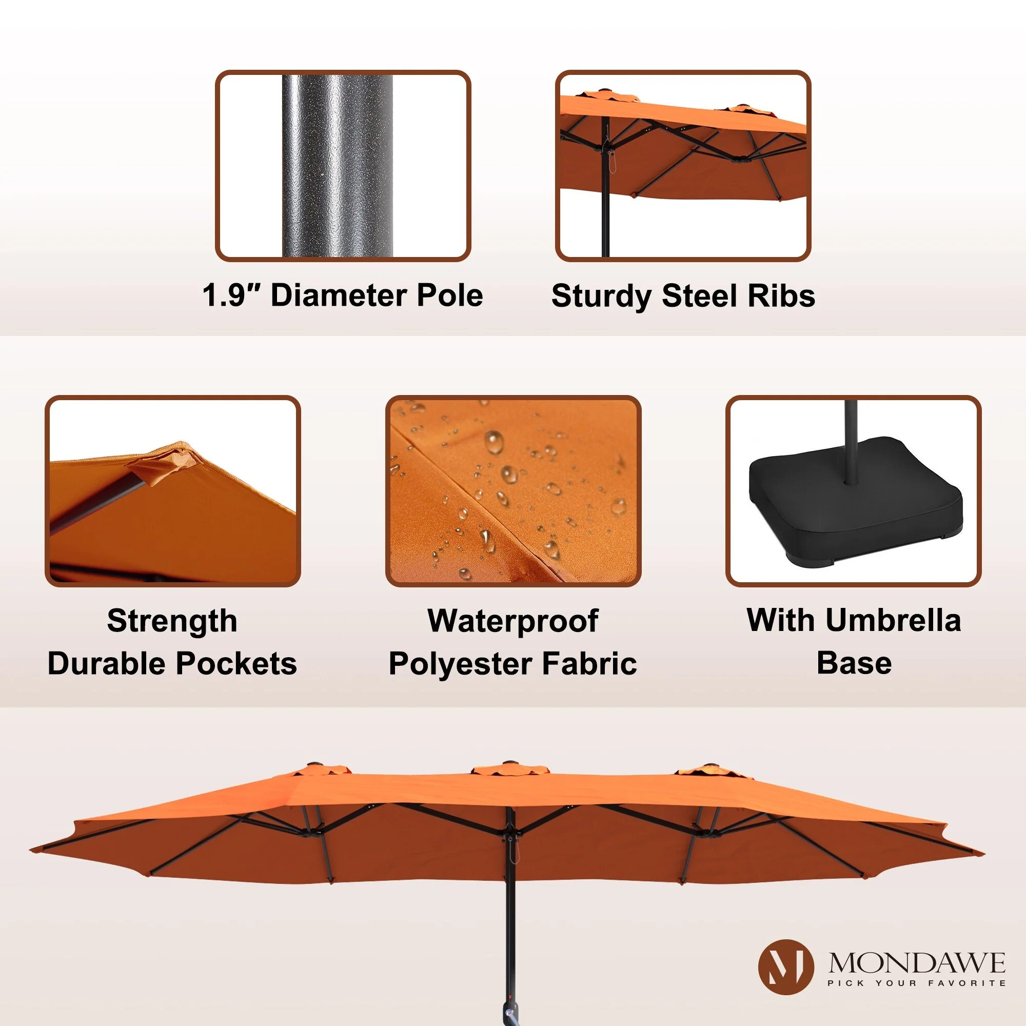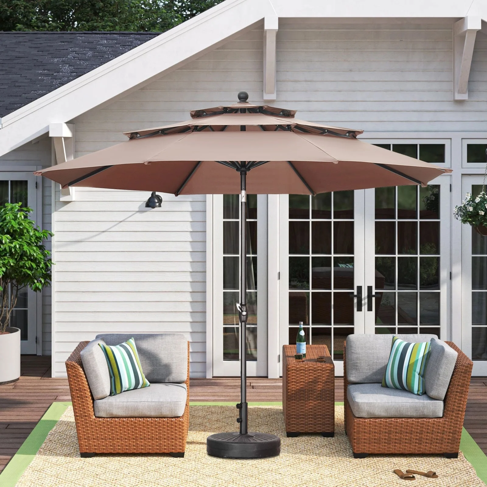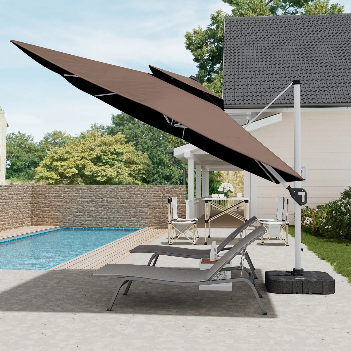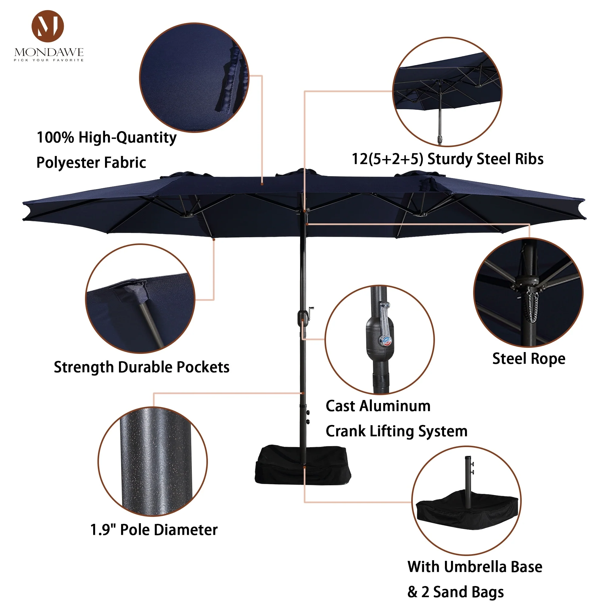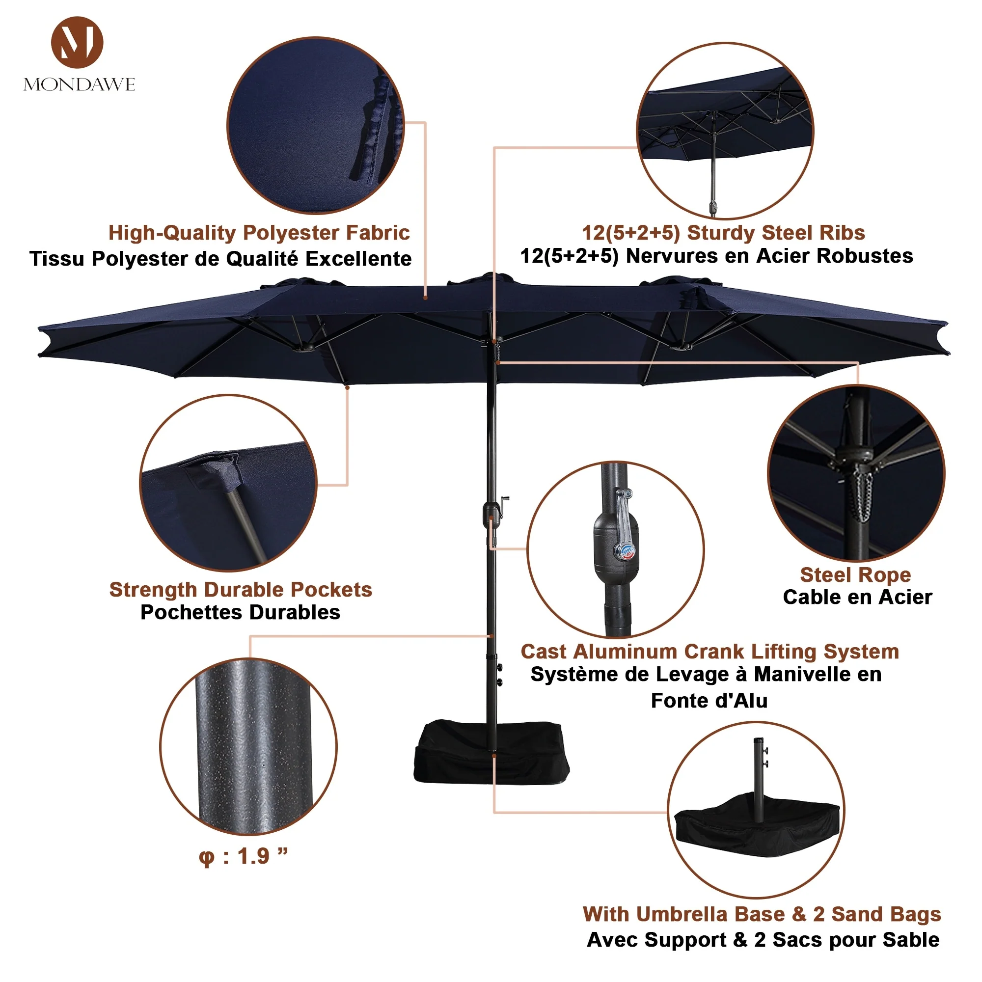 MAISON ARTS 15ft Double-Sided Patio Extra Large Twin Umbrella with Base