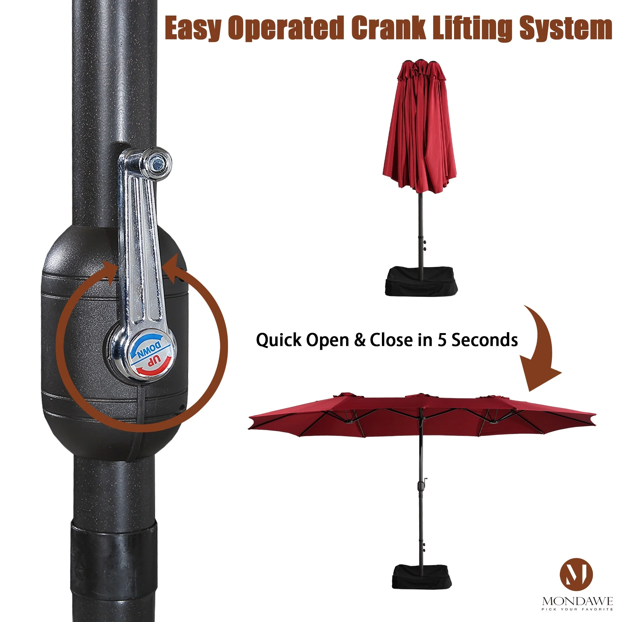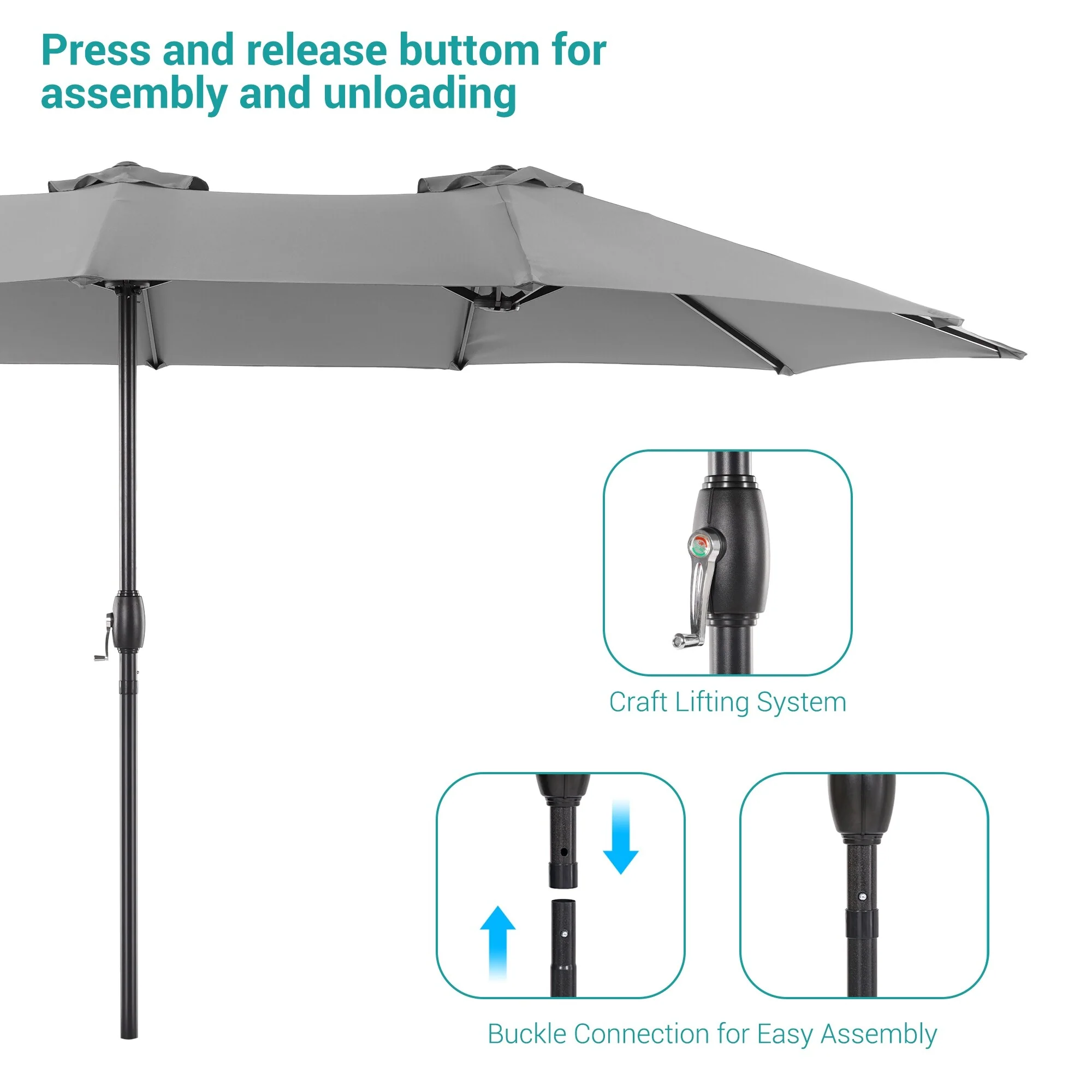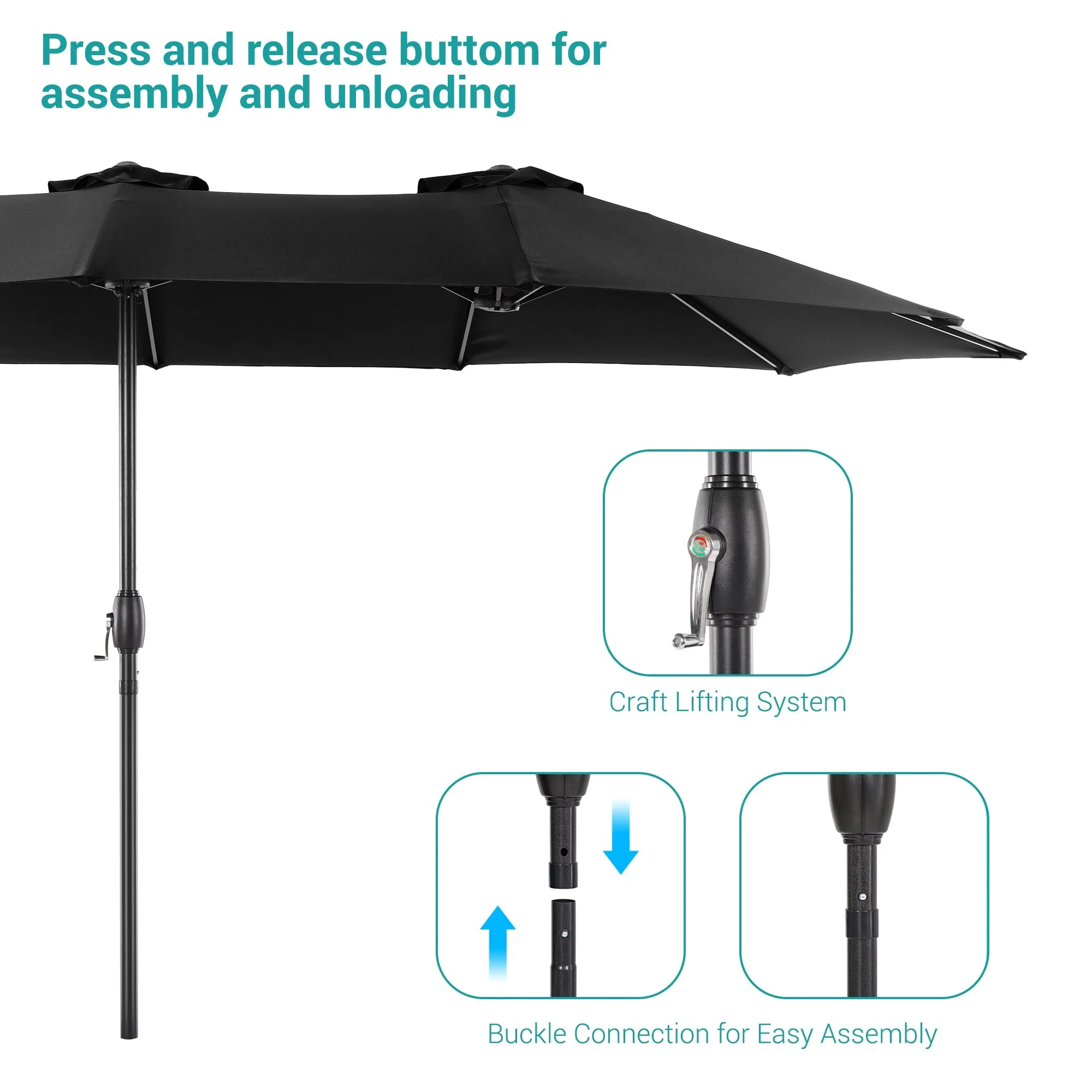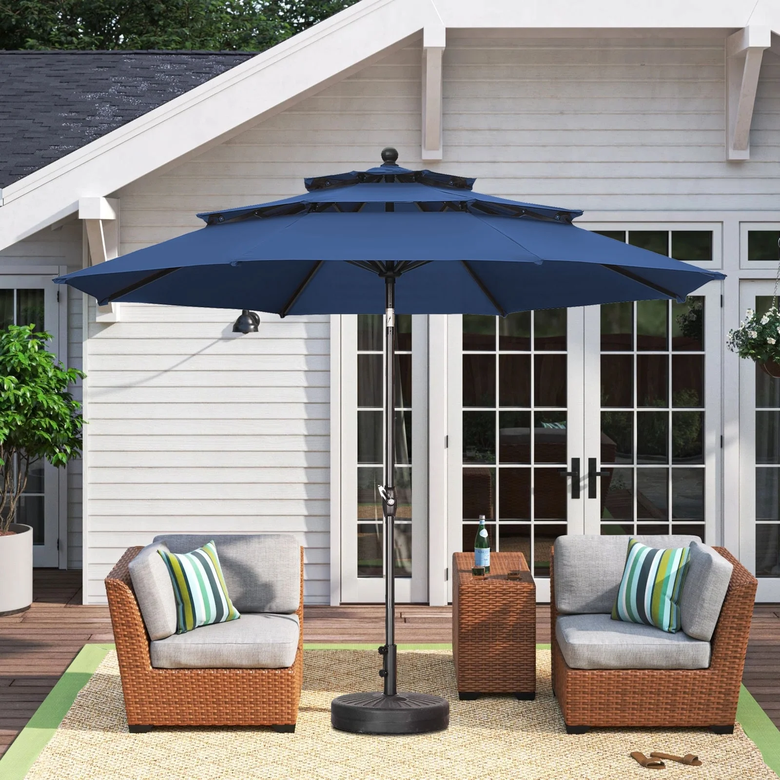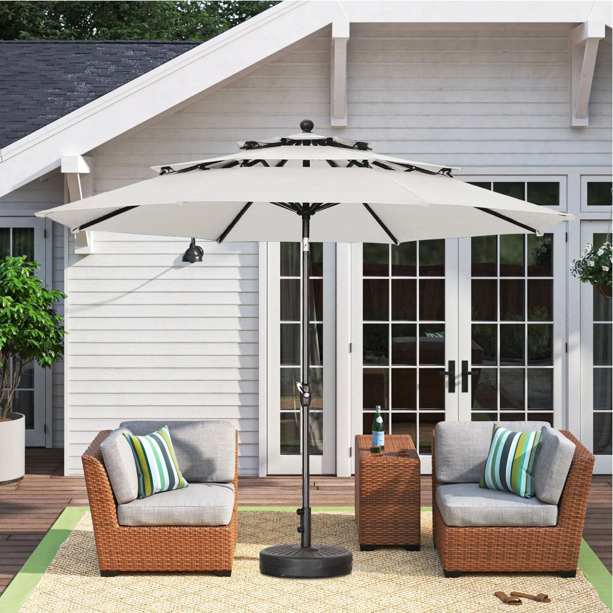 MAISON ARTS 15ft Double-Sided Patio Extra Large Twin Umbrella with Base